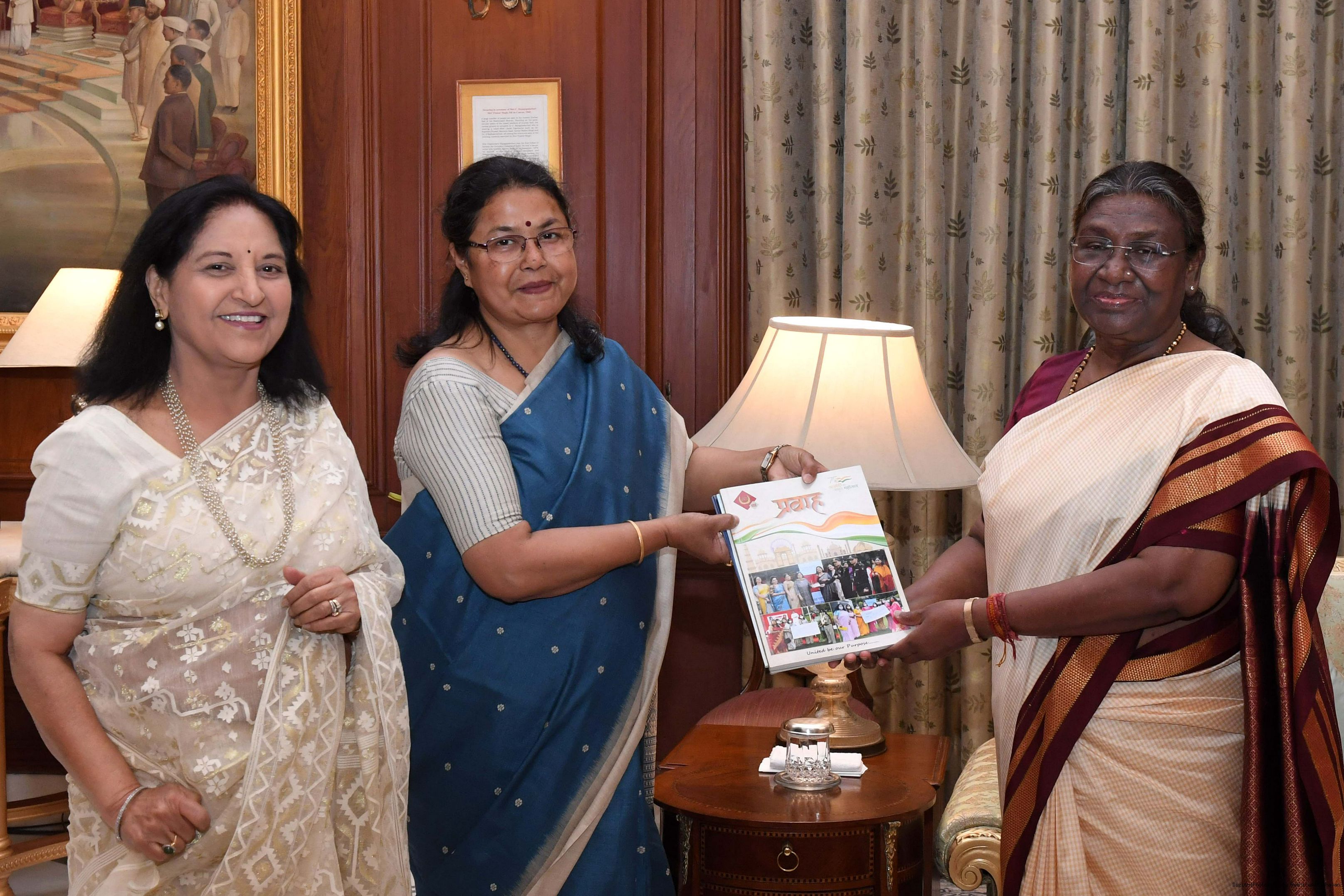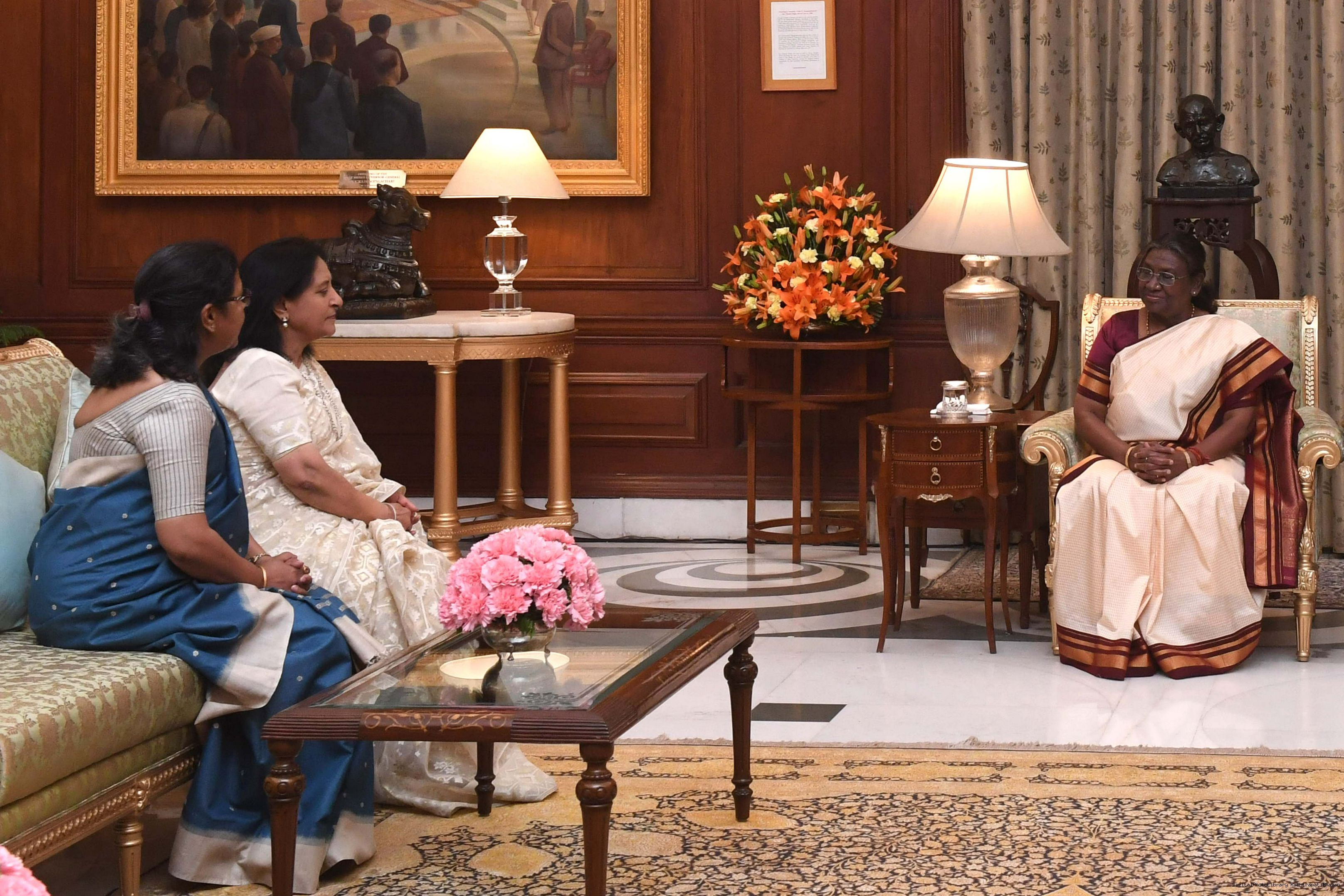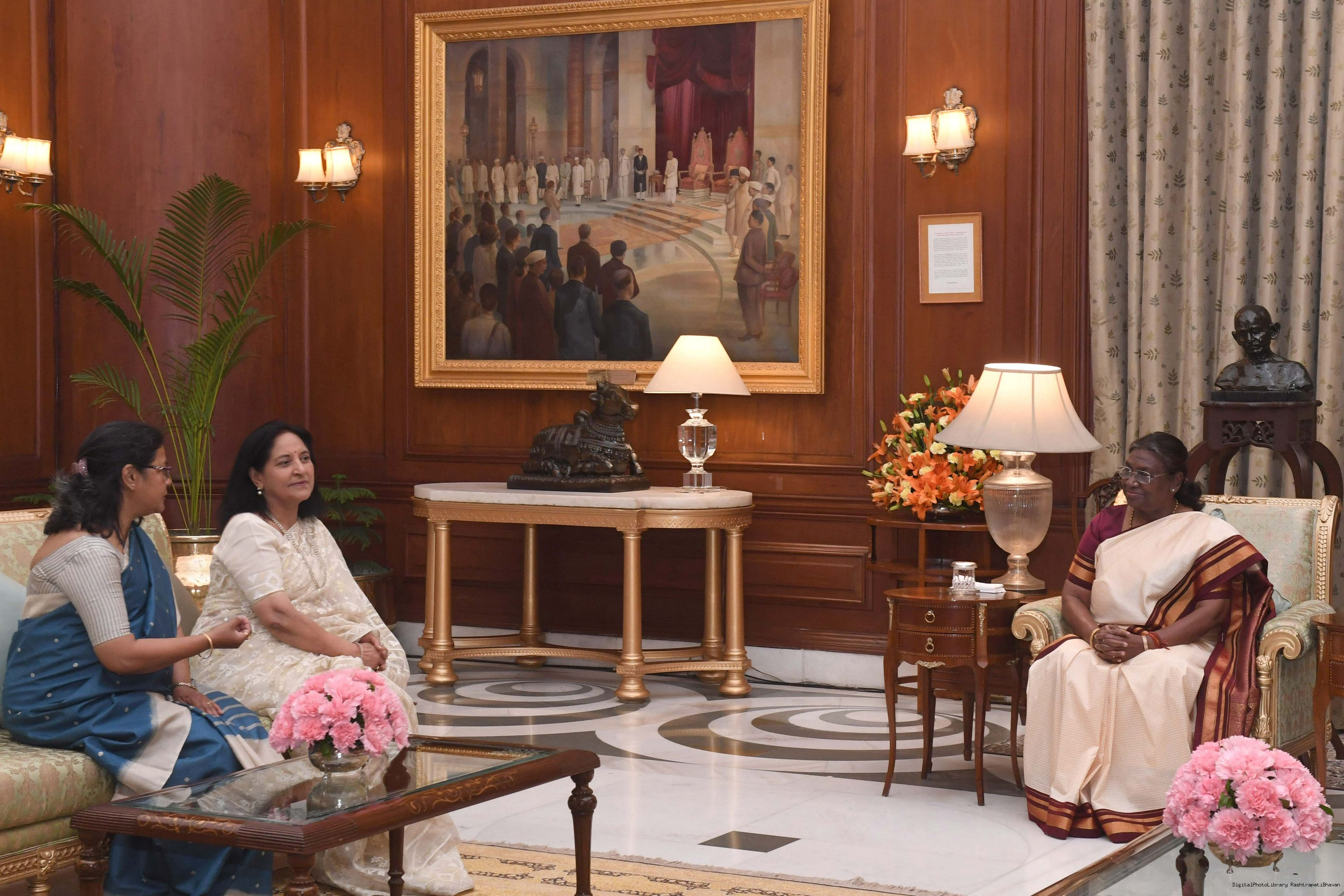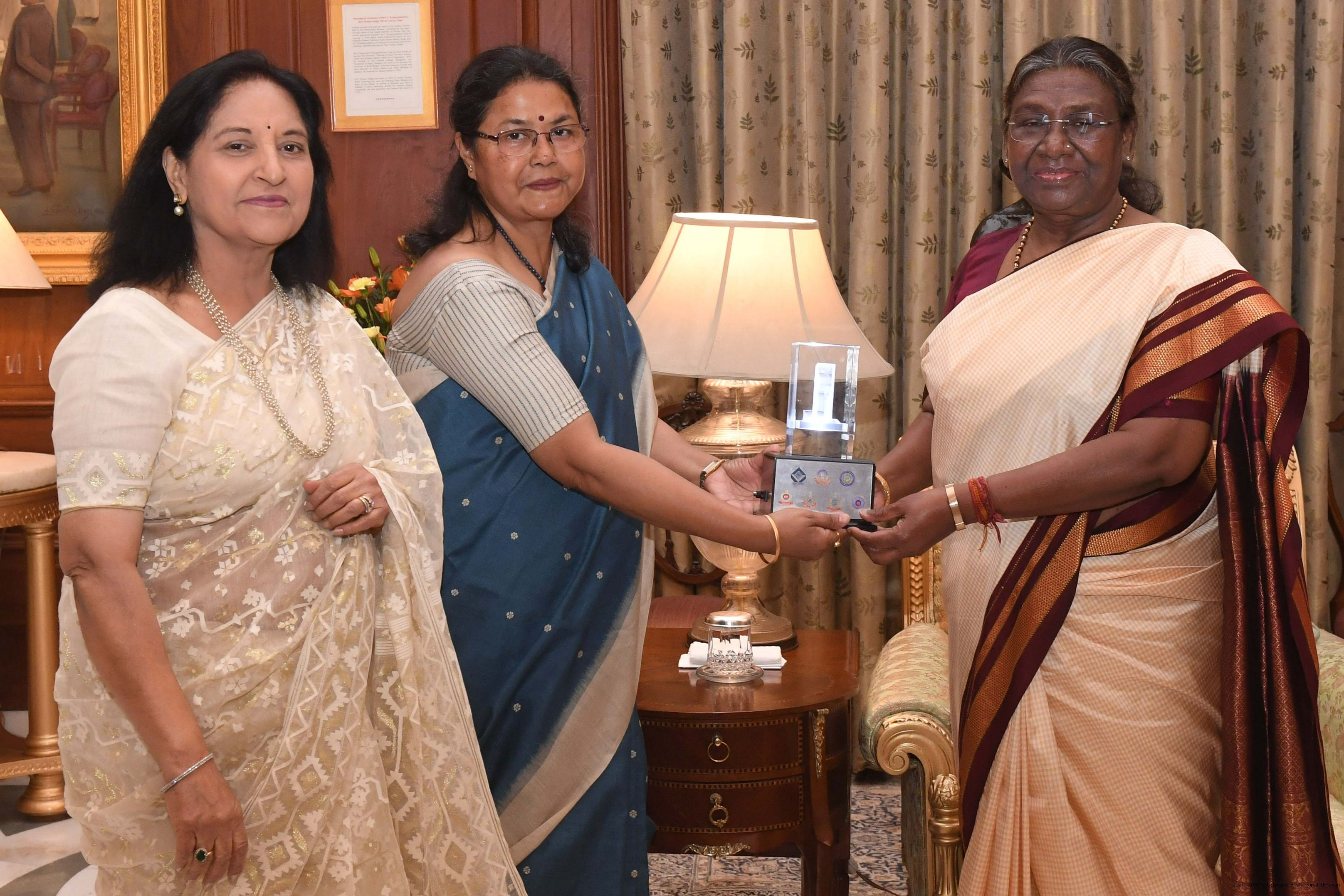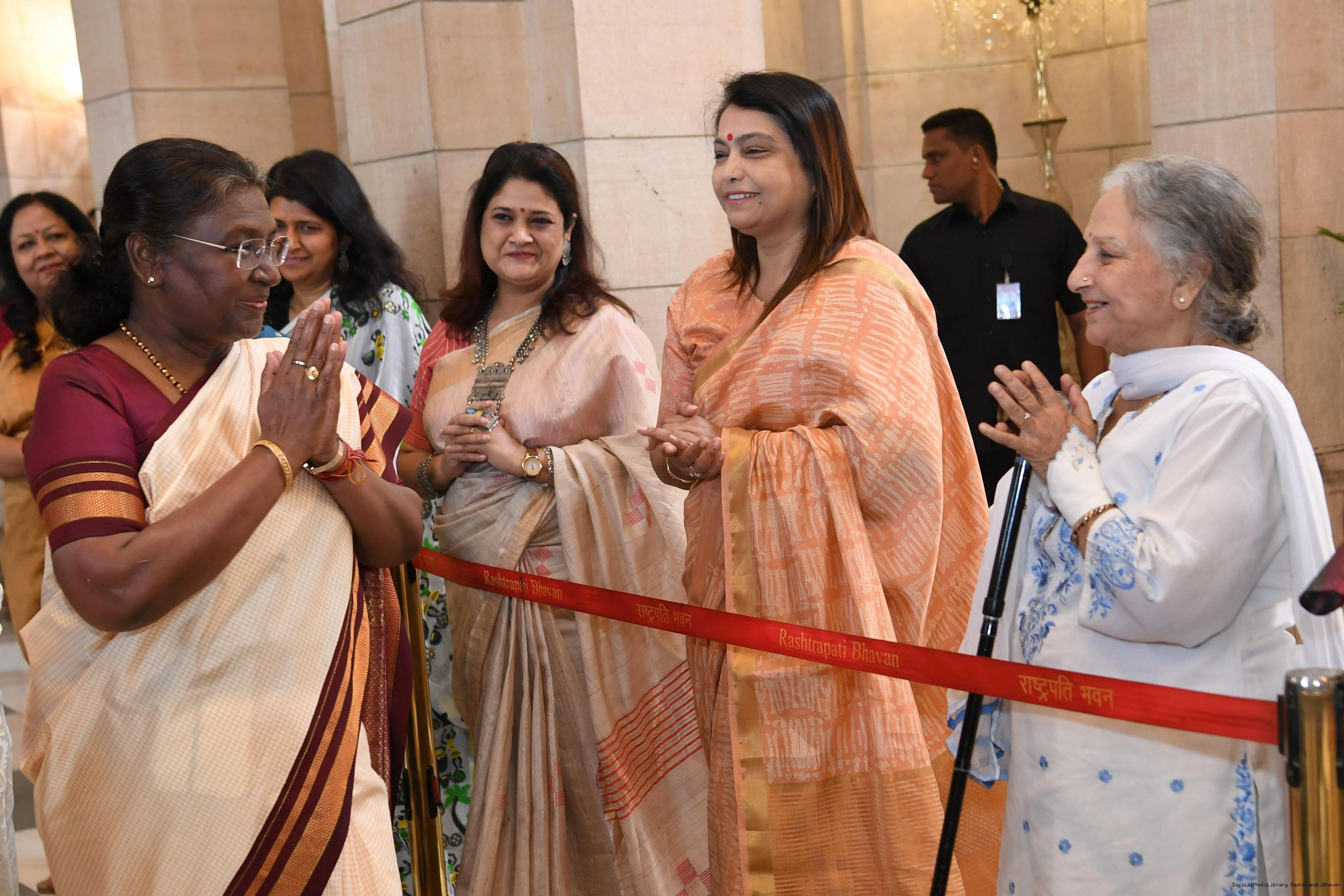 | Caption: | The President of India Smt. Droupadi Murmu posing a Group Photo and Meeting with the members of IPS officer's Wives Welfare Association (IPSWWA) at Rashtrapati Bhawan on April 03, 2024. |