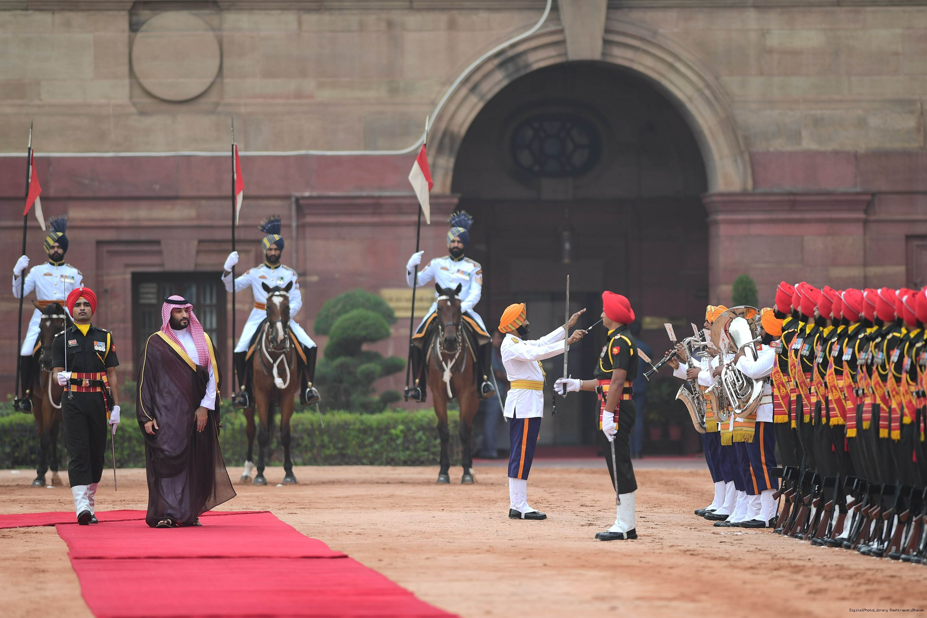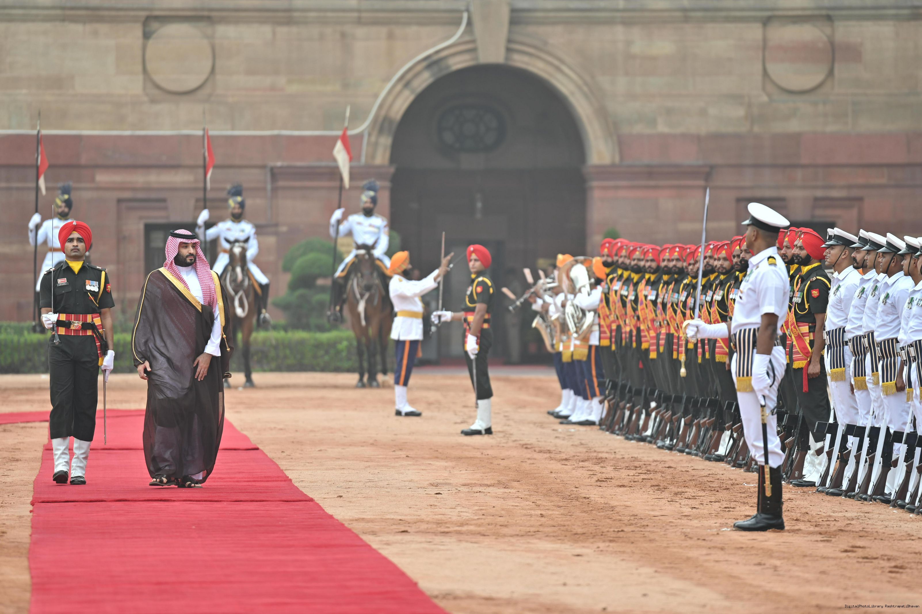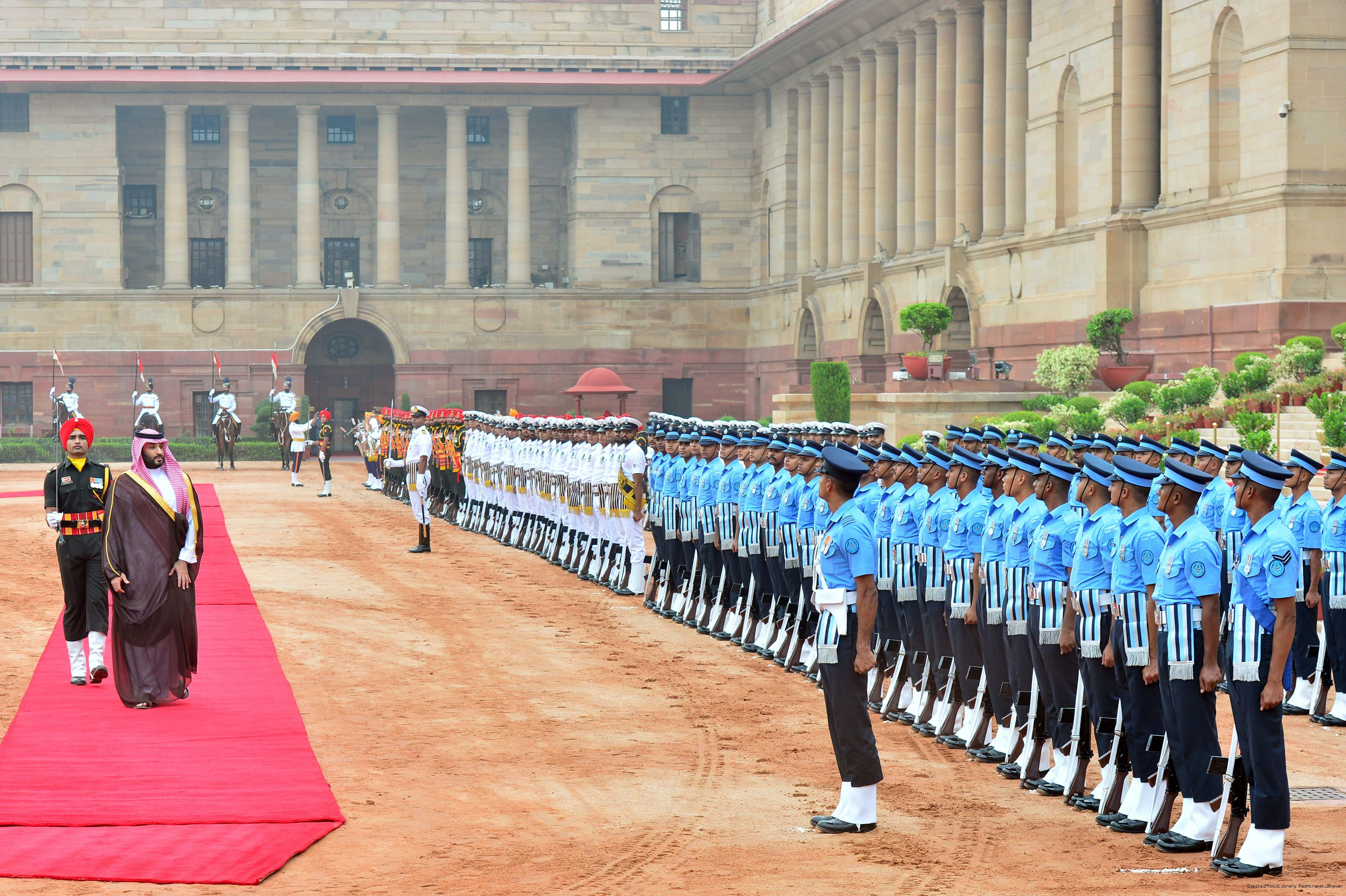 | Caption: | The President of India, Smt Droupadi Murmu accords a ceremonial welcome to His Royal Highness Prince Mohammed bin Salman bin Abdulaziz Al Saud, the Crown Prince and Prime Minister of the Kingdom of Saudi Arabia at Rashtrapati Bhavan in New Delhi on September 11, 2023. |