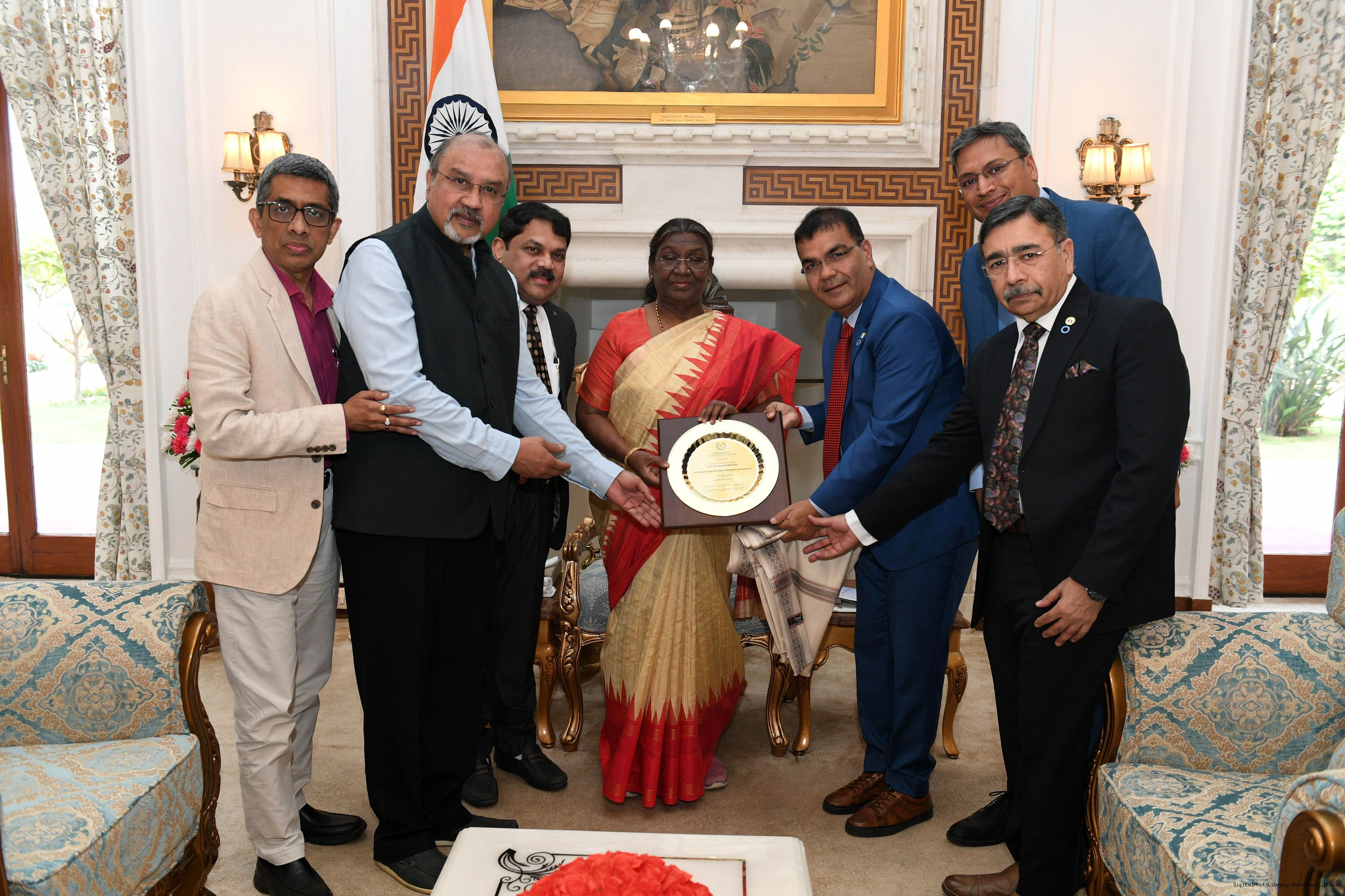 | Caption: | Prof ( Dr ) Jayant Panda along with Dr Banshi Saboo Dr S.R. Aravind along with Others meeting with the President of India Smt. Droupadi Murmu at Rashtrapati Bhawan on April 09, 2024. |
