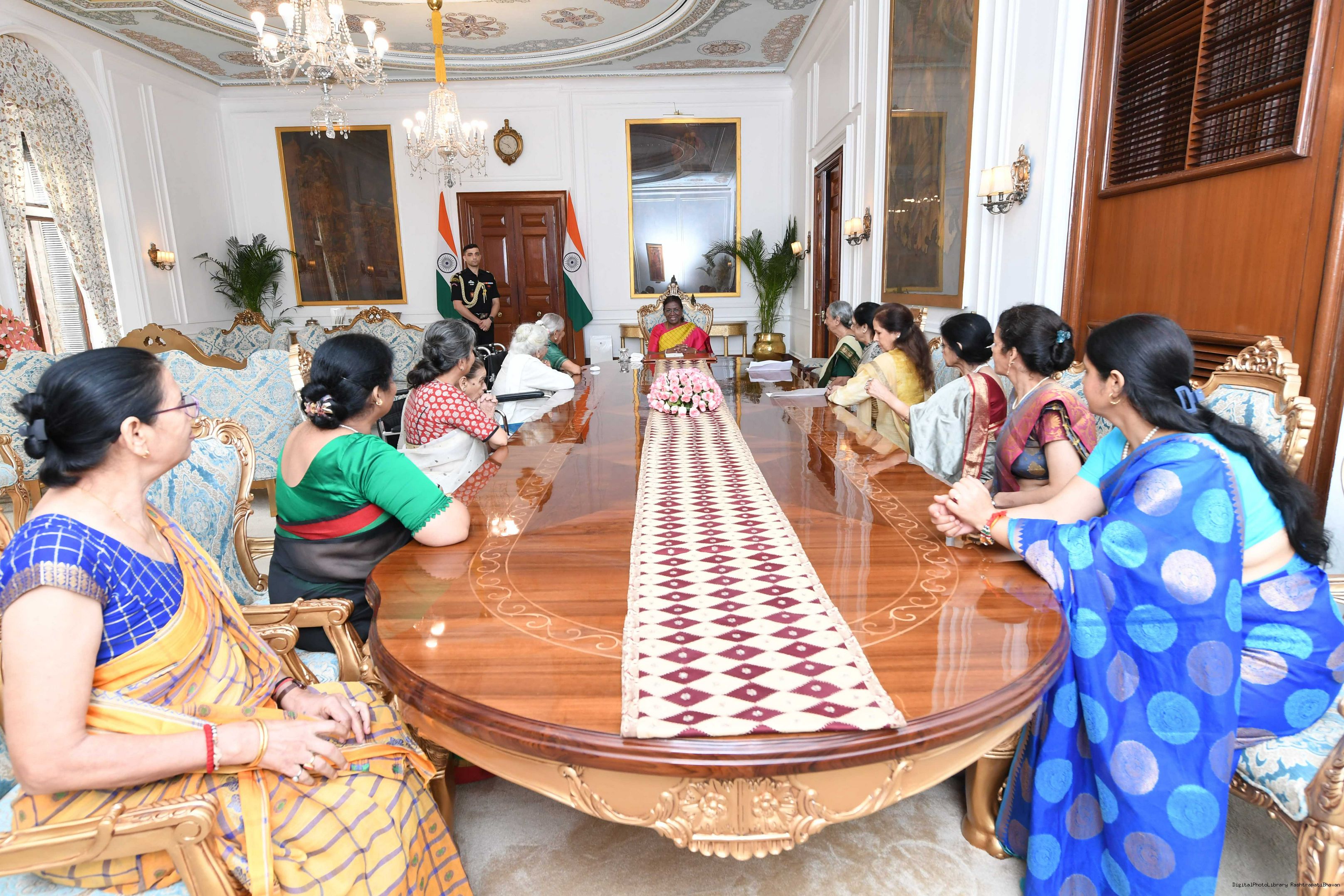 | Caption: | Dr. V. Mohini Giri, Chairperson, War Widows Association along with other meeting with the President of India, Smt. Droupadi Murmu at Rashtrapati Bhavan on September 12, 2023. |