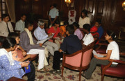 | Caption: | The Participants of the Children's Earth Summit, Johannesburg and officials of Navdanya calling on the President of India, Dr A P J Abdul Kalam at the Committee Room of Rashtrapati Bhavan in New Delhi on Sep 04, 2002 |