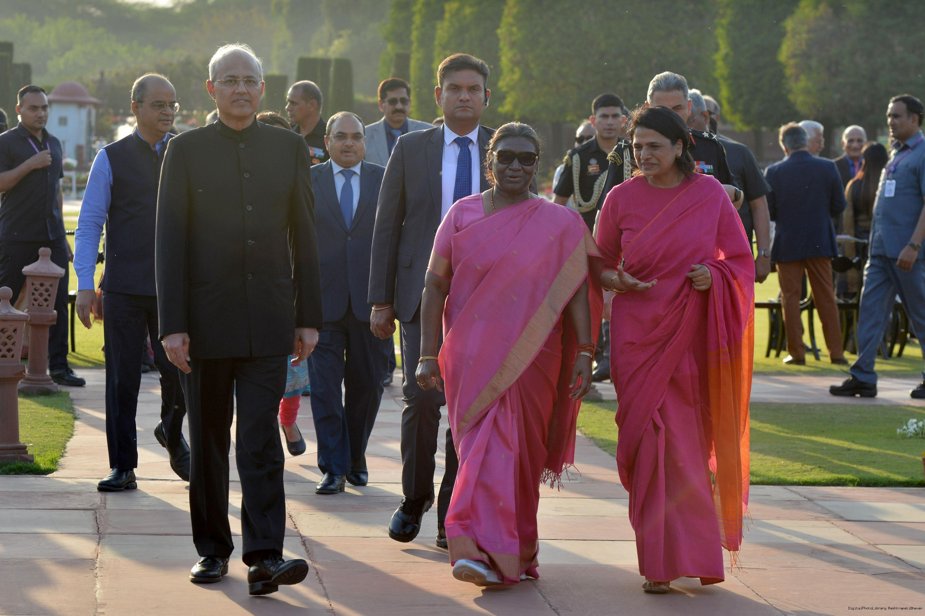 | Caption: | The President of India Smt Droupadi Murmu met the Chief Justice of Delhi High Court Justice Shri Manmohan and judges of the High Court of Delhi visited the Amrit Udyan at Rashtrapati Bhavan on March 18, 2024. |
