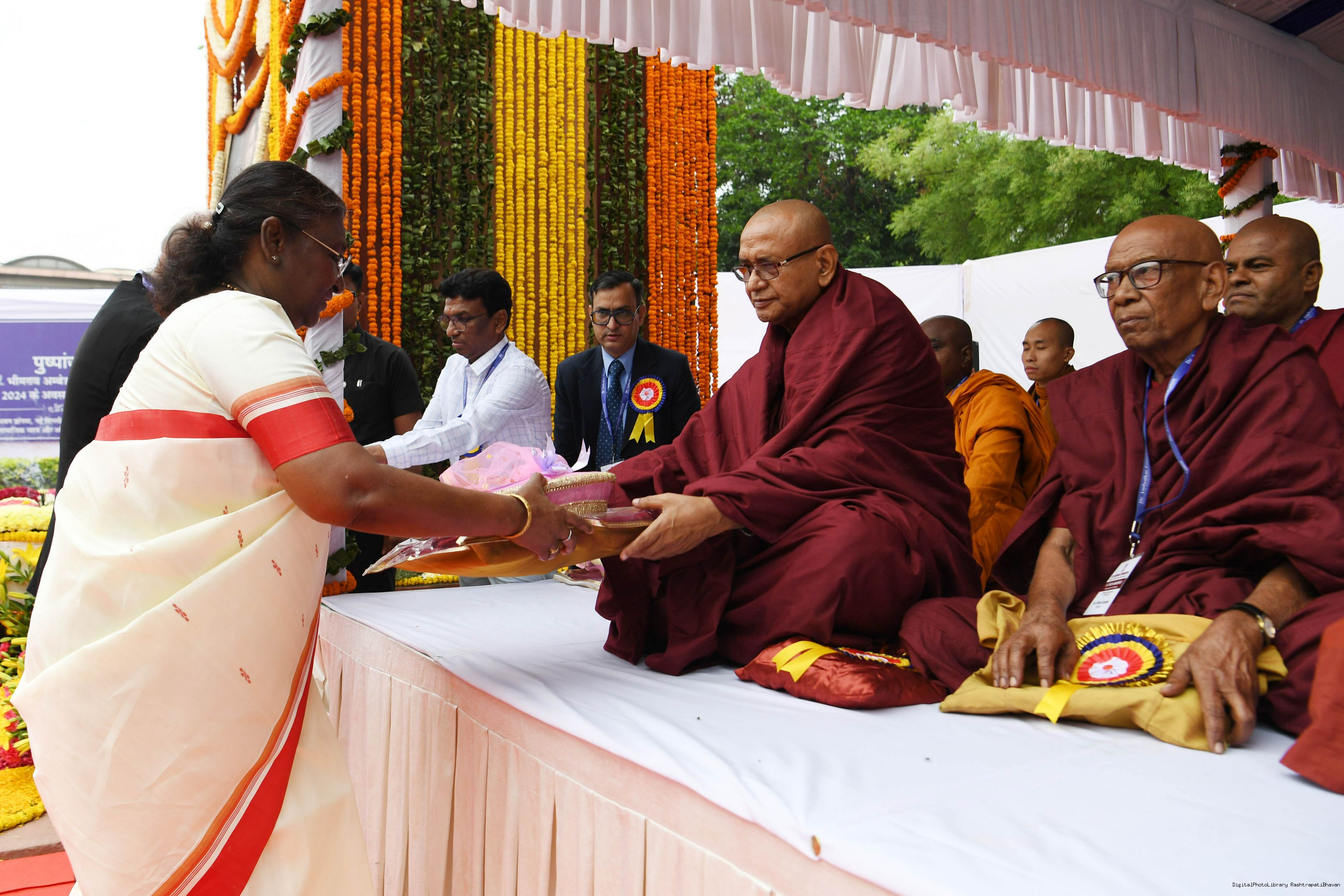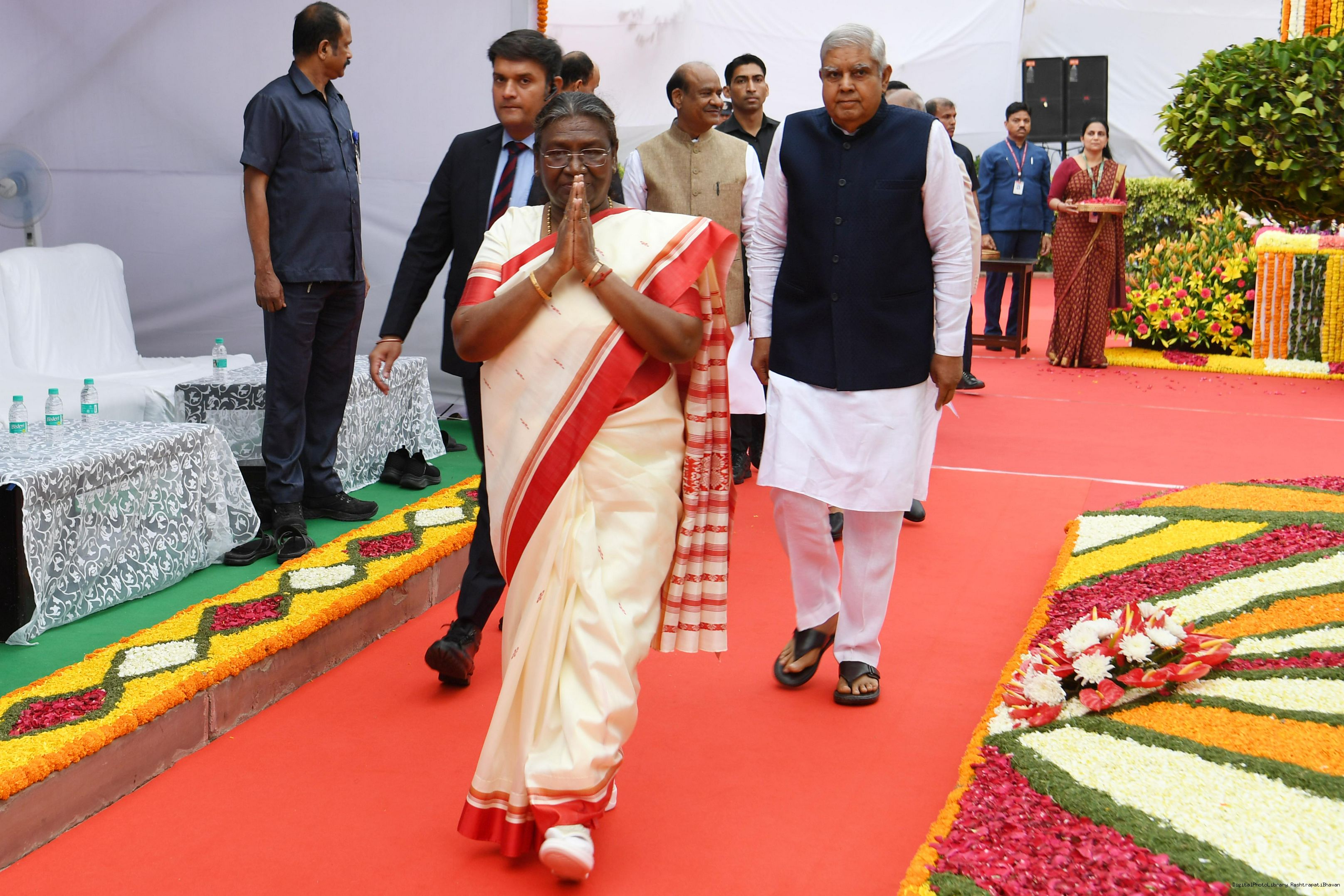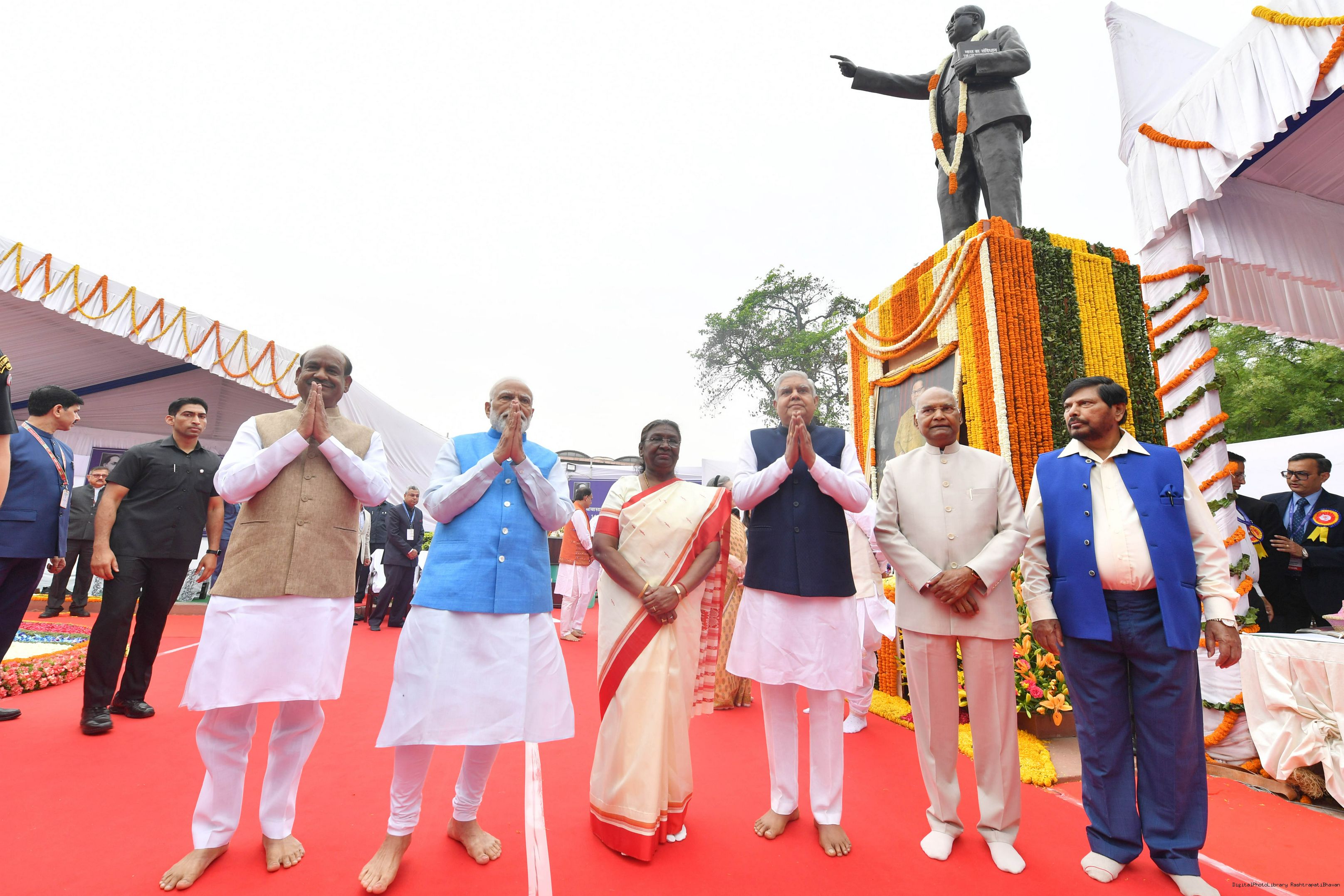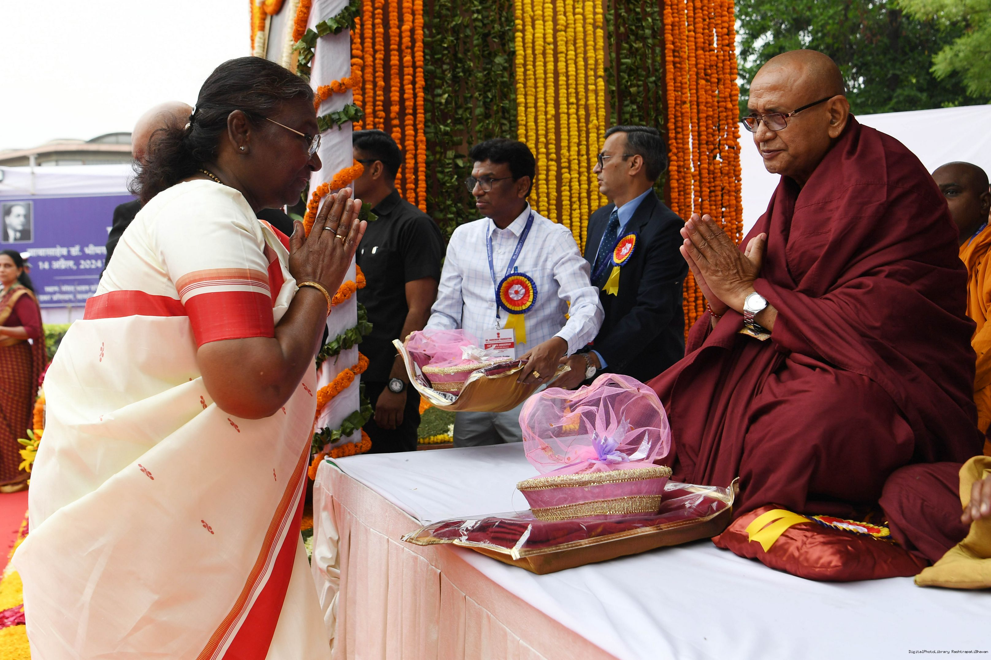 | Caption: | The President of India, Smt. Droupadi Murmu paying floral tributes to Babasaheb Dr. B.R. Ambedkar on his birth anniversary, in New Delhi on April 14, 2024. |