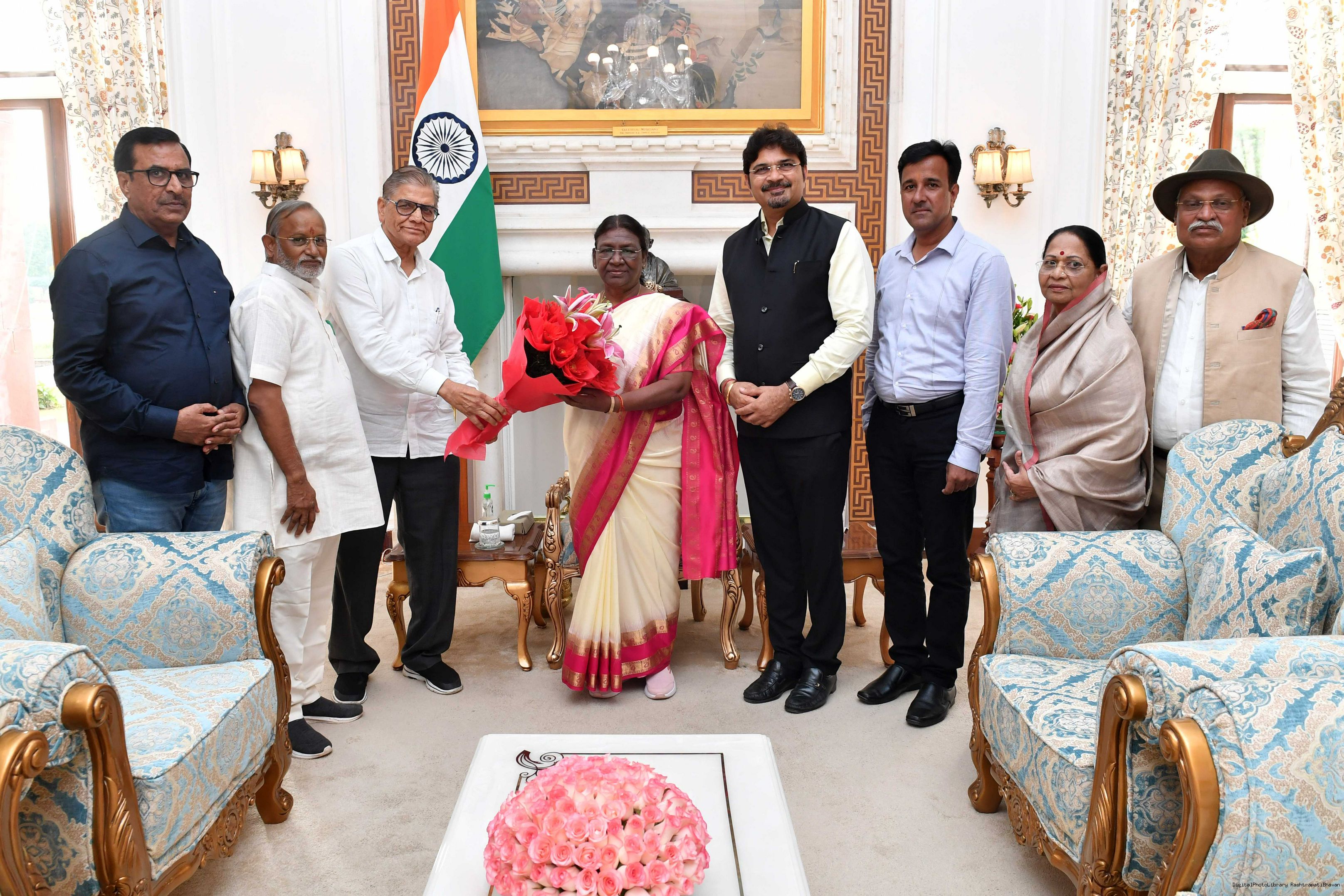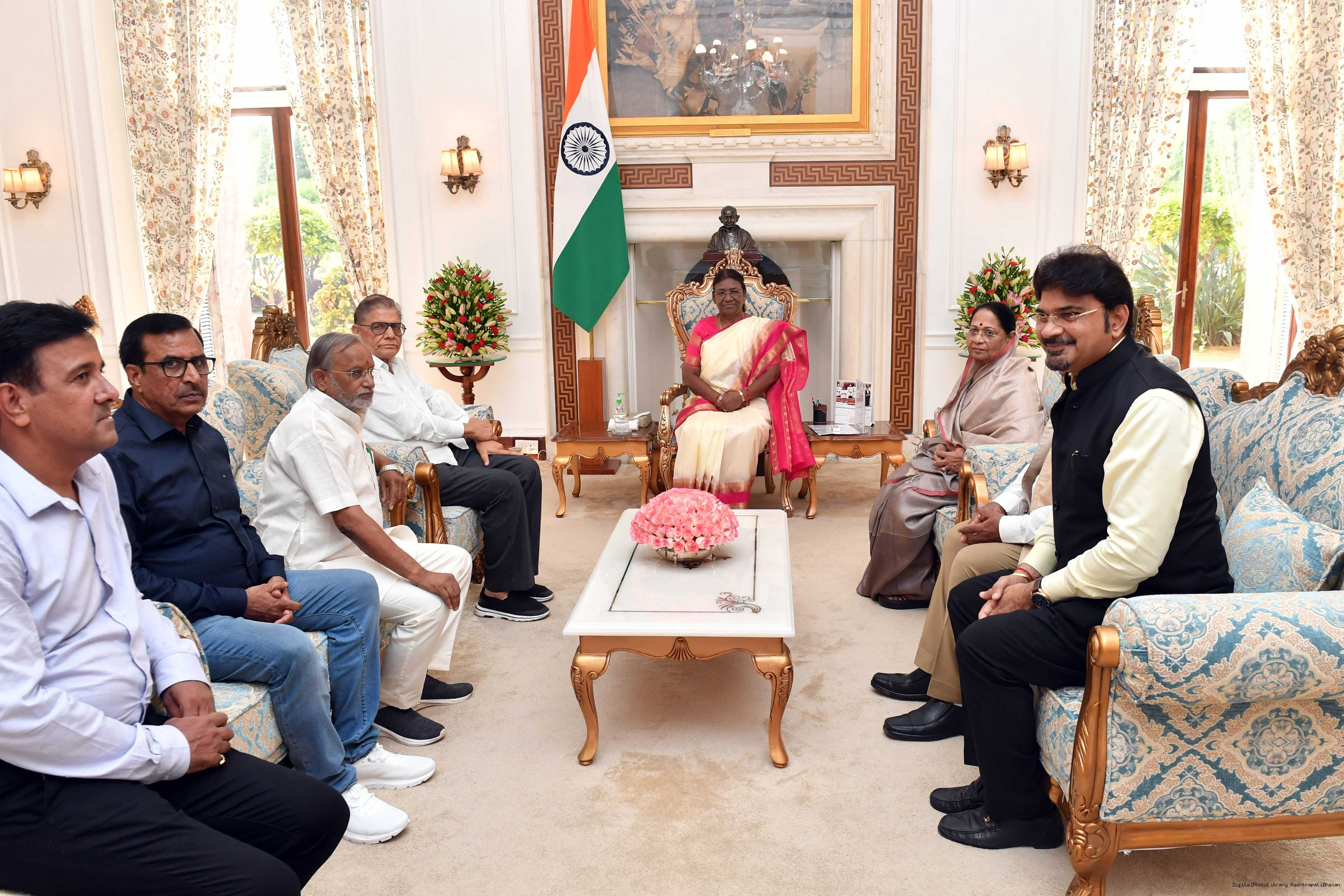 | Caption: | Shri Jagdish Mishra, National Vice President, Vipra Foundation along with others meeting with the President of India, Smt. Droupadi Murmu at Rashtrapati Bhavan on September 14, 2023. |