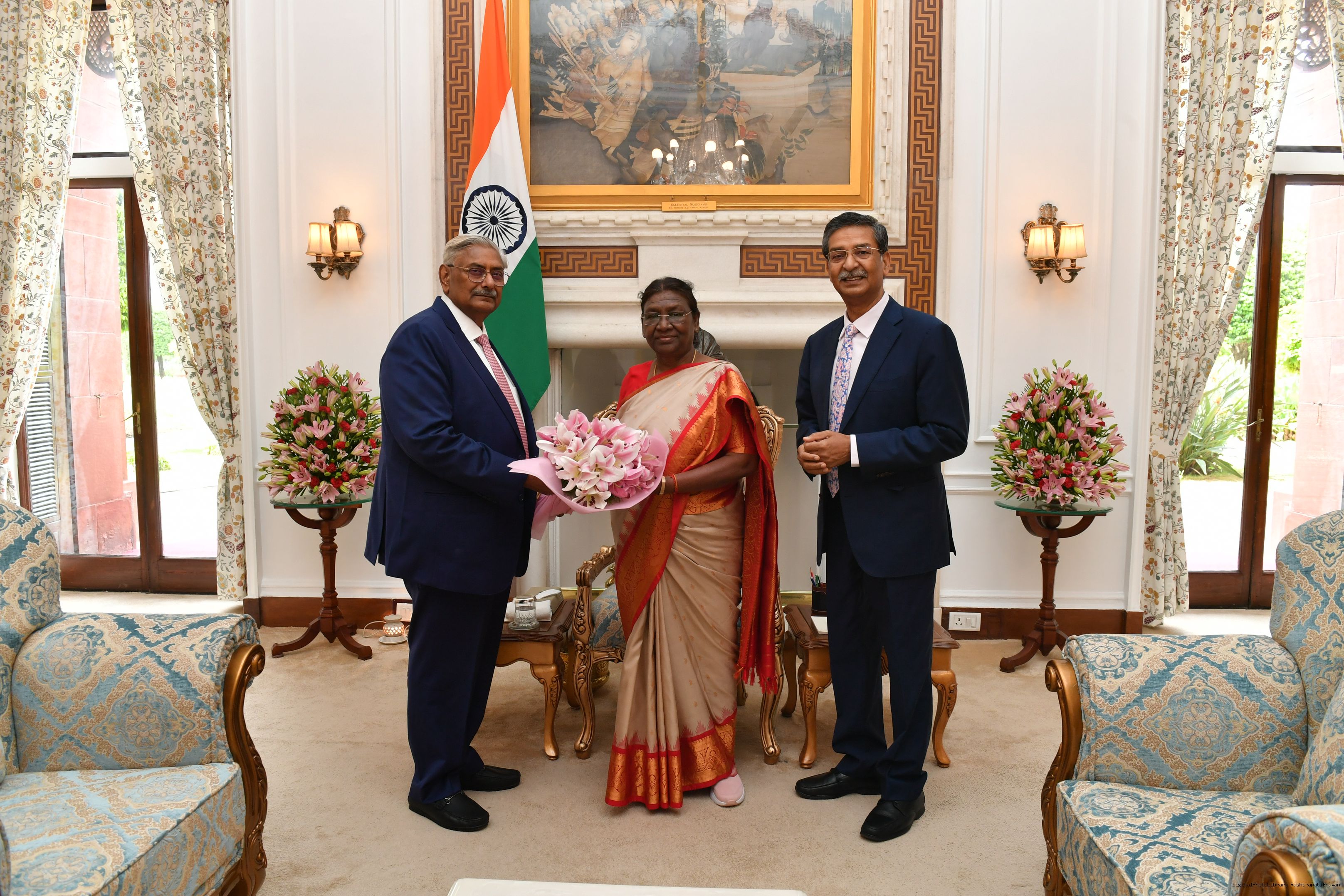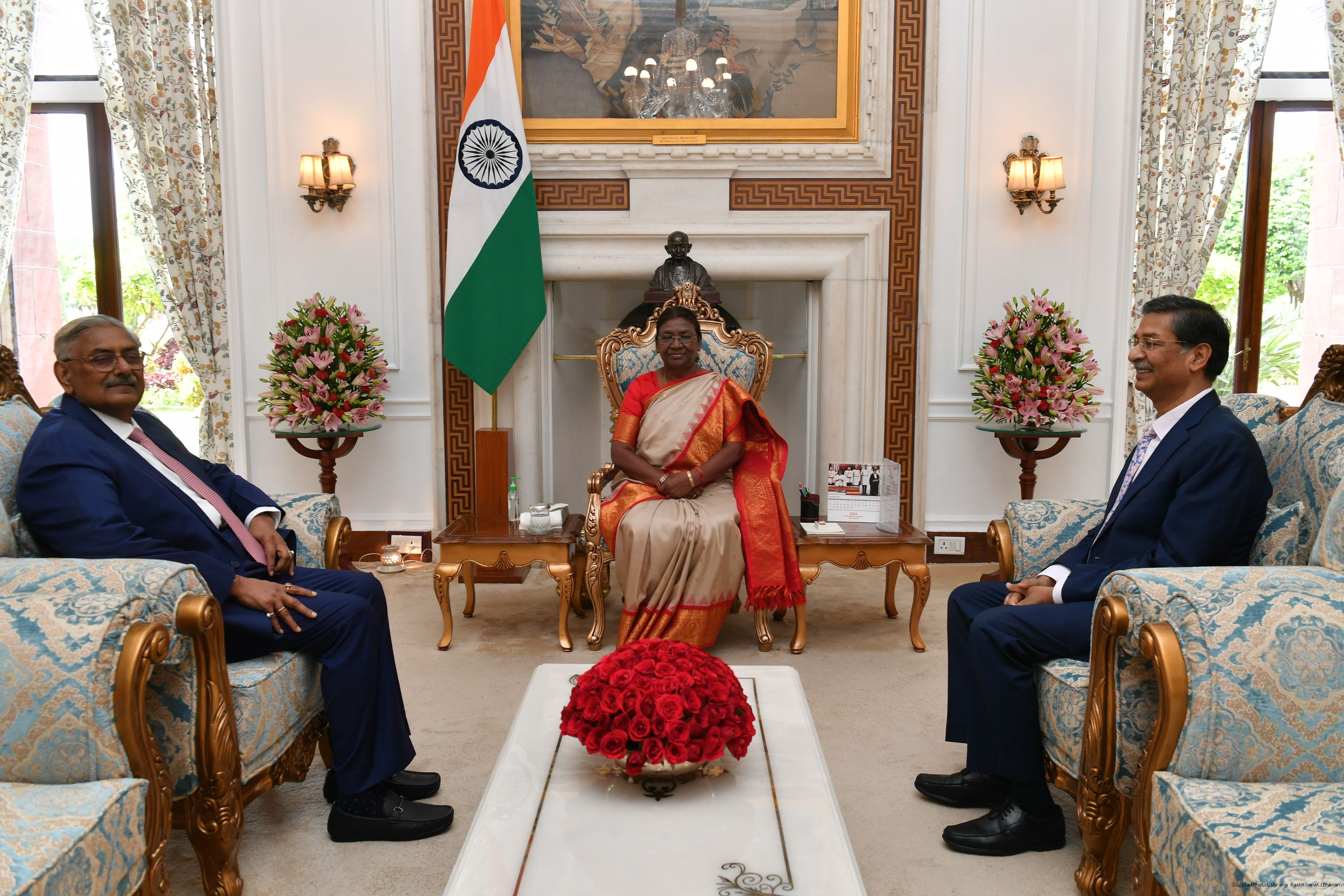 | Caption: | Justice Shri Arun Kumar Mishra, Chairperson, NHRC along with others meeting with the President of India, Smt. Droupadi Murmu at Rashtrapati Bhavan on September 15, 2023. |