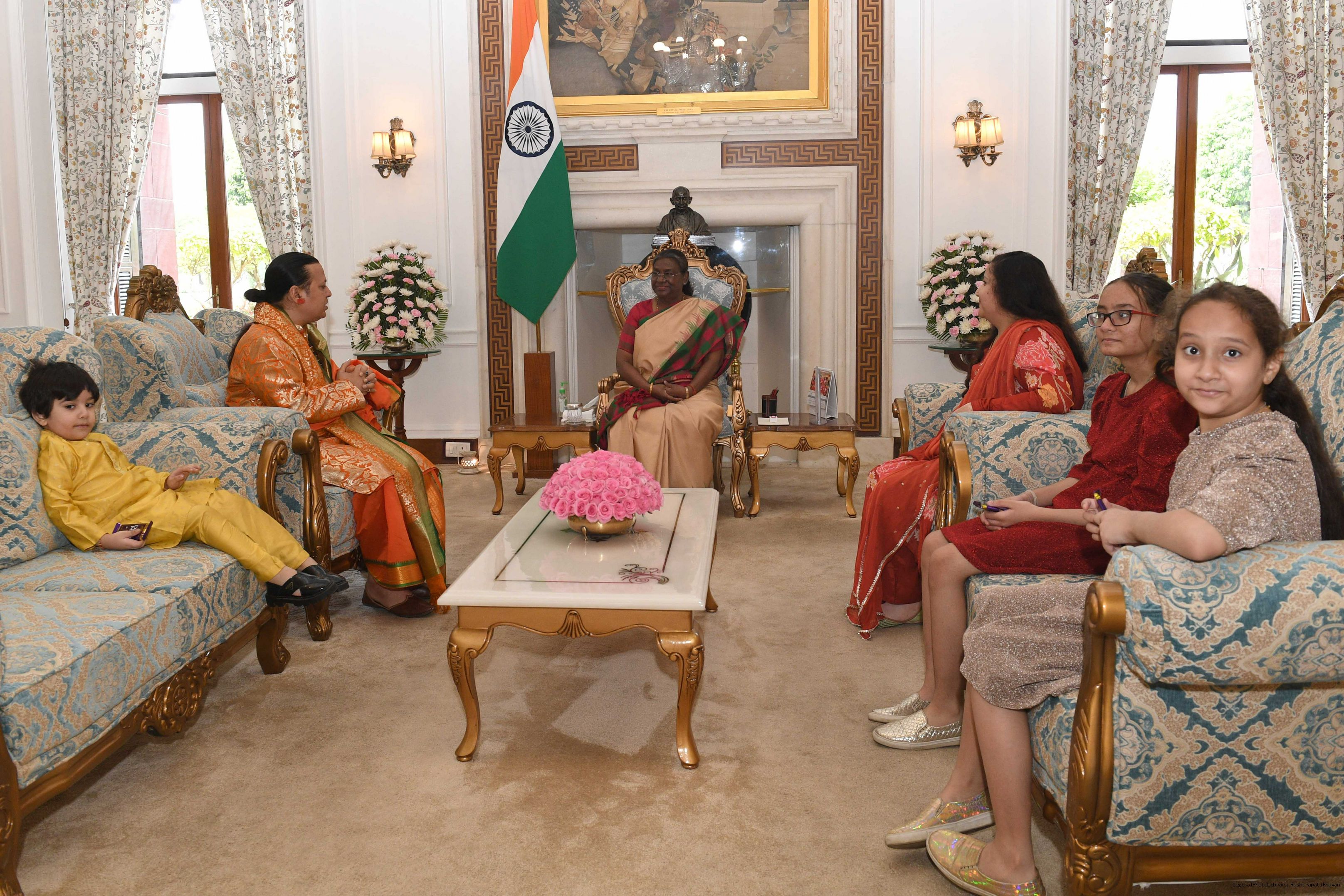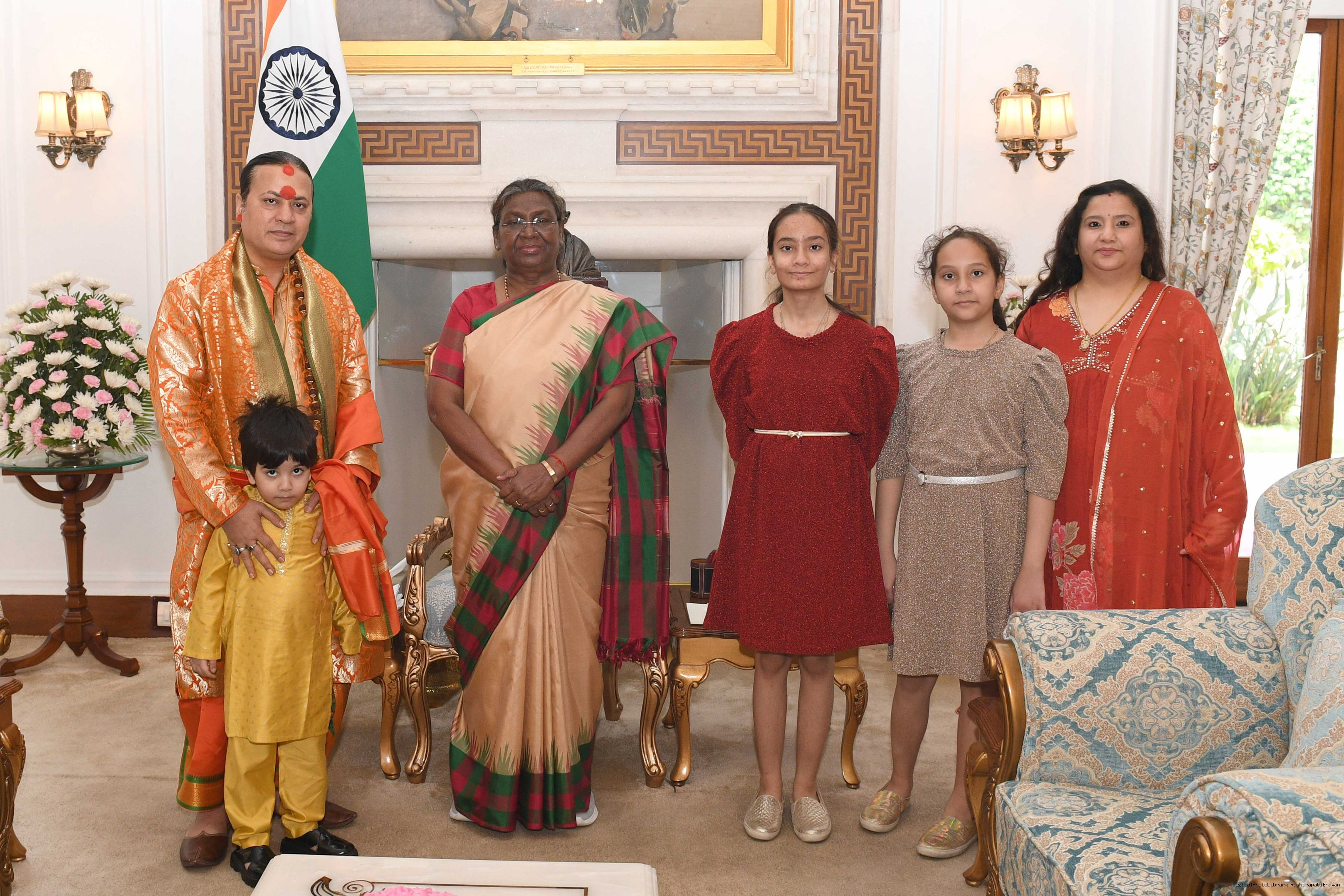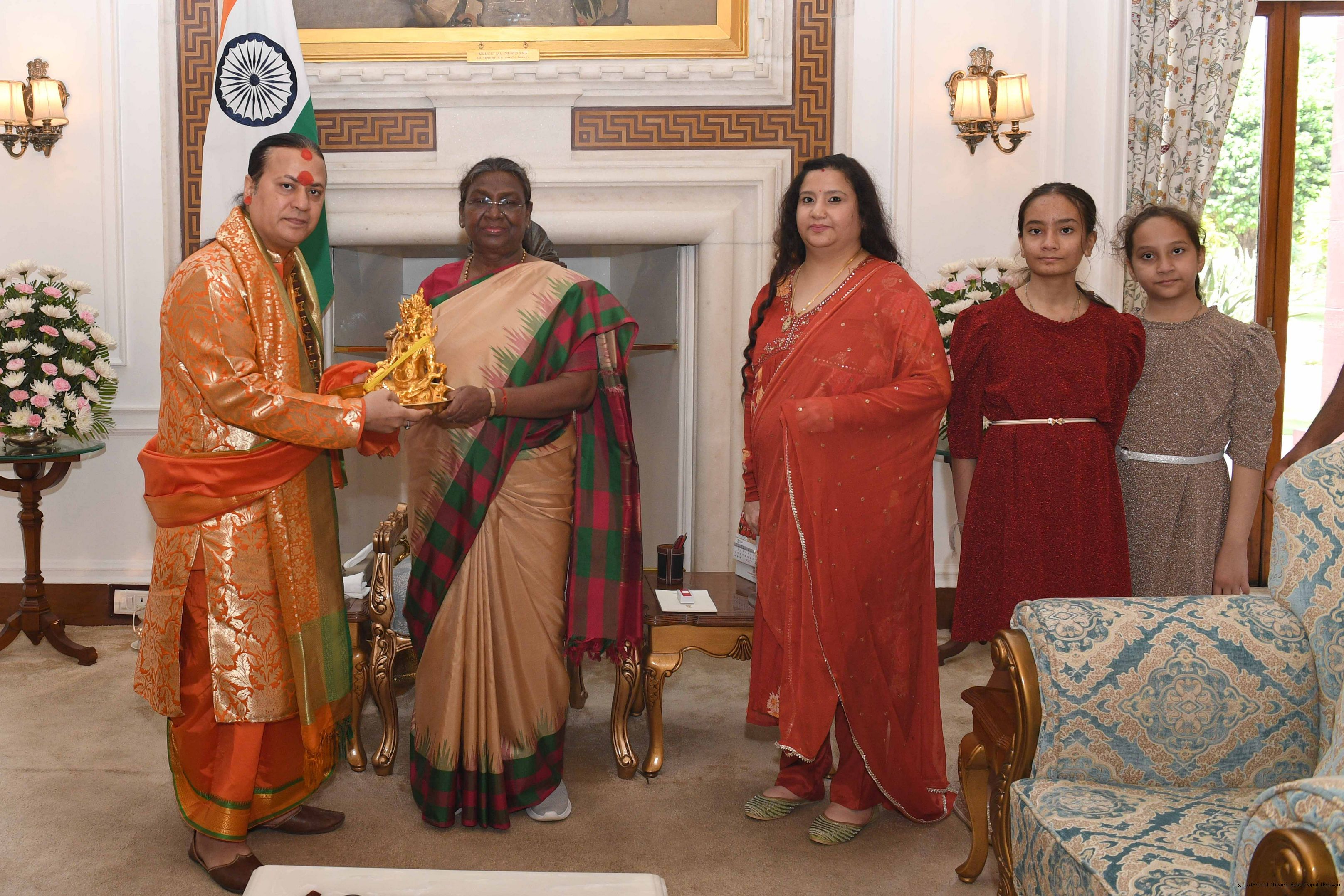 | Caption: | Acharya Shailesh Tiwary, Vedic Astrologer and Sadhak along with others meeting with the President of India Smt Droupadi Murmu at Rashtrapati Bhavan on April 16, 2024. |