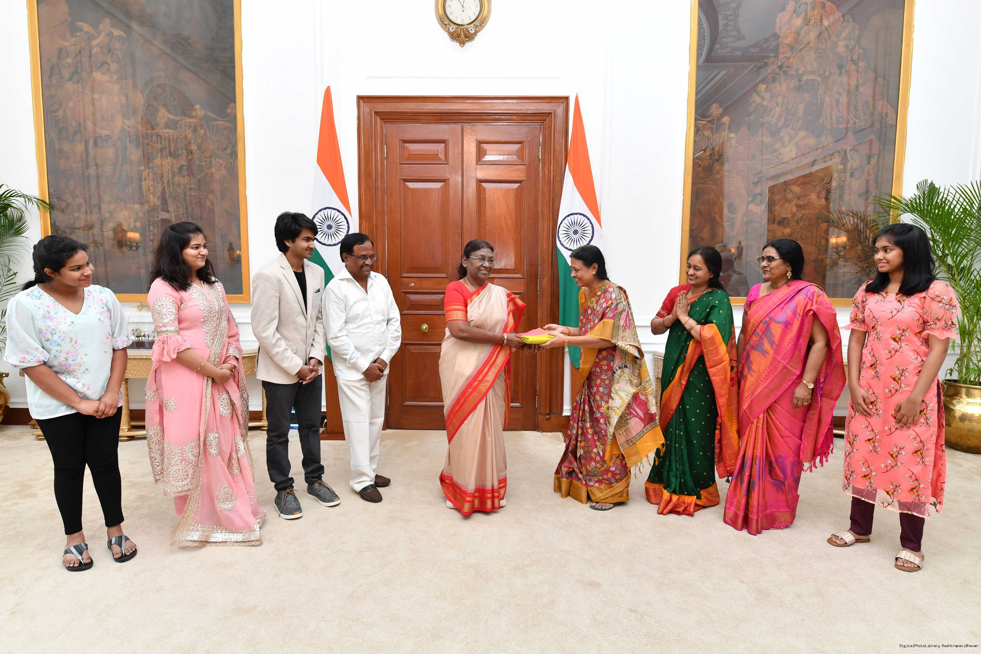 | Caption: | Shri Vijaya Raghava Reddy along with others meeting with the President of India, Smt. Droupadi Murmu at Rashtrapati Bhavan on September 18, 2023. |