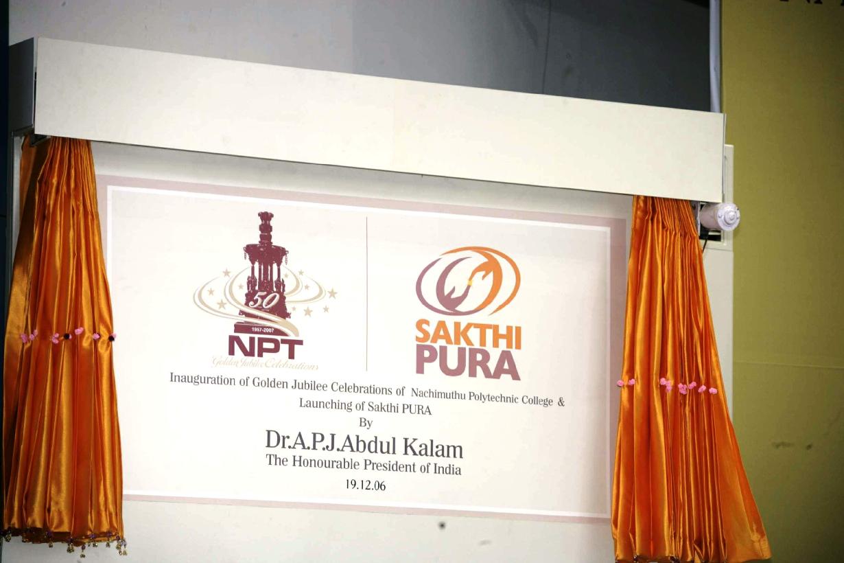 | Caption: | The President of India, Dr A P J Abdul Kalam inaugurating the Golden Jubilee Celebrations of Nachimuthu Polytechnic College at Pollachi and launched the Sakthi Pura at Pollachi in Tamil Nadu on Dec 19, 2006 |