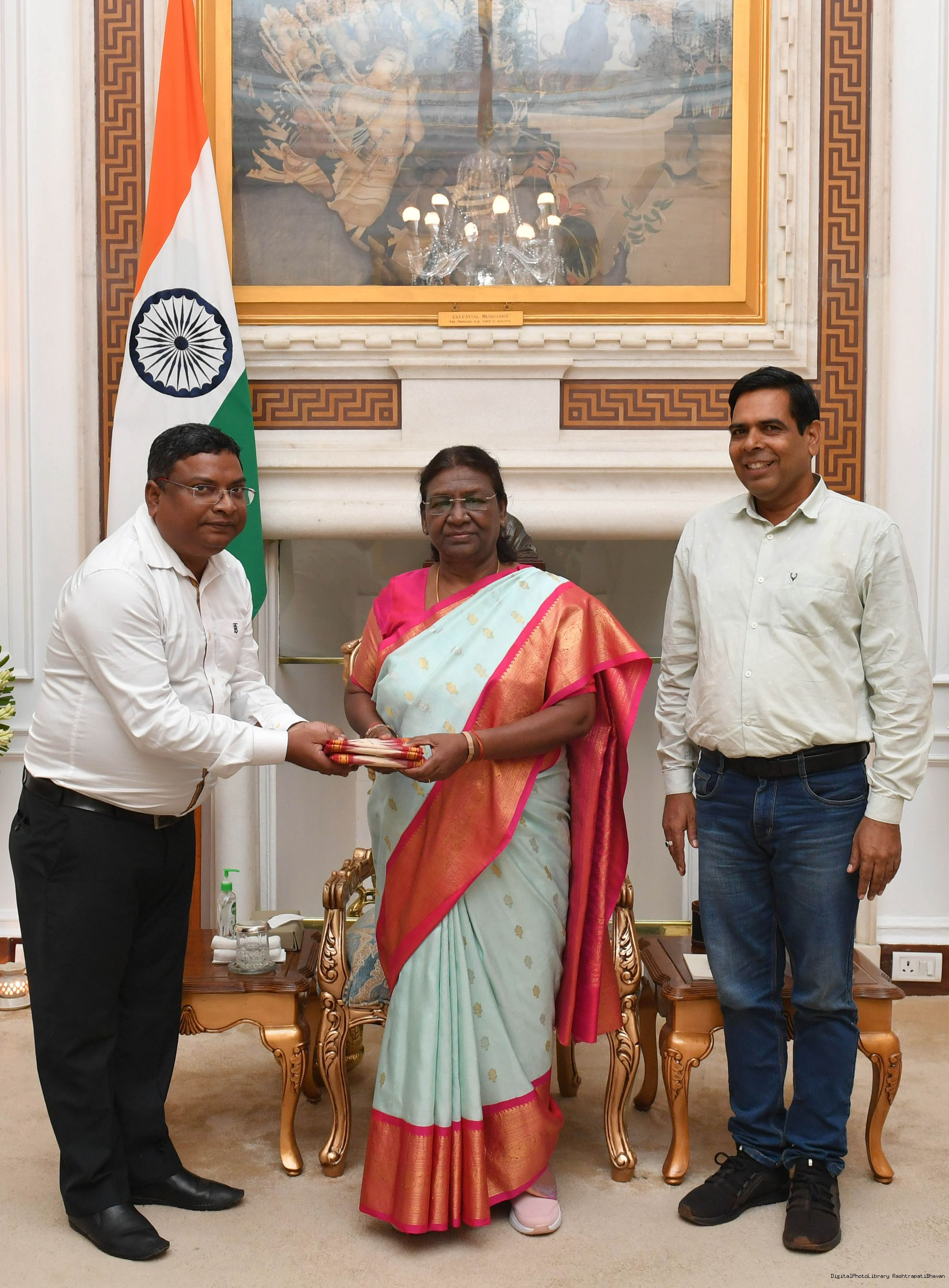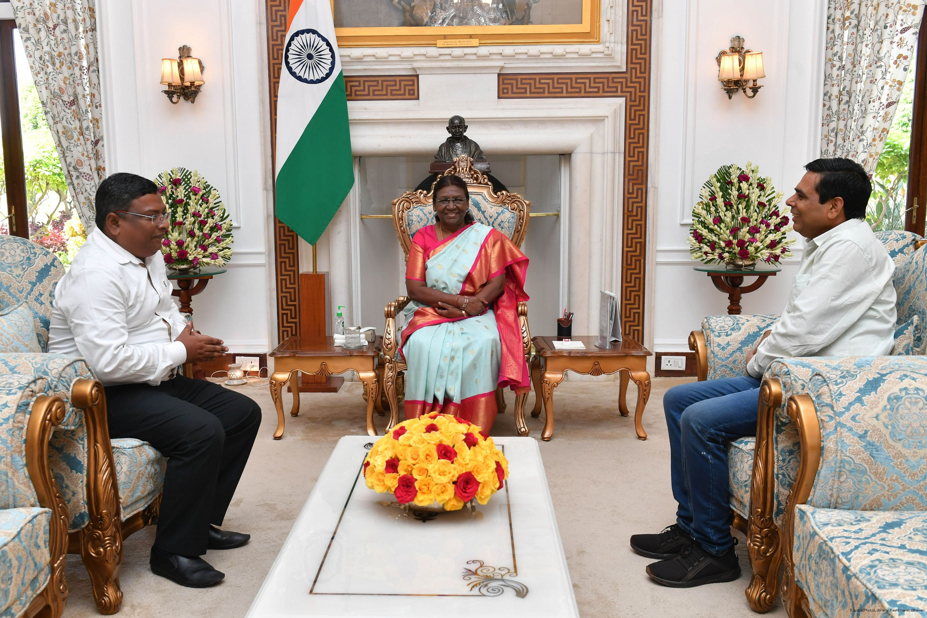 | Caption: | Shri Sushil Kumar C.R. Soren, Hensda, District Mayurbhanj aling with others meeting with the President of India, Smt. Droupadi Murmu at Rashtrapati Bhavan on September 19, 2023. |