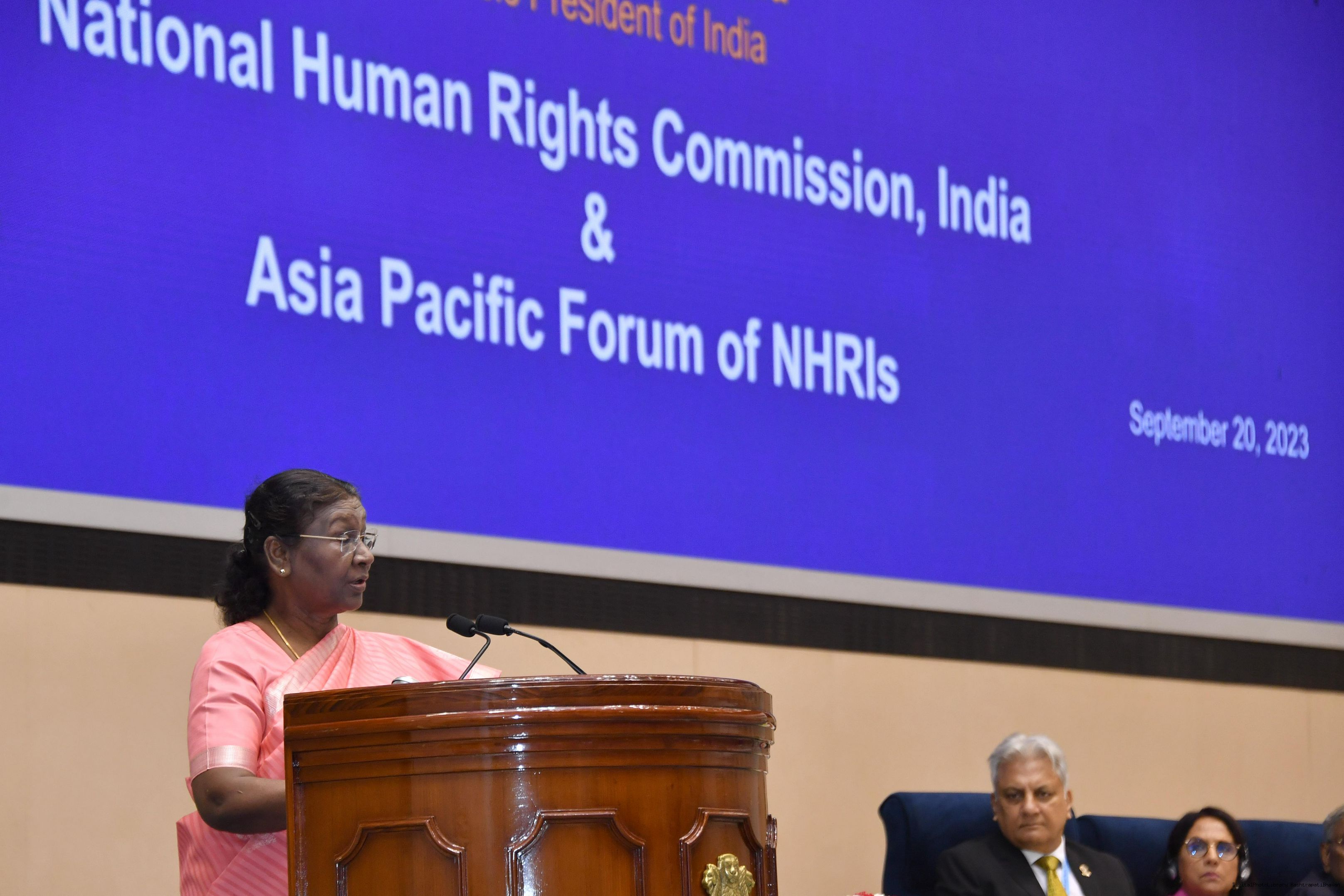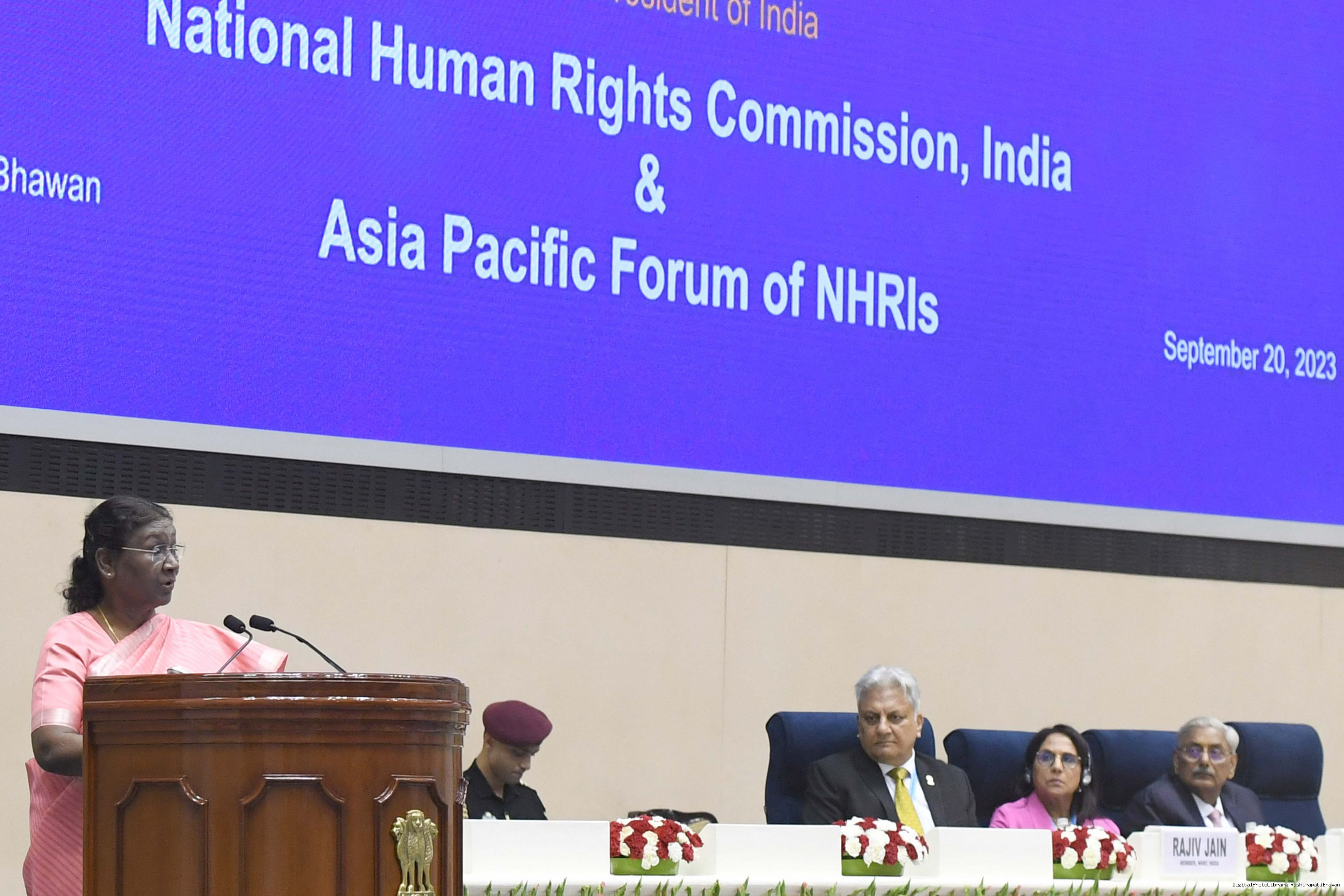 | Caption: | The President of India, Smt Droupadi Murmu inaugurated Annual General Meeting and Biennial Conference of the Asia Pacific Forum on Human Rights in New Delhi, on September 20, 2023. |