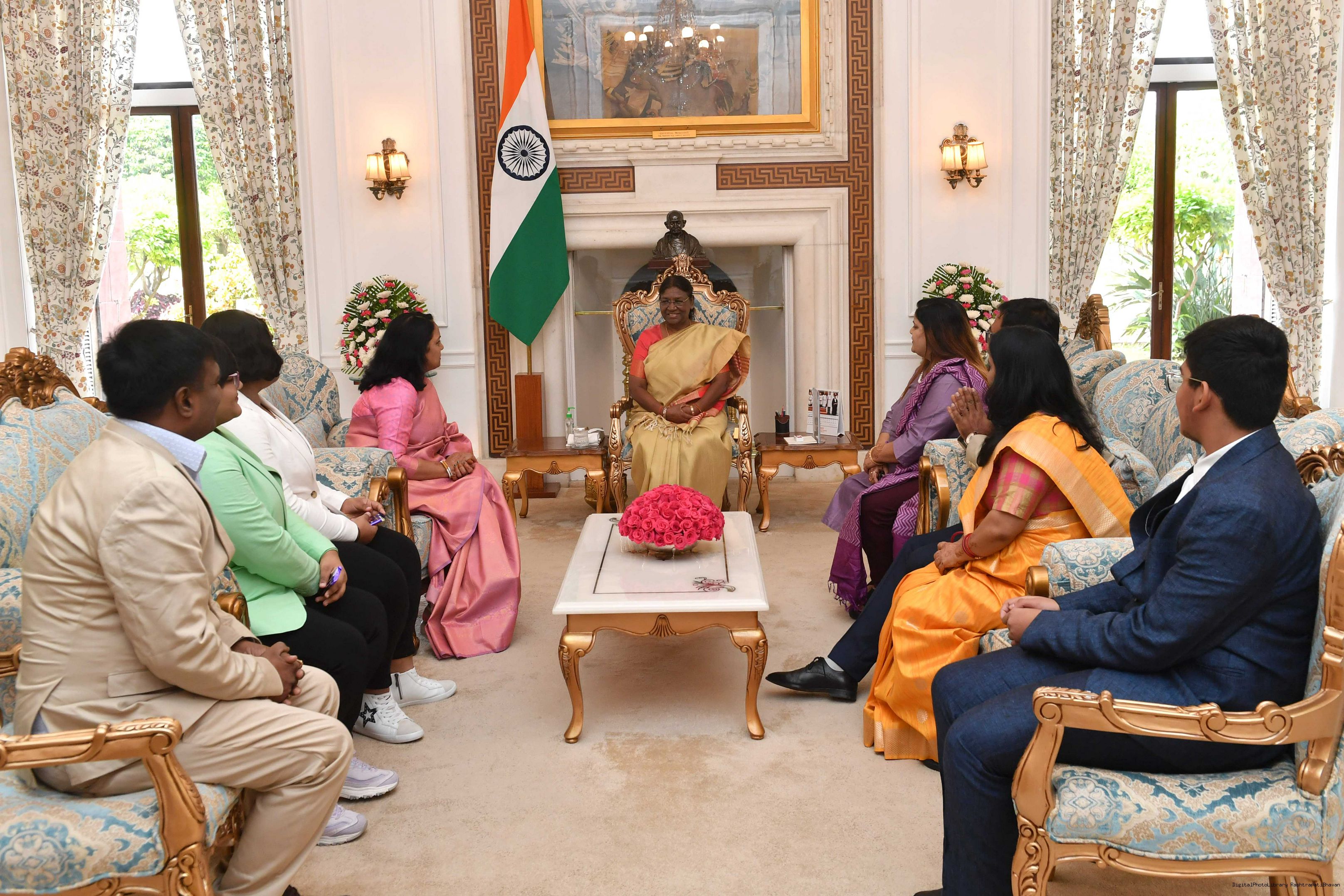 | Caption: | Smt. Sangita Singh along with others meeting with the President of India, Smt. Droupadi Murmu at Rashtrapati Bhavan on September 22, 2023. |
