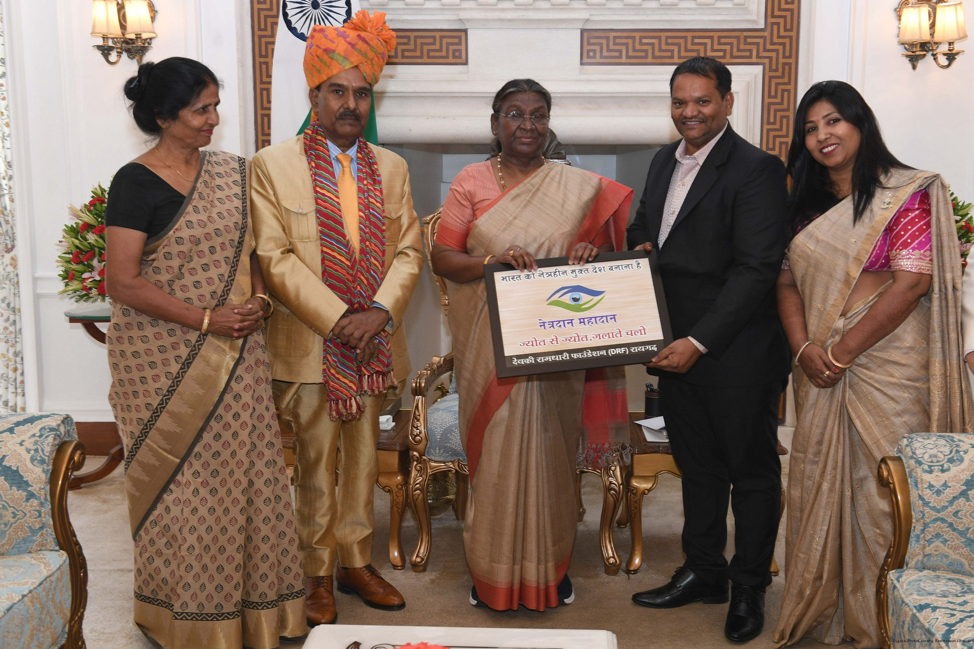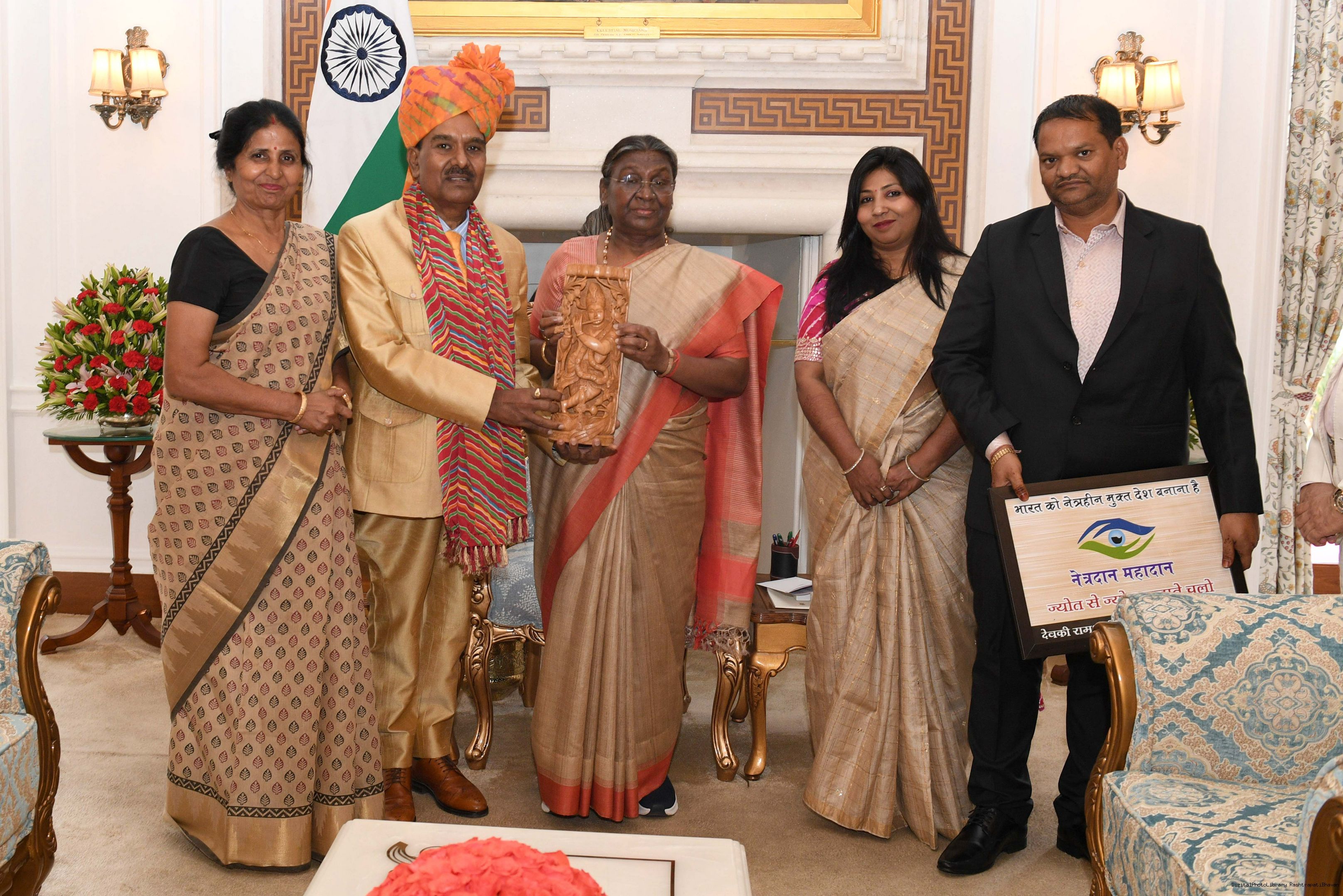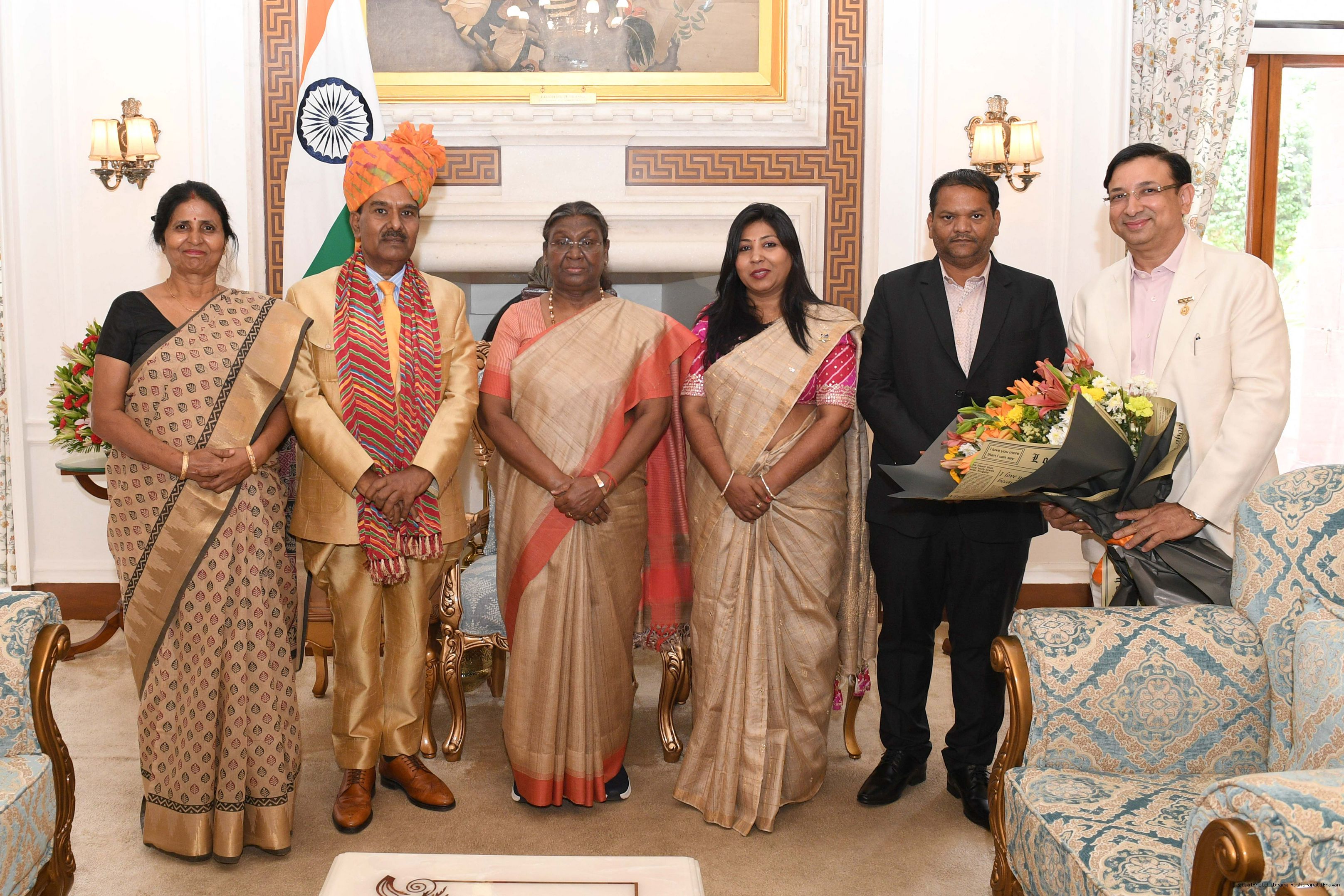 | Caption: | Shri H.C. Ganeshiya from Jaipur and Smt. Mithlesh Sharma along with others meeting with the Presiddnt of India Smt. Droupadi Murmu at Rashtrapati Bhavan on May 03, 2024. |