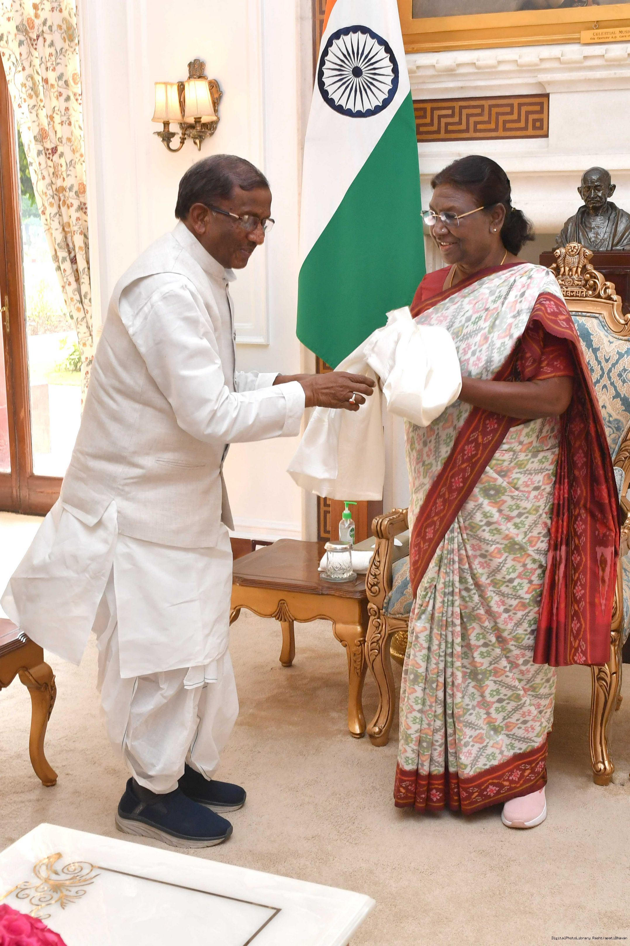 | Caption: | The Governor of Sikkim ,Shri Lakshman Prasad Acharya called on the President of India, Smt Droupadi Murmu at Rashtrapati Bhavan on September 22, 2023. |