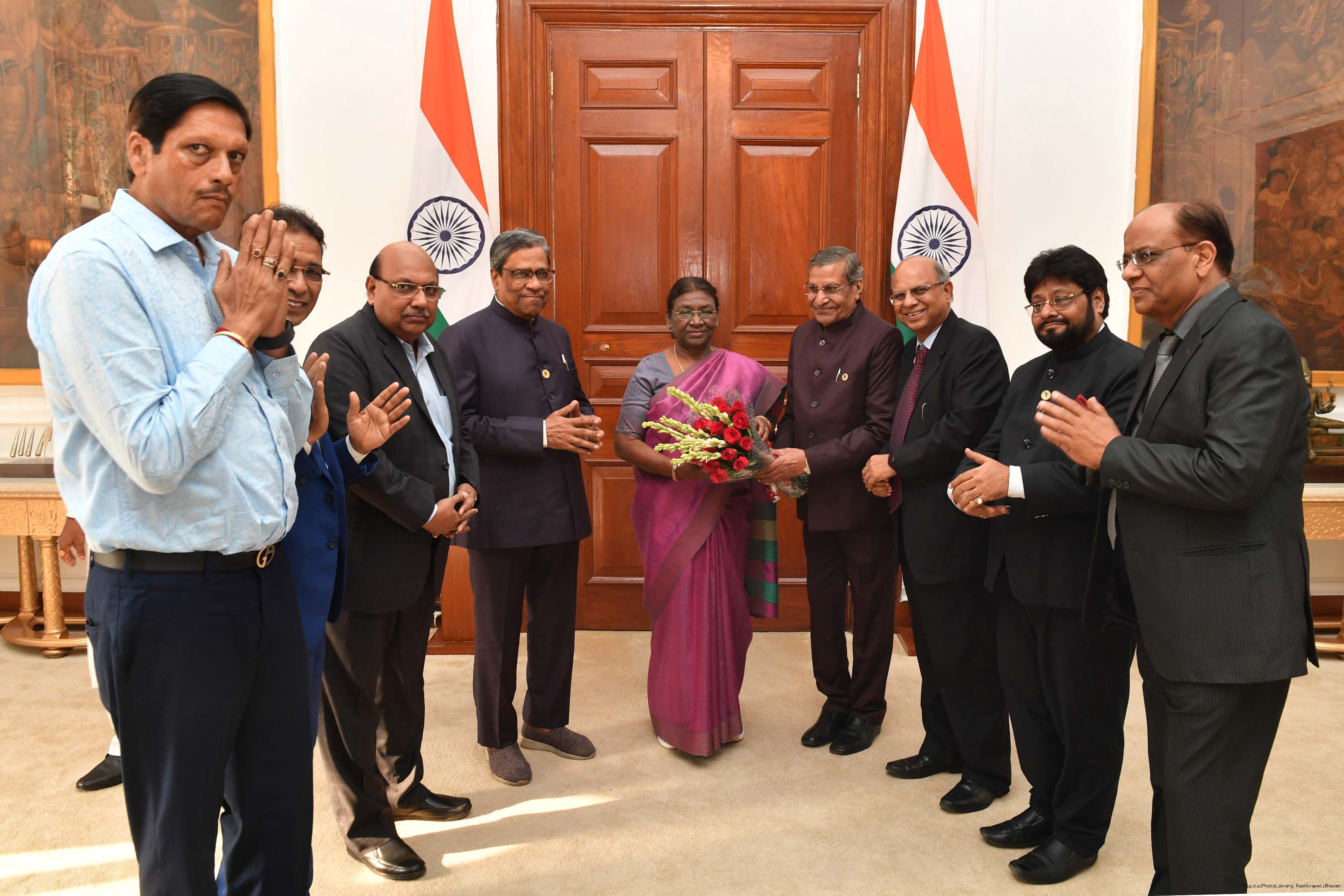 | Caption: | Shri Shiv Kumar Lohia, National President, All India Marwari Federation along with others meeting with the President of India, Smt. Droupadi Murmu at Rashtrapati Bhavan on September 26, 2023. |