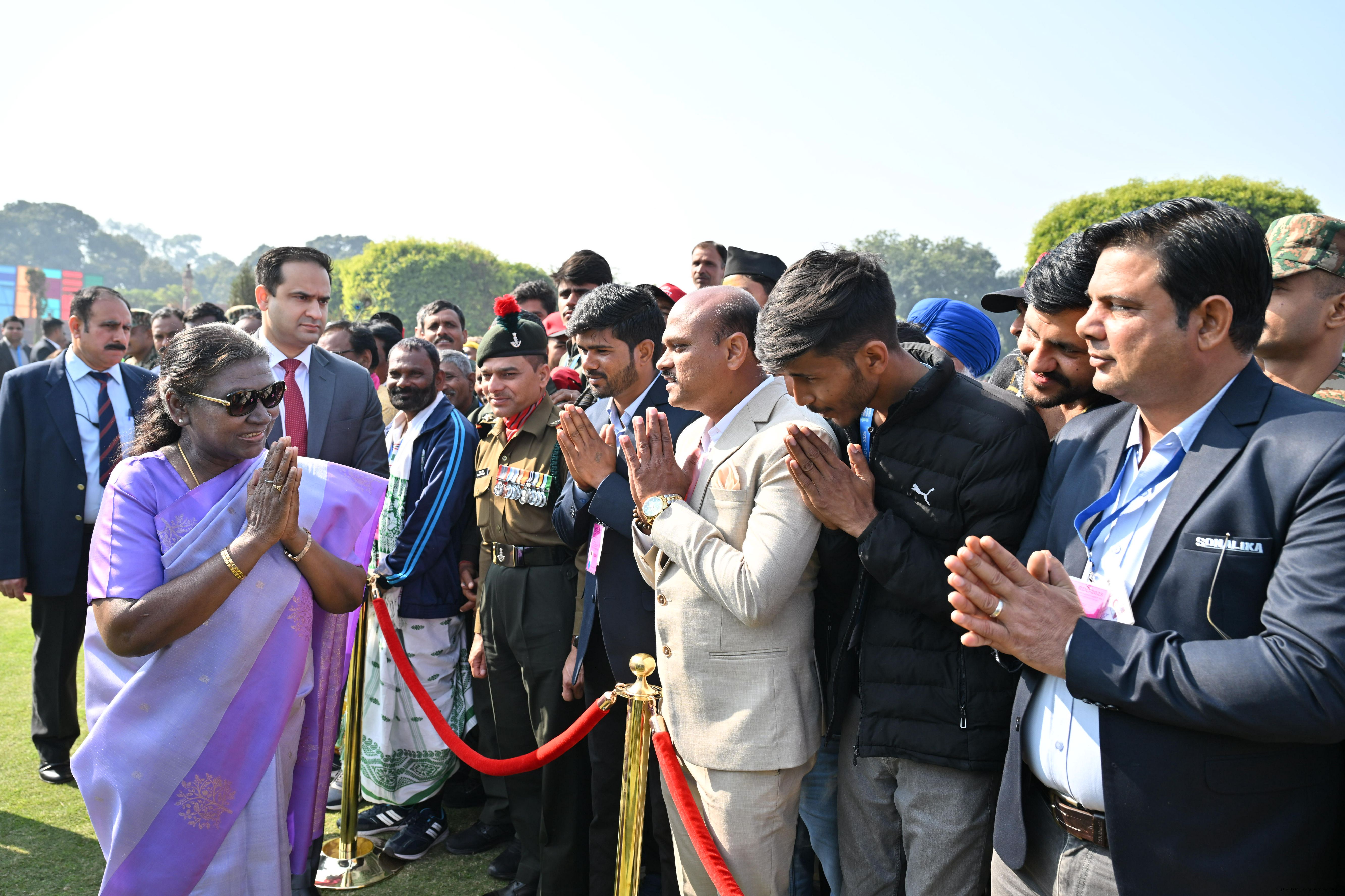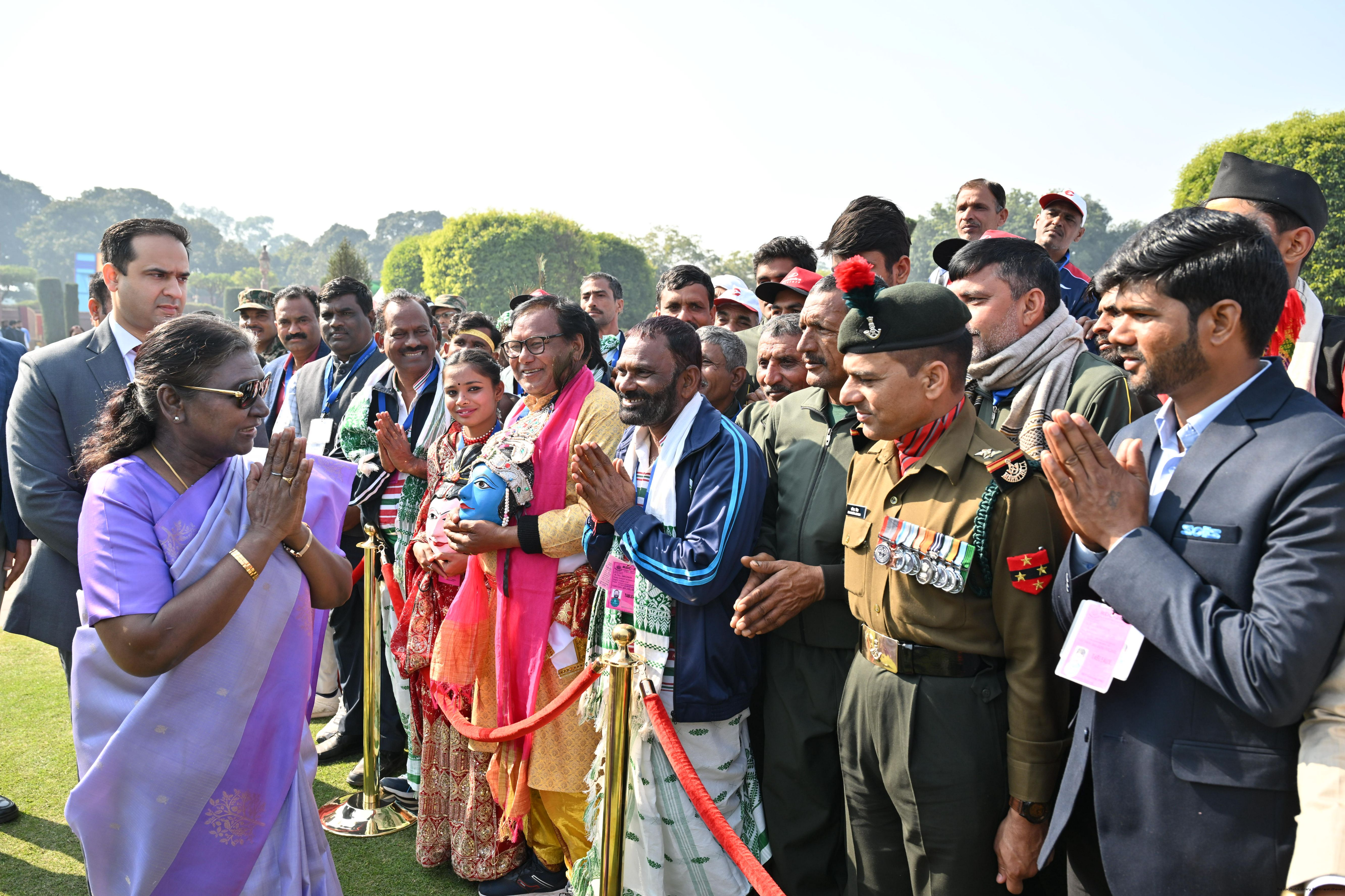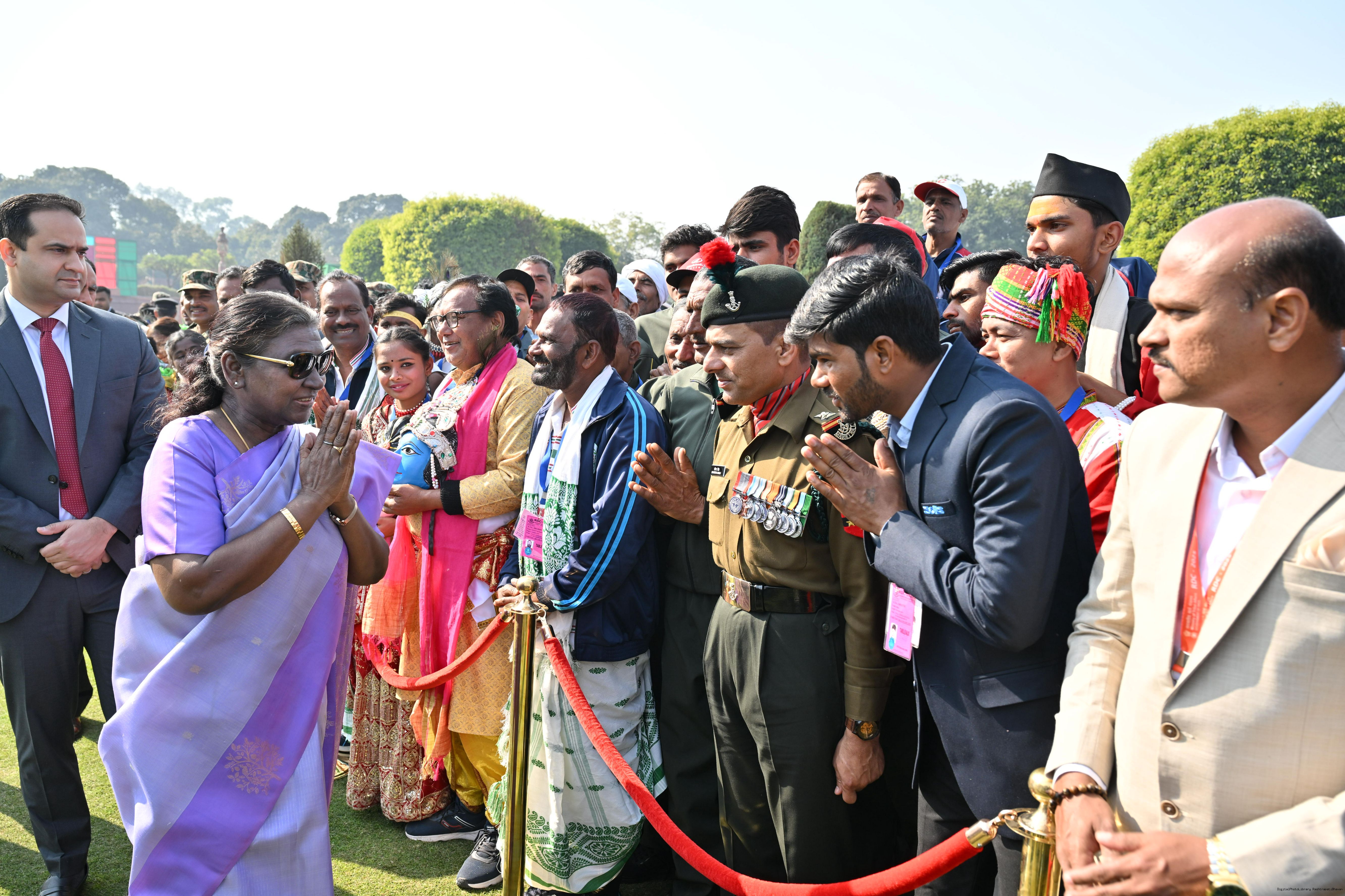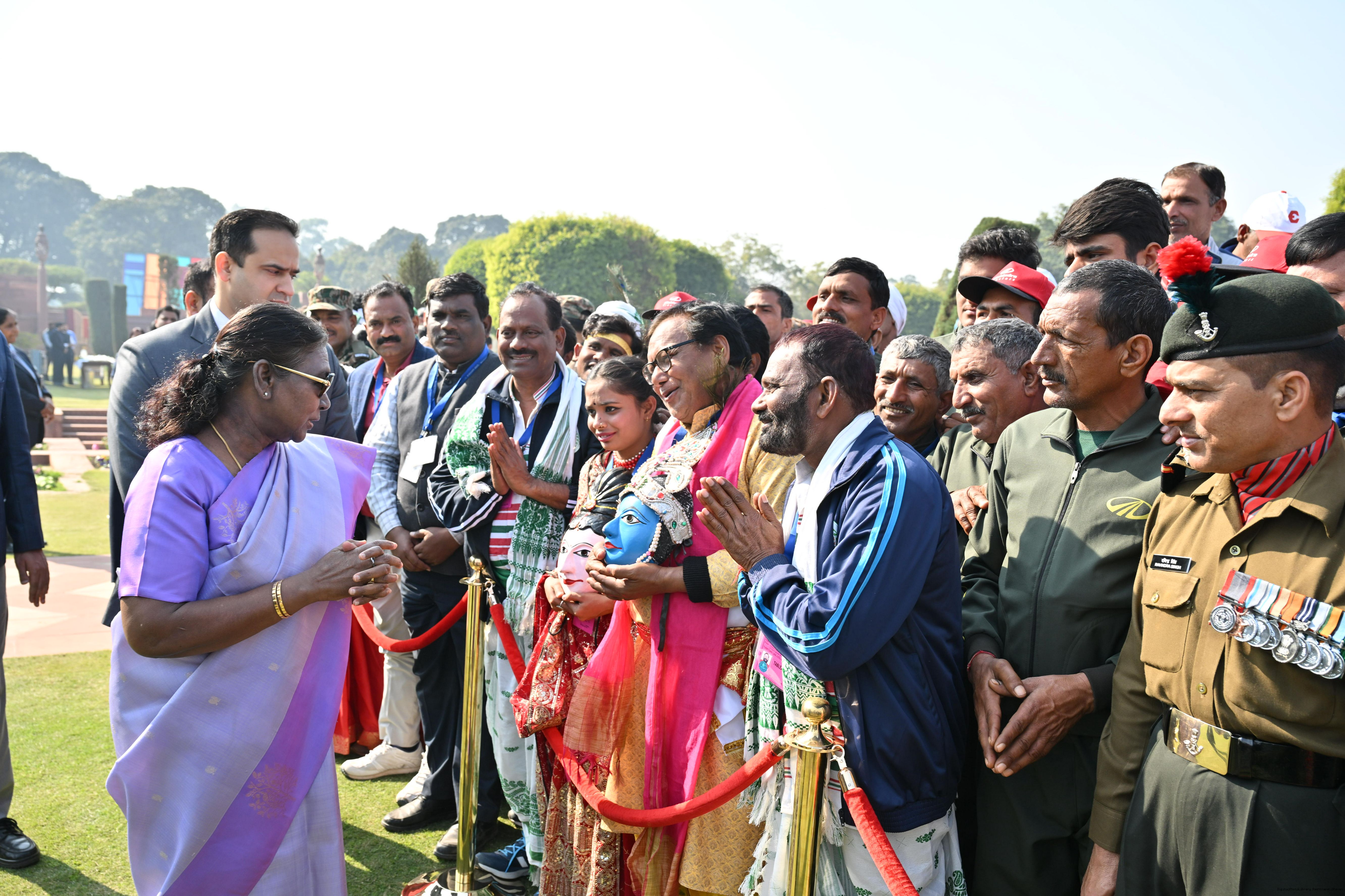 | Category: | The President met and posing a group photographs tribal guests, tableaux artistes and tractor drivers, NSS volunteers and NCC cadets, officials 28-01-2025 |