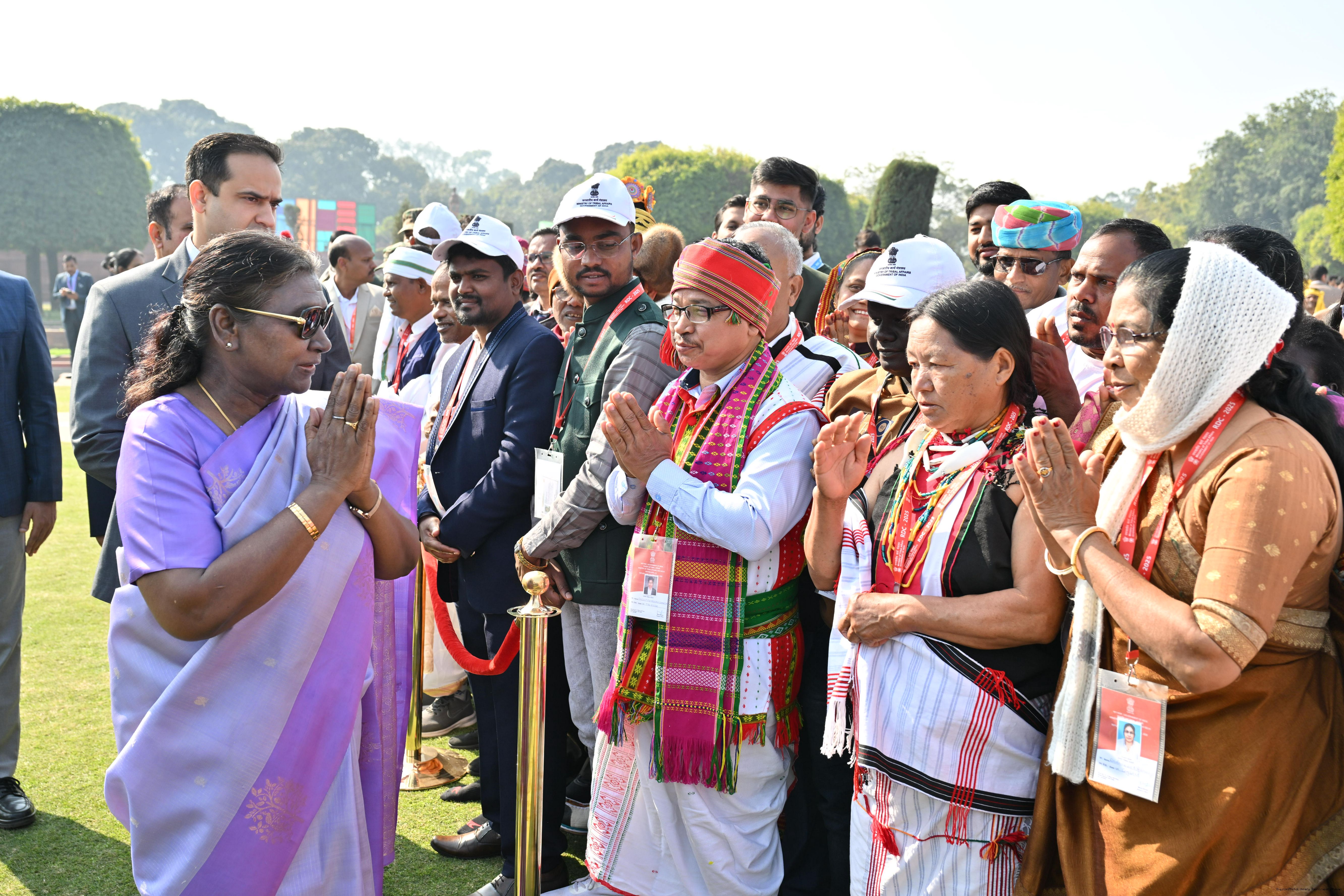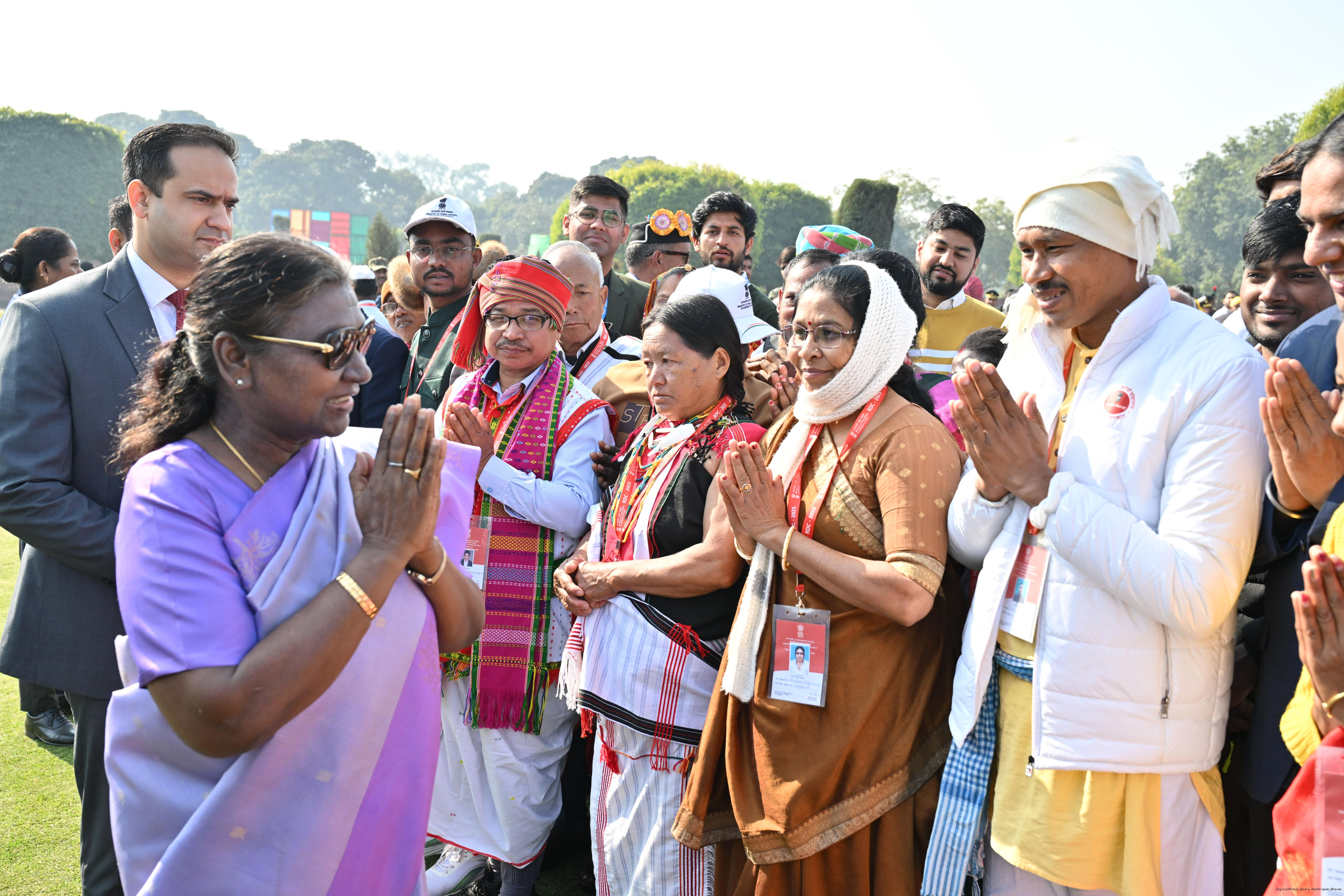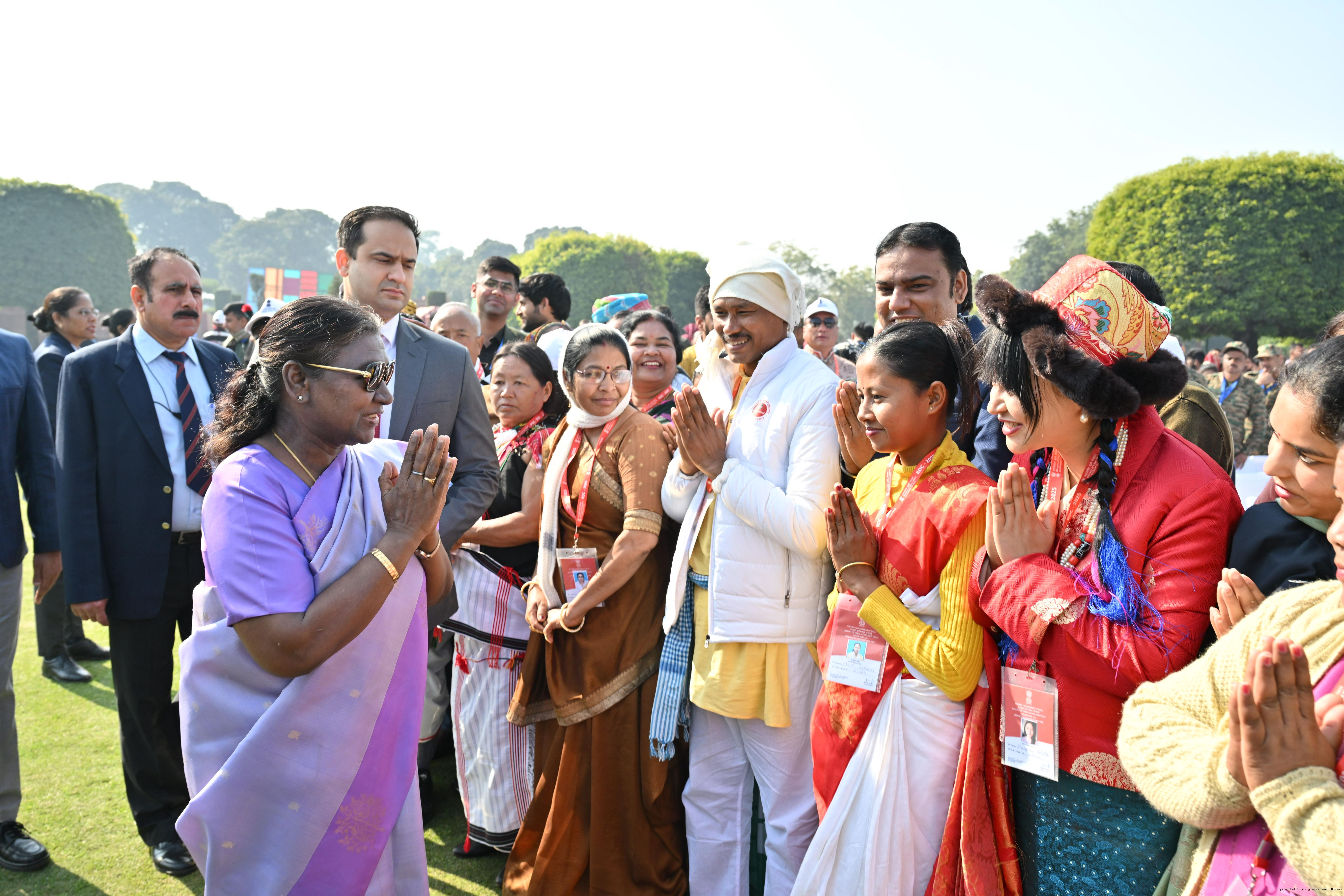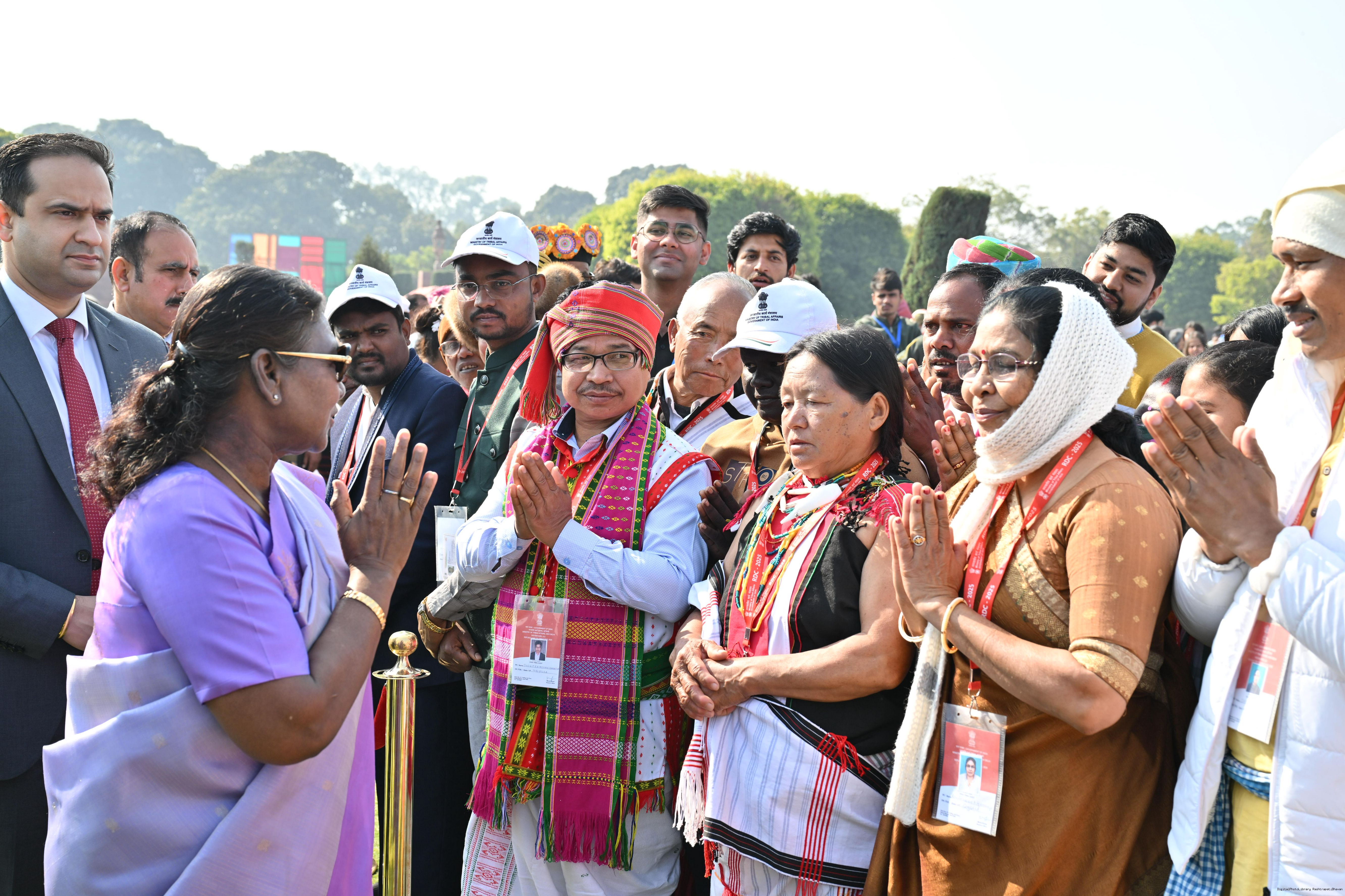 | Category: | The President met and posing a group photographs tribal guests, tableaux artistes and tractor drivers, NSS volunteers and NCC cadets, officials 28-01-2025 |