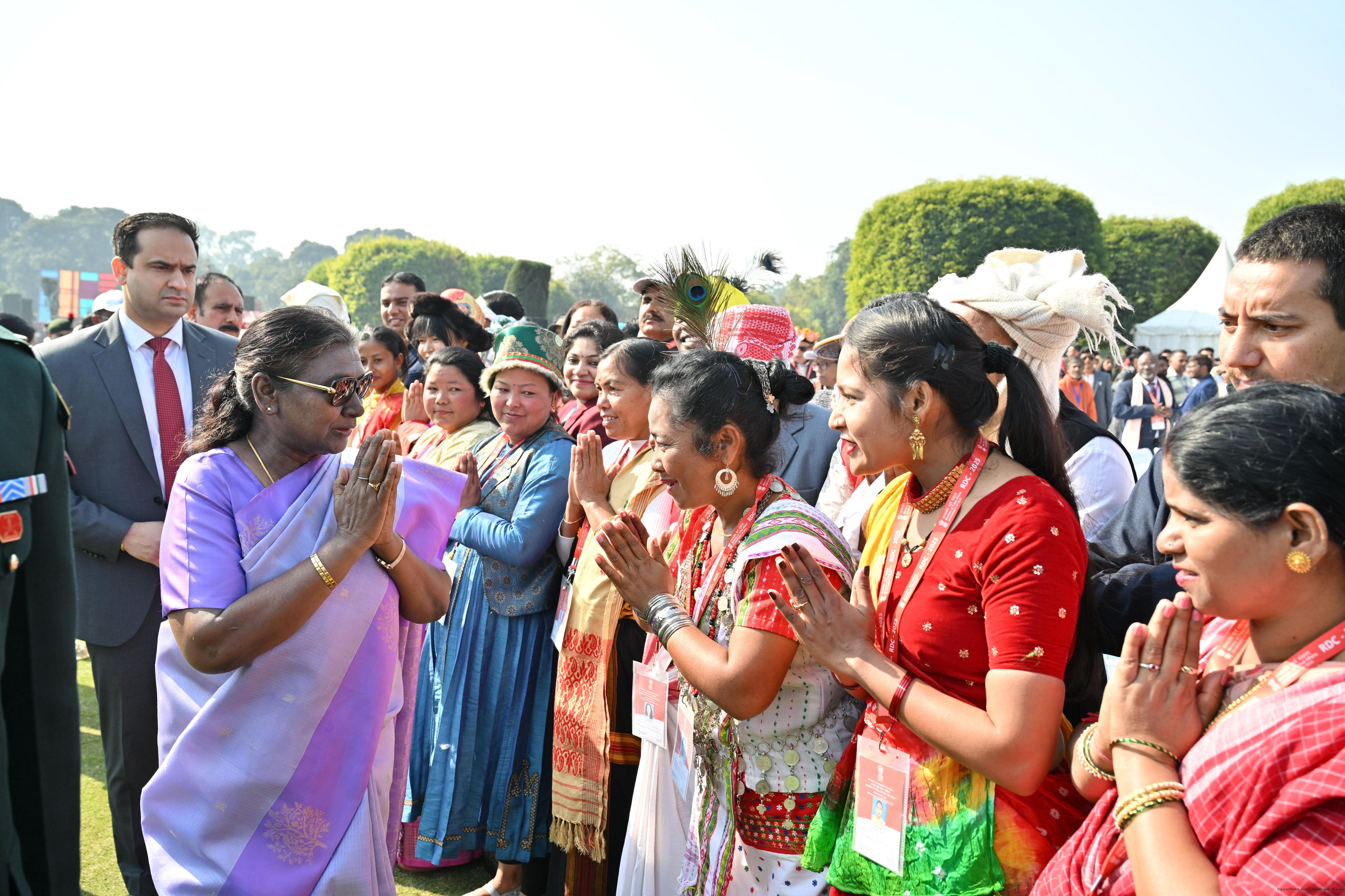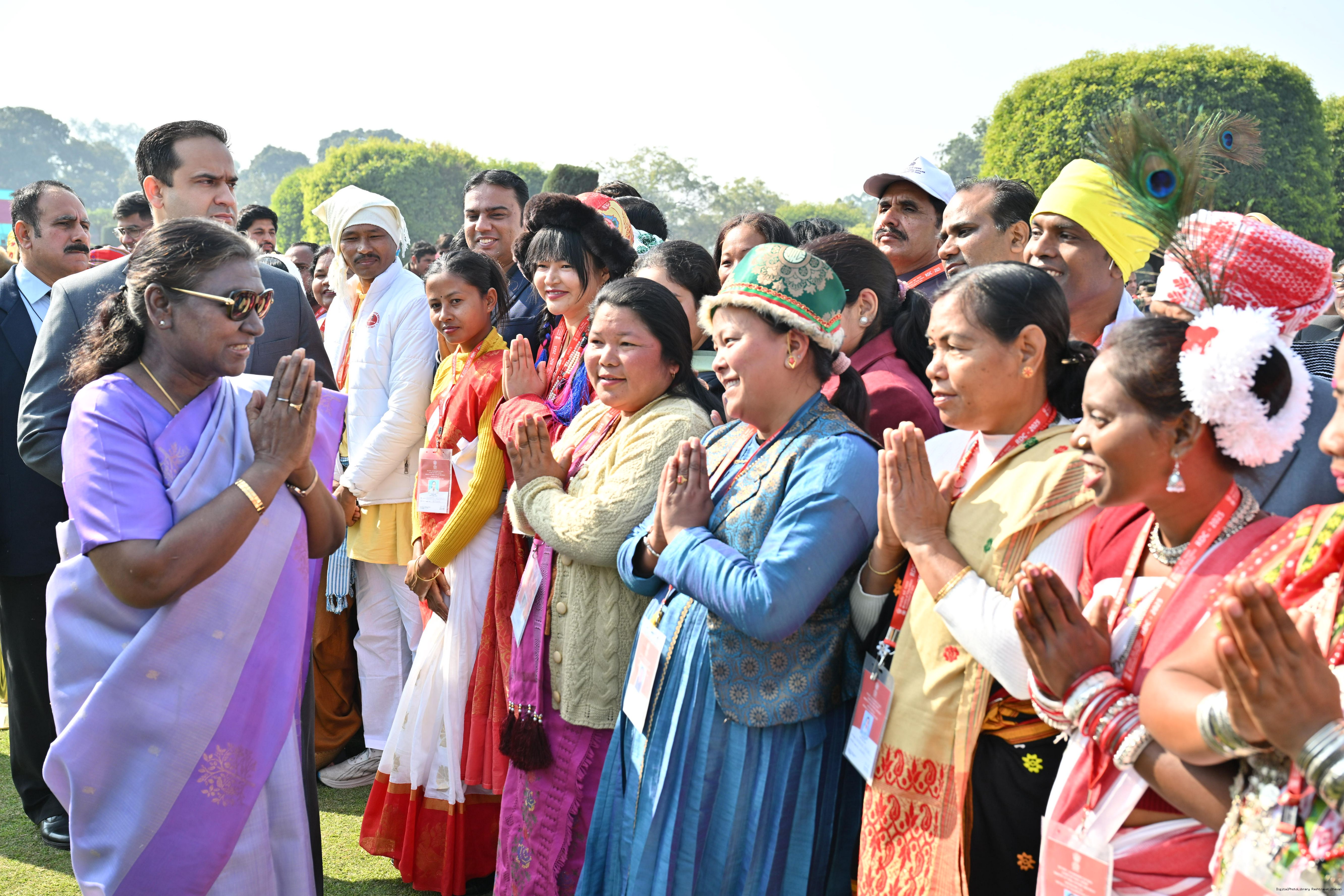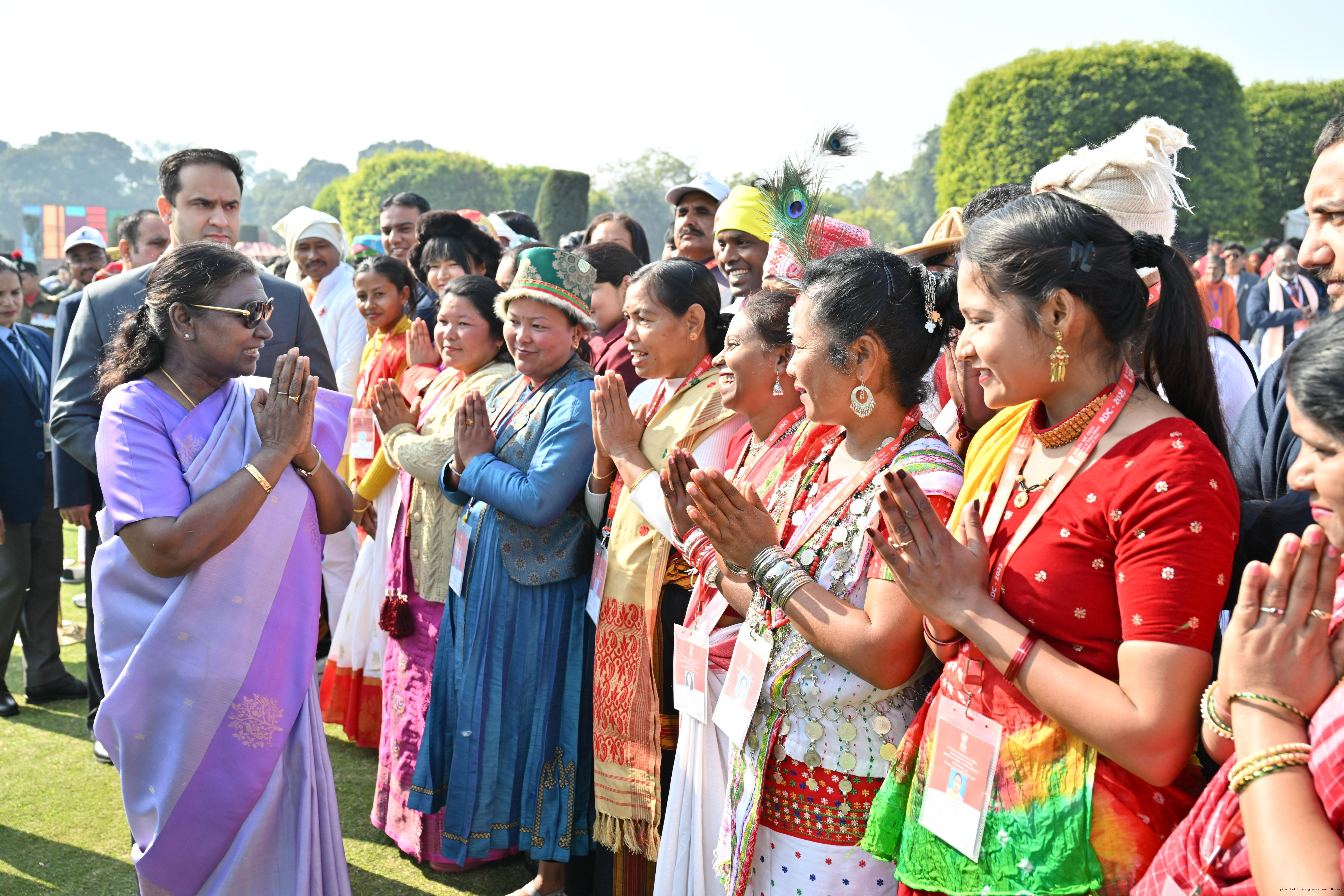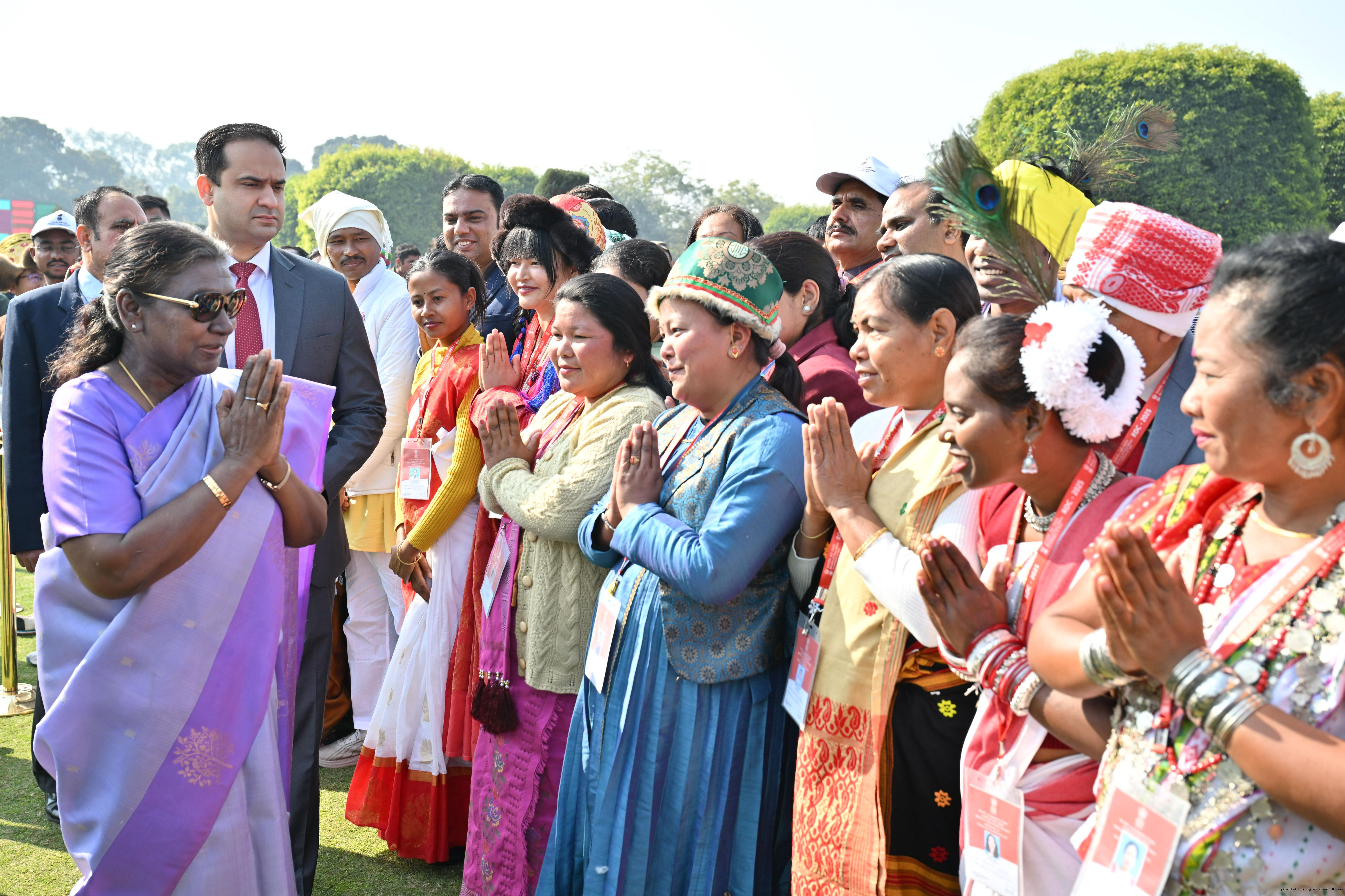 | Category: | The President met and posing a group photographs tribal guests, tableaux artistes and tractor drivers, NSS volunteers and NCC cadets, officials 28-01-2025 |