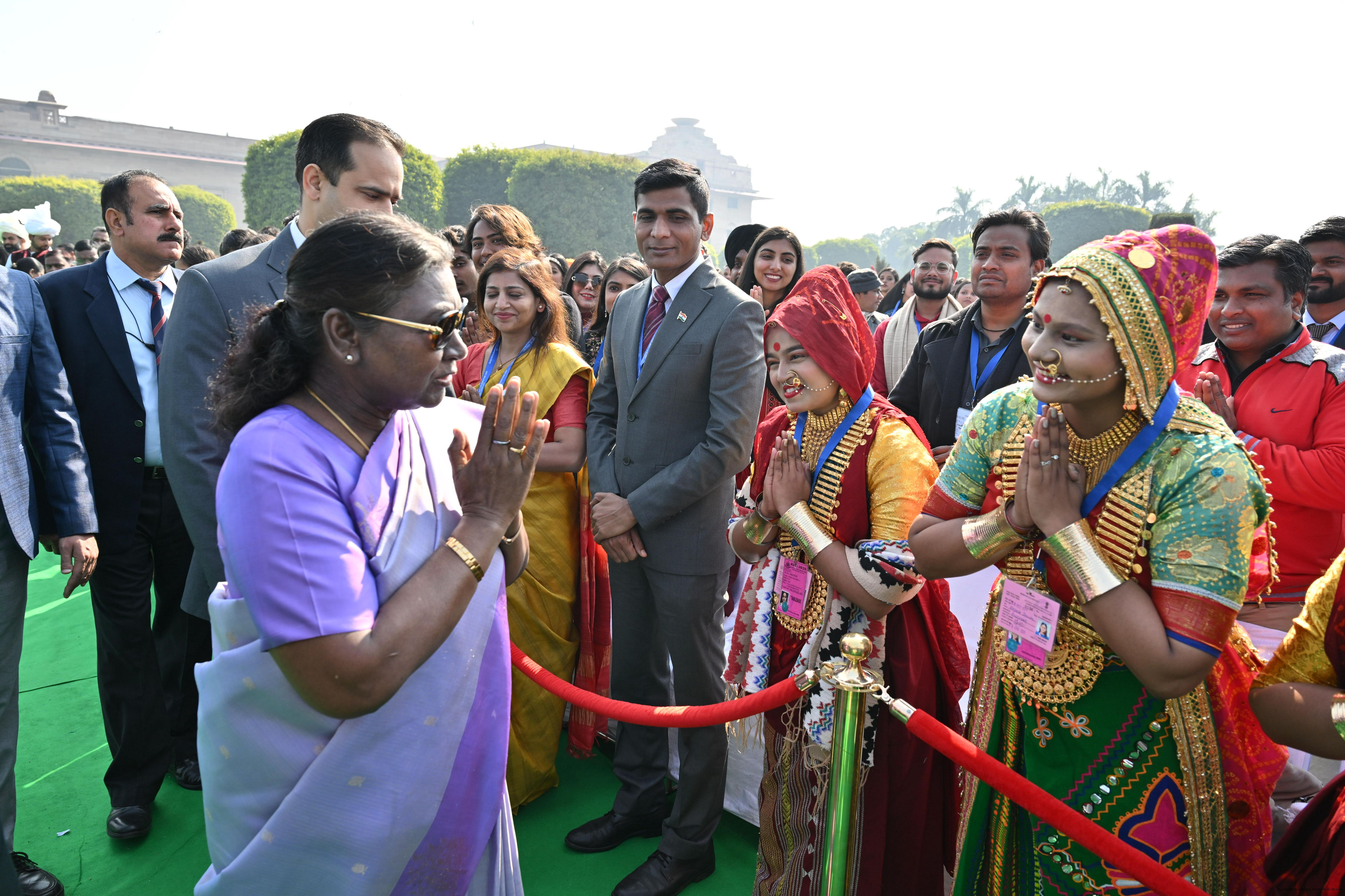 | Category: | The President met and posing a group photographs tribal guests, tableaux artistes and tractor drivers, NSS volunteers and NCC cadets, officials 28-01-2025 |