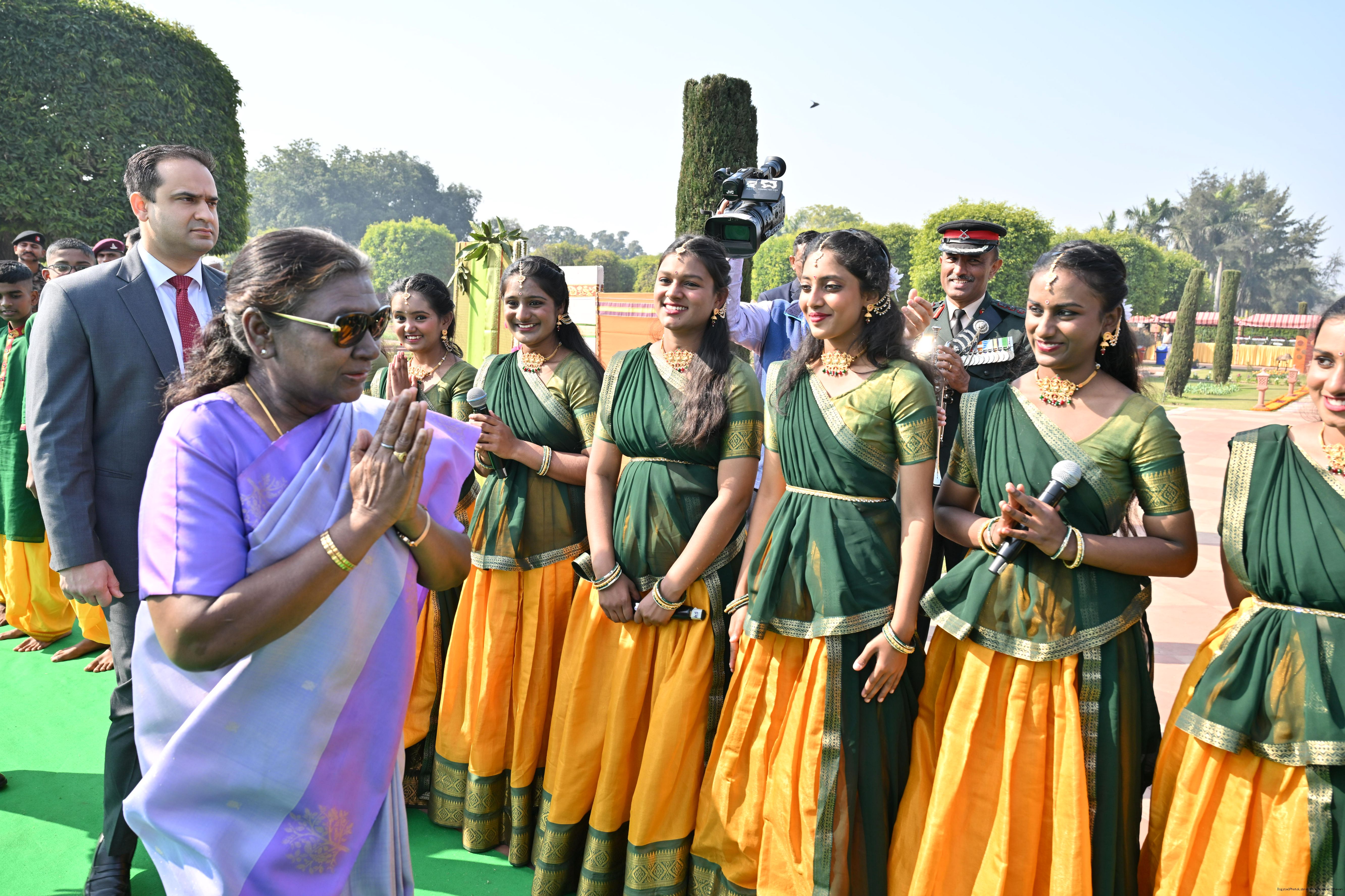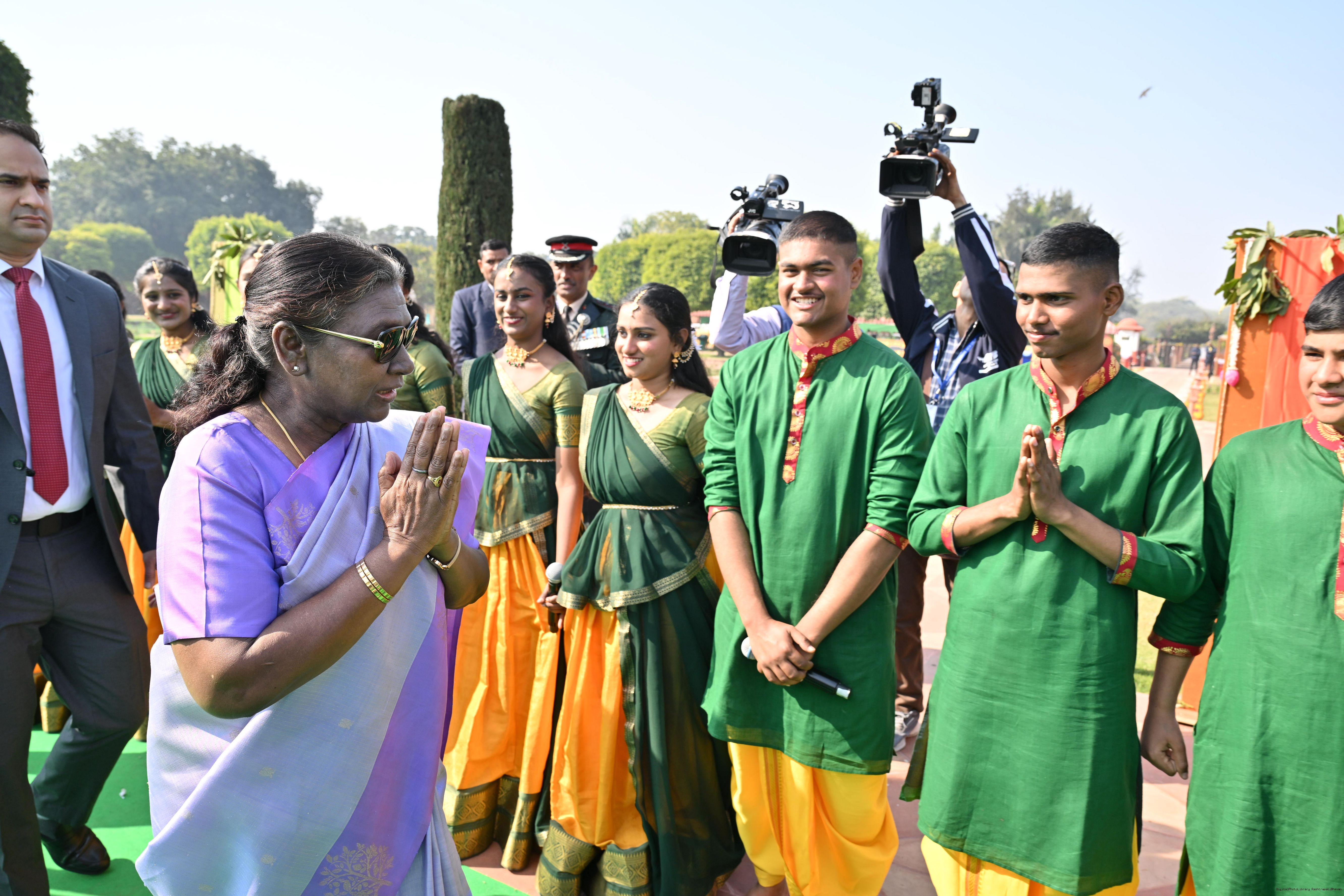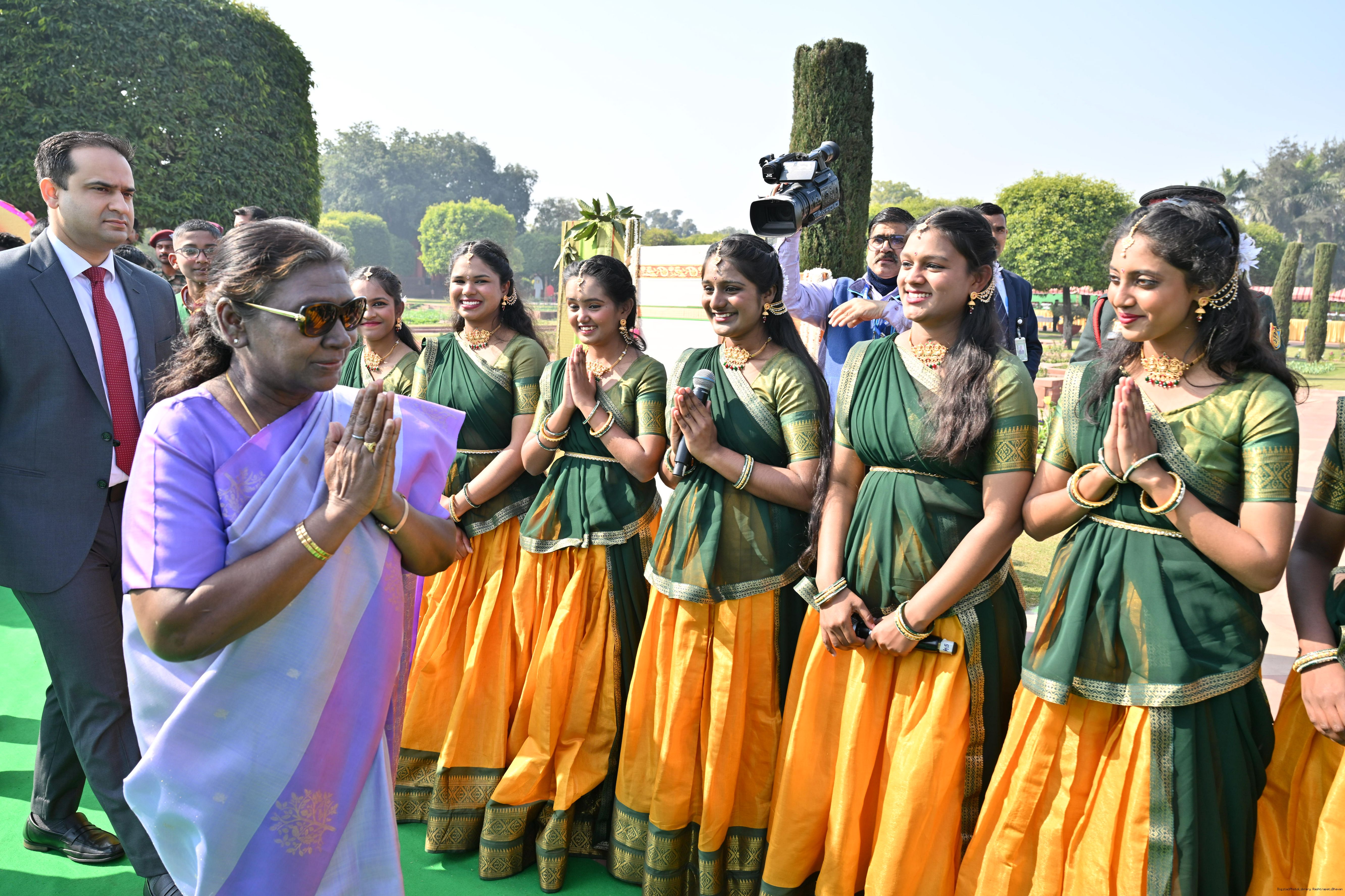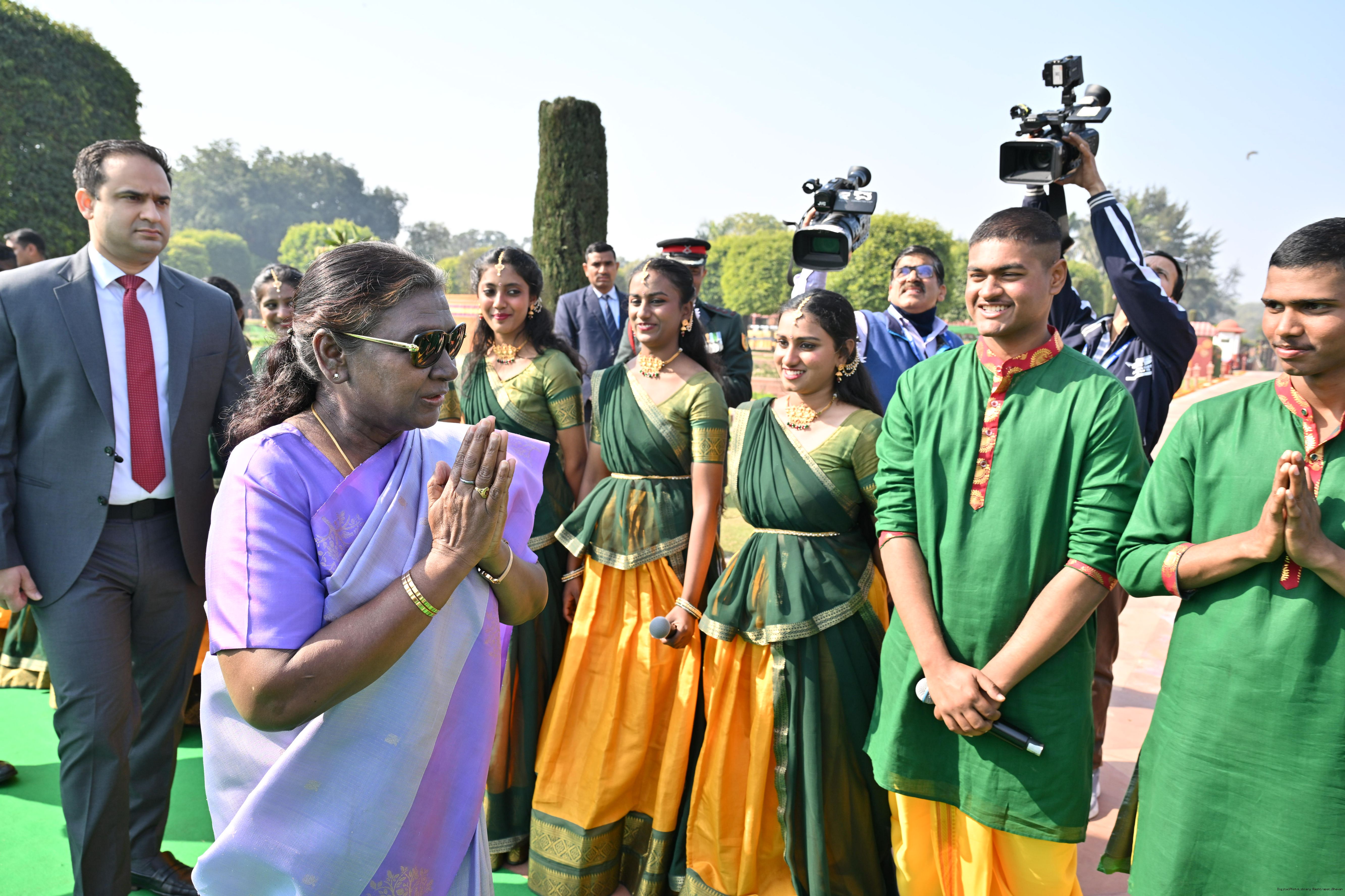 | Category: | The President met and posing a group photographs tribal guests, tableaux artistes and tractor drivers, NSS volunteers and NCC cadets, officials 28-01-2025 |