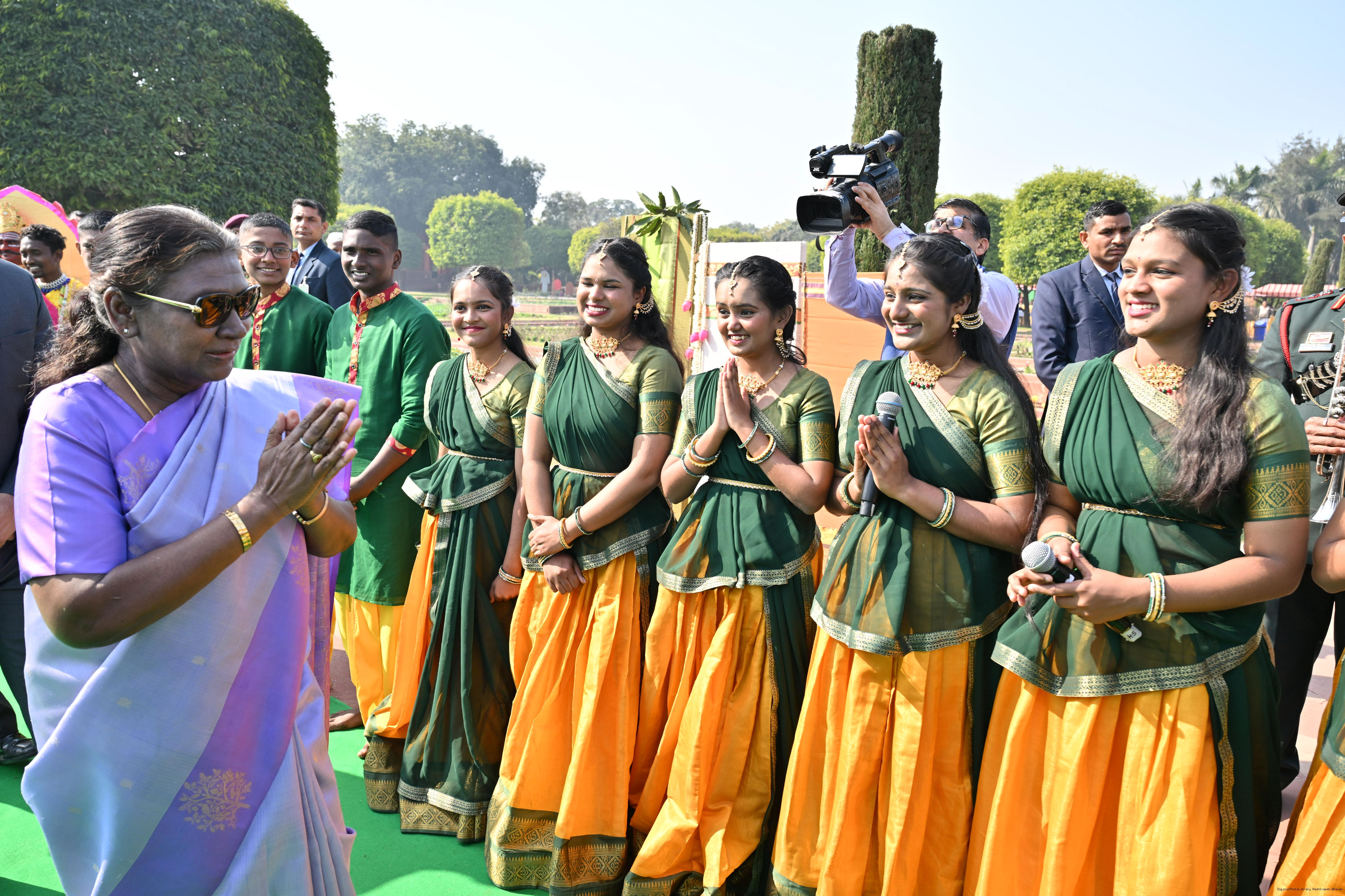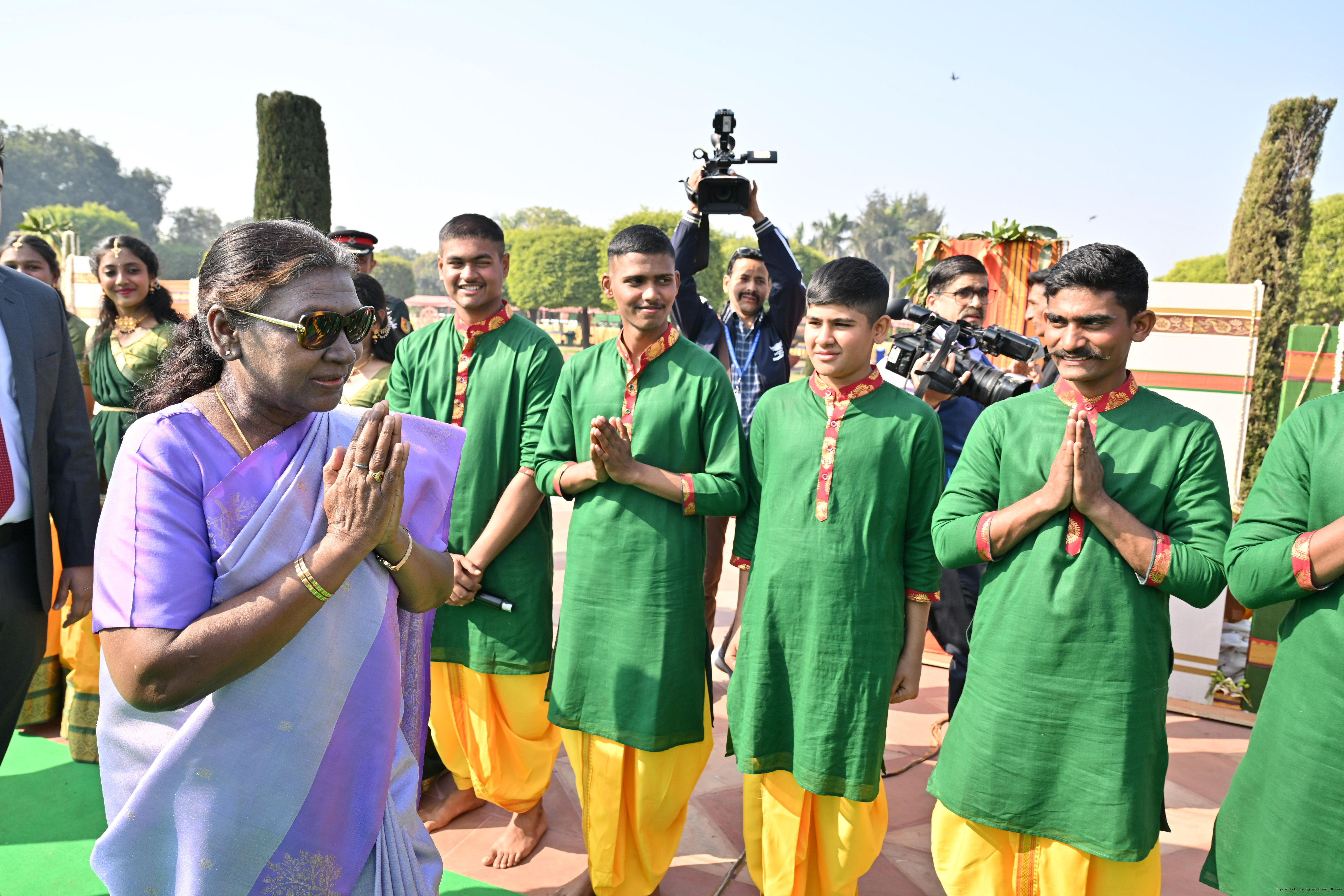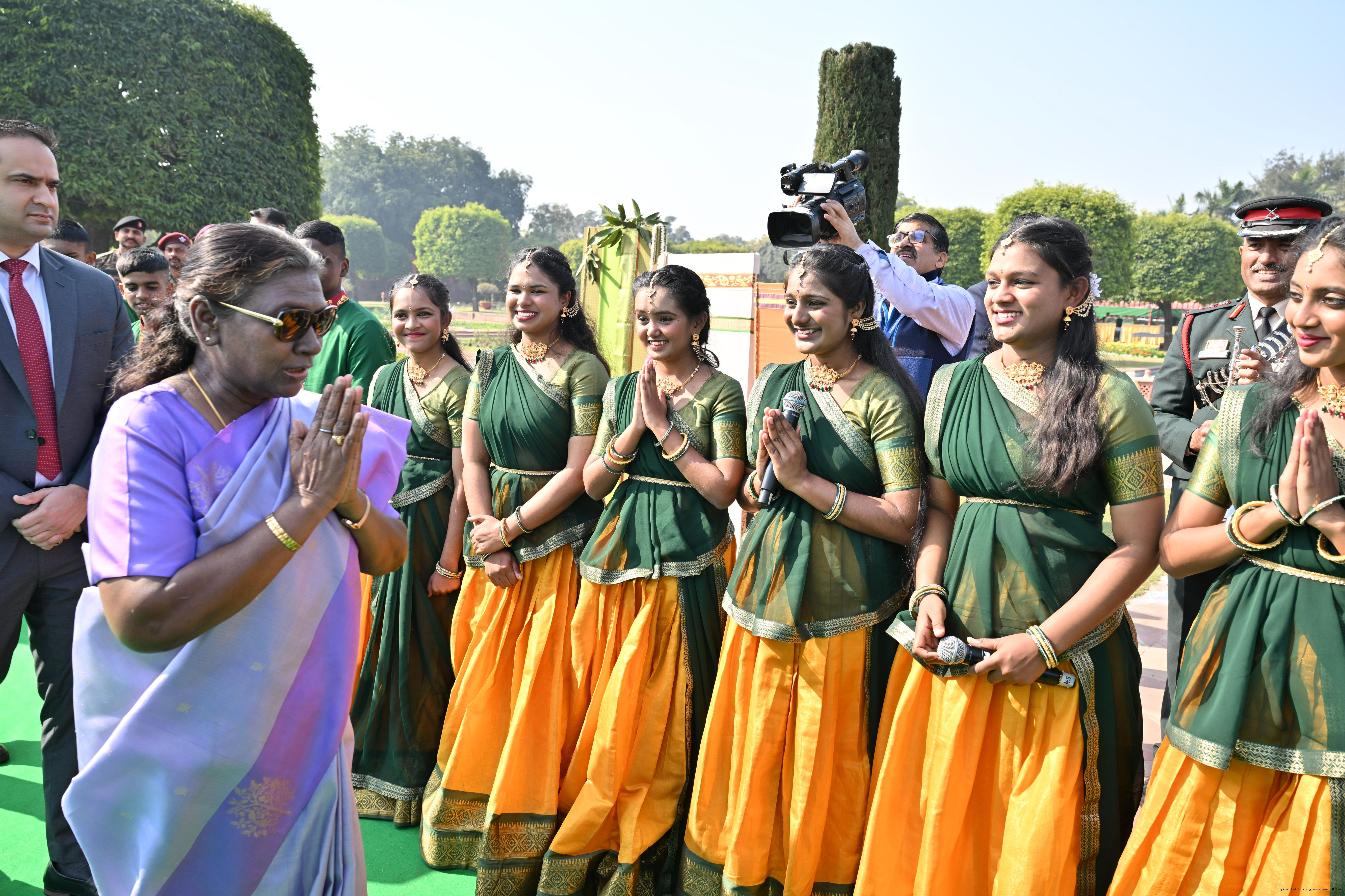 | Category: | The President met and posing a group photographs tribal guests, tableaux artistes and tractor drivers, NSS volunteers and NCC cadets, officials 28-01-2025 |