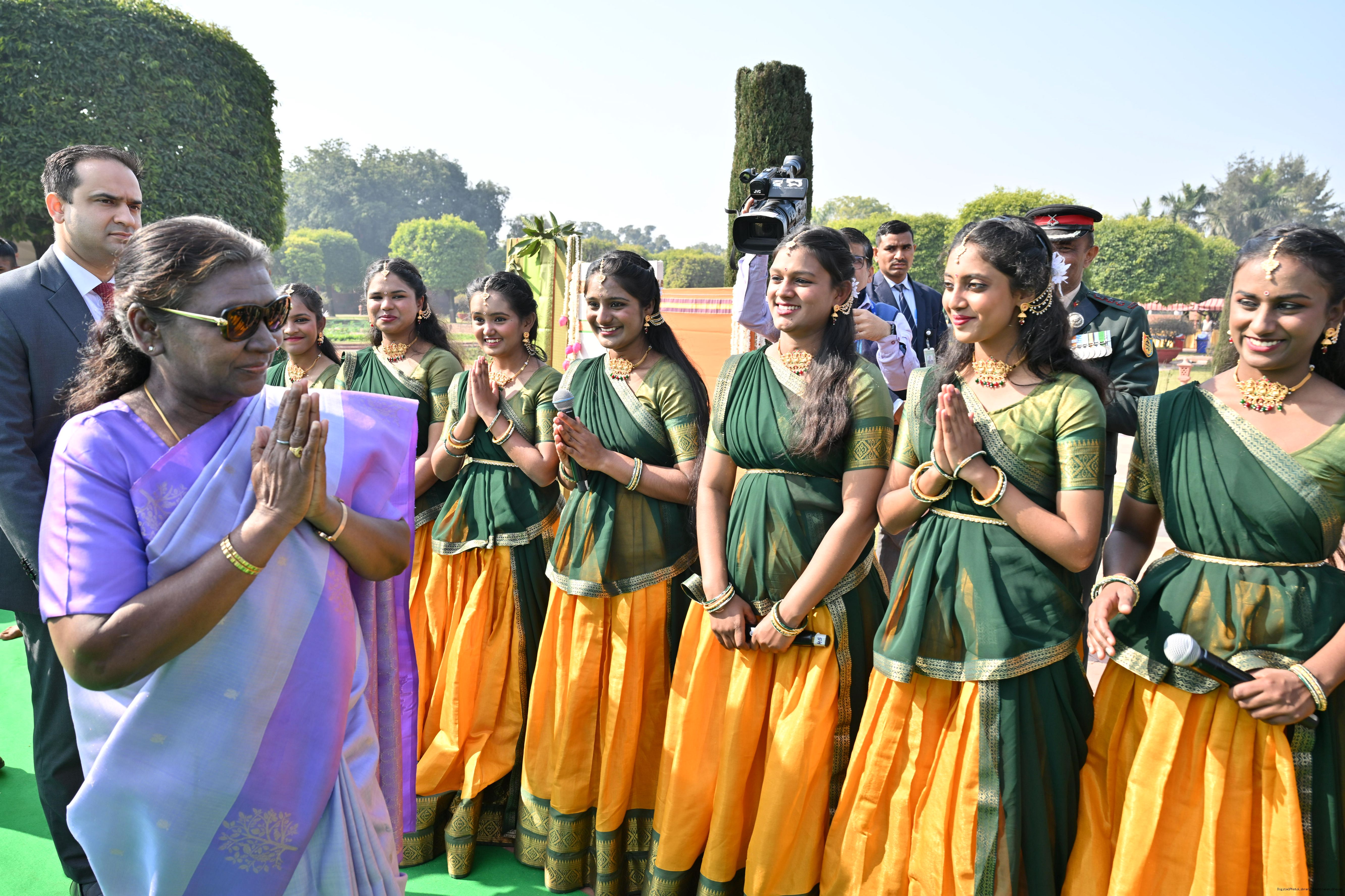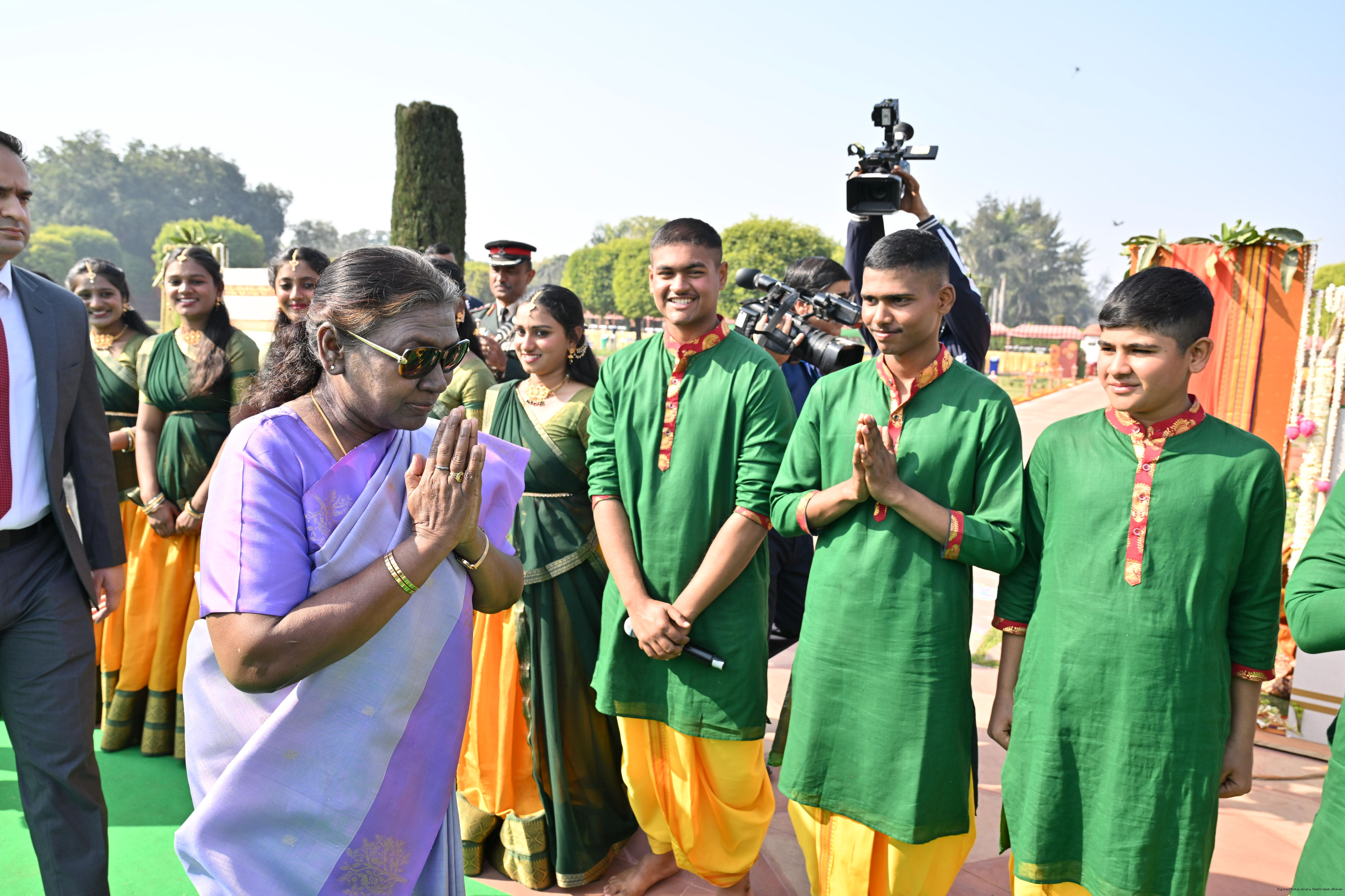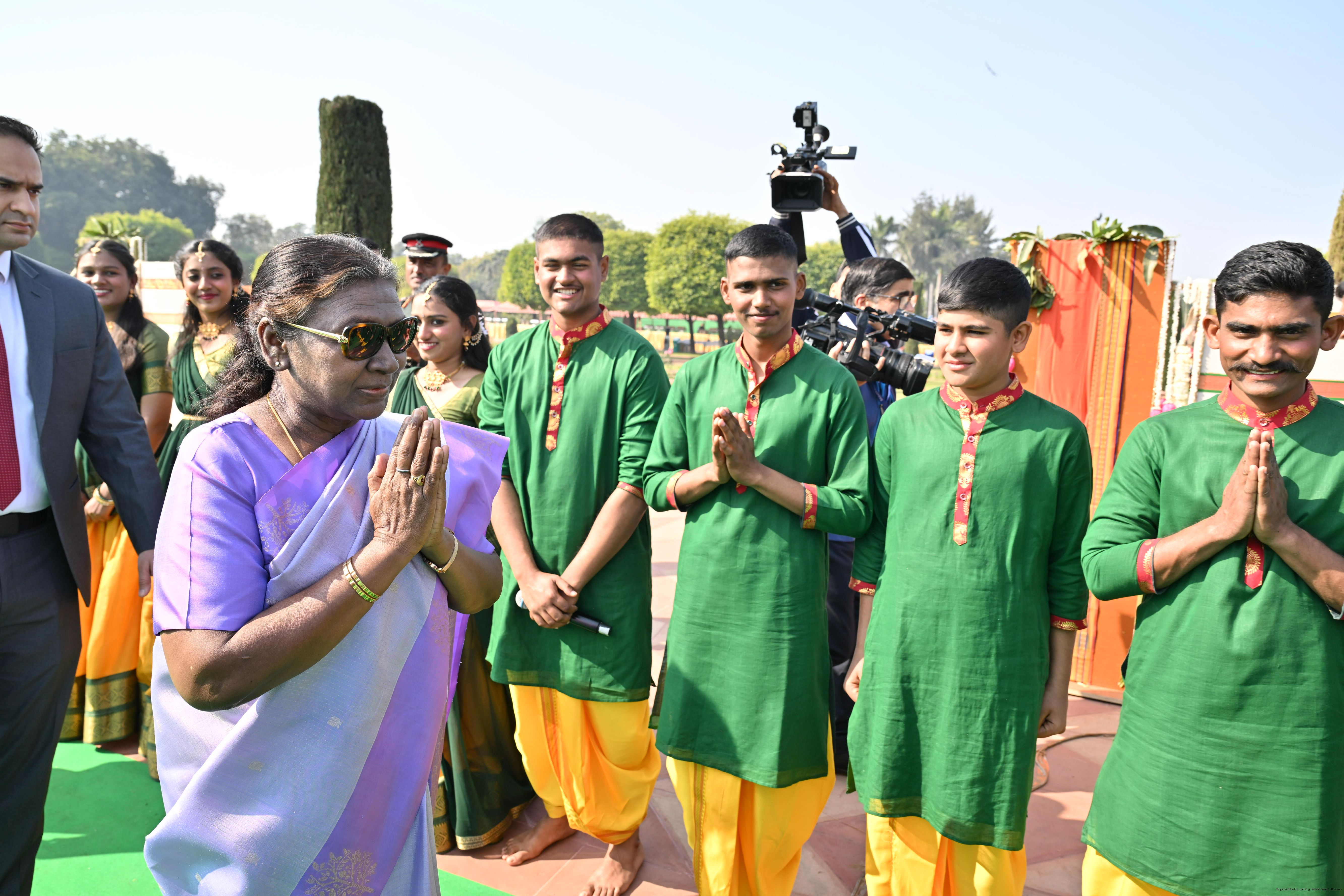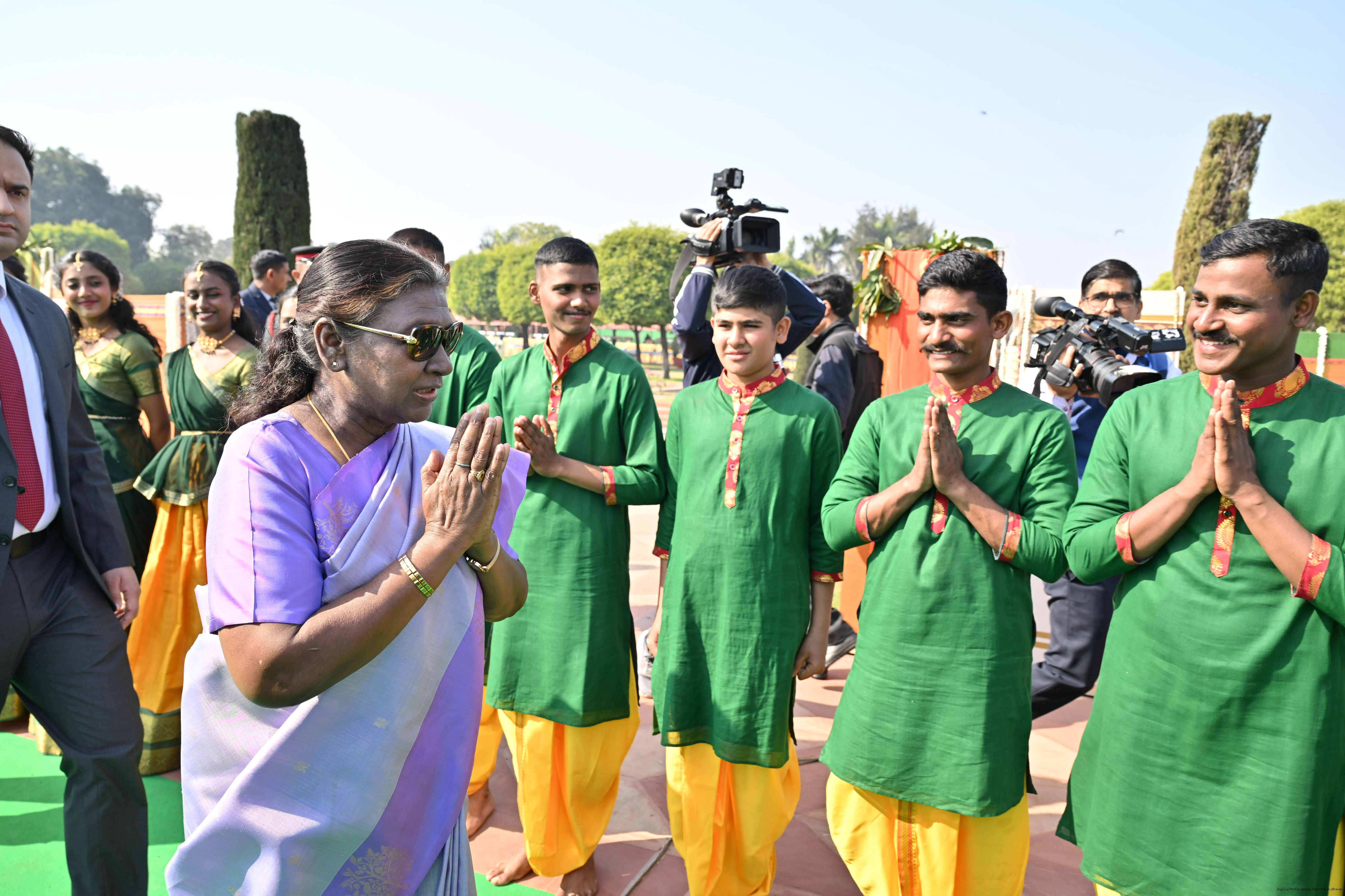 | Category: | The President met and posing a group photographs tribal guests, tableaux artistes and tractor drivers, NSS volunteers and NCC cadets, officials 28-01-2025 |