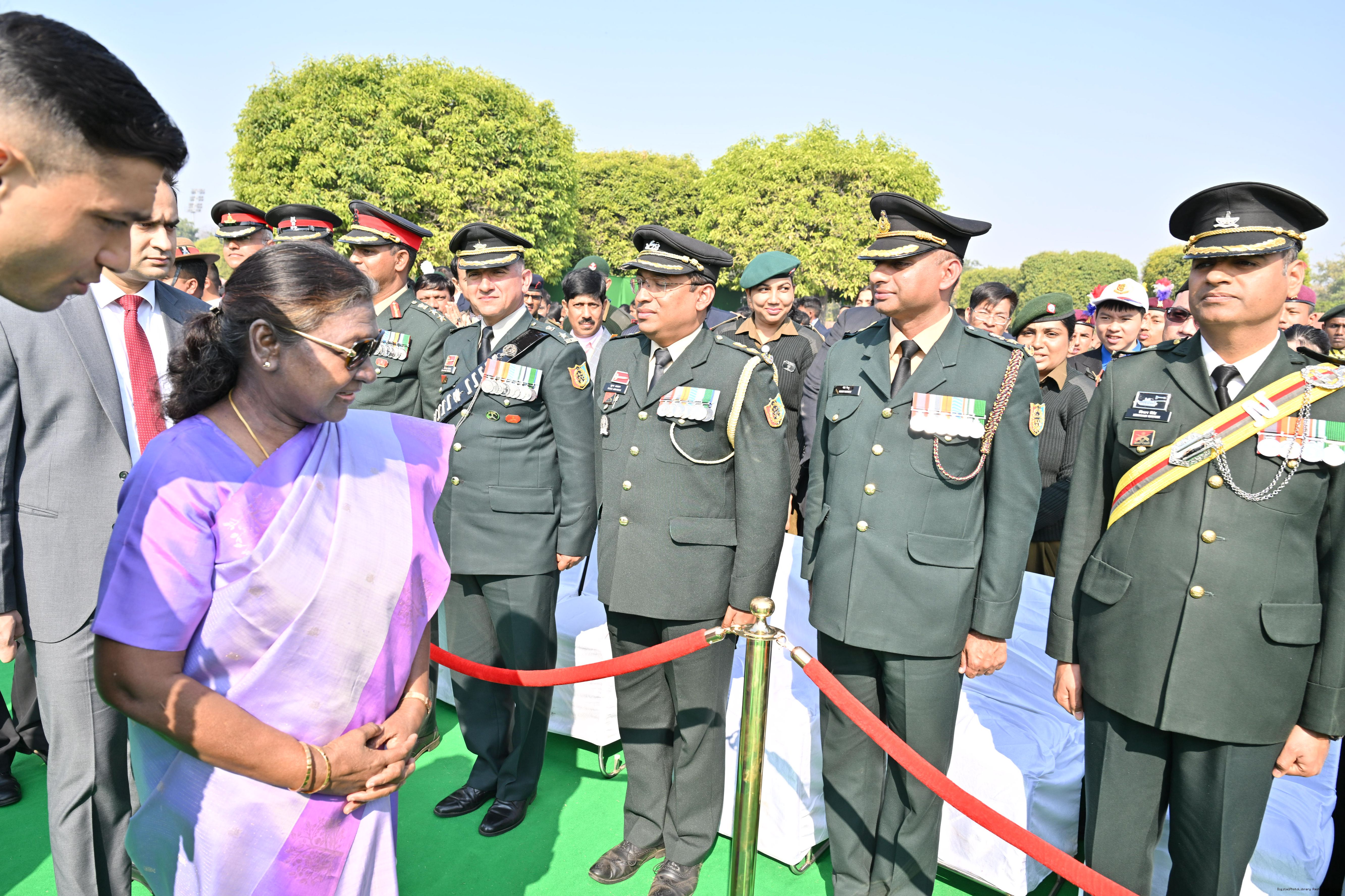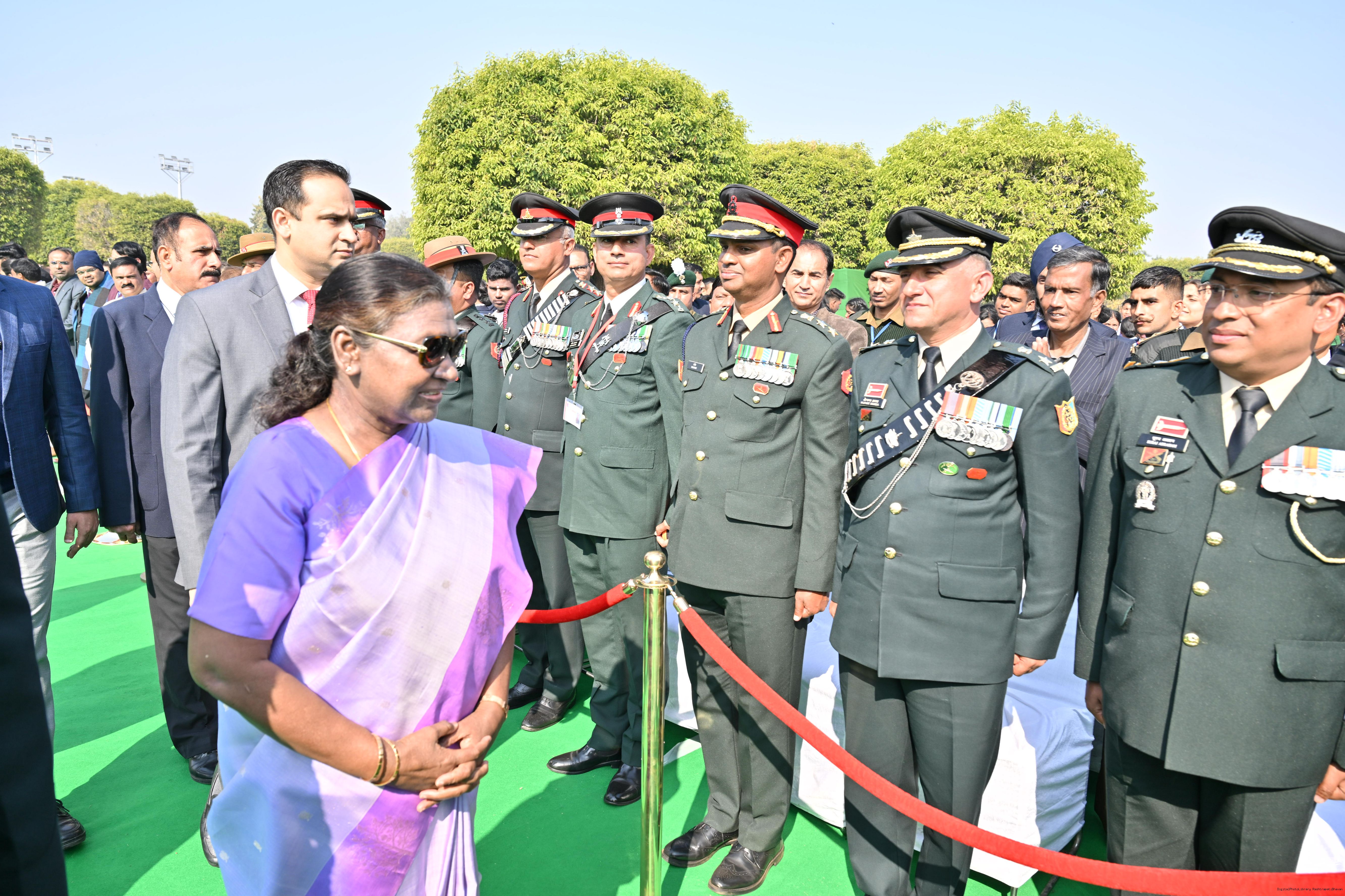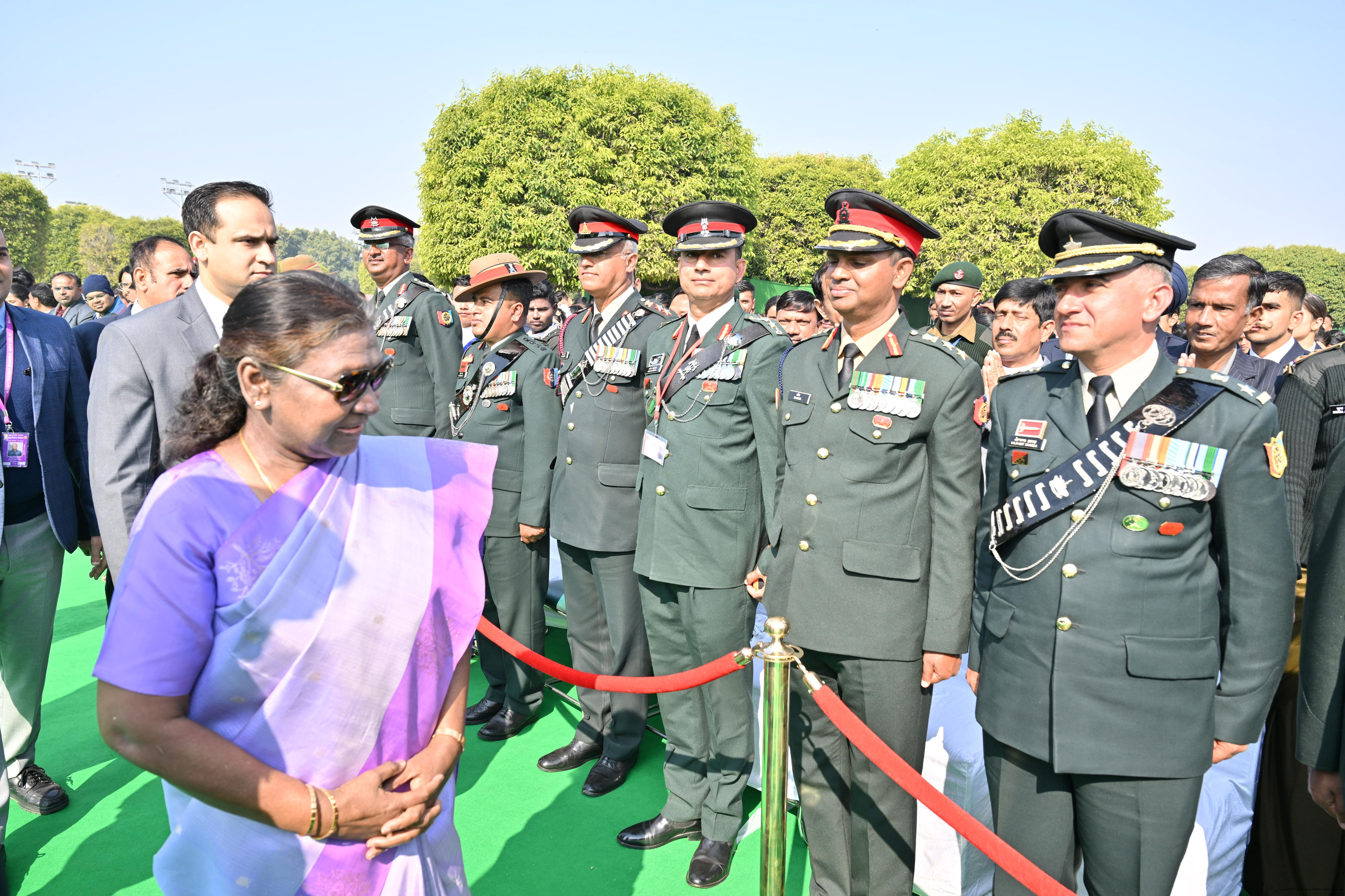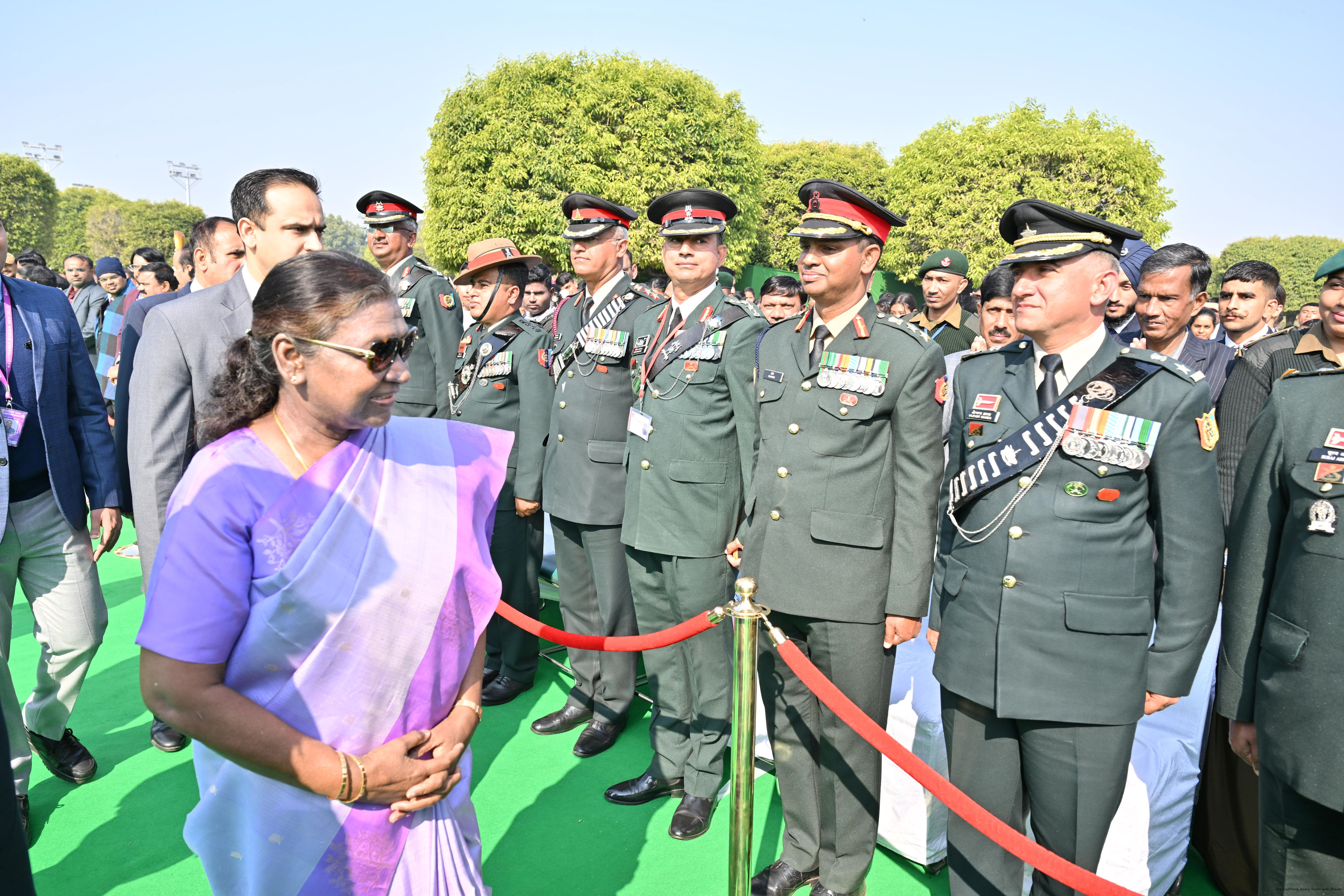 | Category: | The President met and posing a group photographs tribal guests, tableaux artistes and tractor drivers, NSS volunteers and NCC cadets, officials 28-01-2025 |