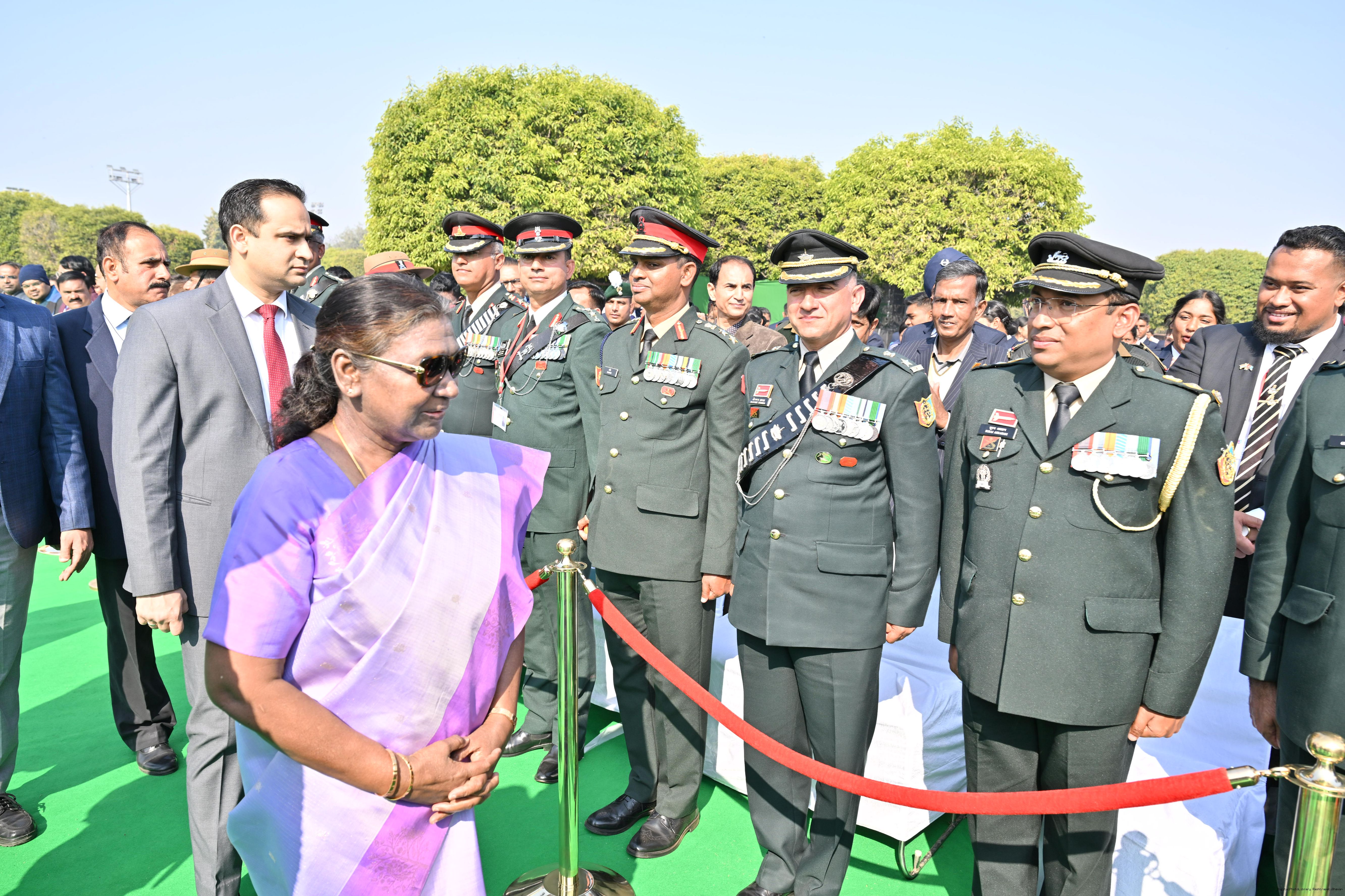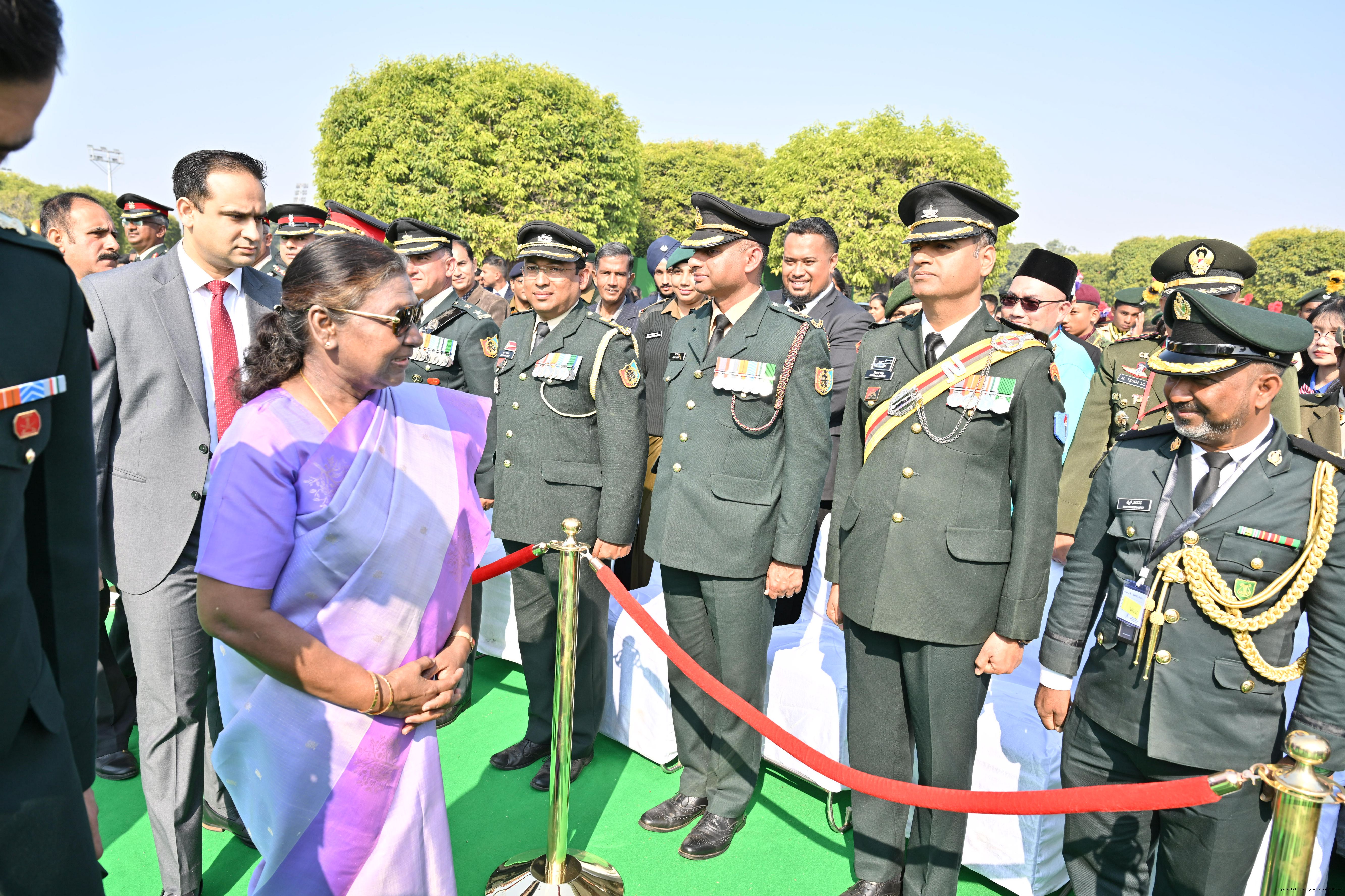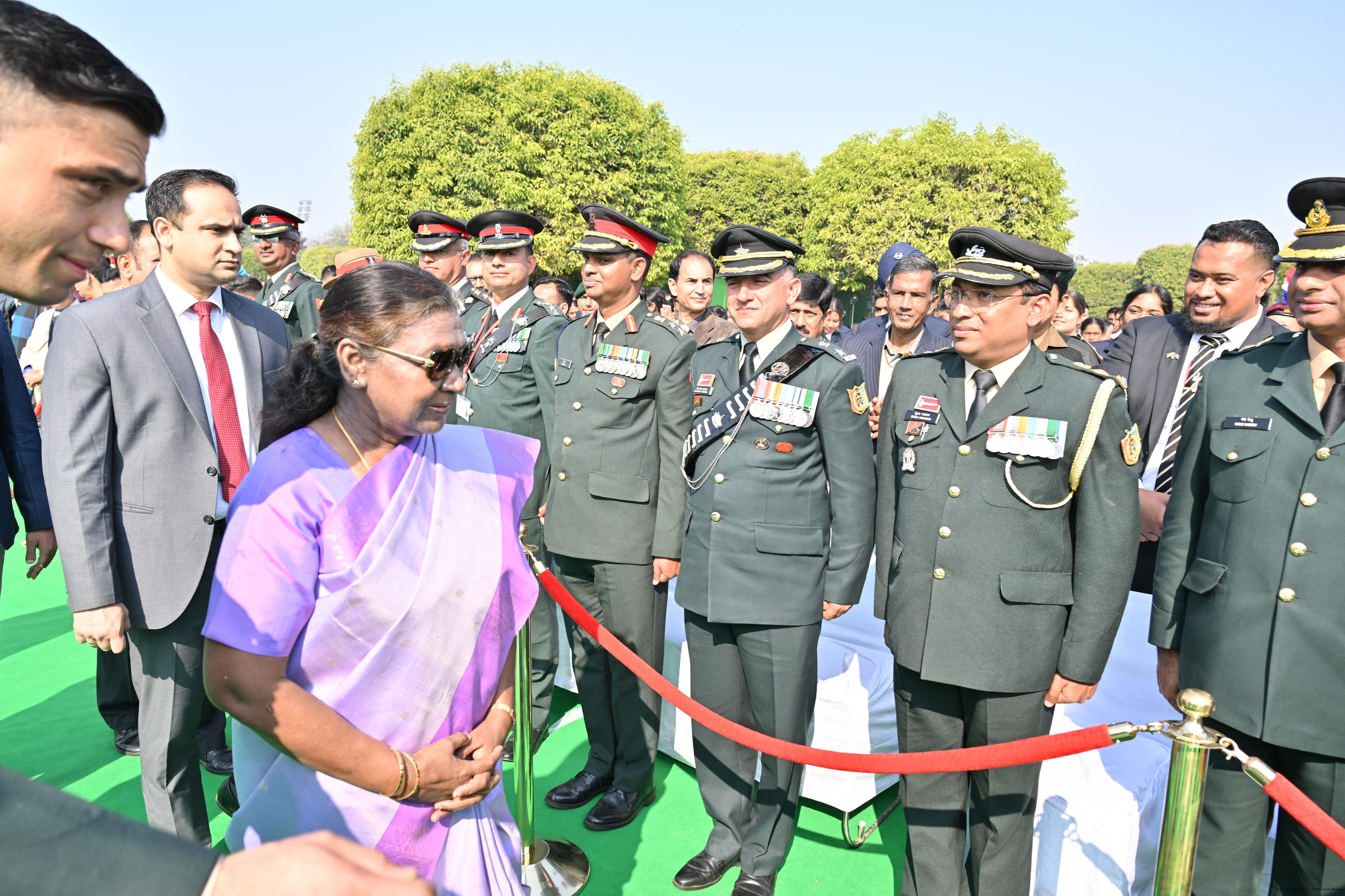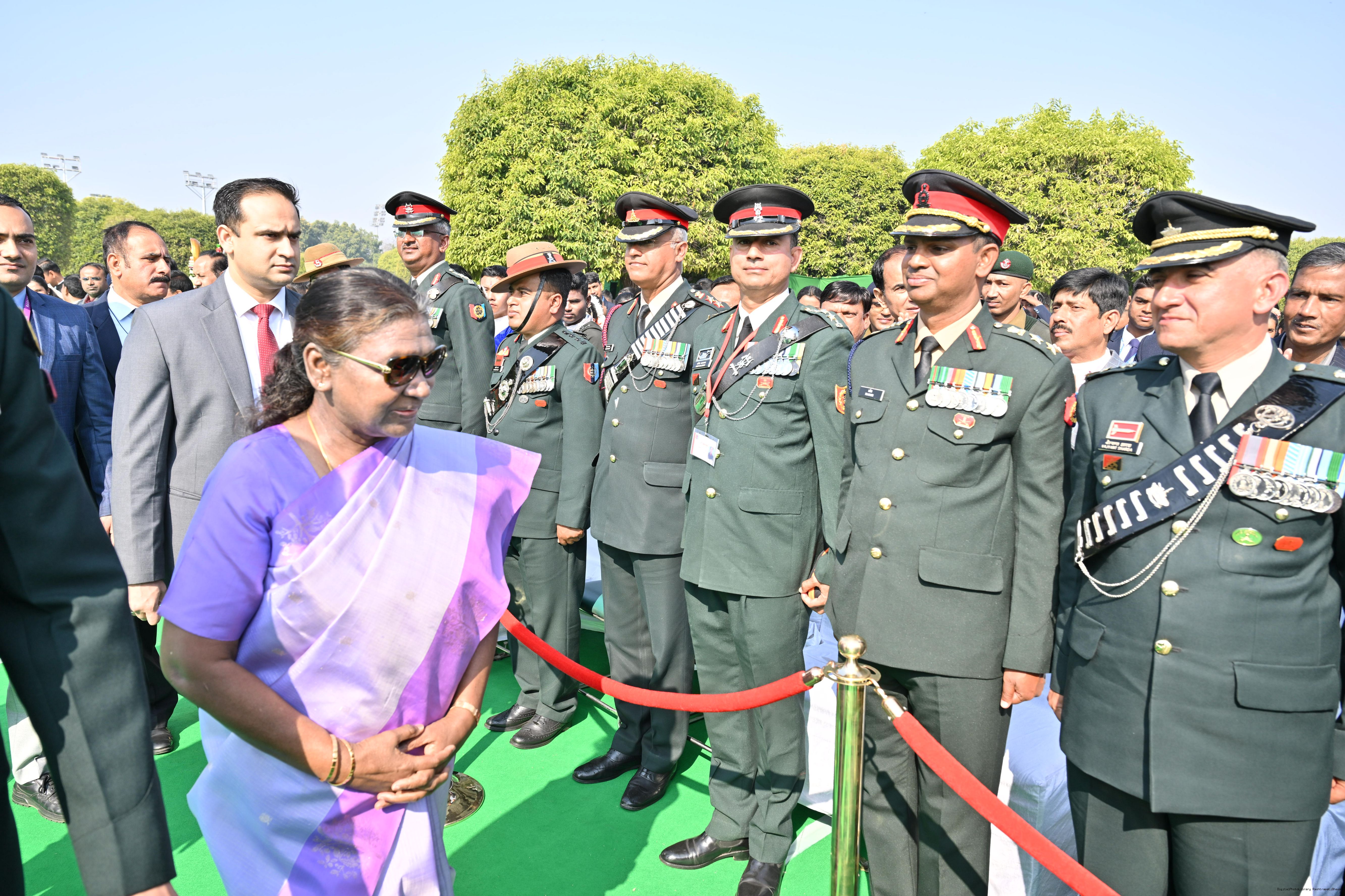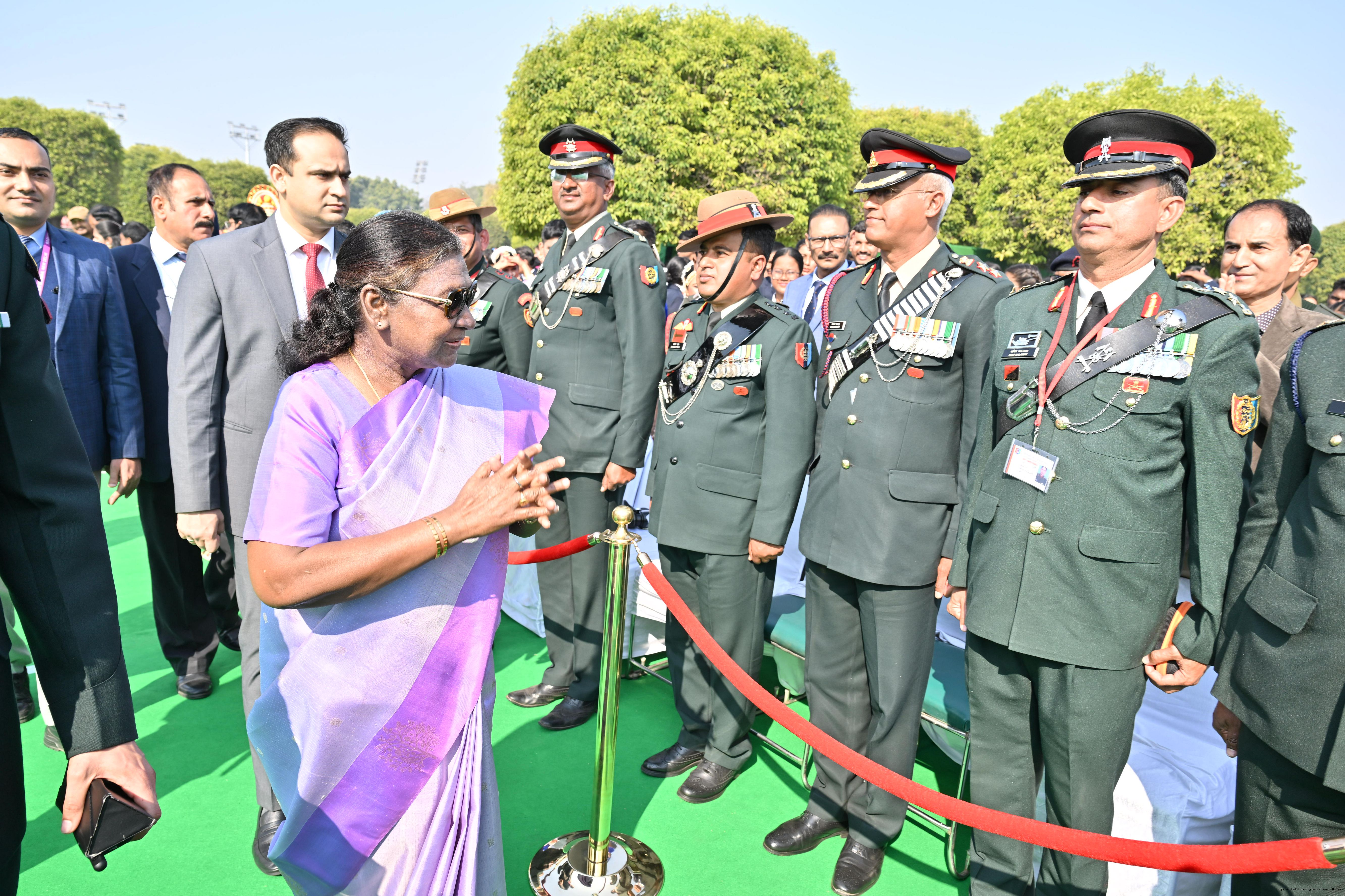 | Category: | The President met and posing a group photographs tribal guests, tableaux artistes and tractor drivers, NSS volunteers and NCC cadets, officials 28-01-2025 |