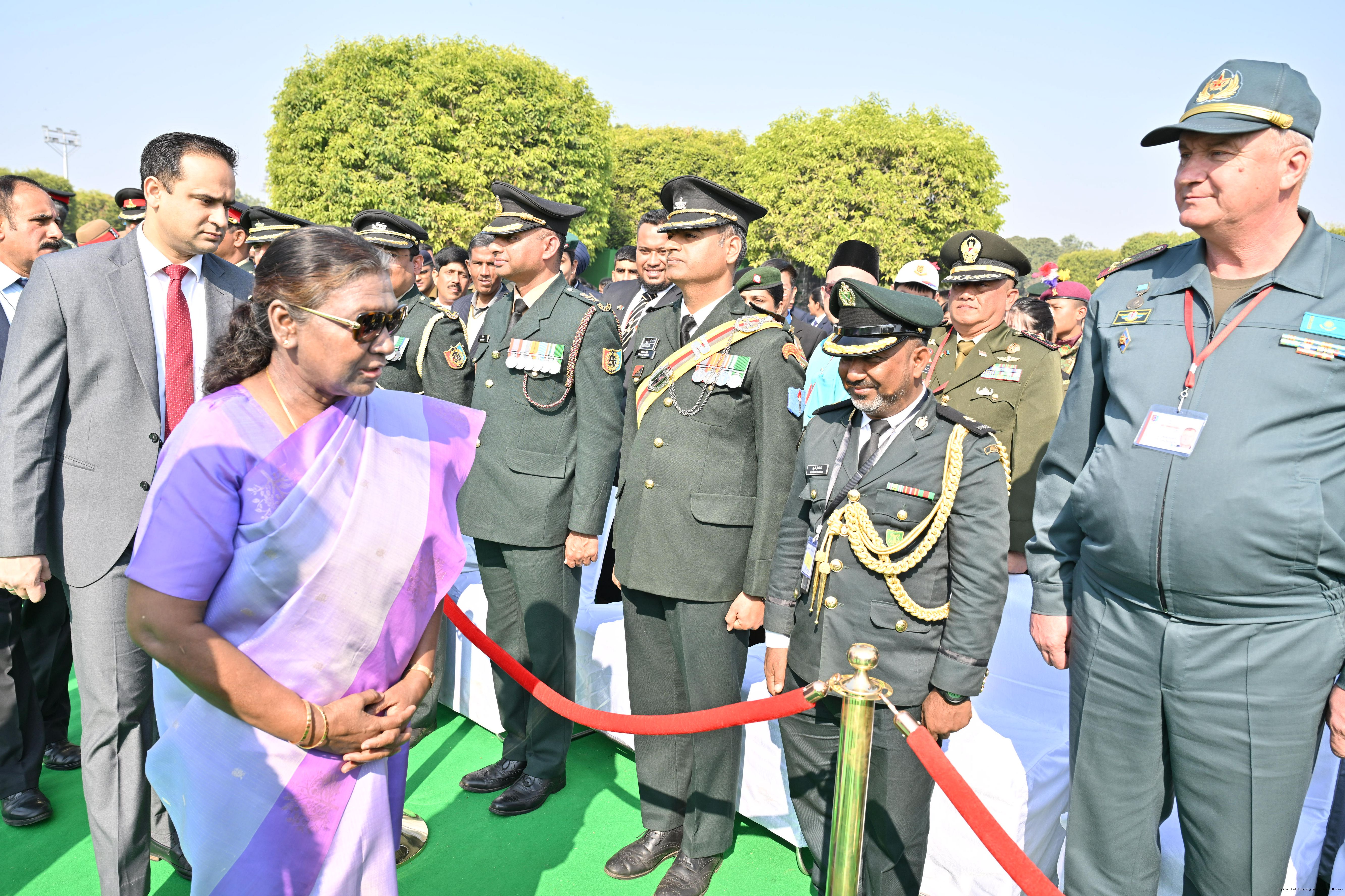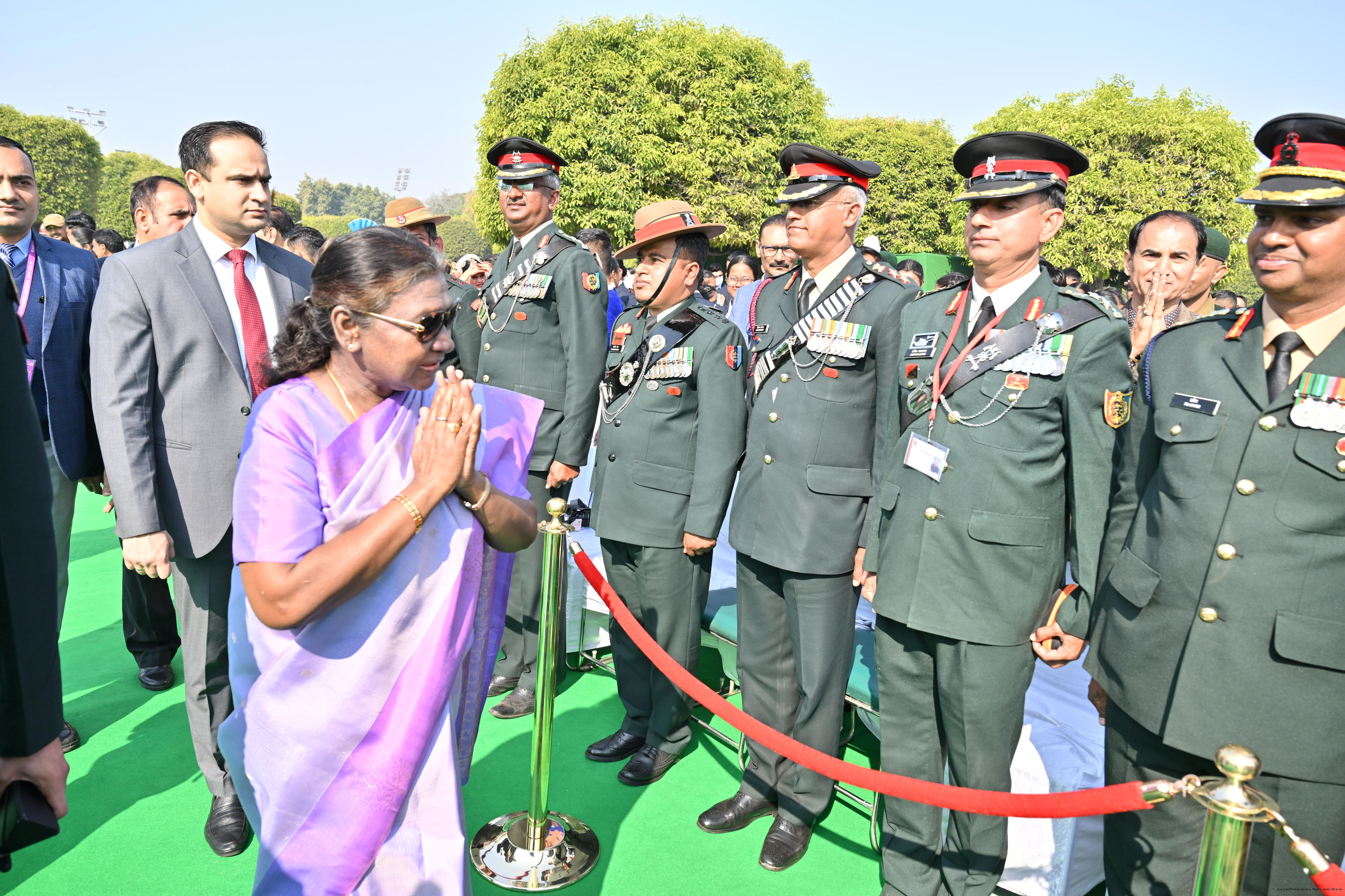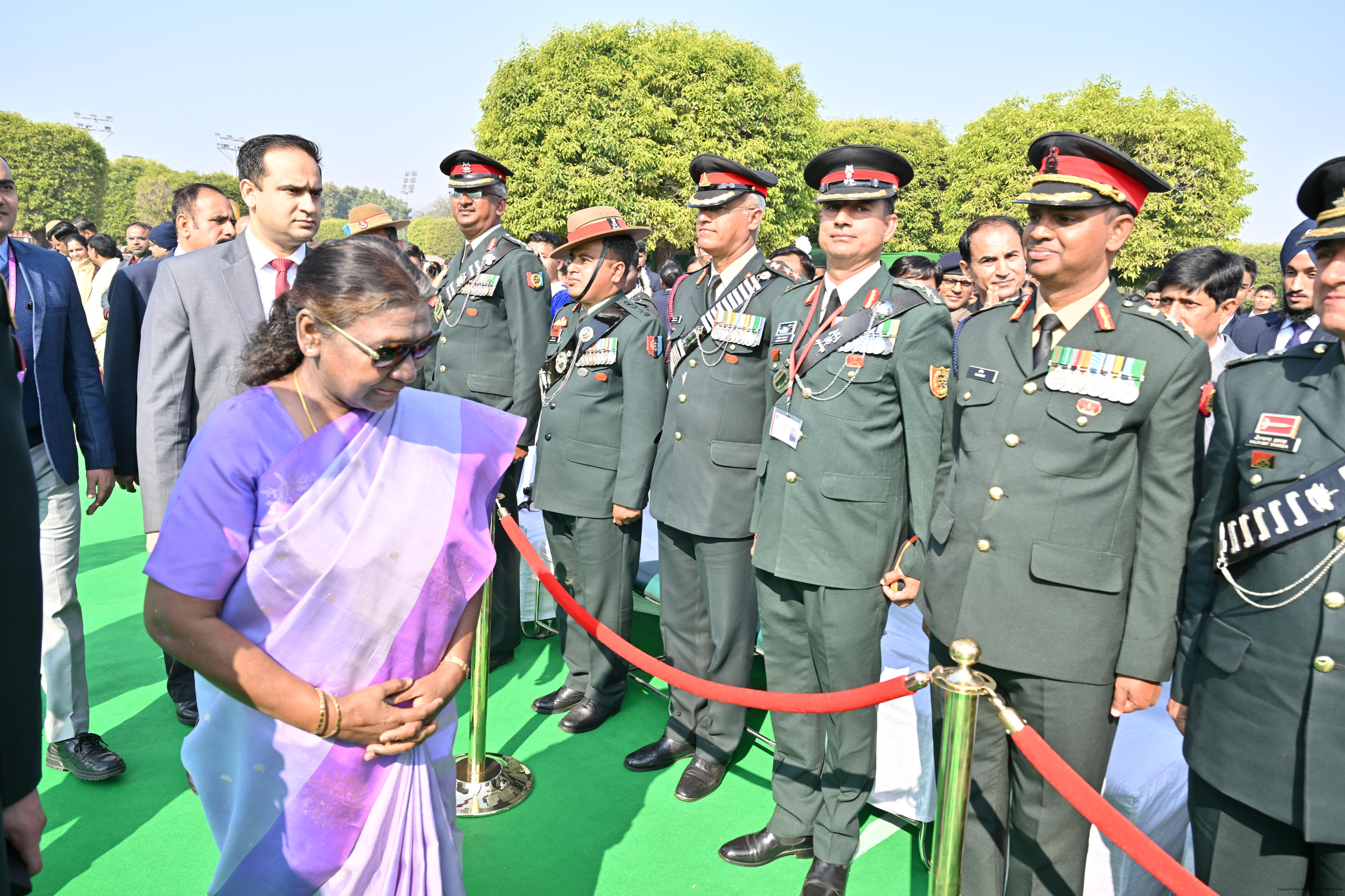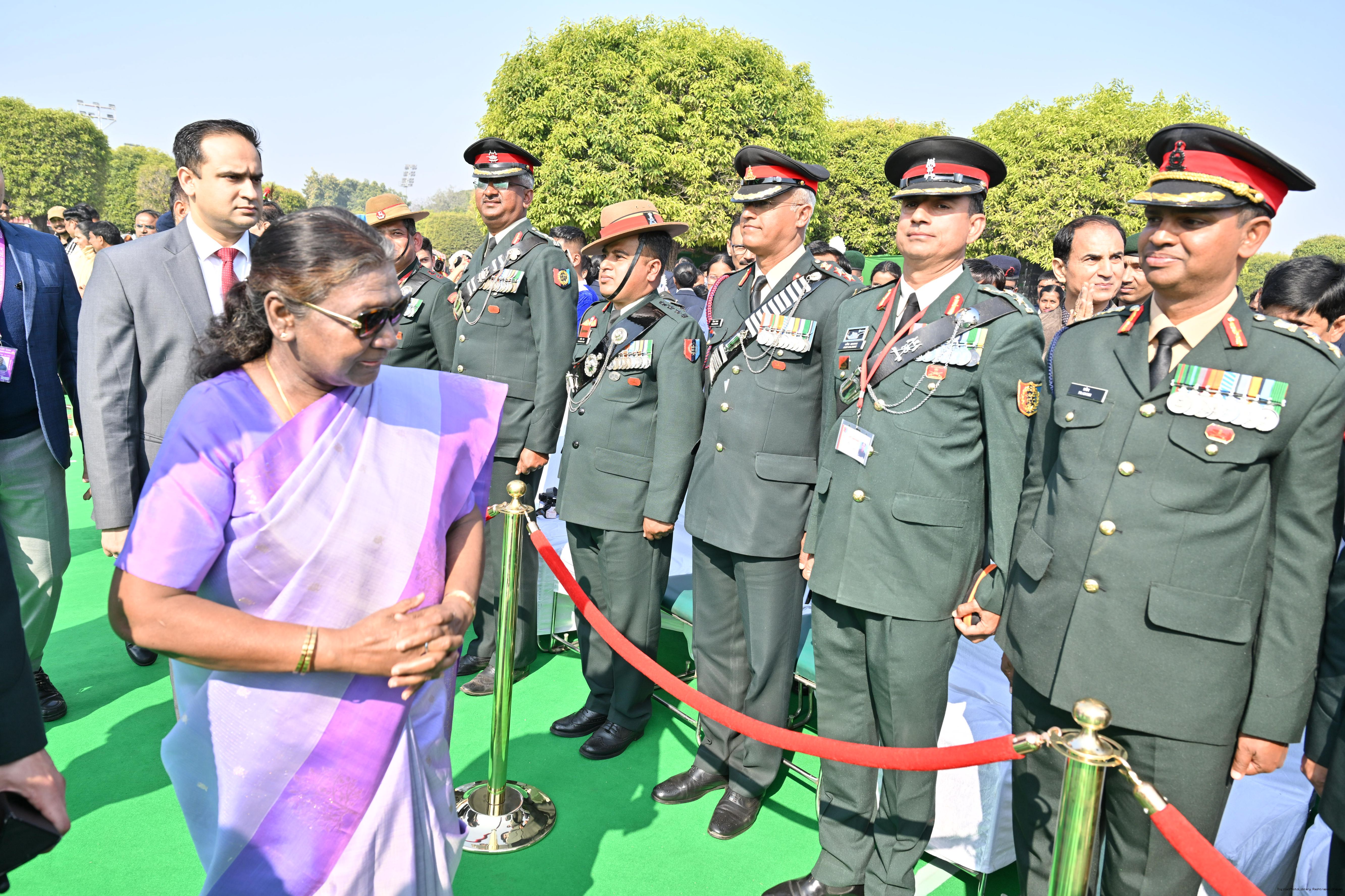 | Category: | The President met and posing a group photographs tribal guests, tableaux artistes and tractor drivers, NSS volunteers and NCC cadets, officials 28-01-2025 |