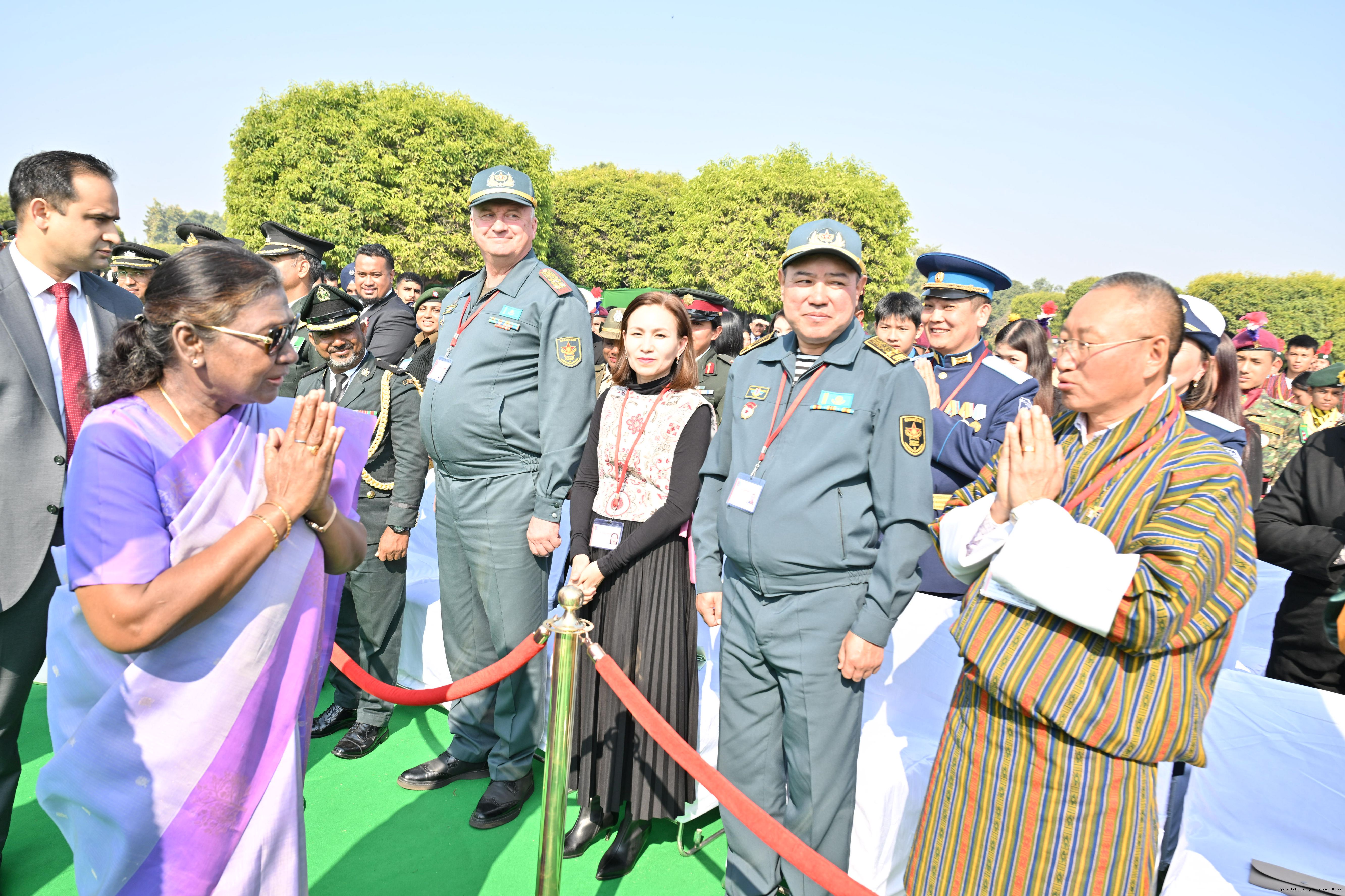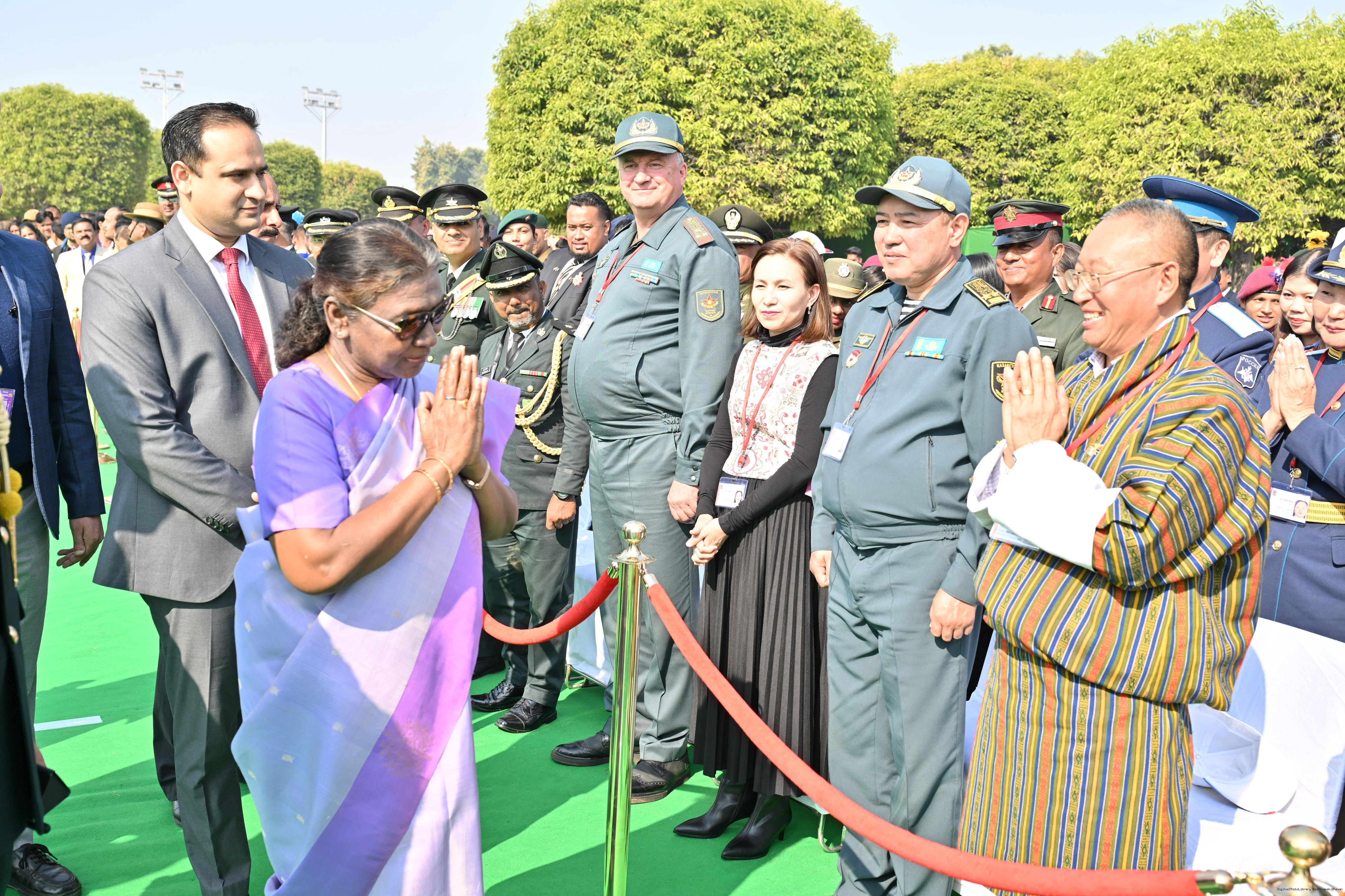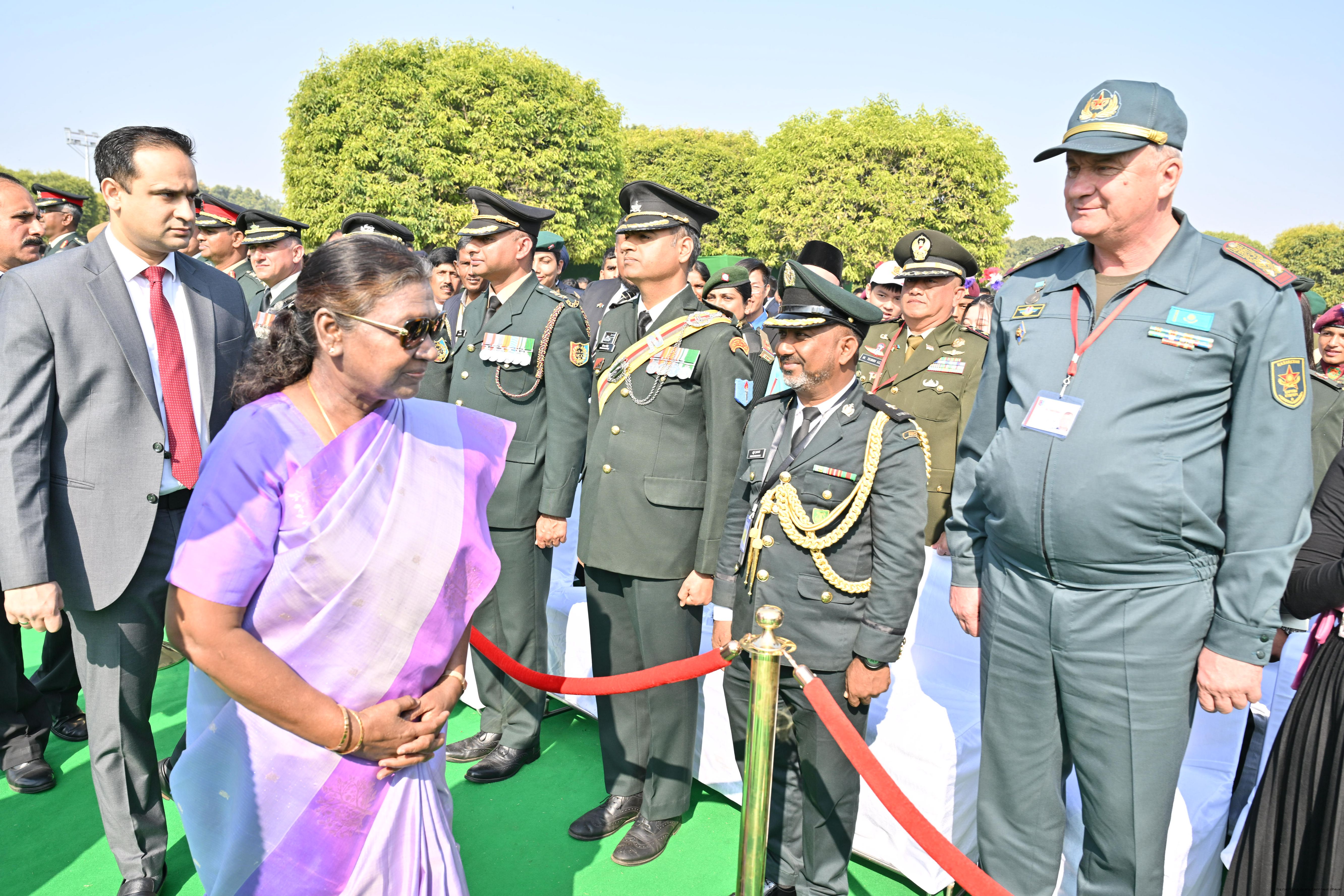 | Category: | The President met and posing a group photographs tribal guests, tableaux artistes and tractor drivers, NSS volunteers and NCC cadets, officials 28-01-2025 |