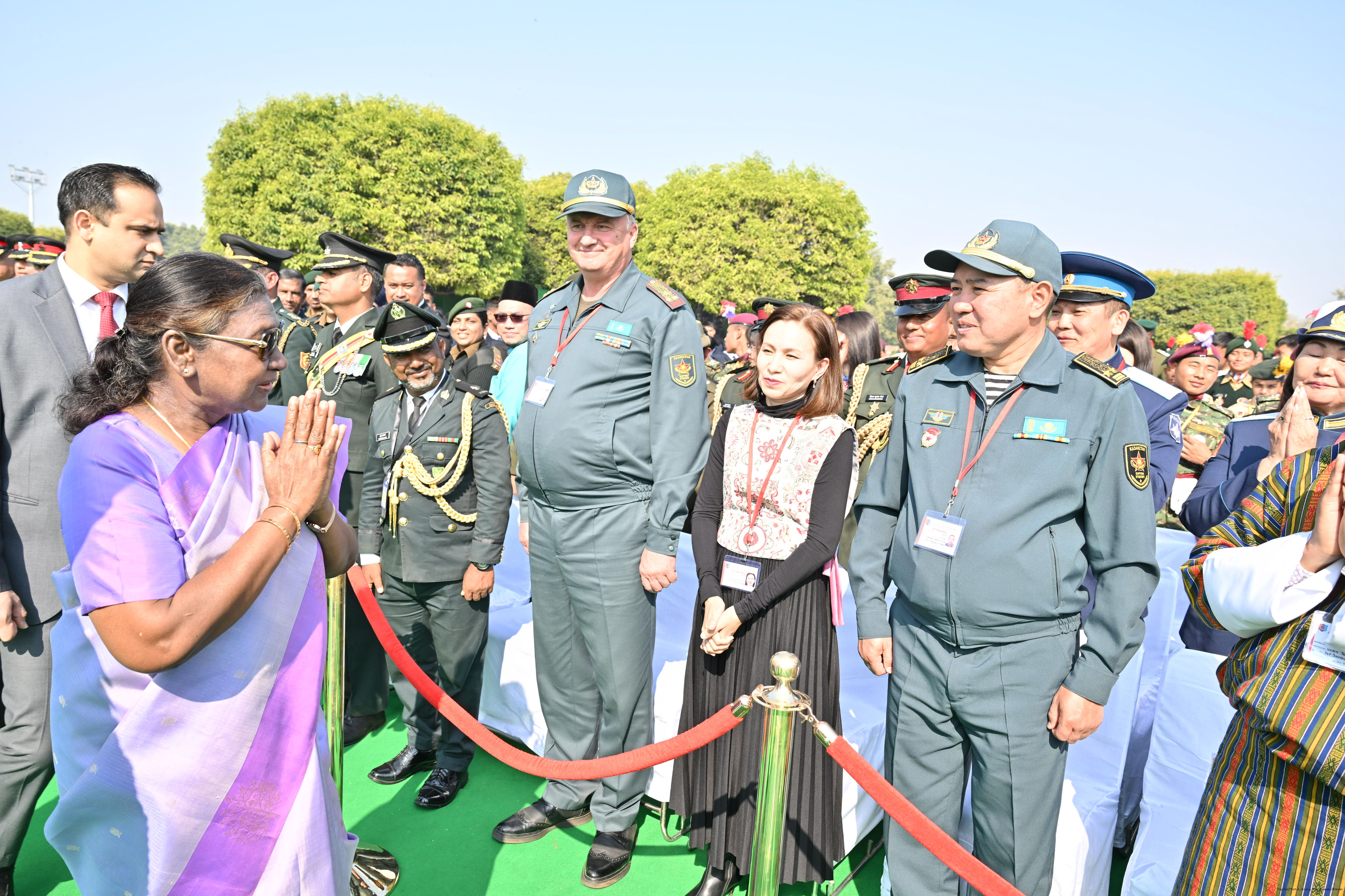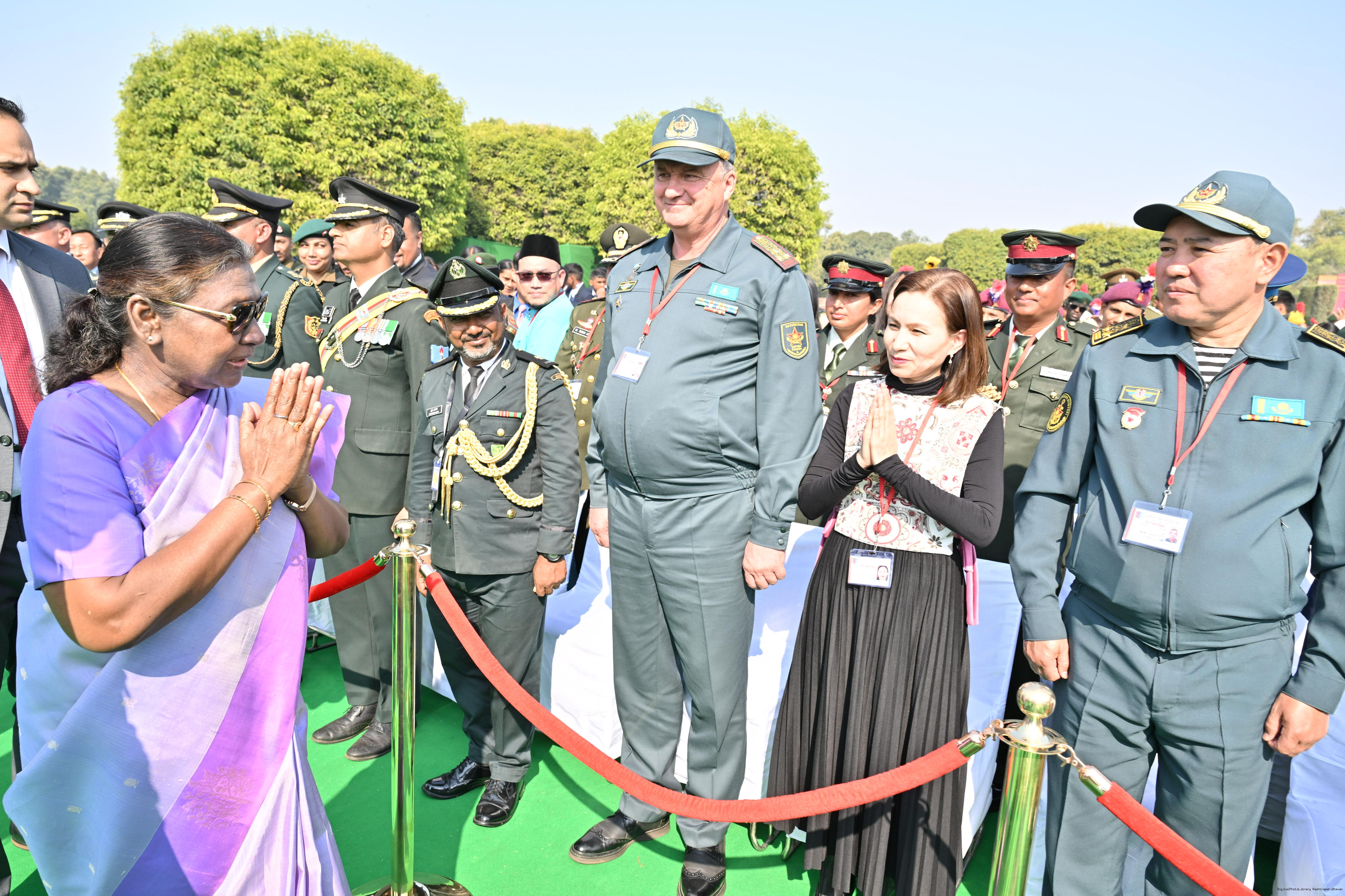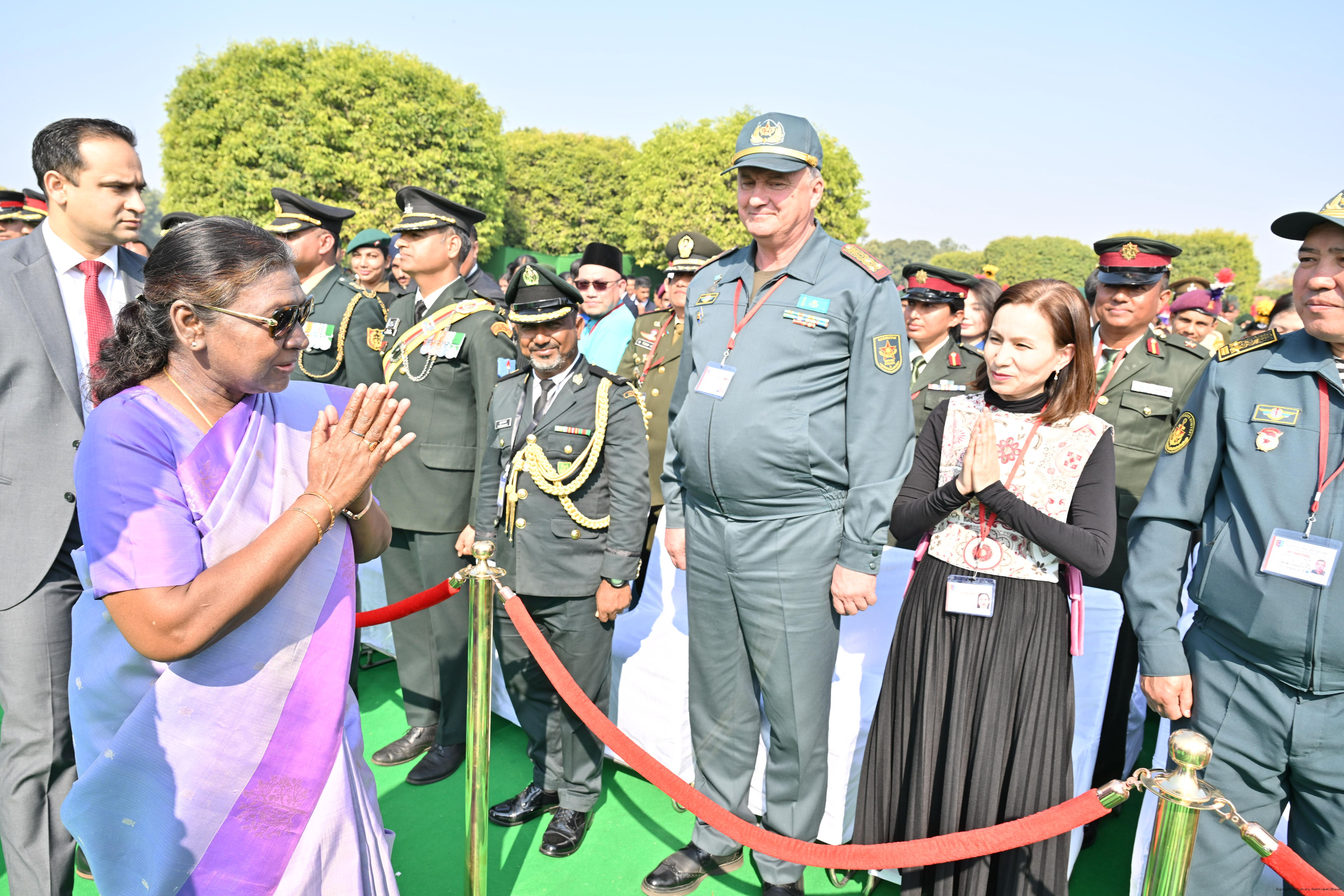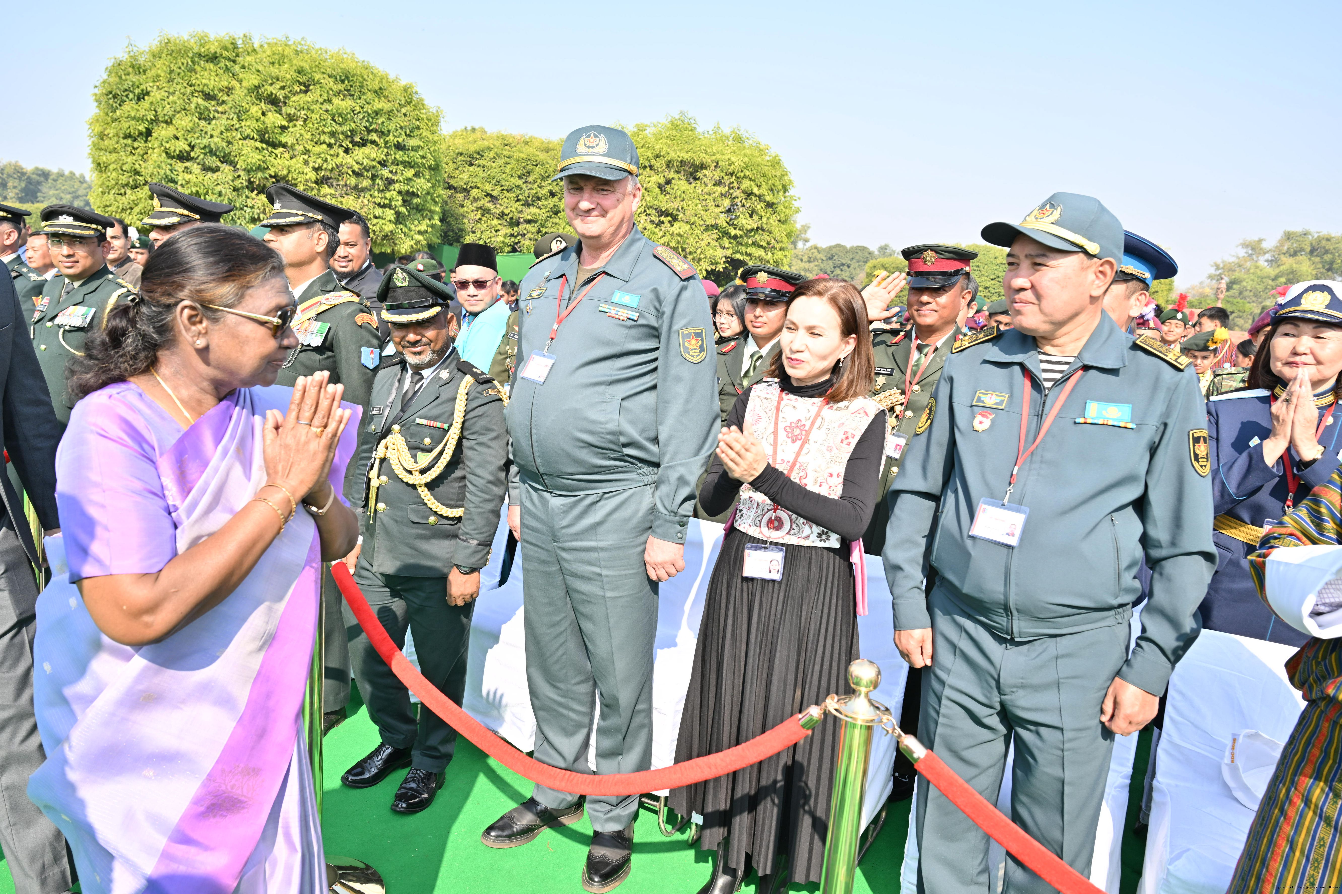 | Category: | The President met and posing a group photographs tribal guests, tableaux artistes and tractor drivers, NSS volunteers and NCC cadets, officials 28-01-2025 |