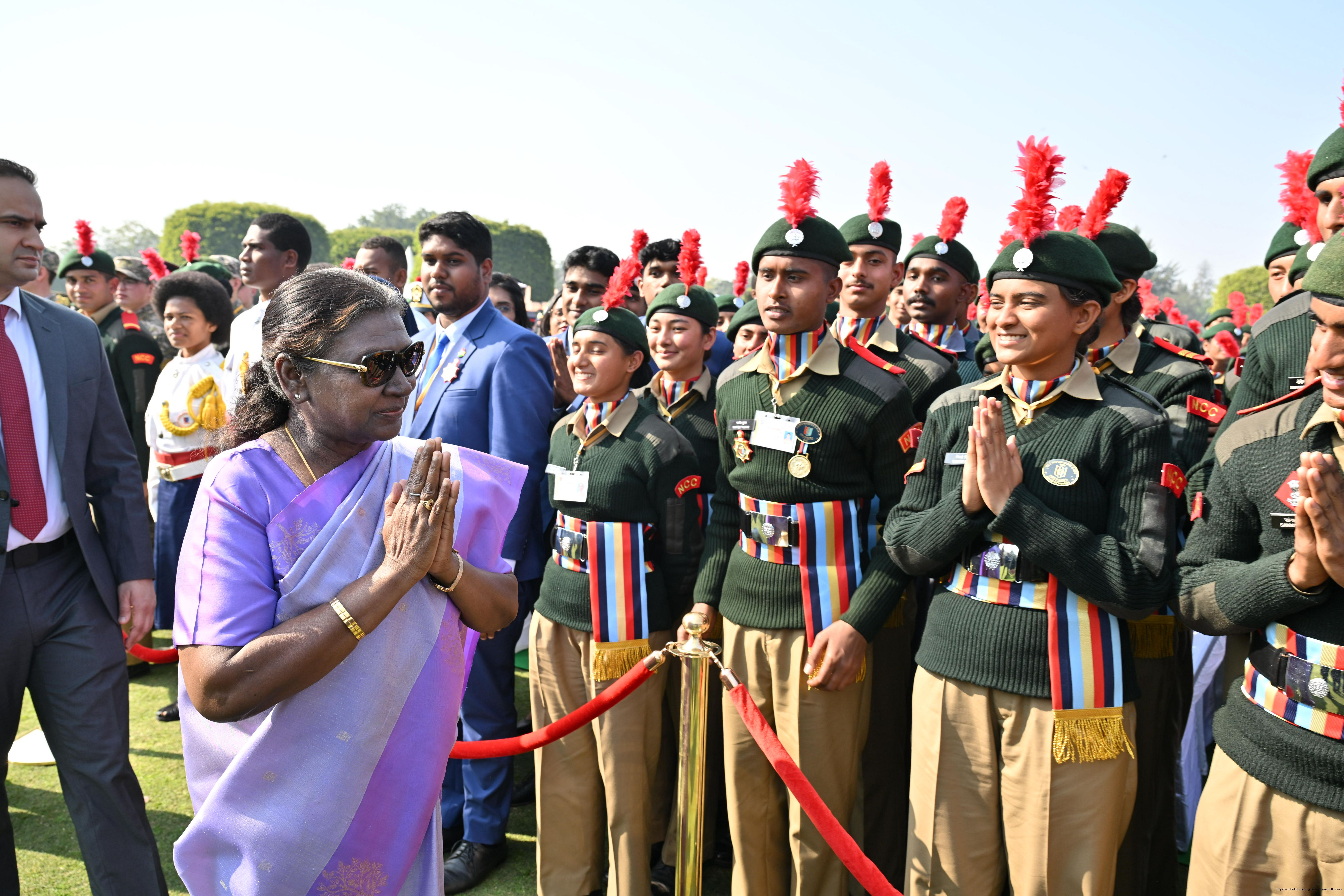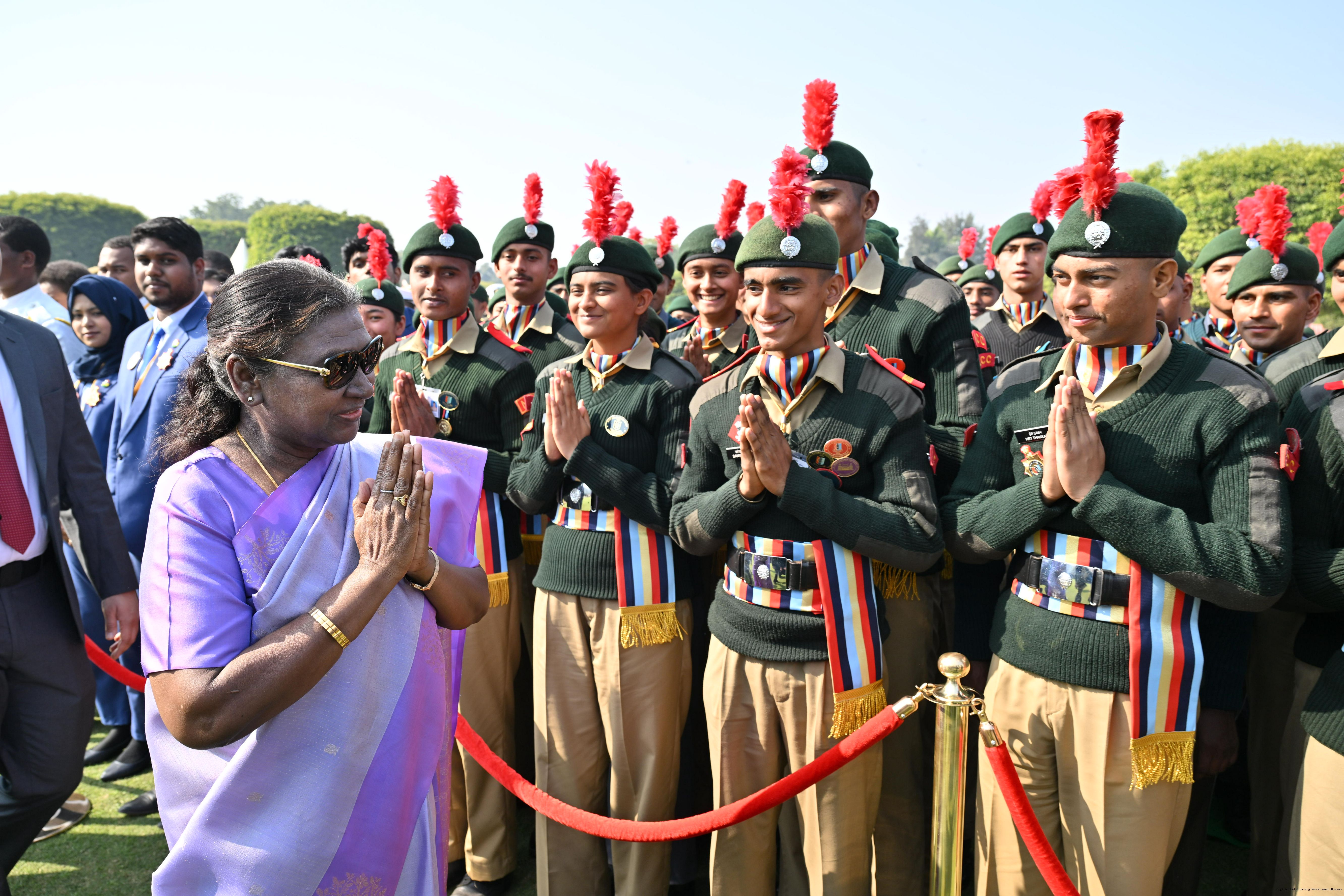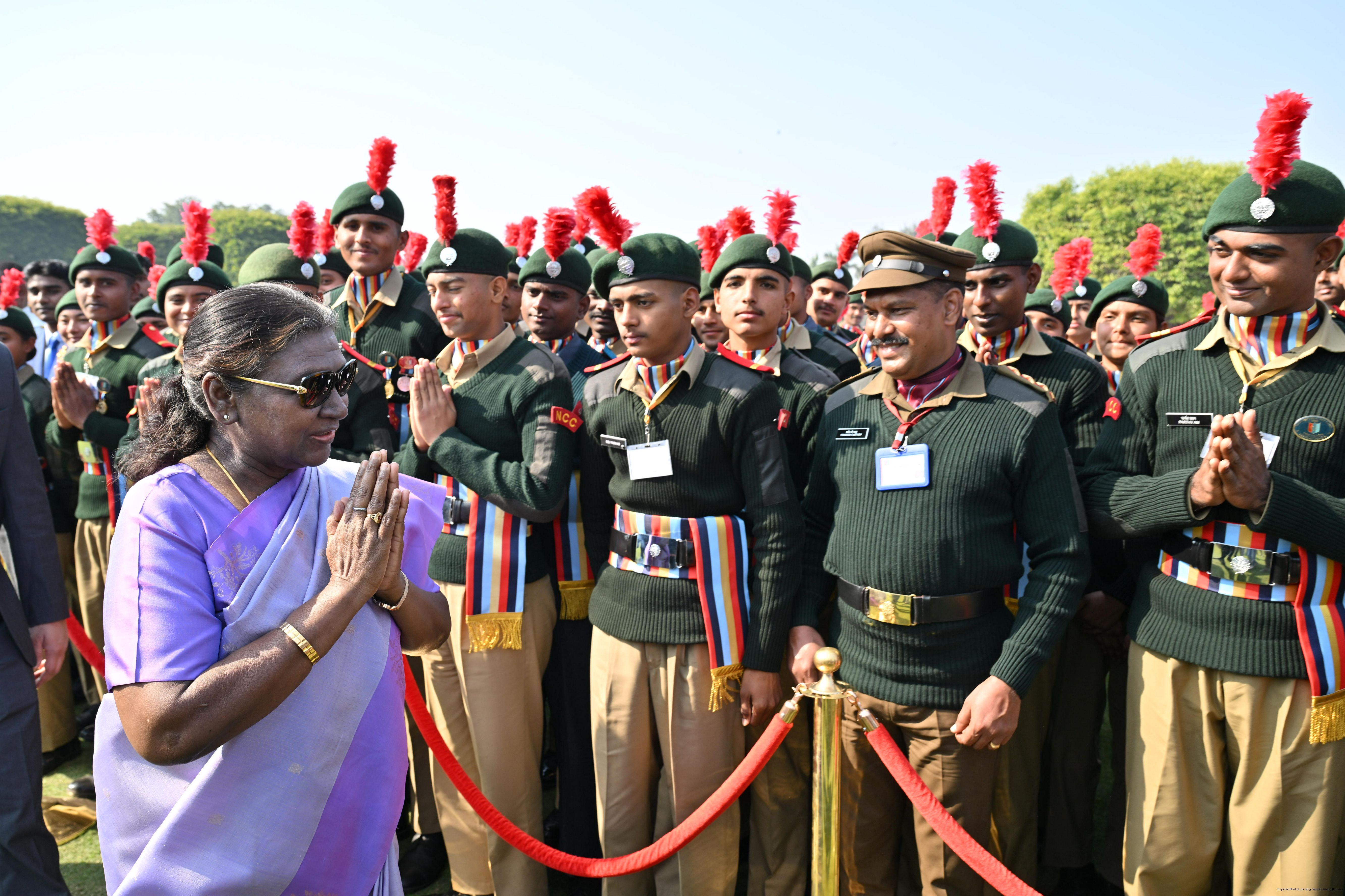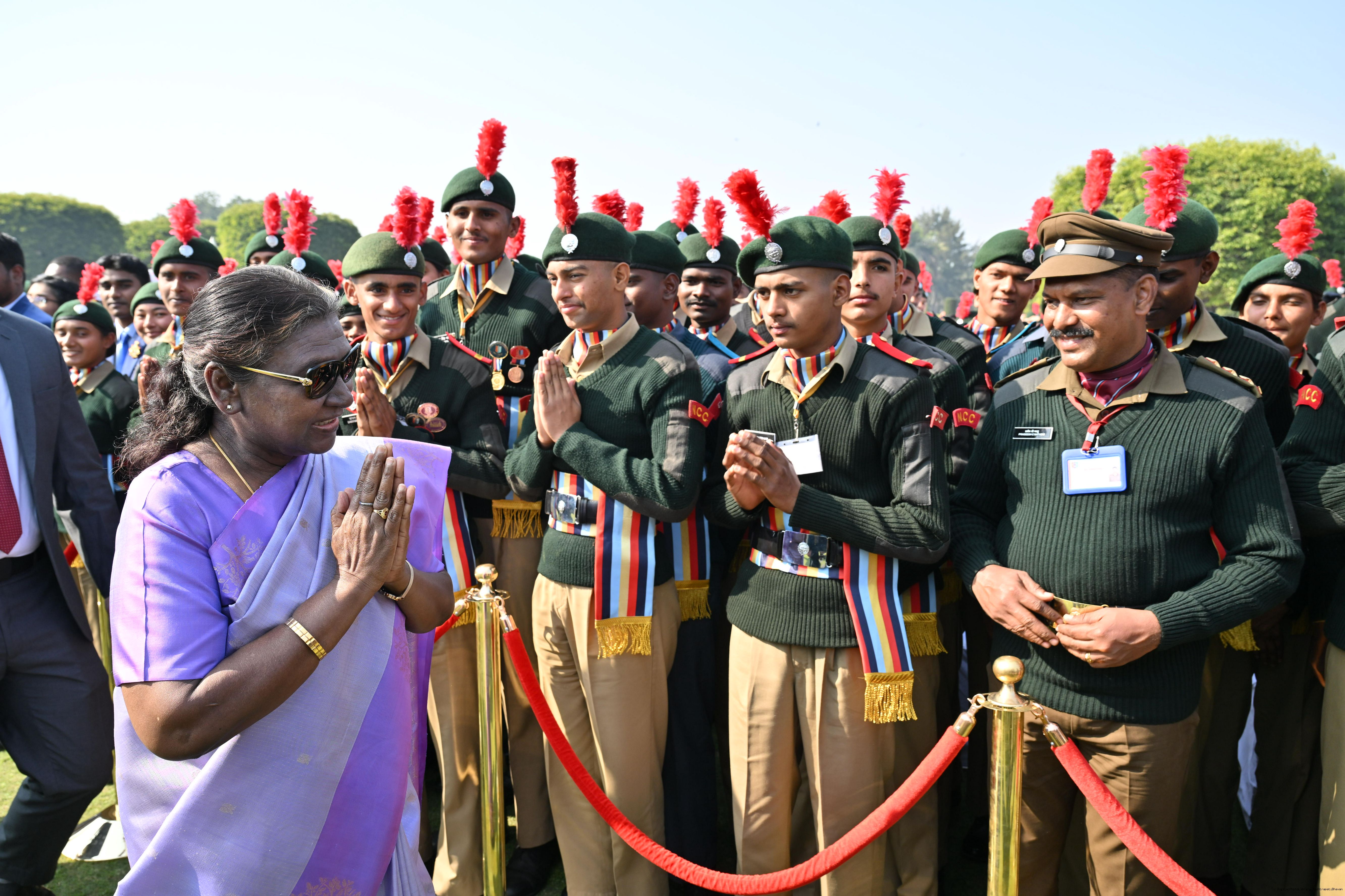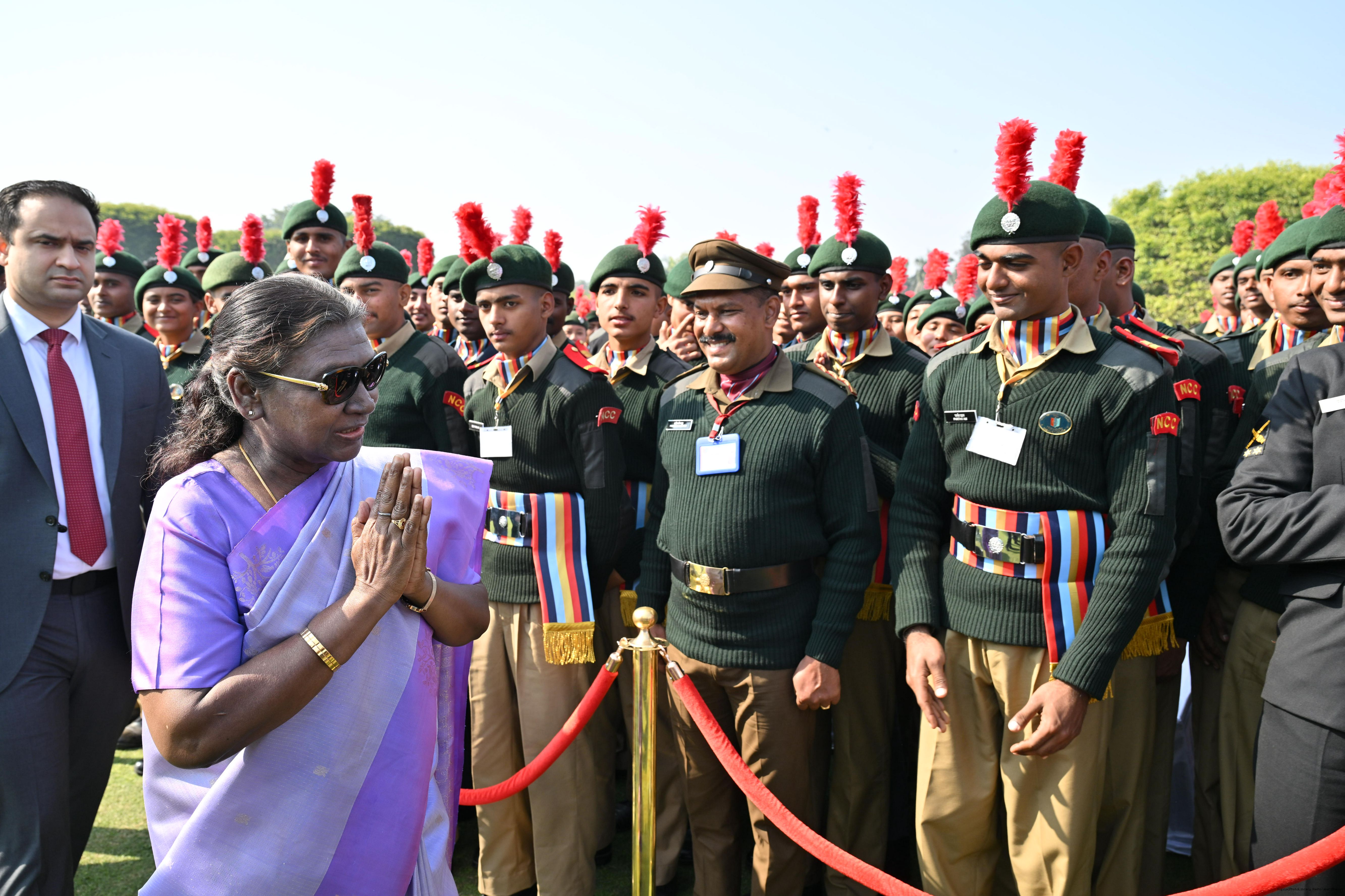 | Category: | The President met and posing a group photographs tribal guests, tableaux artistes and tractor drivers, NSS volunteers and NCC cadets, officials 28-01-2025 |