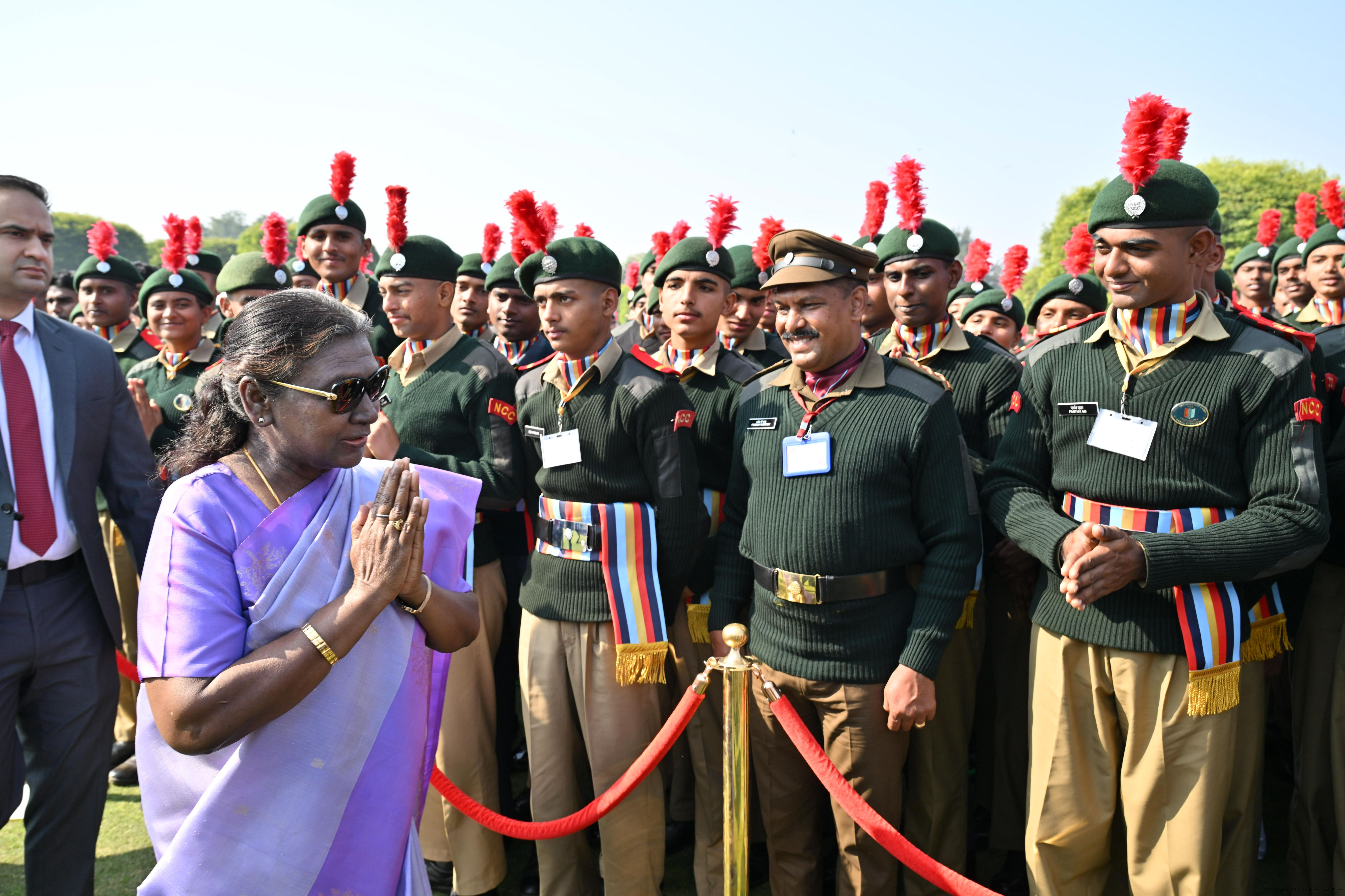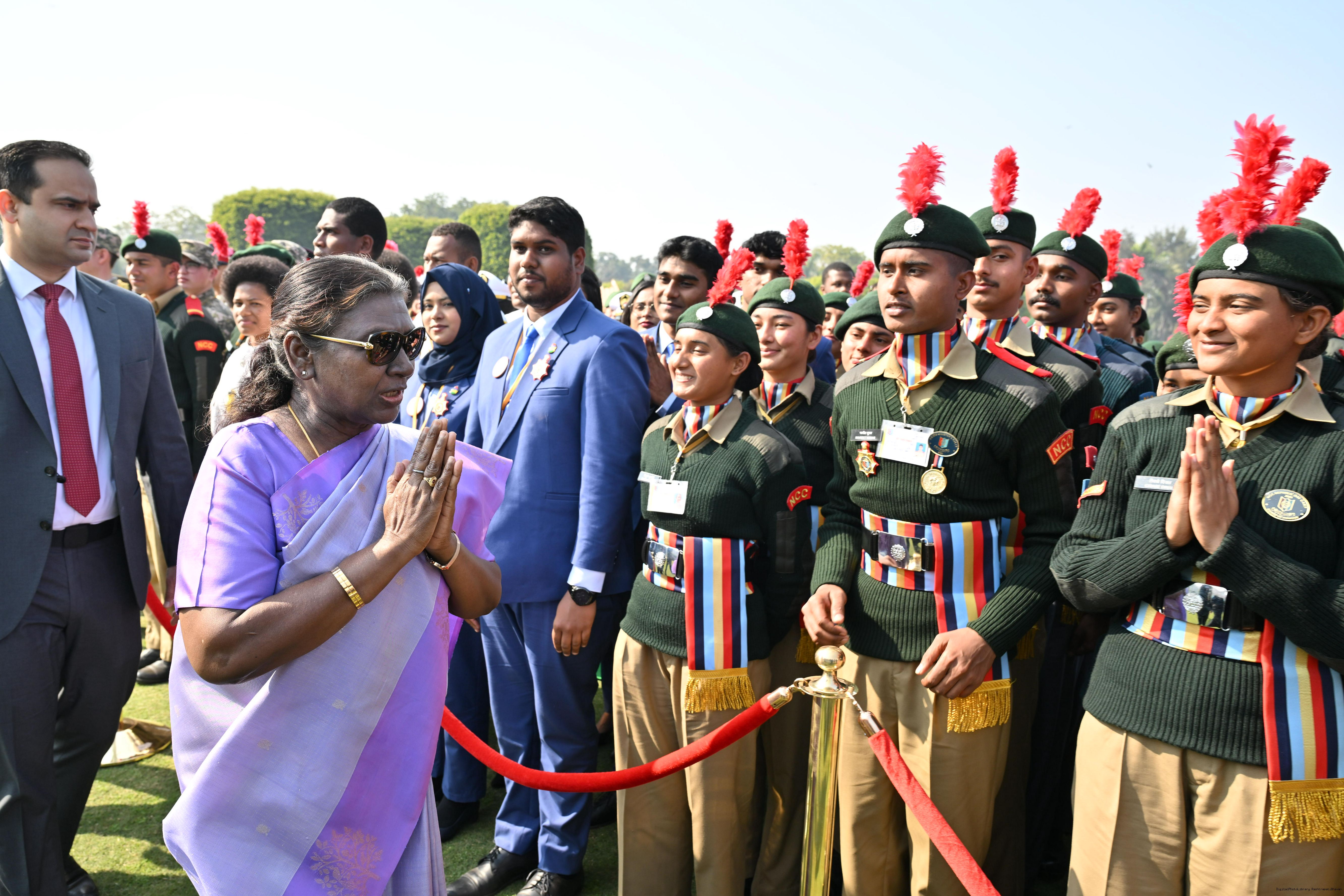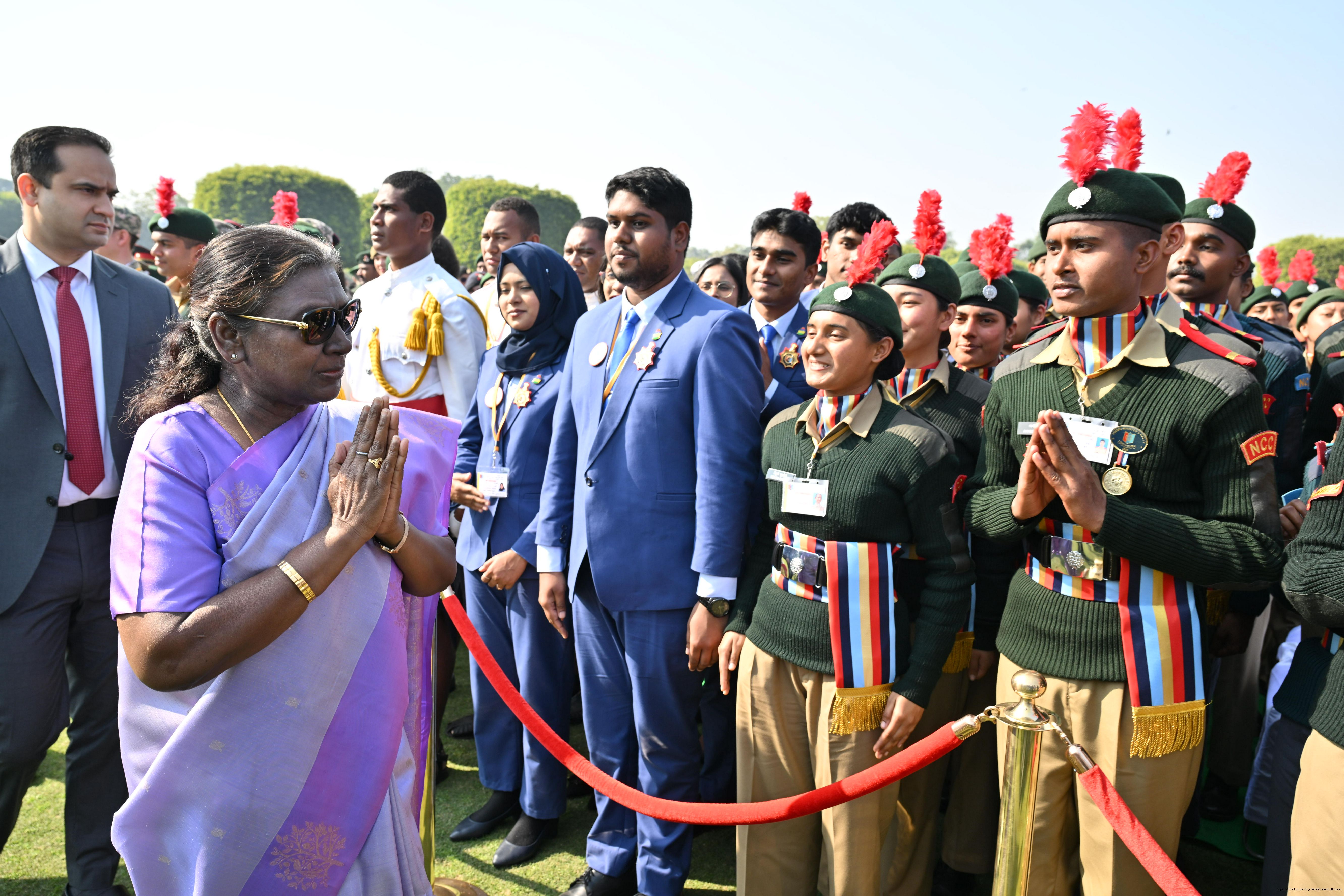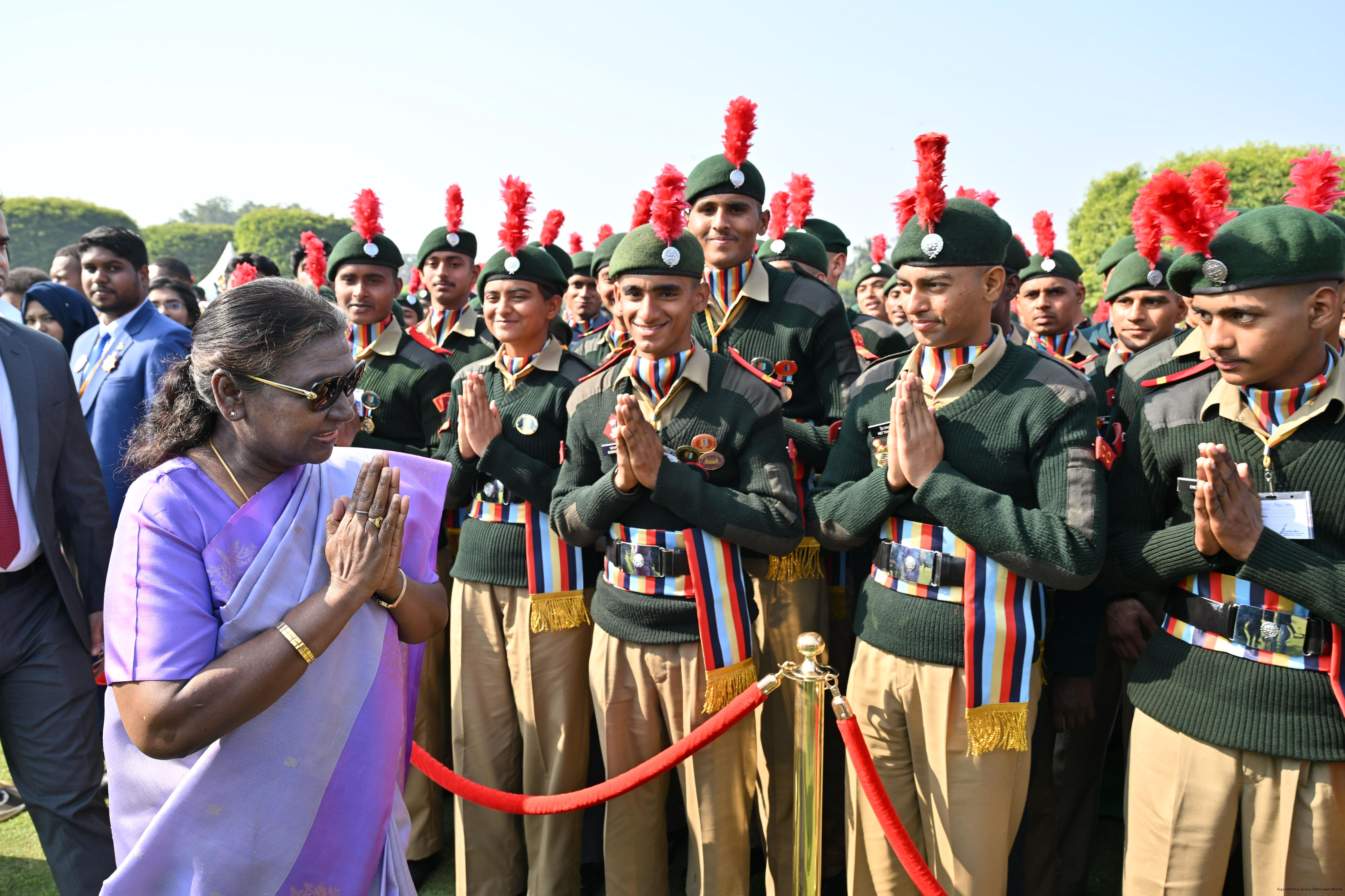 | Category: | The President met and posing a group photographs tribal guests, tableaux artistes and tractor drivers, NSS volunteers and NCC cadets, officials 28-01-2025 |