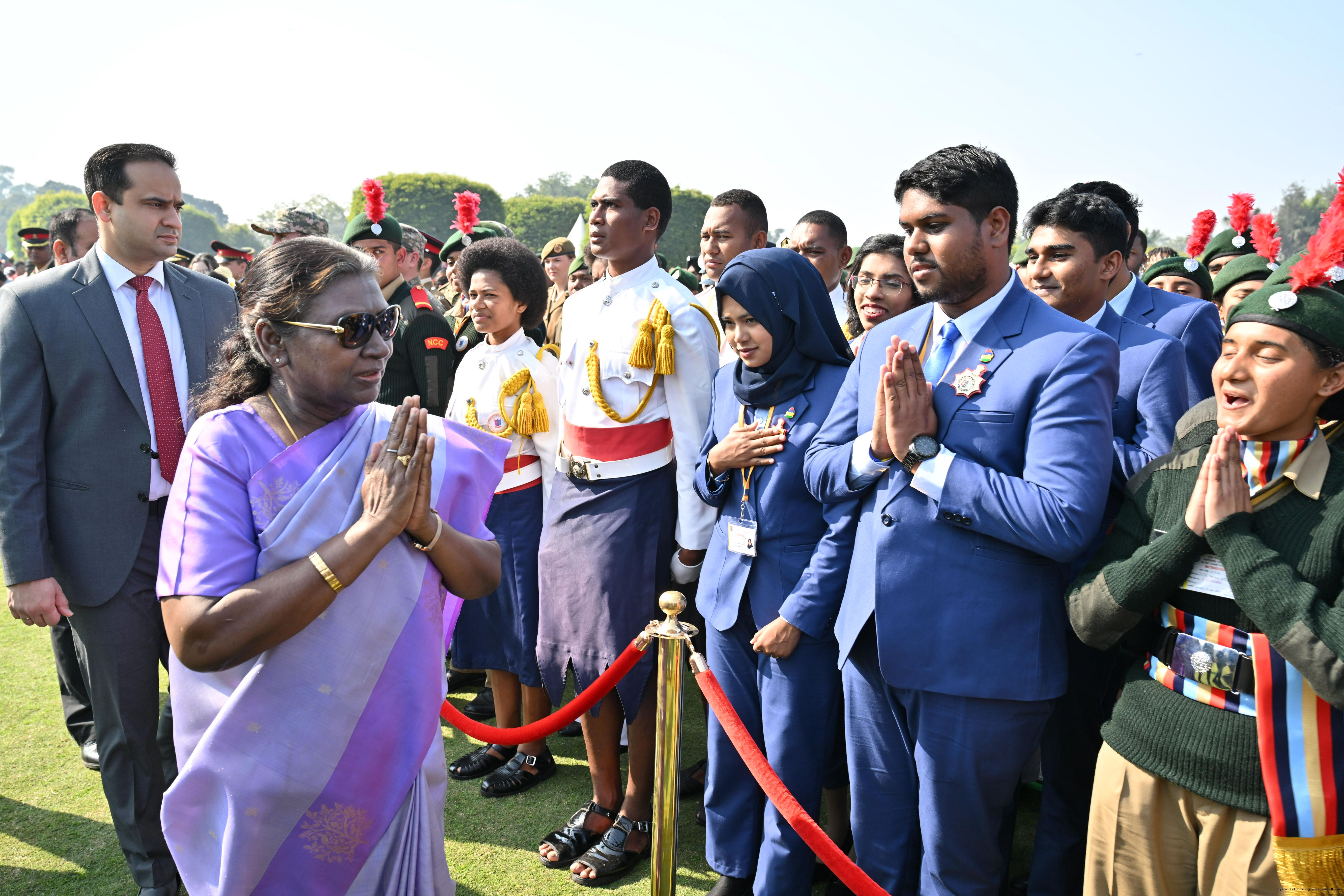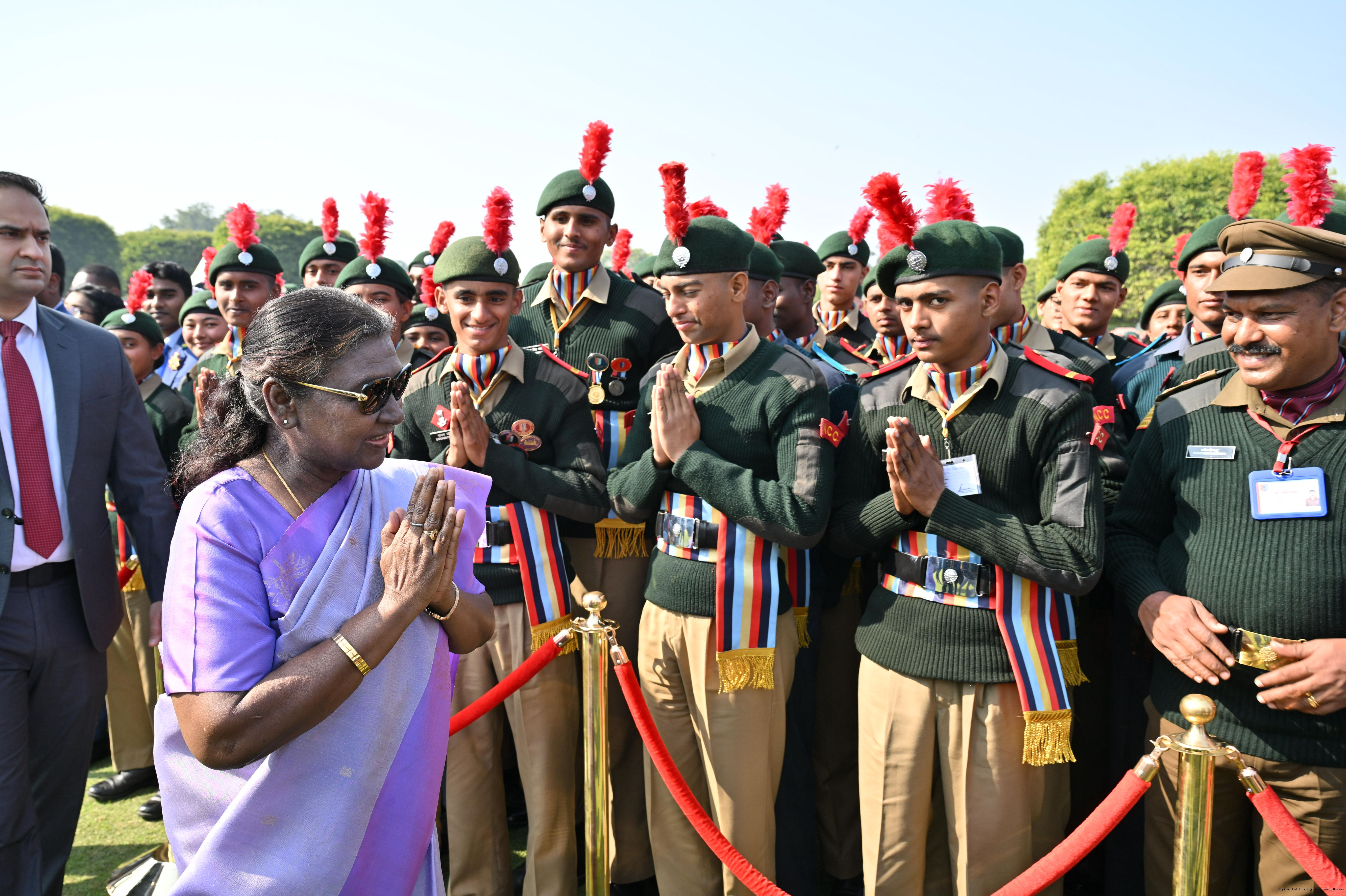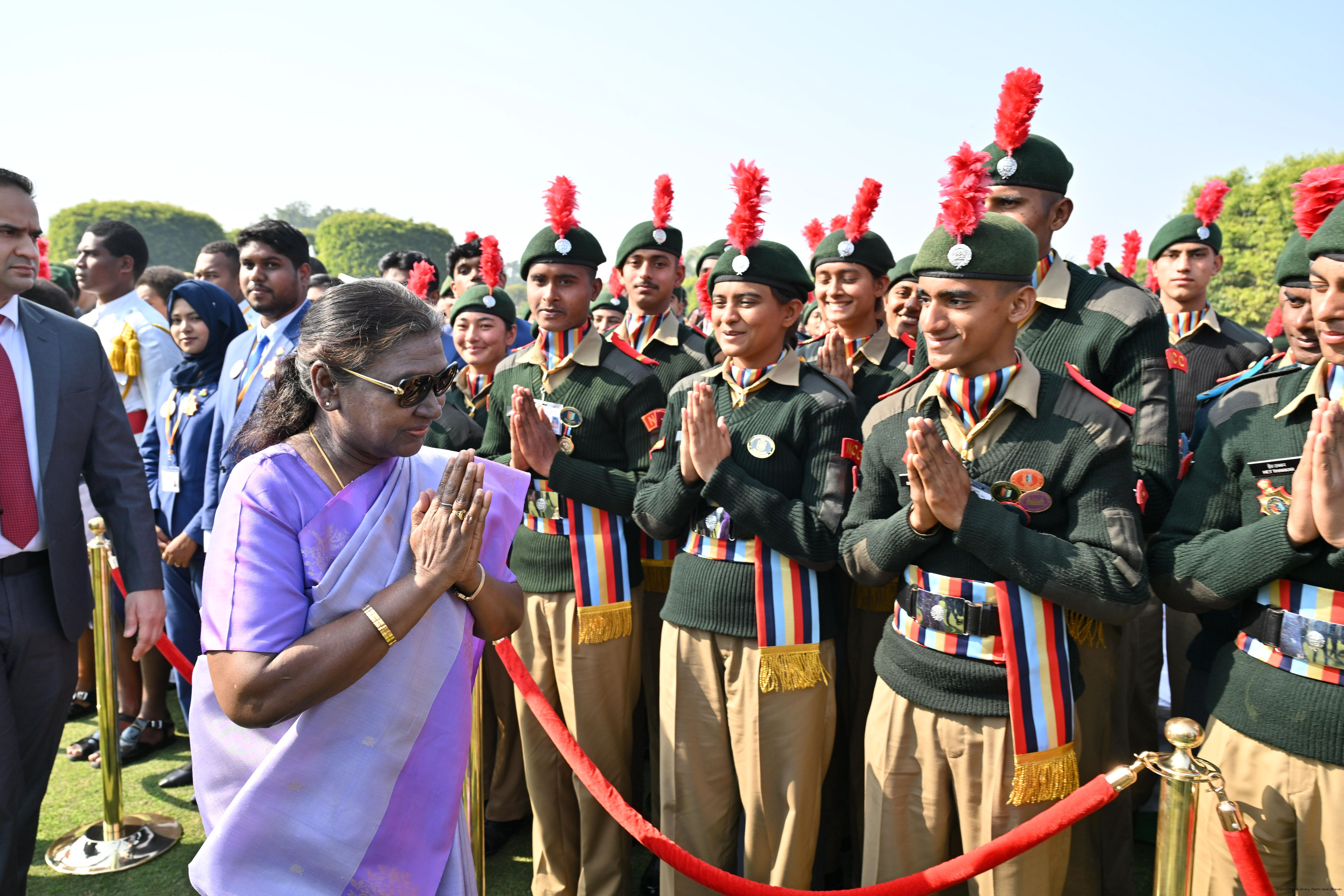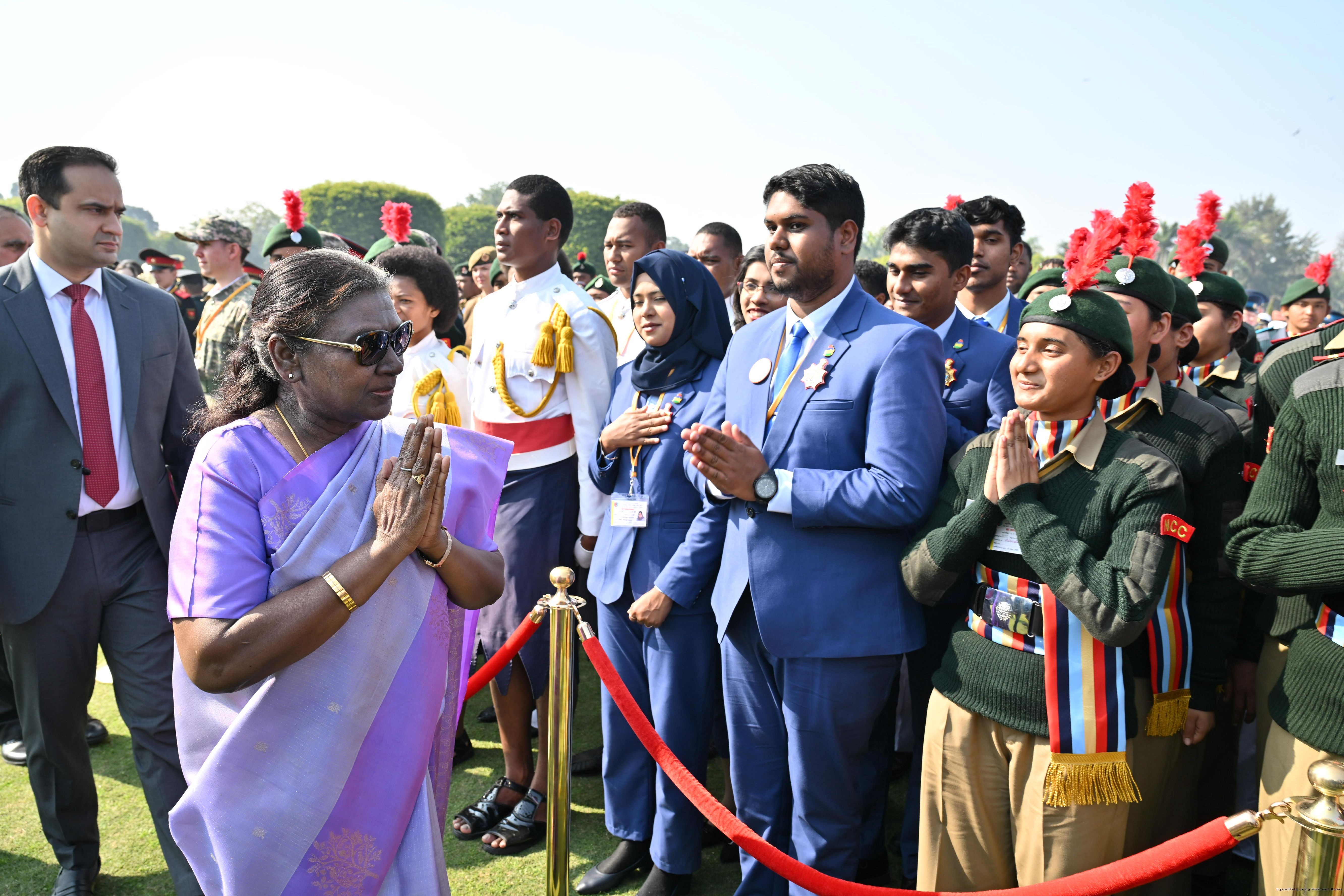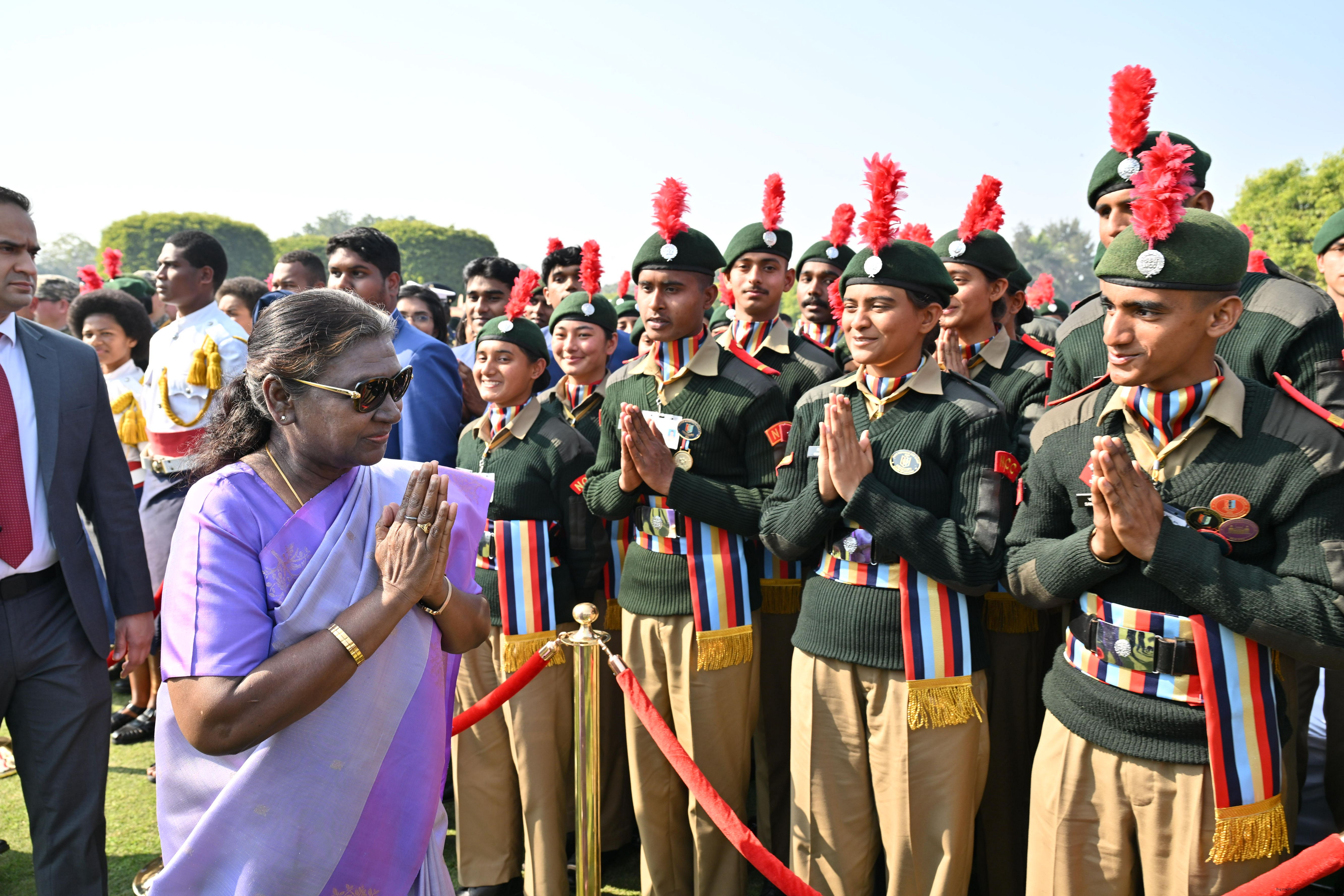 | Category: | The President met and posing a group photographs tribal guests, tableaux artistes and tractor drivers, NSS volunteers and NCC cadets, officials 28-01-2025 |