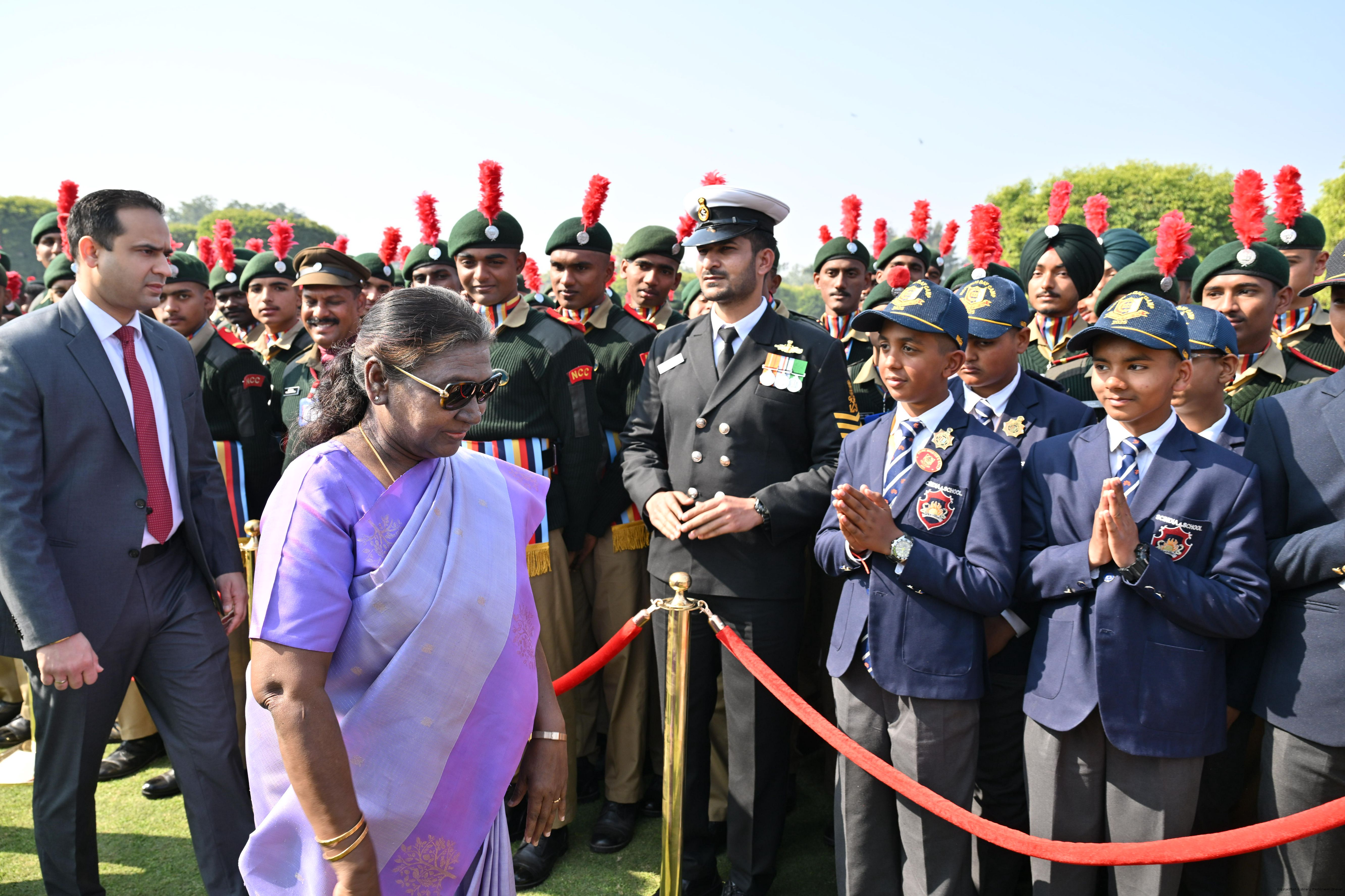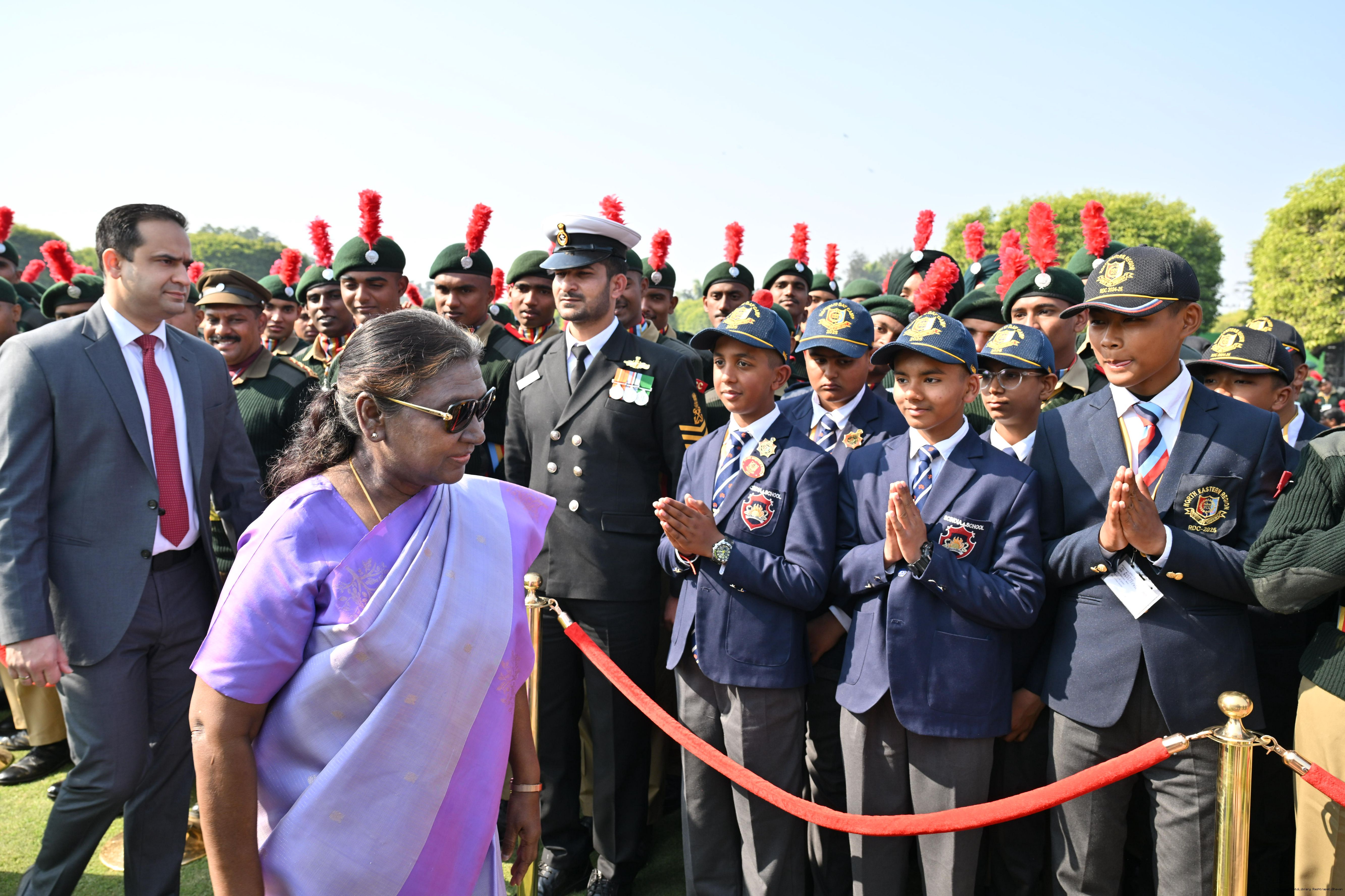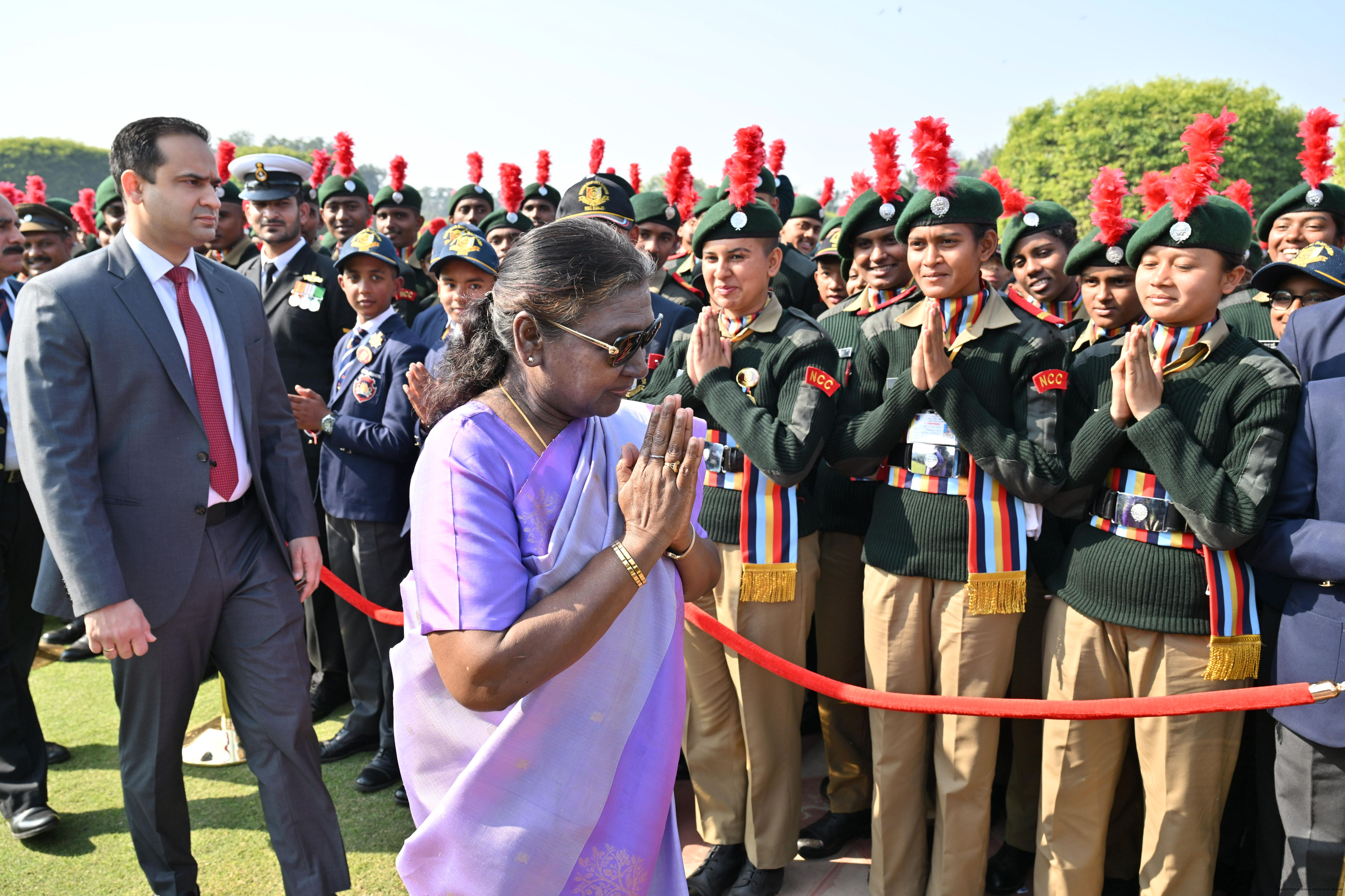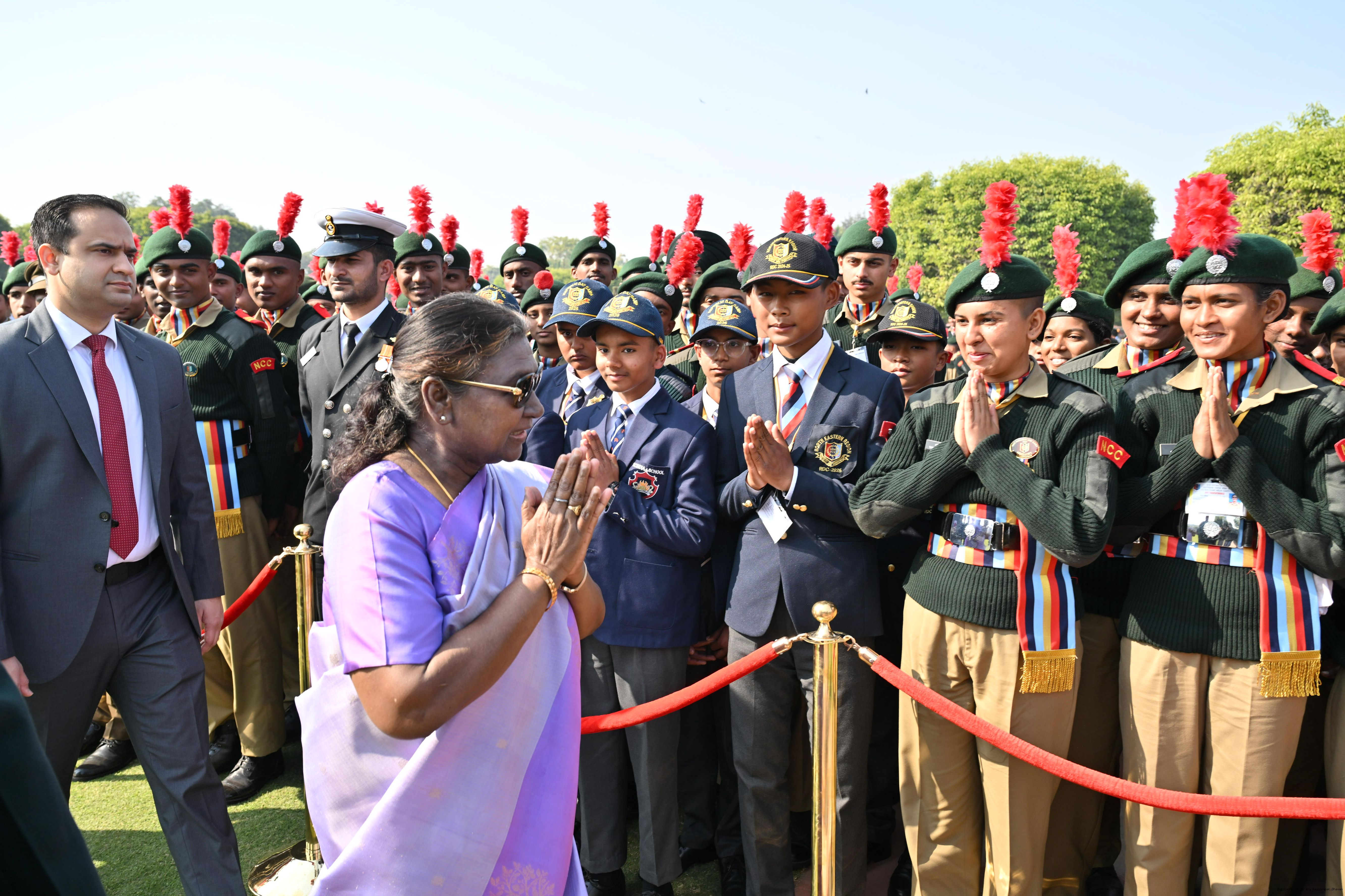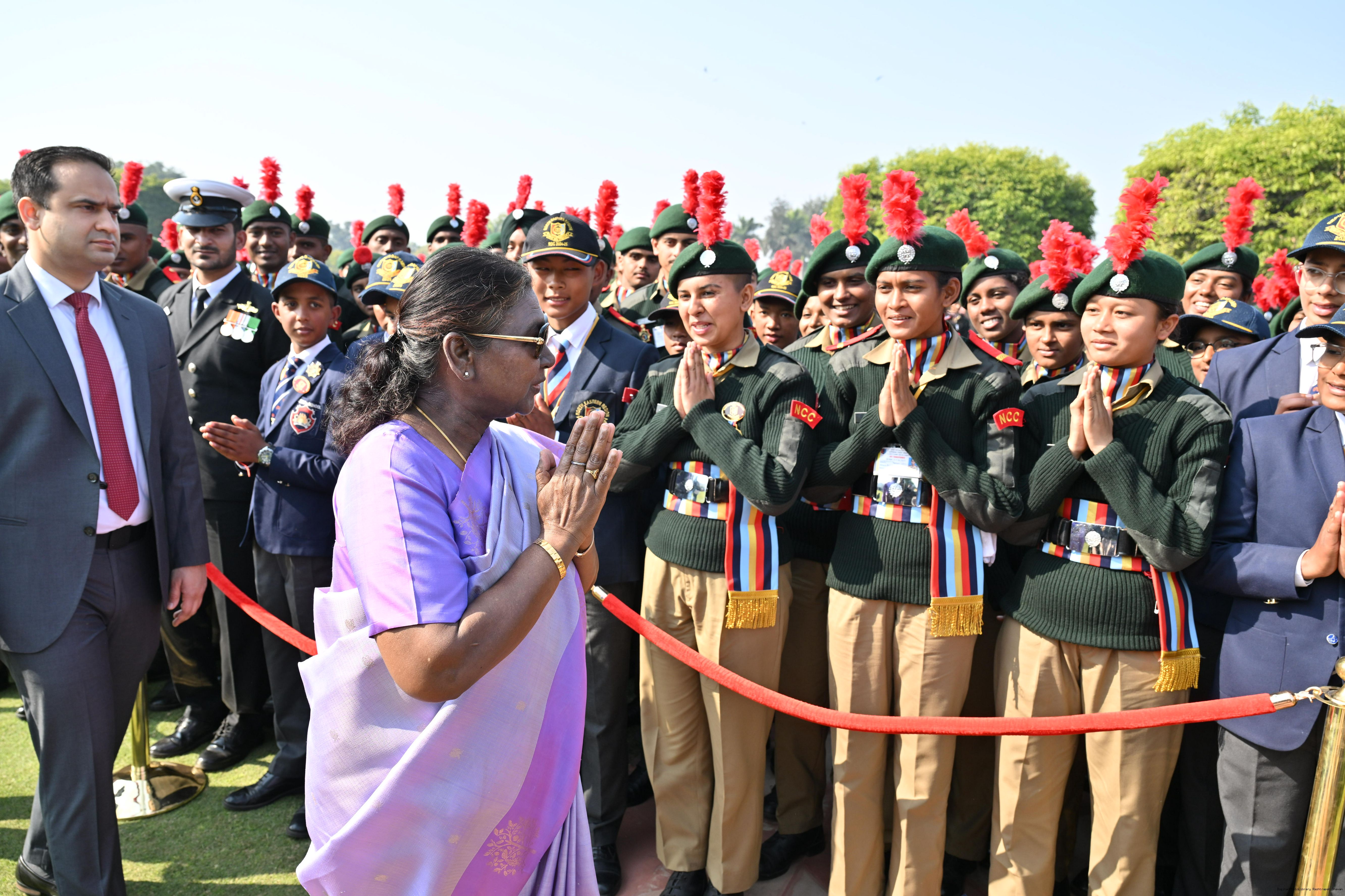 | Category: | The President met and posing a group photographs tribal guests, tableaux artistes and tractor drivers, NSS volunteers and NCC cadets, officials 28-01-2025 |