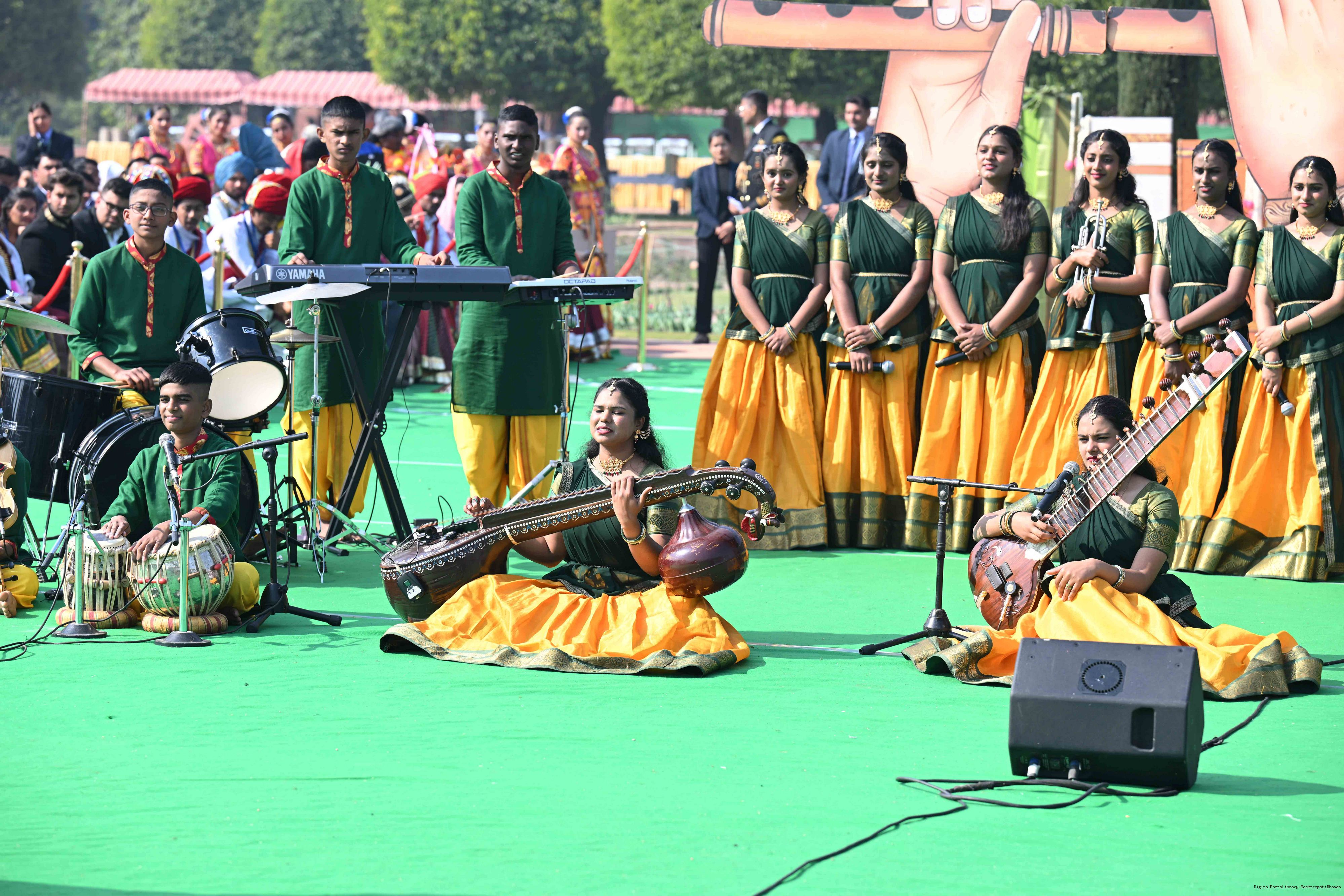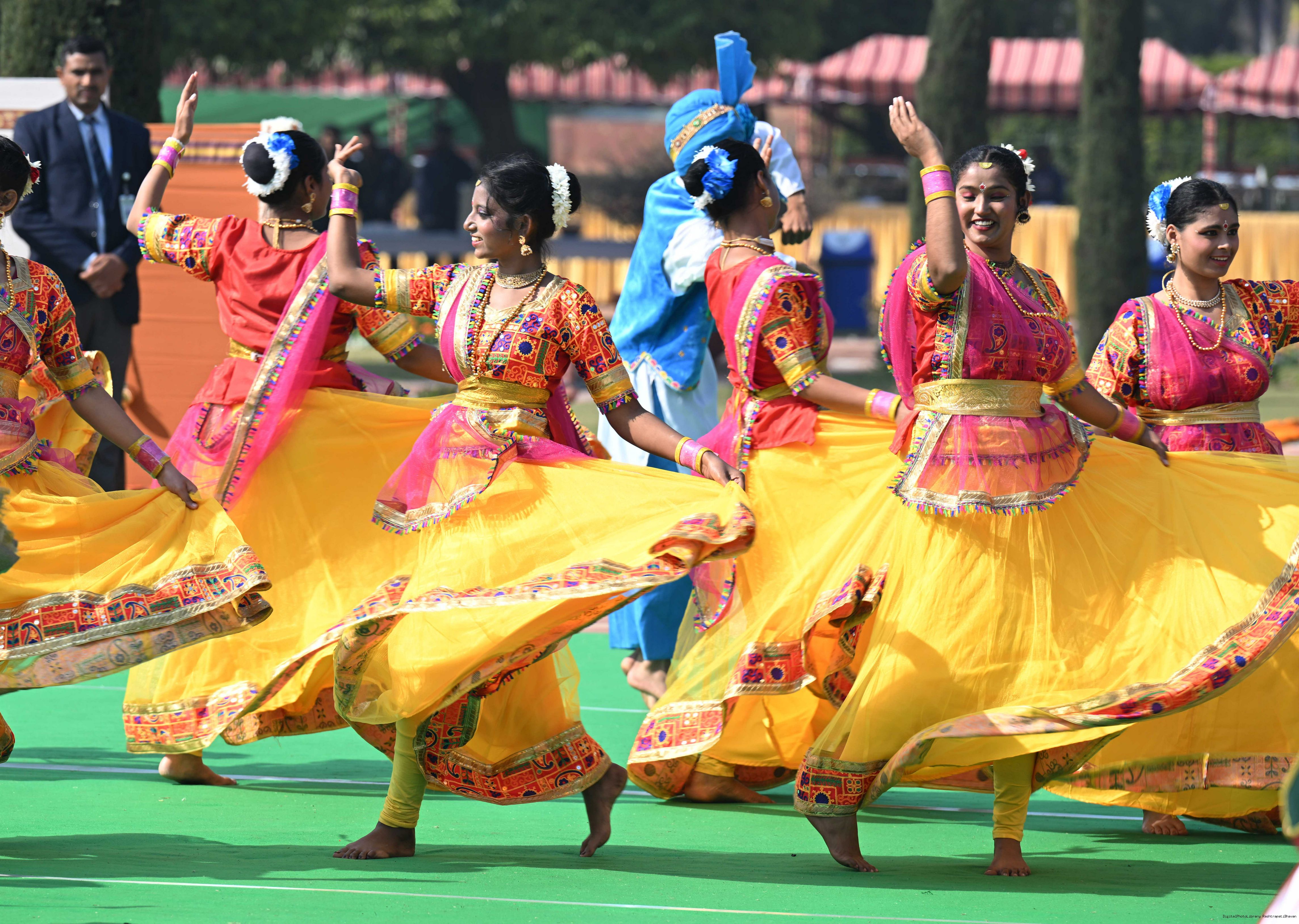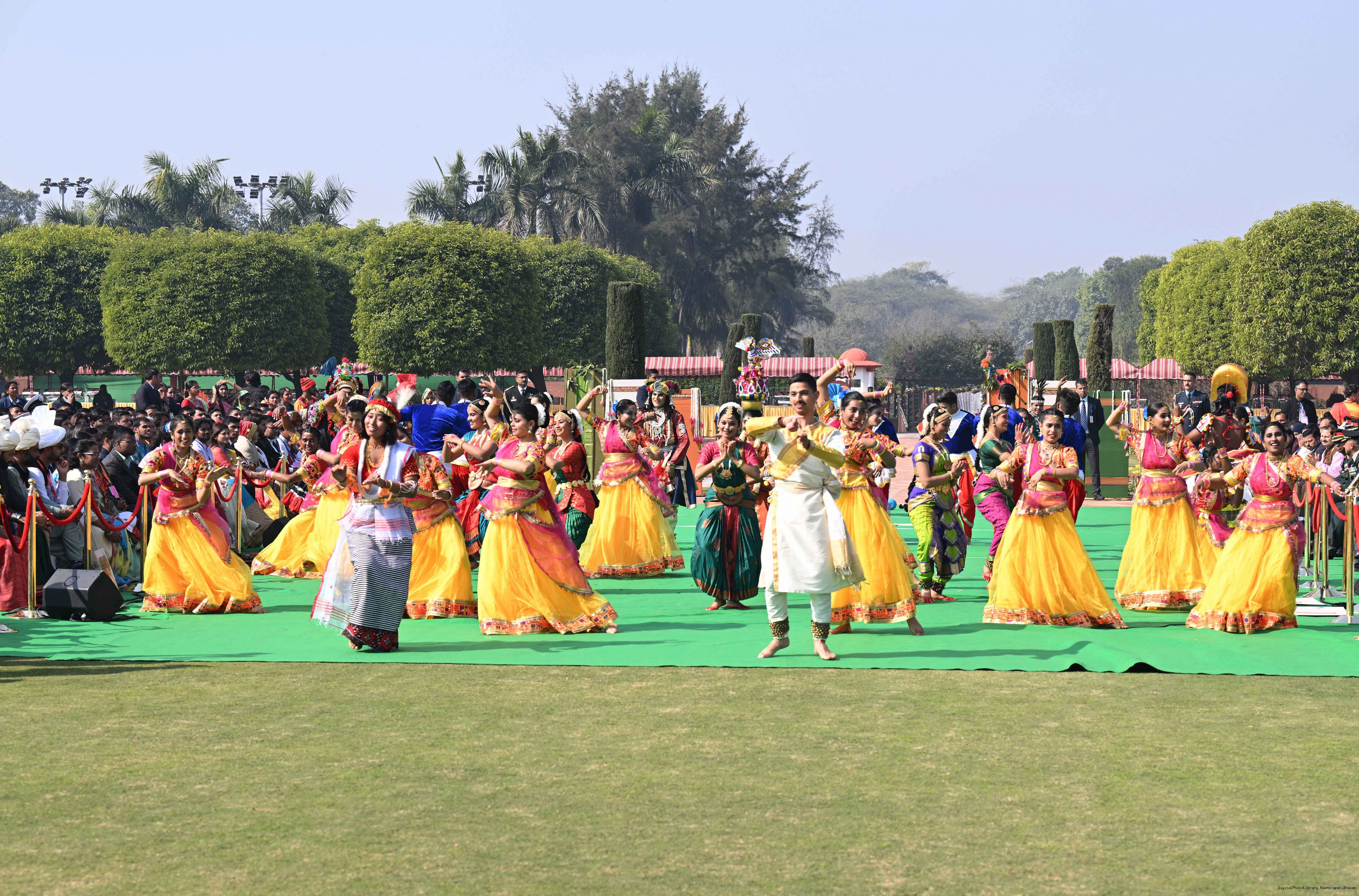 | Category: | The President met and posing a group photographs tribal guests, tableaux artistes and tractor drivers, NSS volunteers and NCC cadets, officials 28-01-2025 |