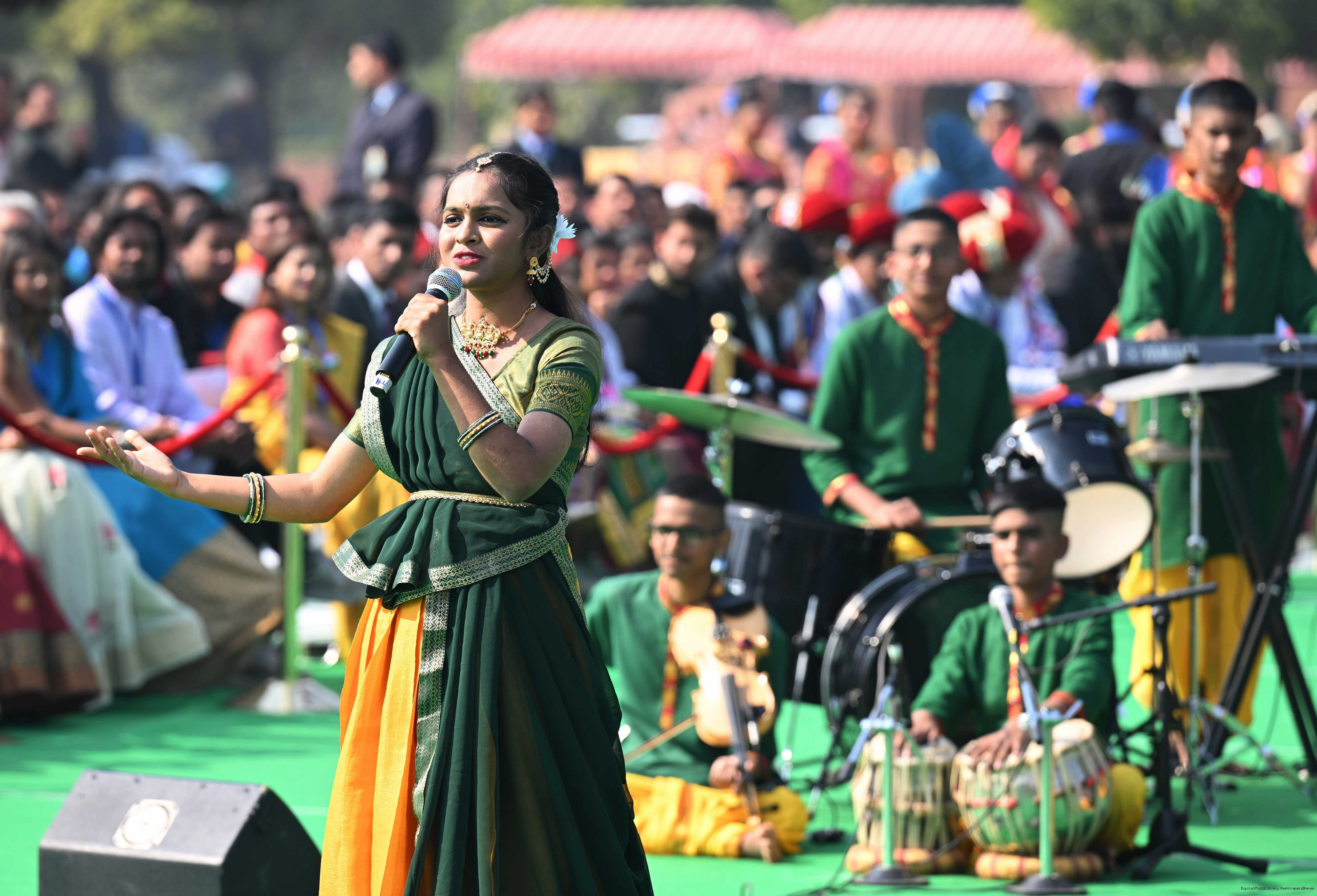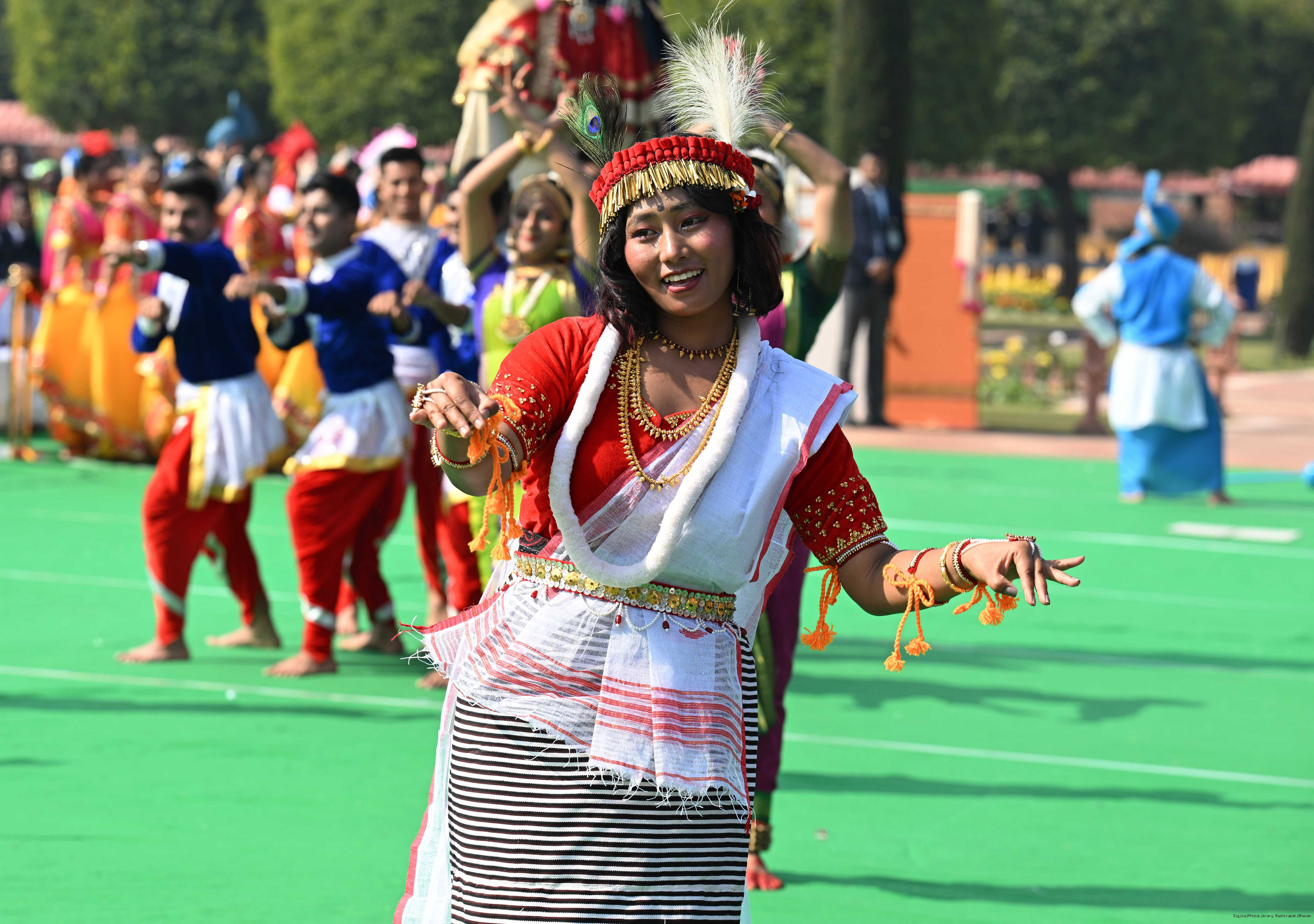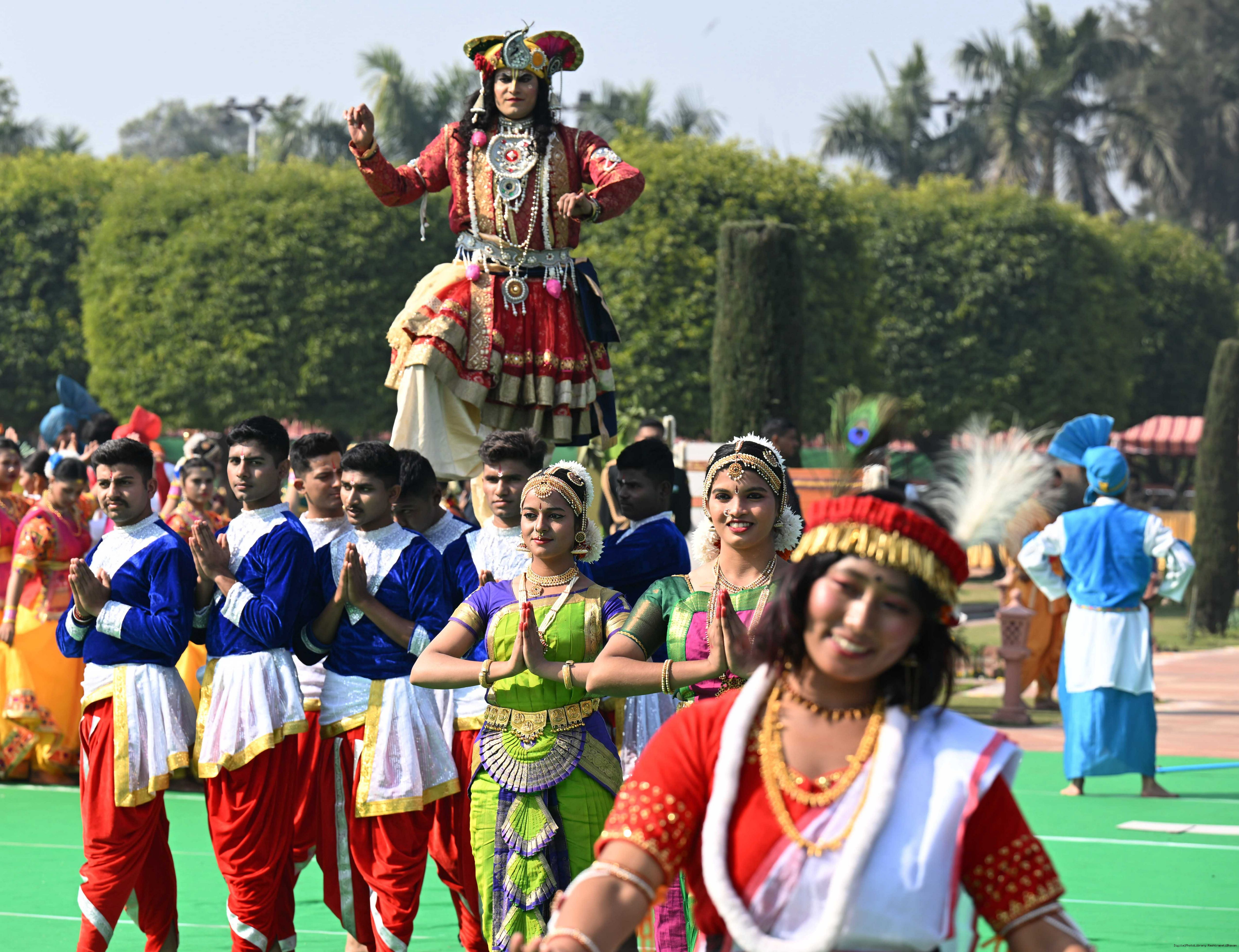 | Category: | The President met and posing a group photographs tribal guests, tableaux artistes and tractor drivers, NSS volunteers and NCC cadets, officials 28-01-2025 |
