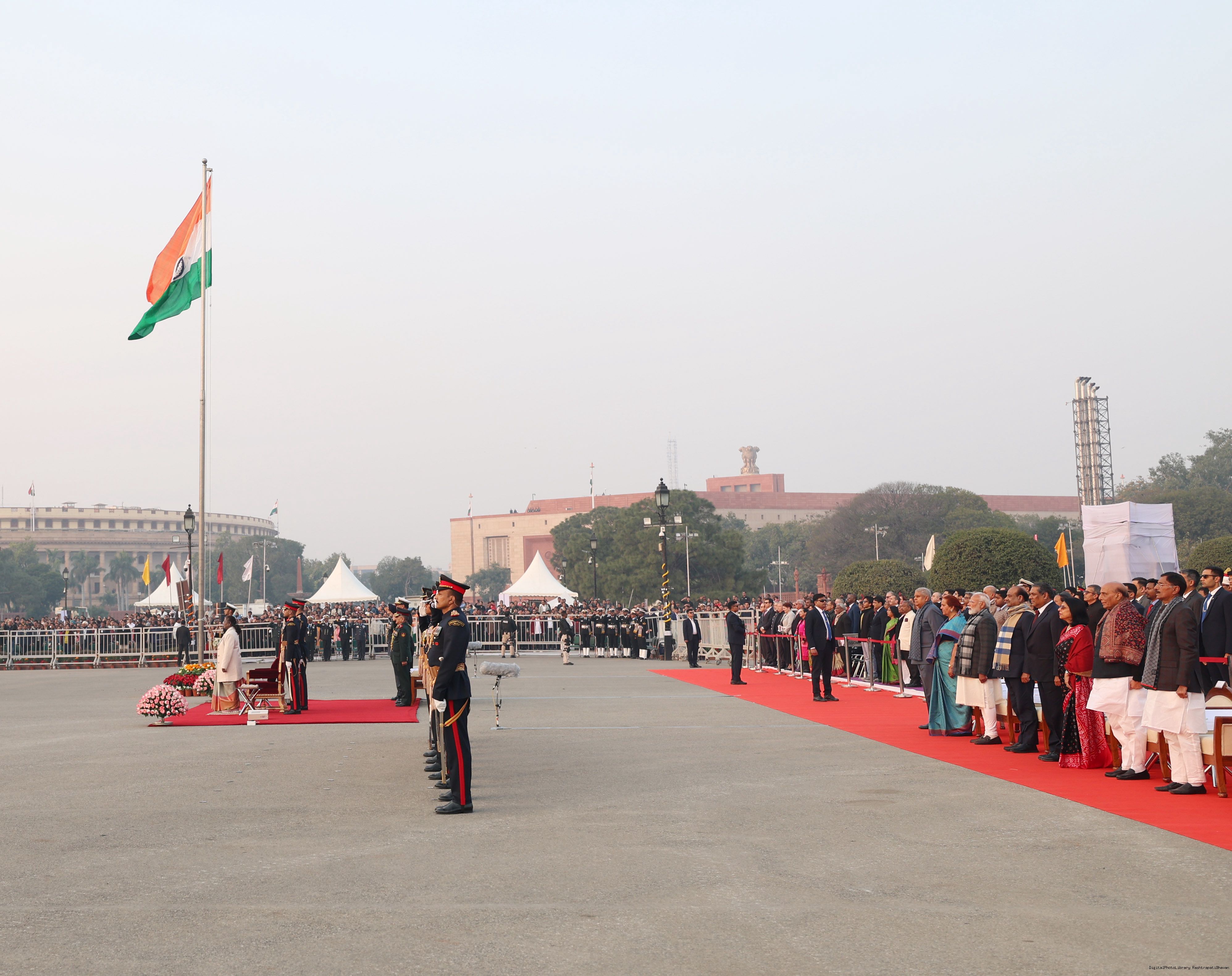 | Caption: | The President of India, Smt. Droupadi Murmu witnessing ‘The Beating Retreat Ceremony – 2025' at Vijay Chowk in New Delhi on January 29, 2025. |