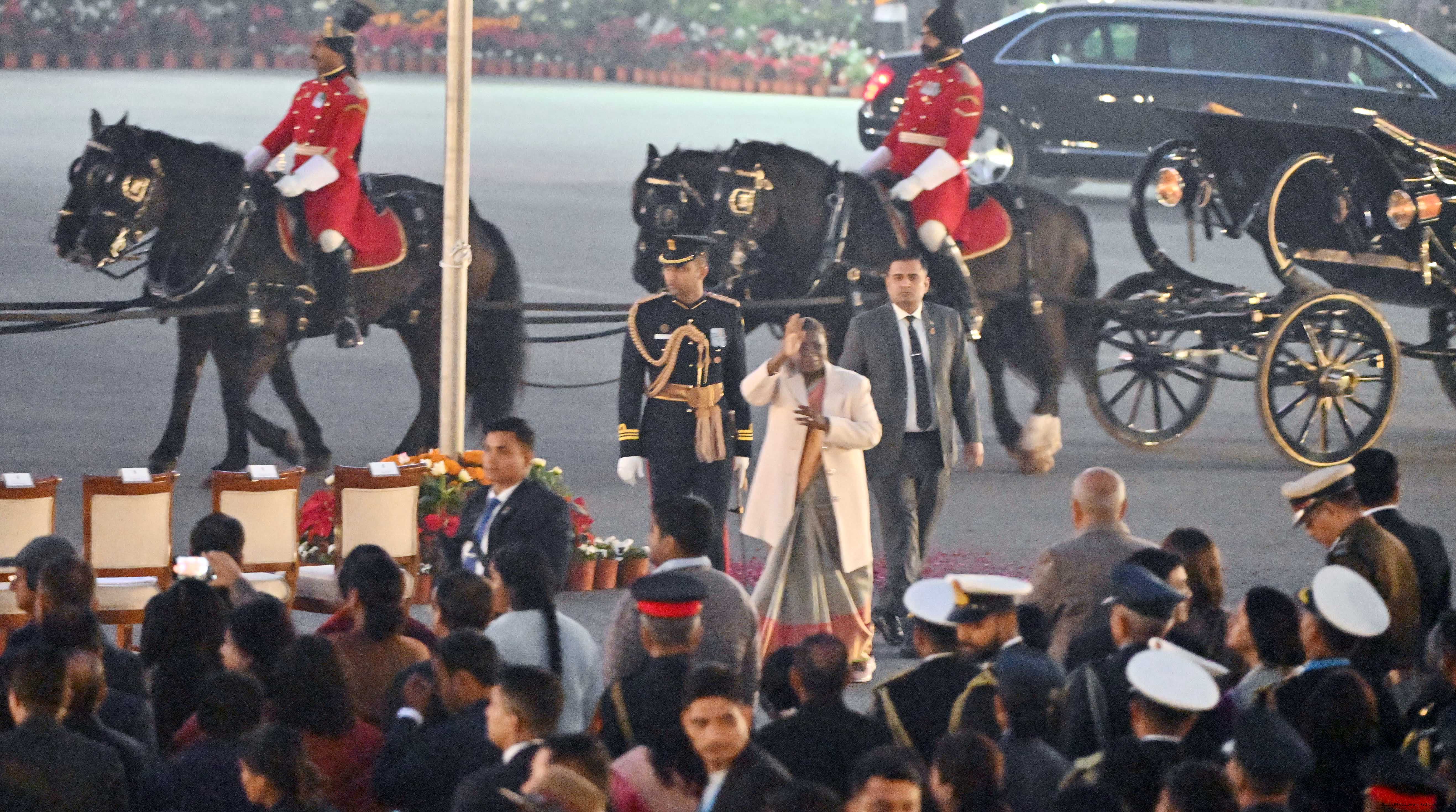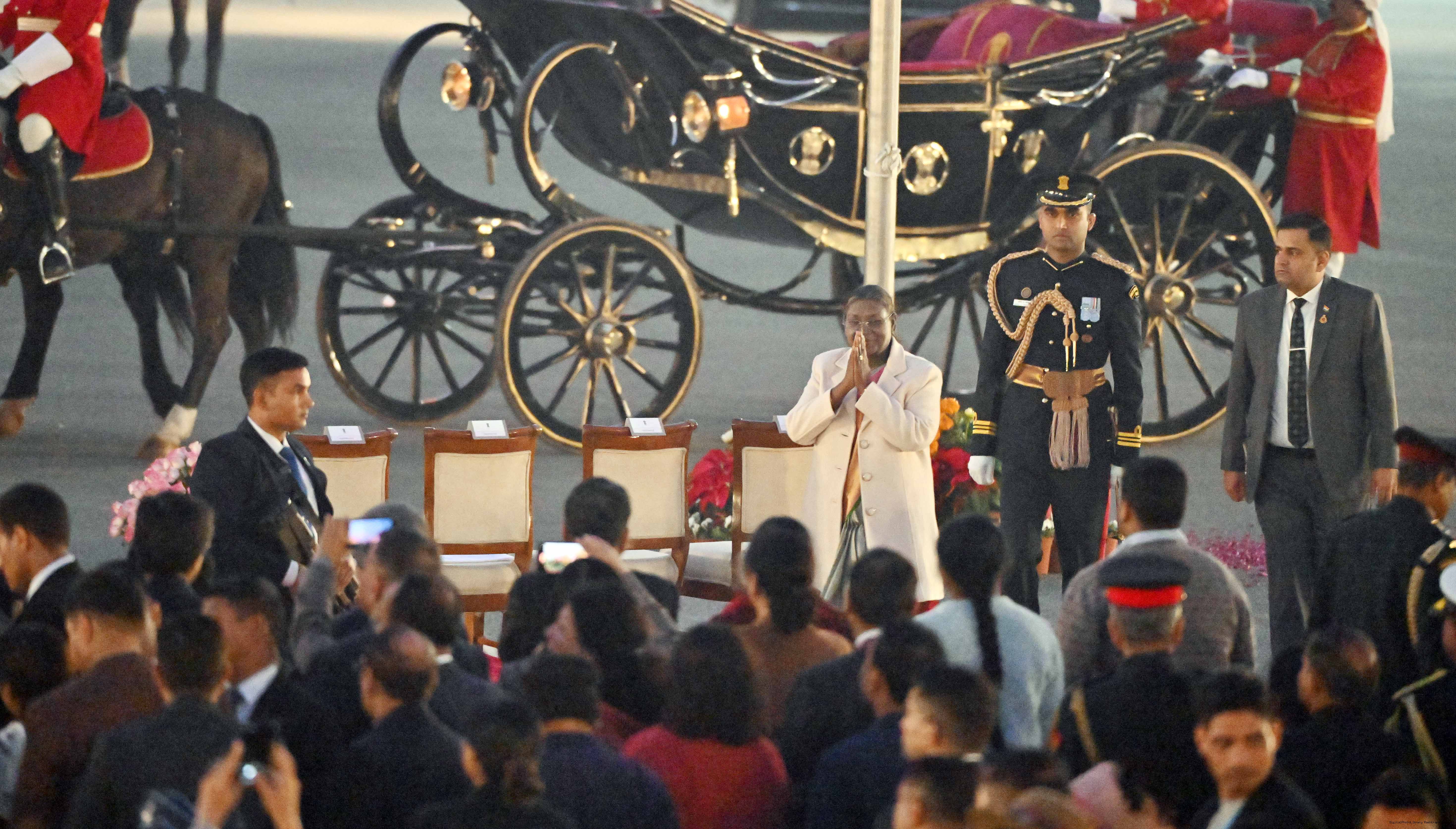 | Caption: | The President of India, Smt. Droupadi Murmu witnessing ‘The Beating Retreat Ceremony – 2025' at Vijay Chowk in New Delhi on January 29, 2025. |