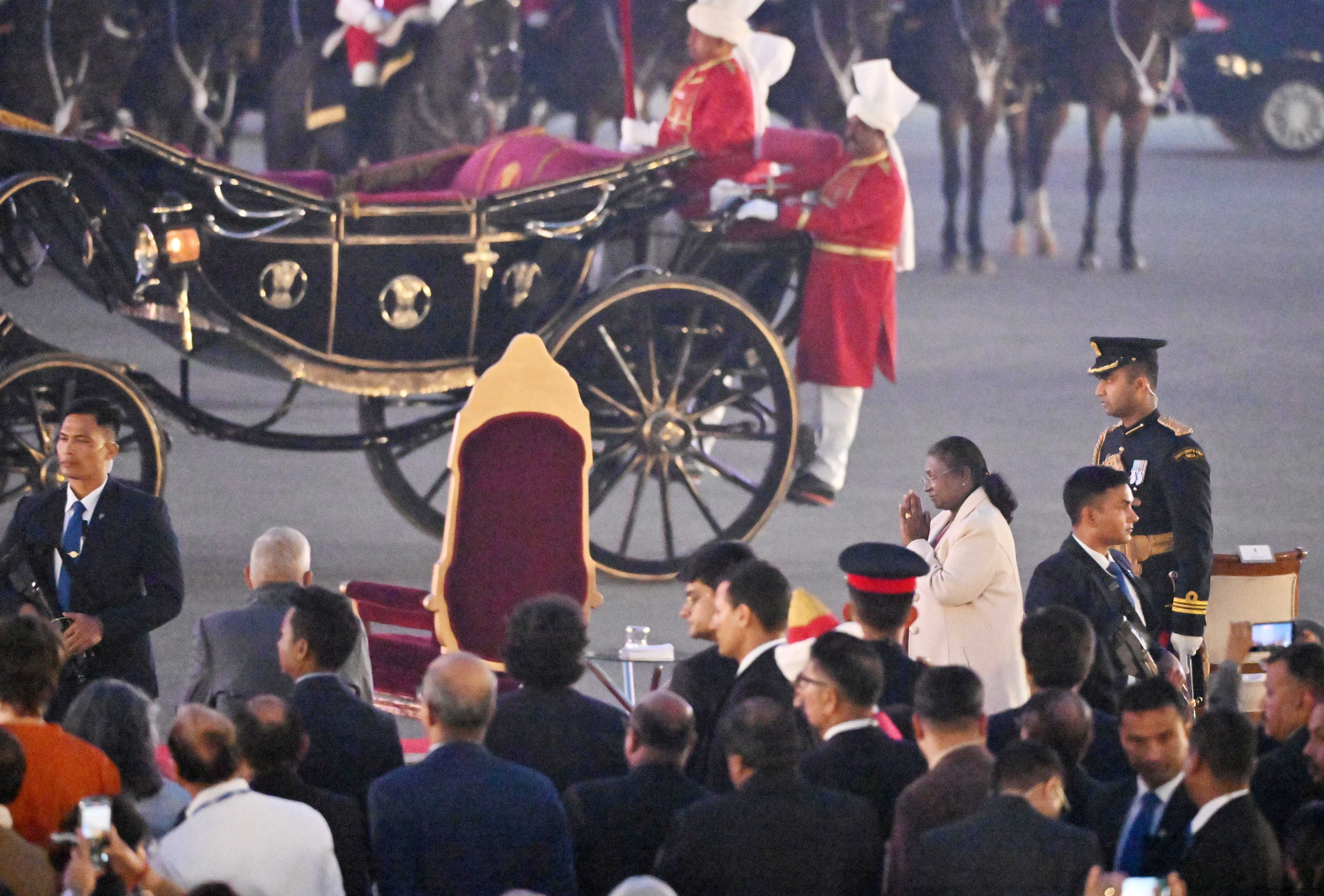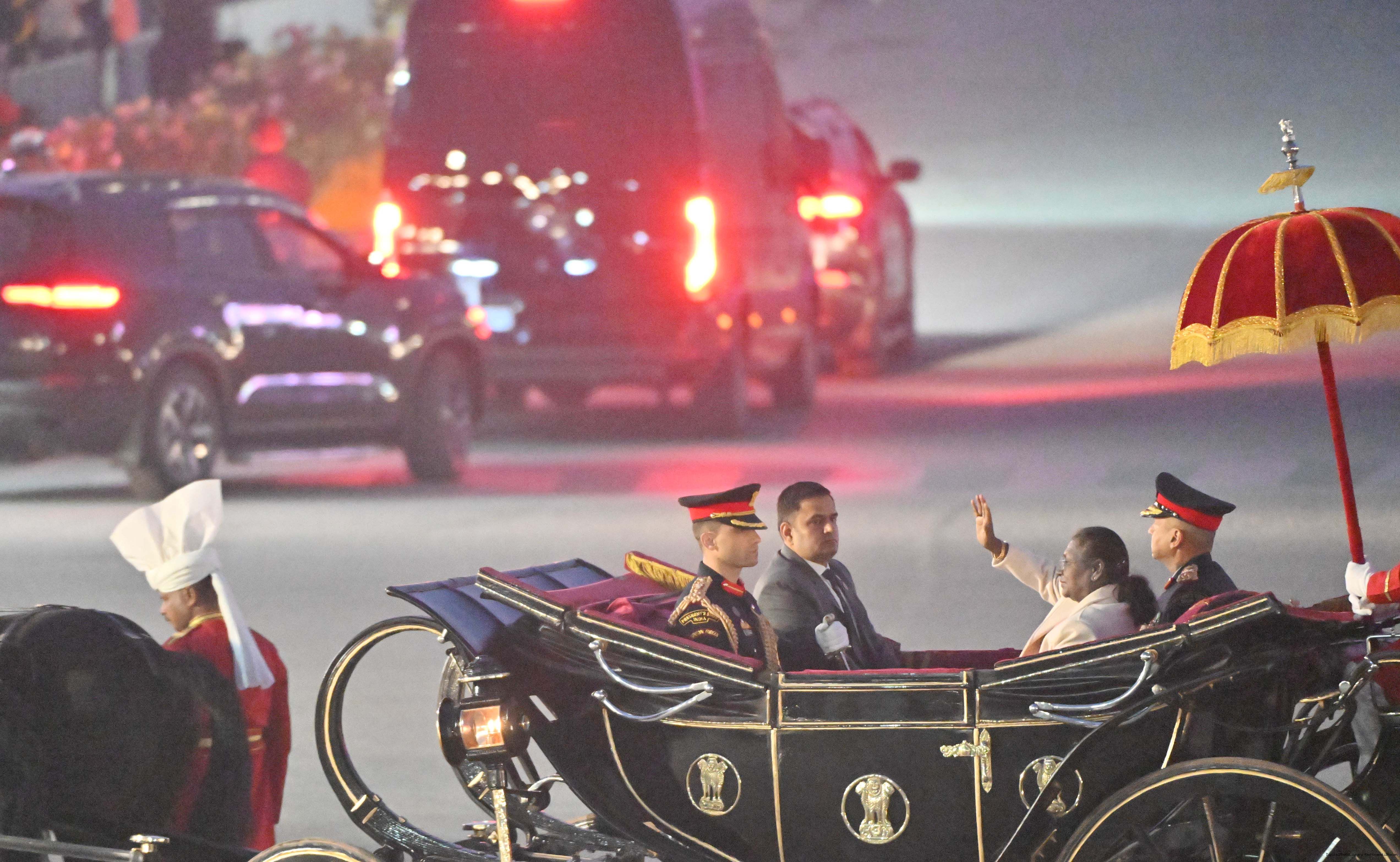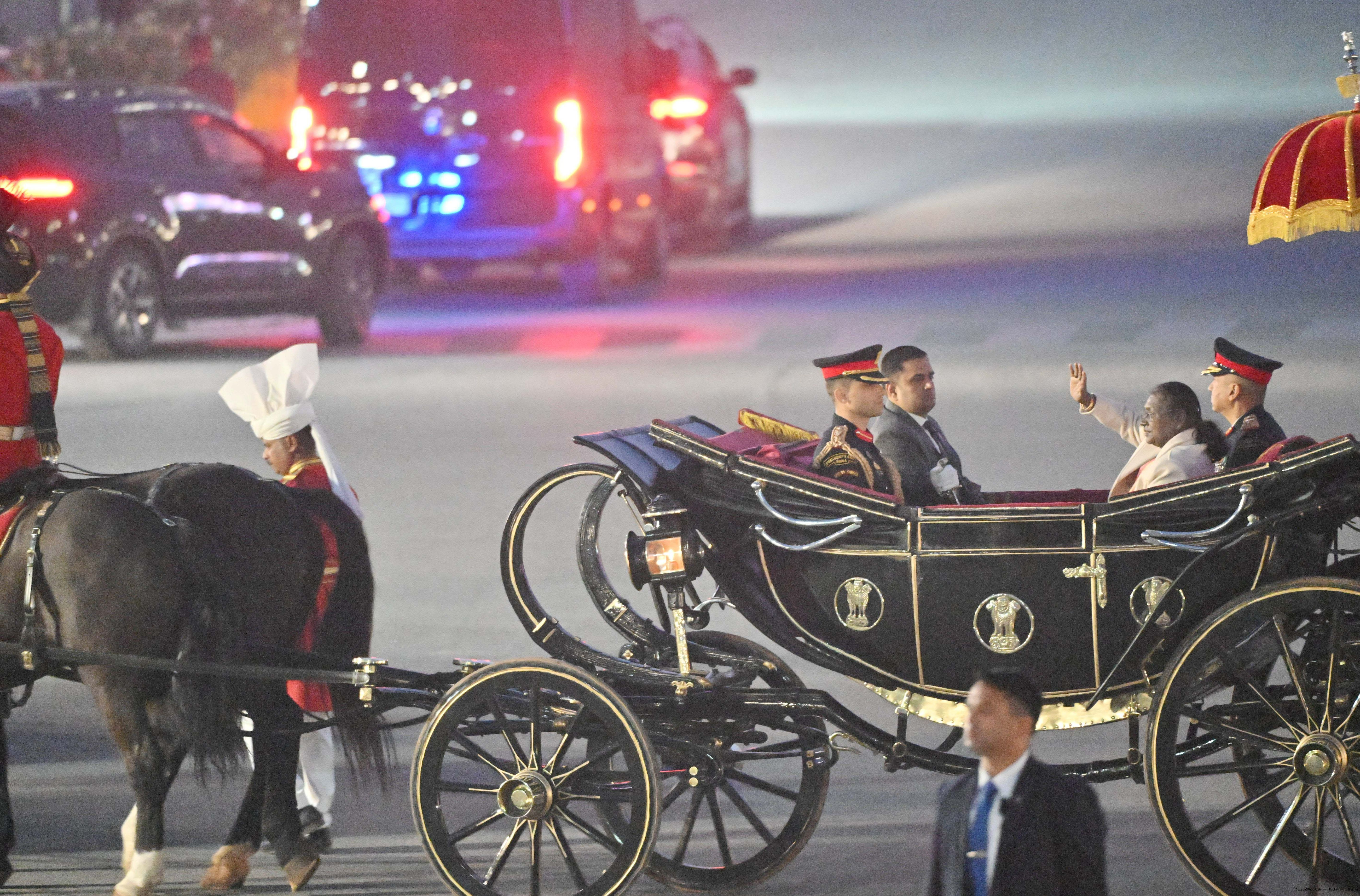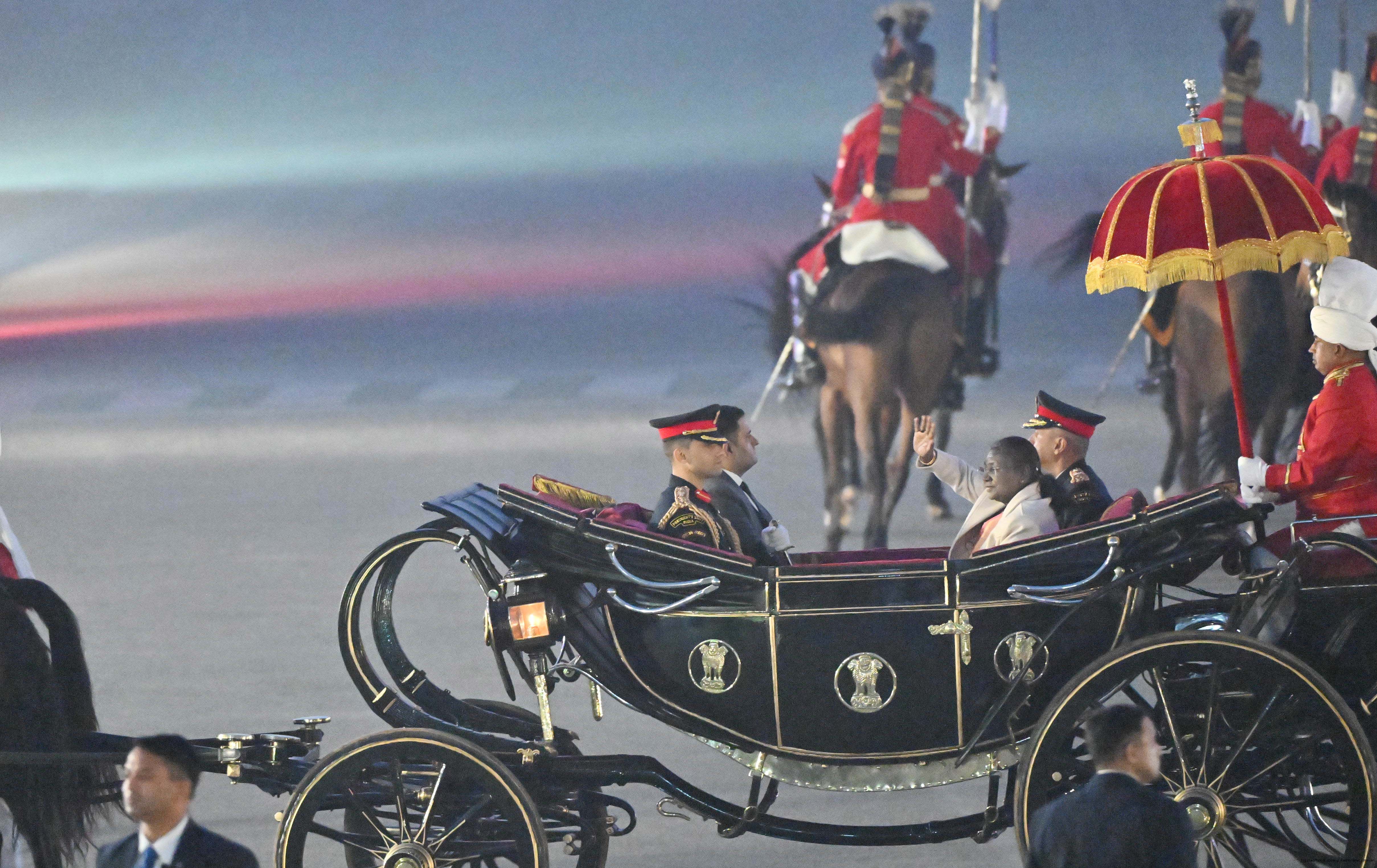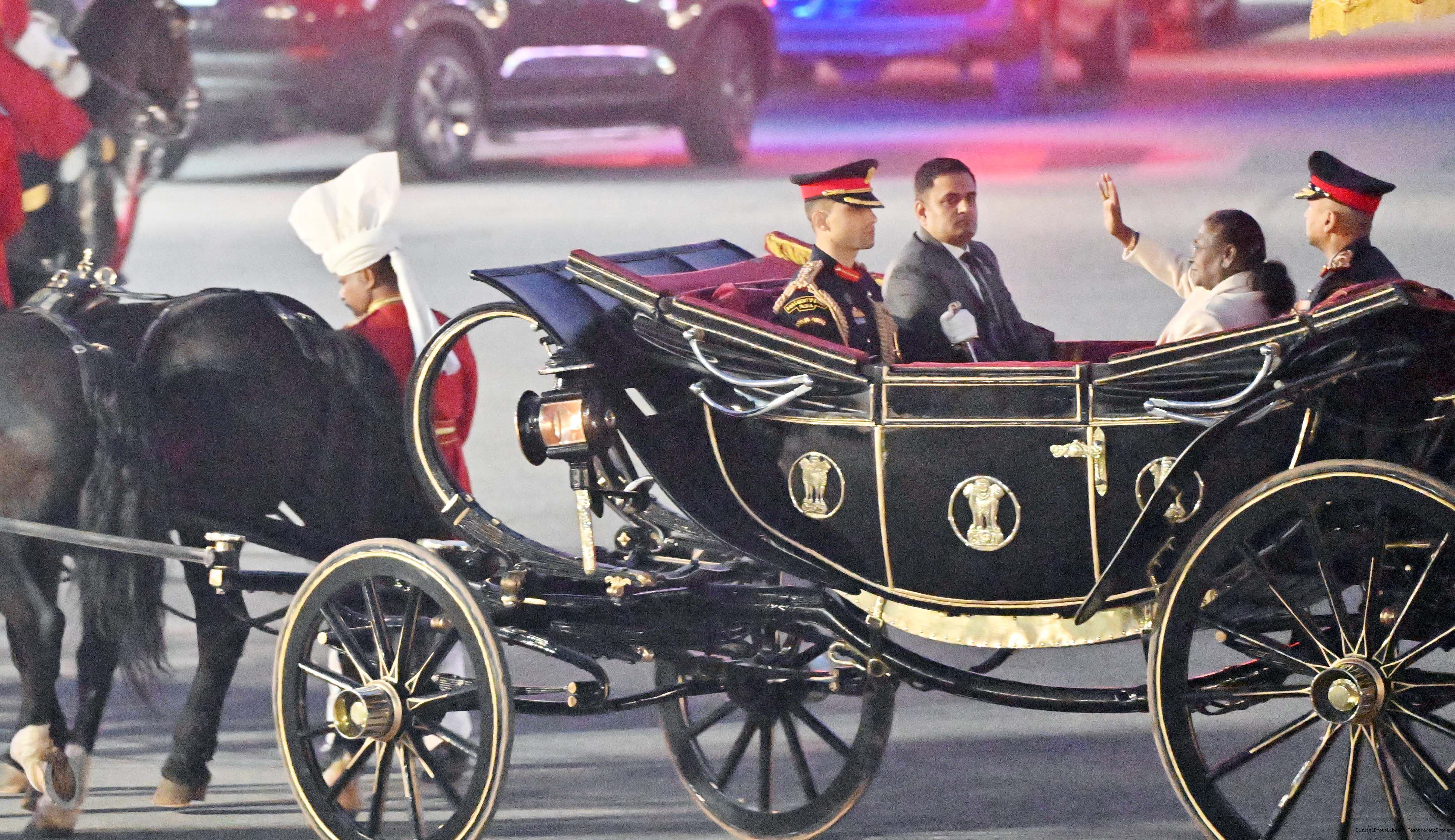 | Caption: | The President of India, Smt. Droupadi Murmu witnessing ‘The Beating Retreat Ceremony – 2025' at Vijay Chowk in New Delhi on January 29, 2025. |