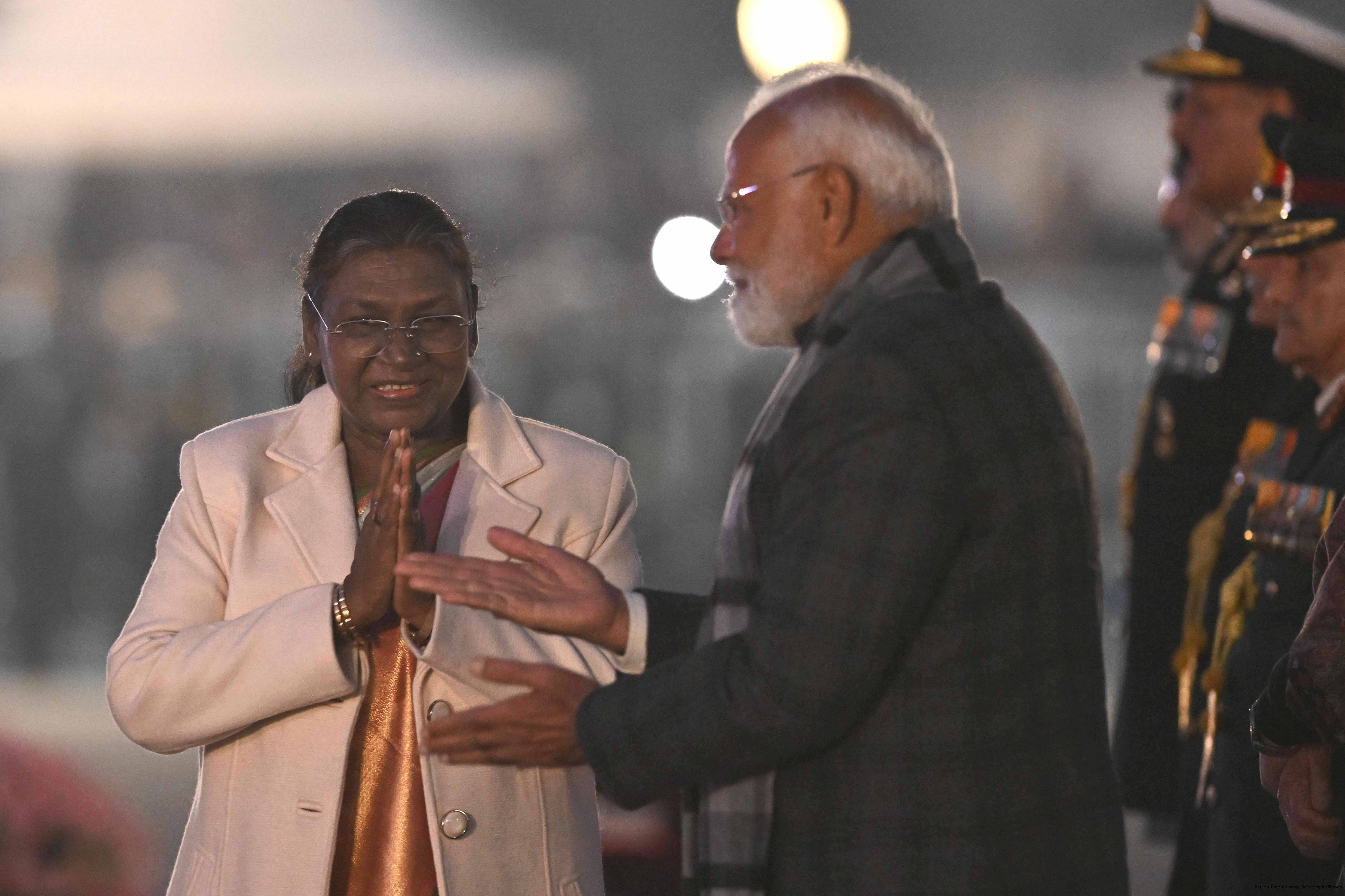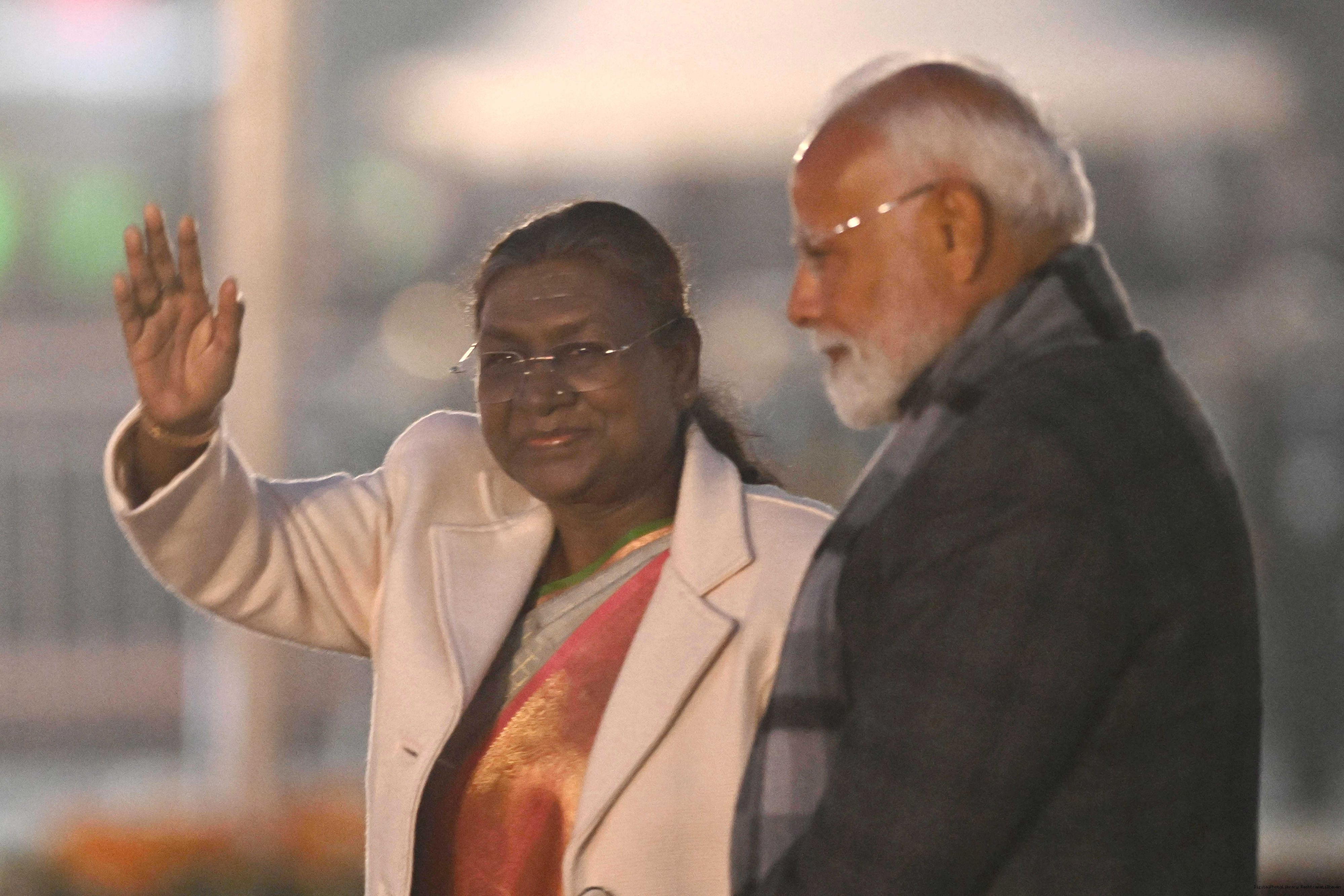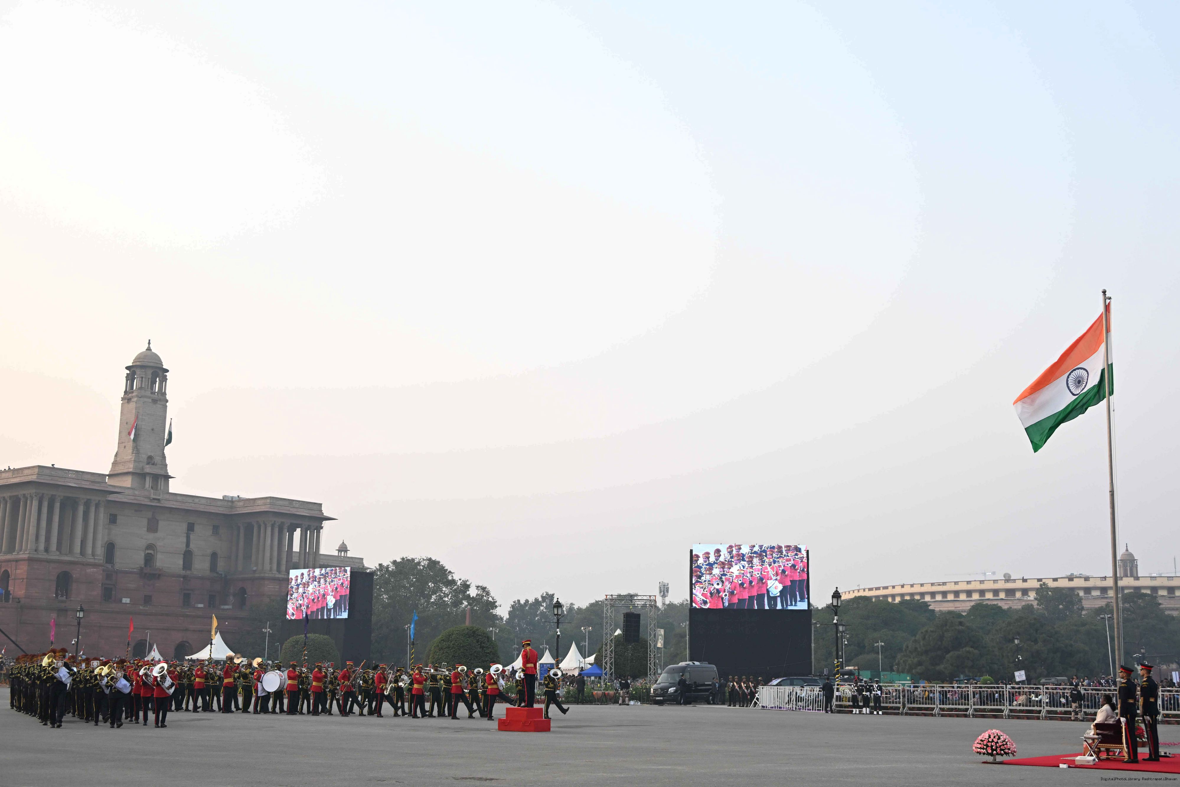 | Caption: | The President of India, Smt. Droupadi Murmu witnessing ‘The Beating Retreat Ceremony – 2025' at Vijay Chowk in New Delhi on January 29, 2025. |