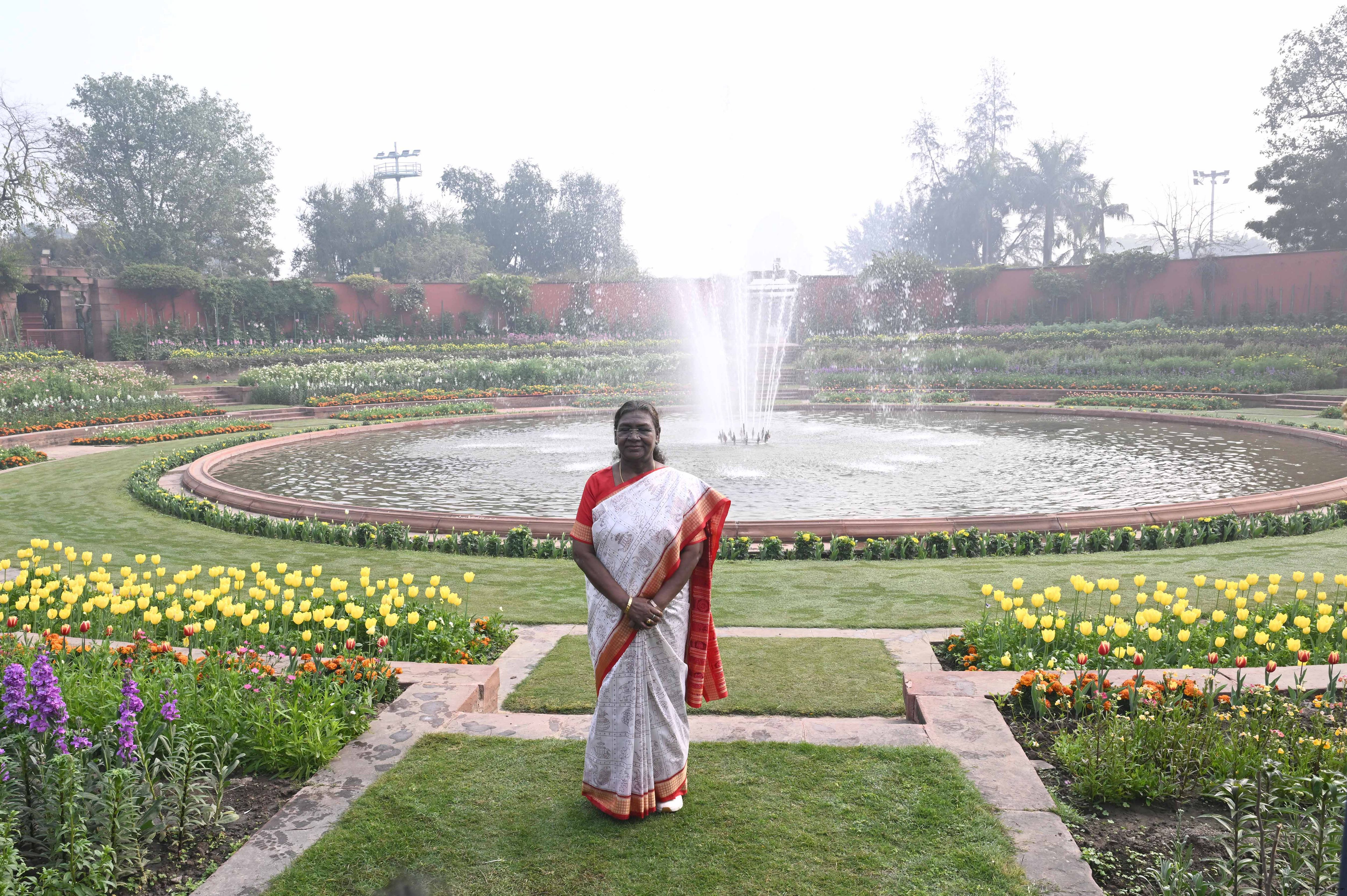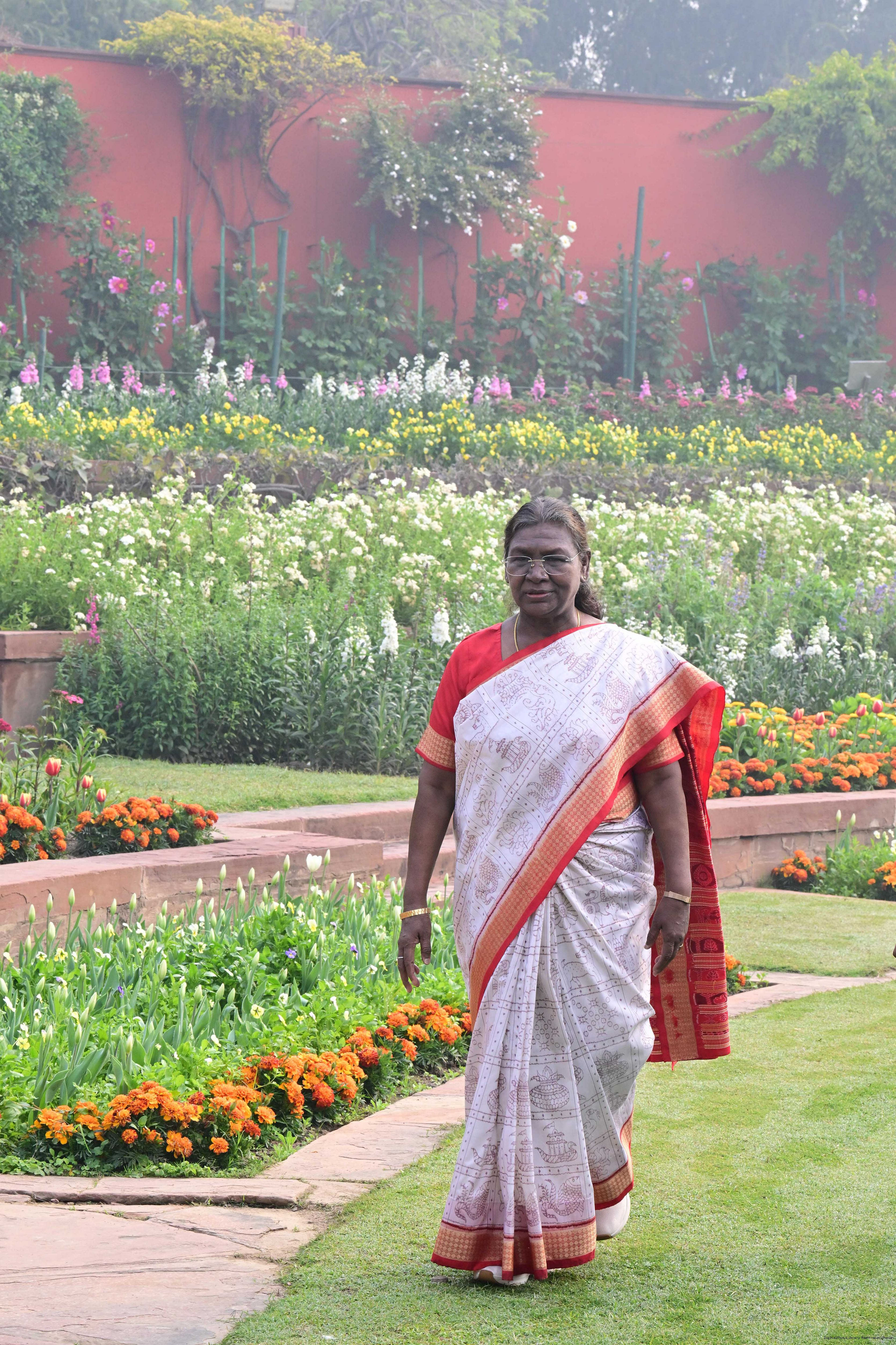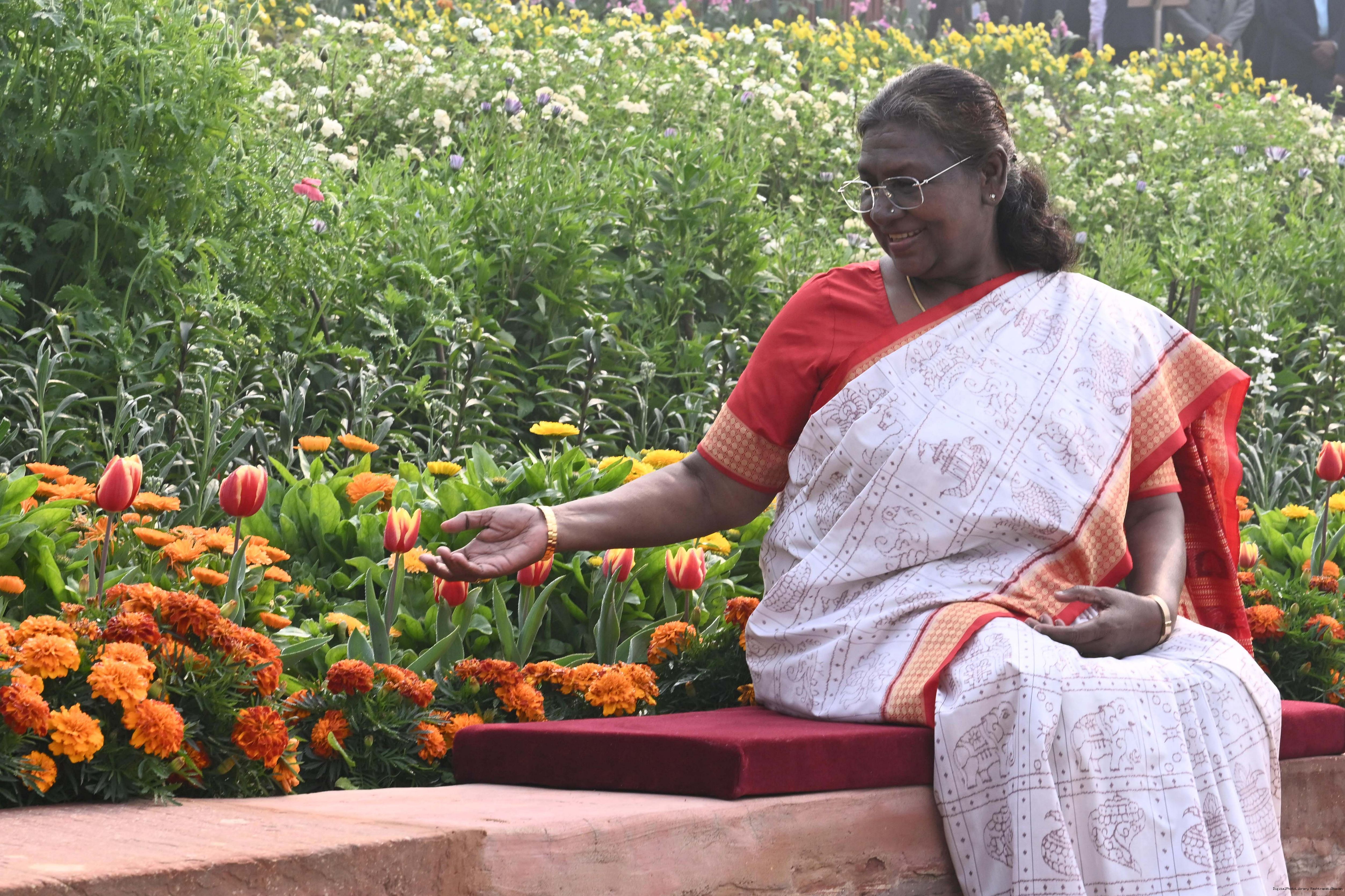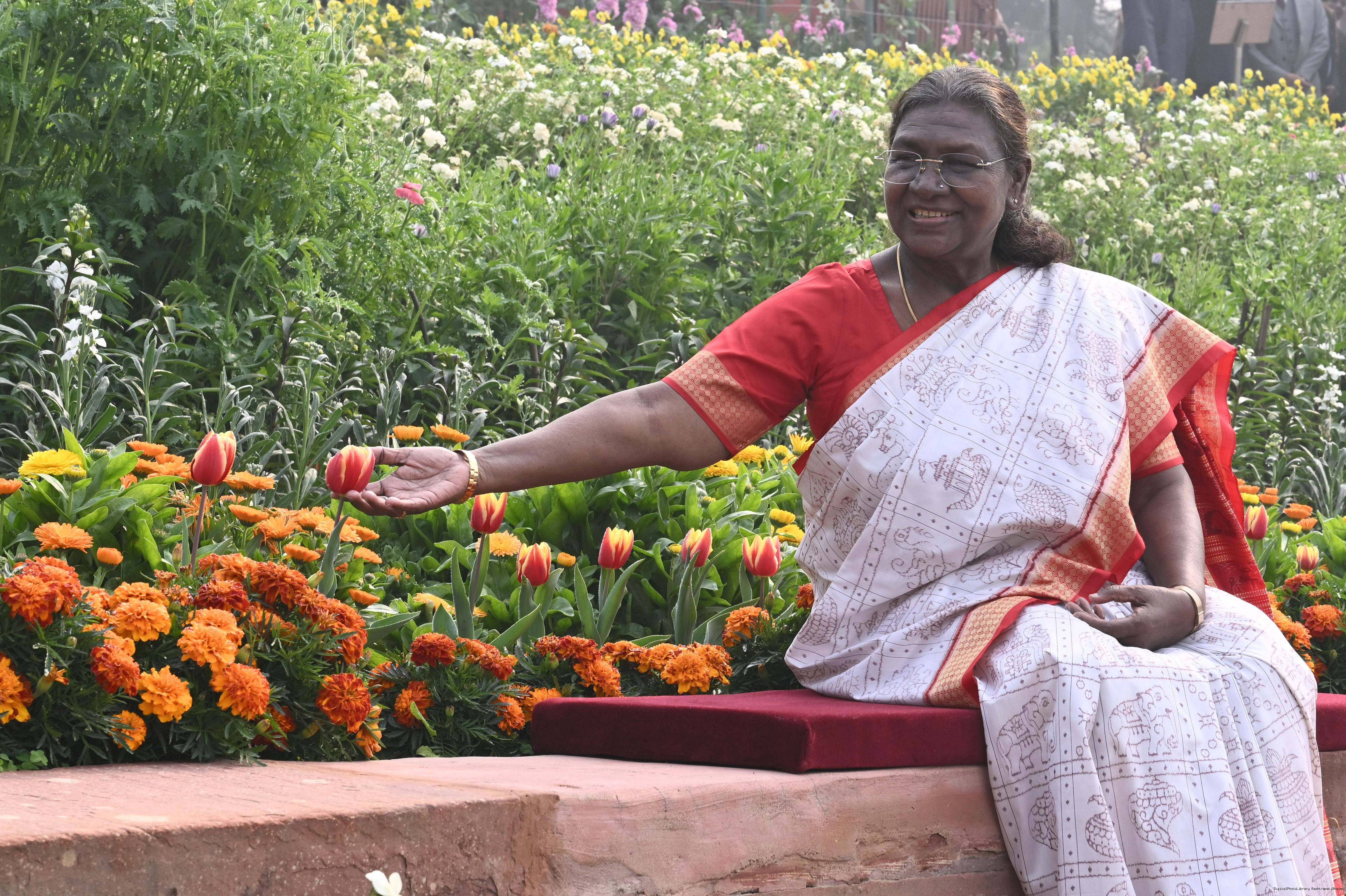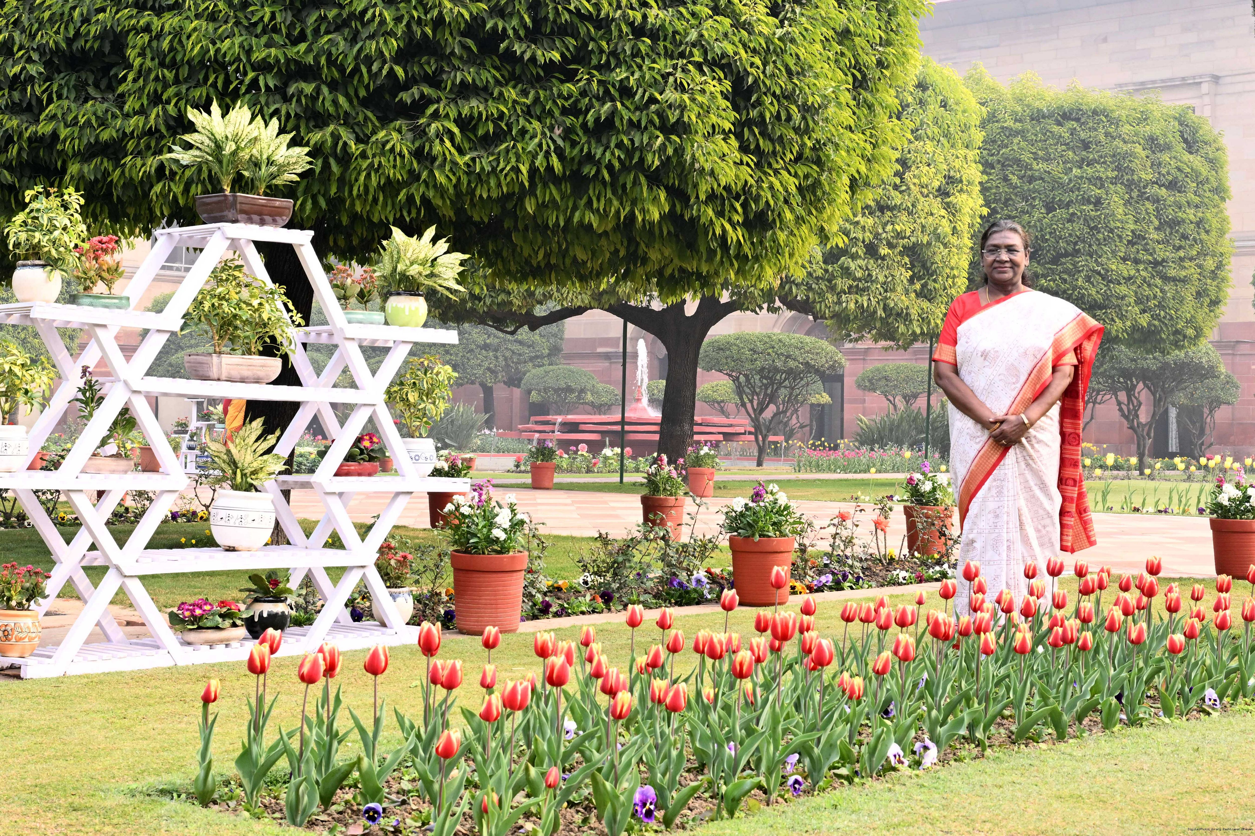 | Caption: | The President of India, Smt Droupadi Murmu graced the opening of the Amrit Udyan Winter Annuals Edition 2025 at Rashtrapati Bhavan on February 1, 2025. |