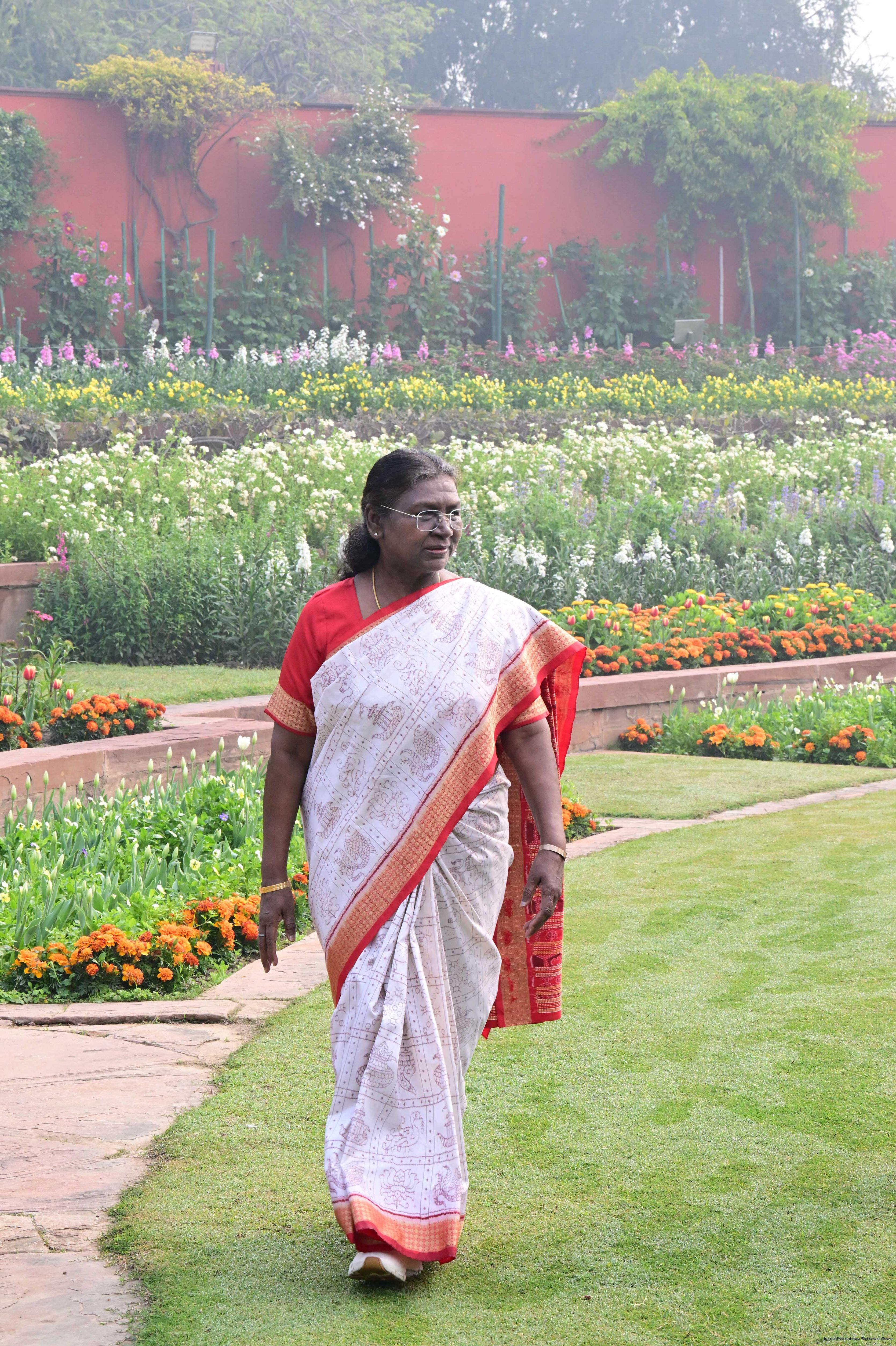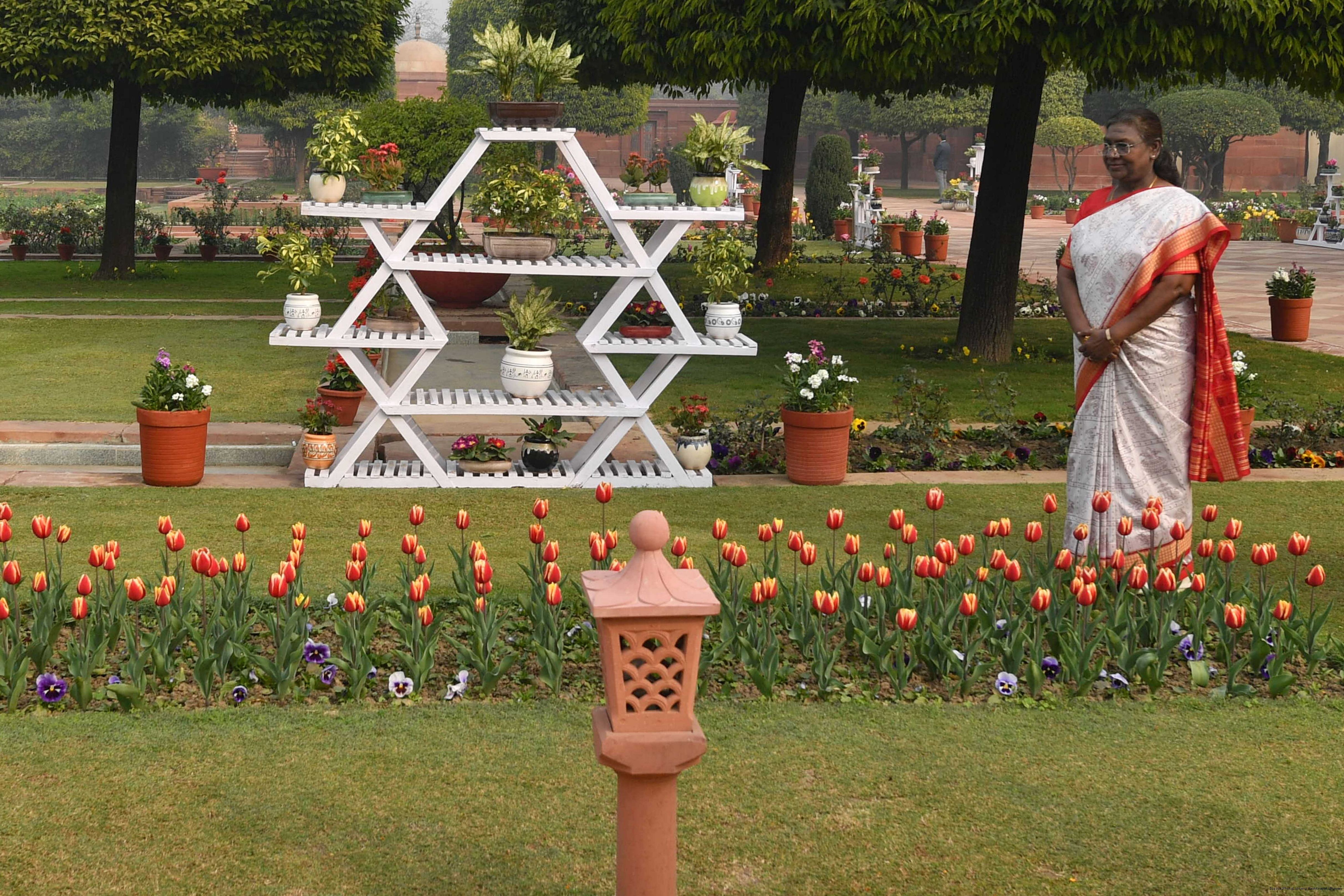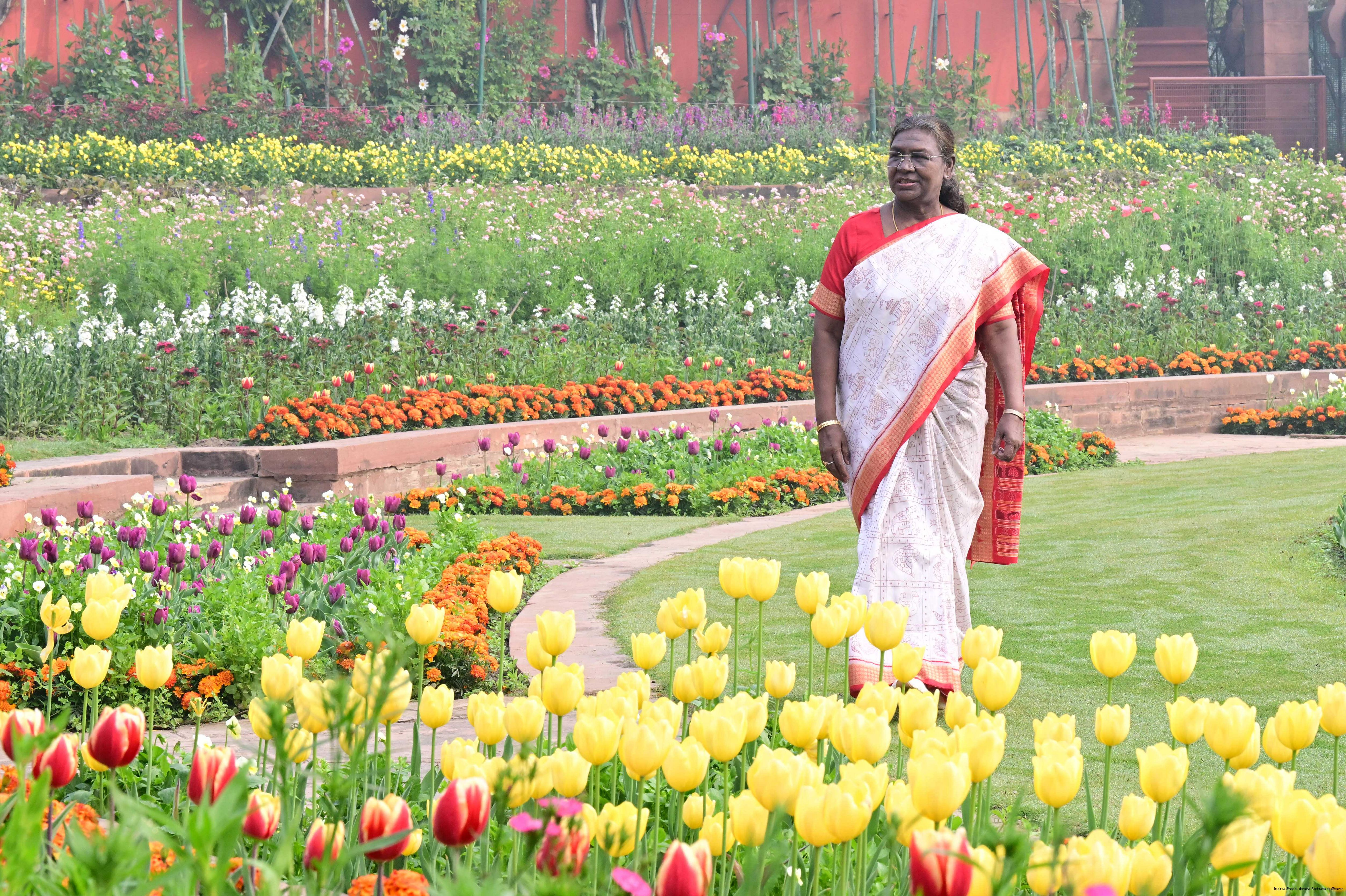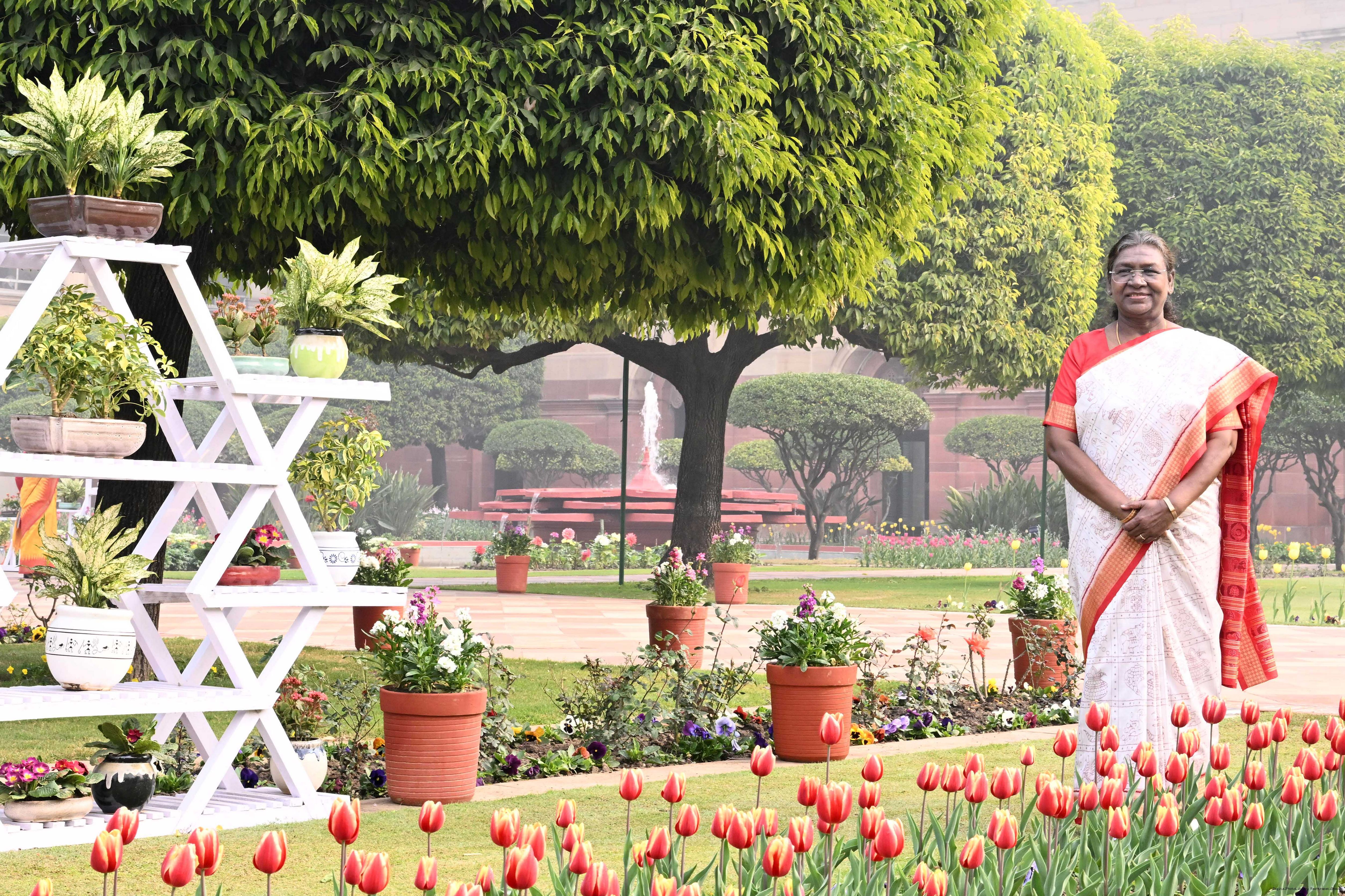 | Caption: | The President of India, Smt Droupadi Murmu graced the opening of the Amrit Udyan Winter Annuals Edition 2025 at Rashtrapati Bhavan on February 1, 2025. |