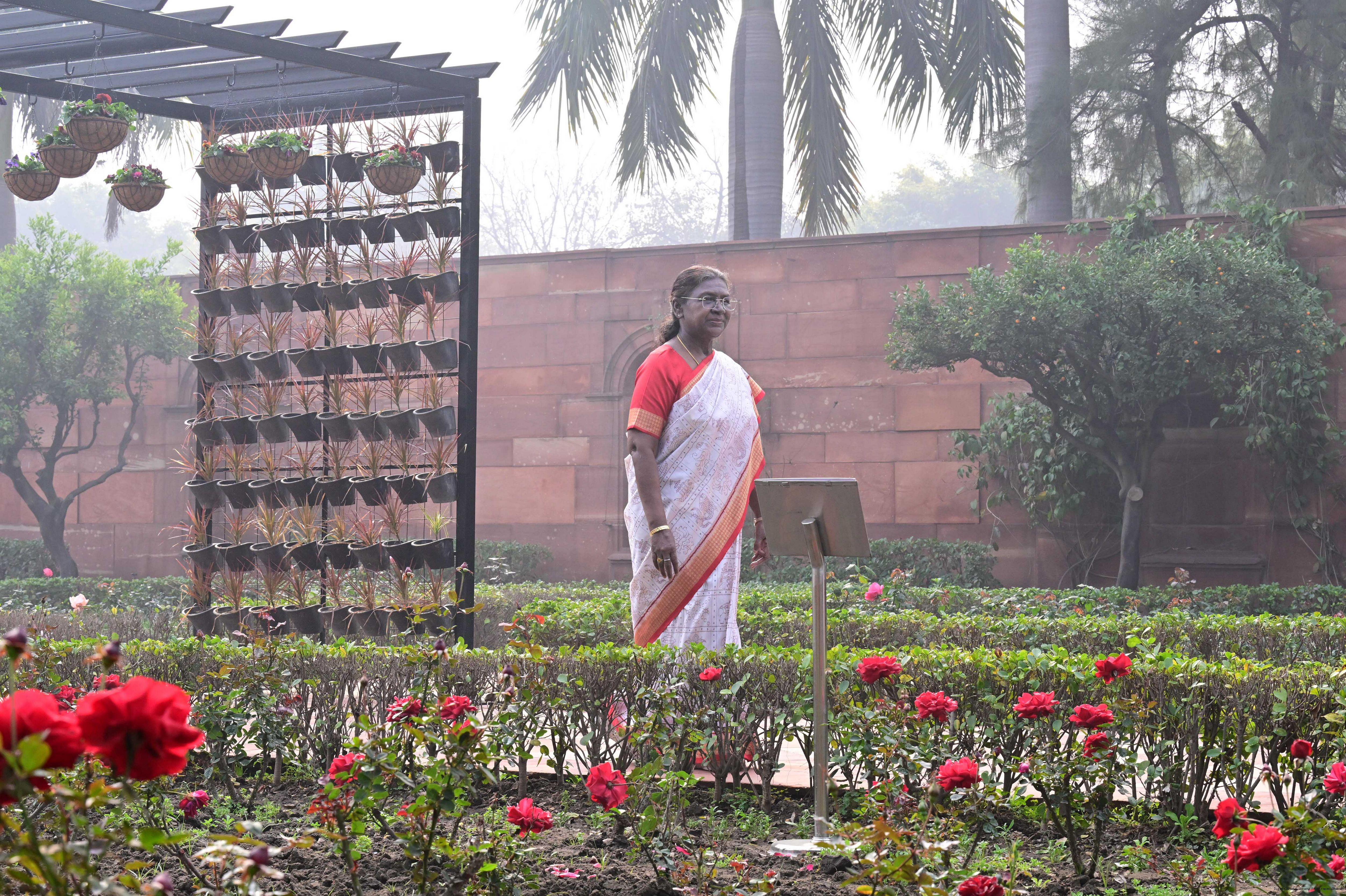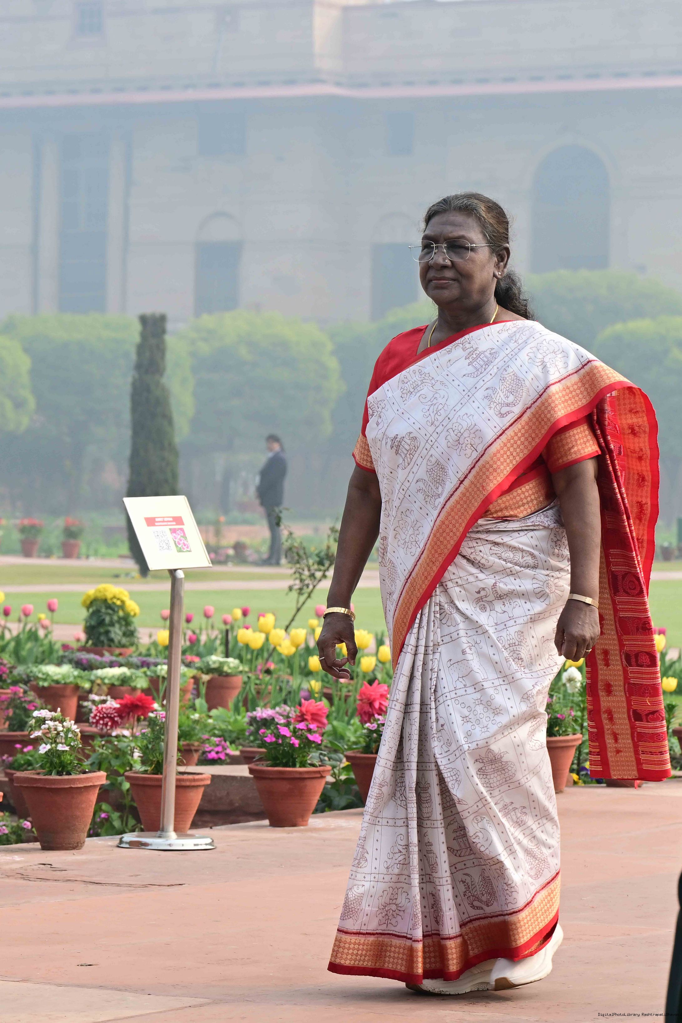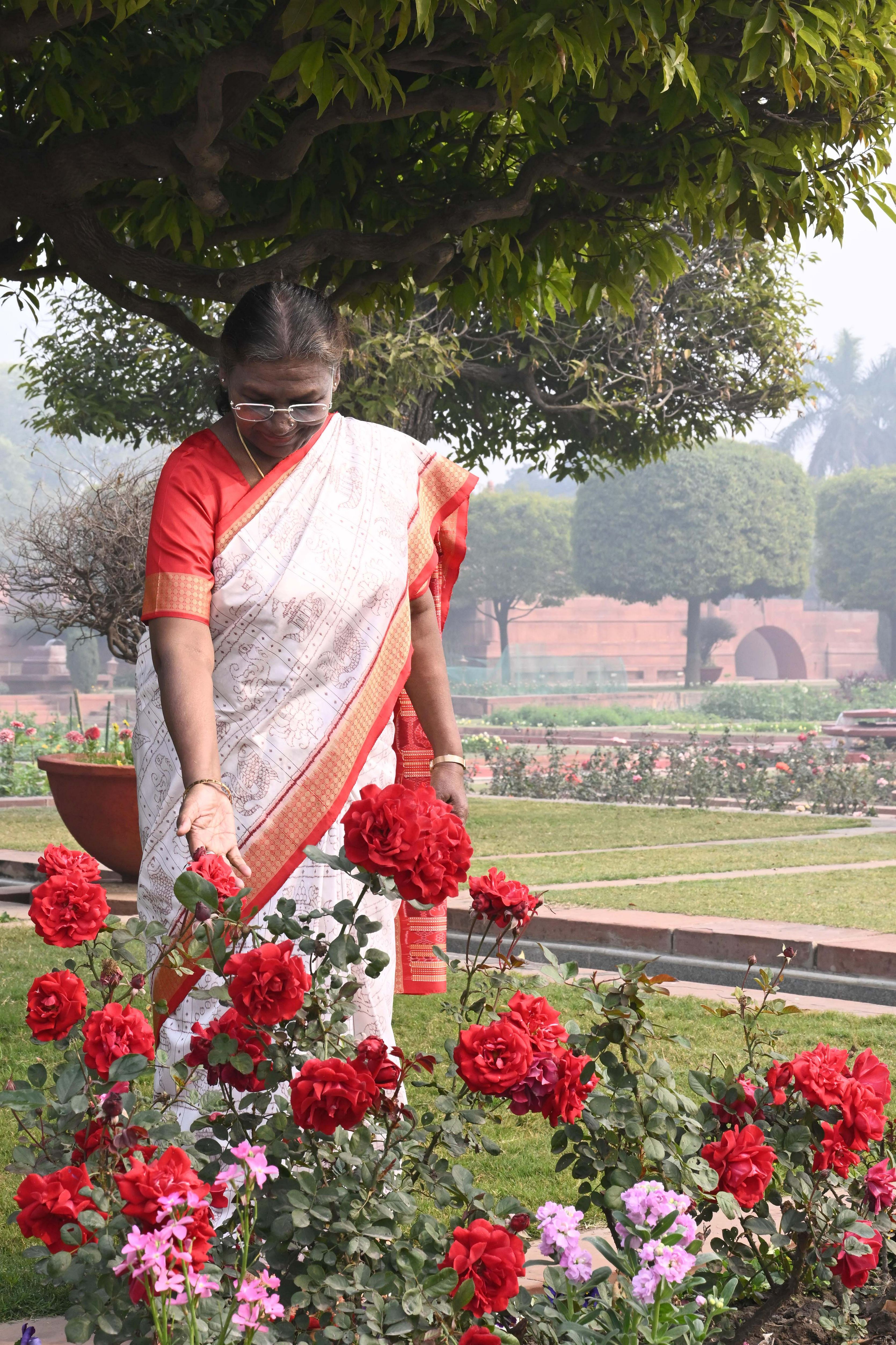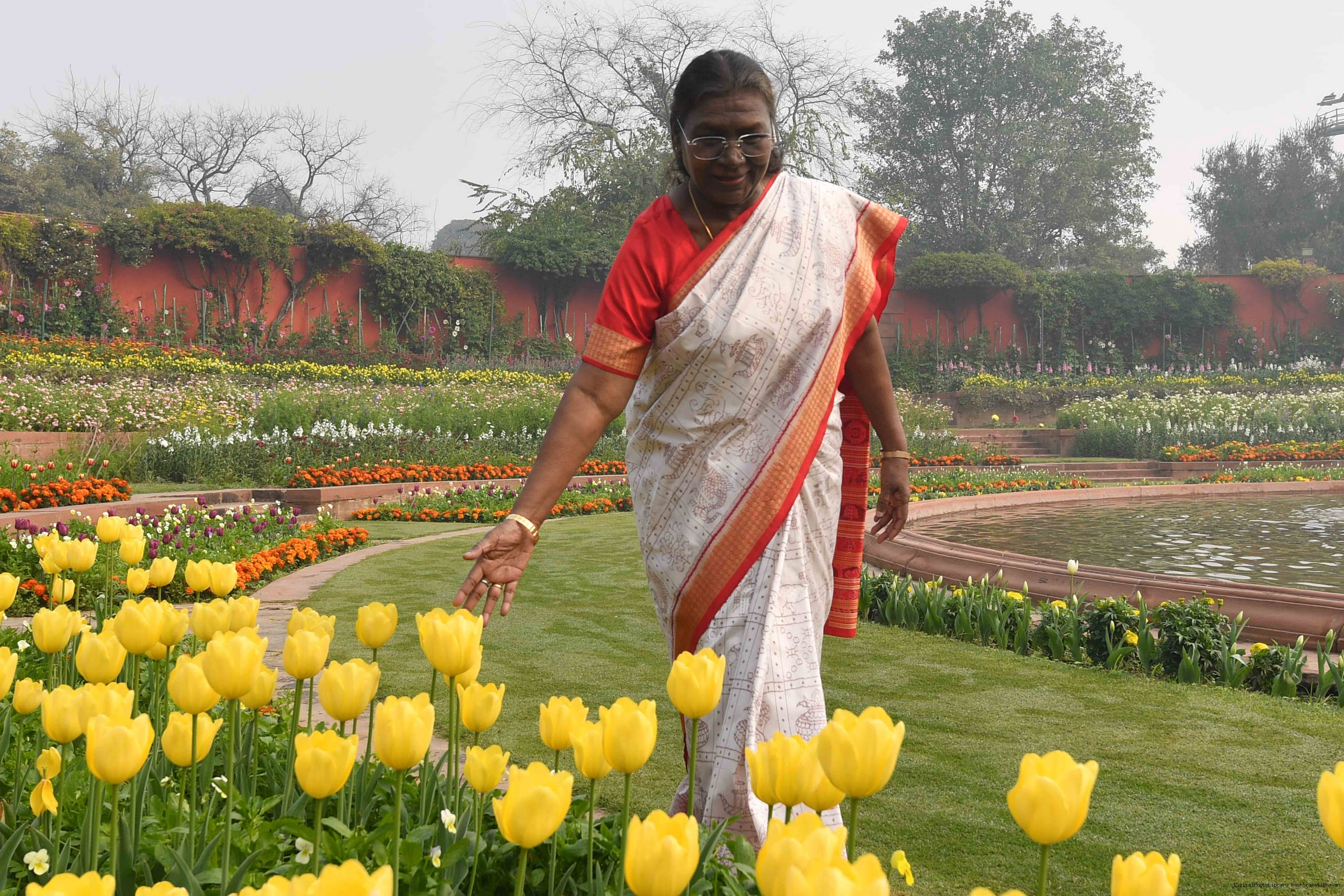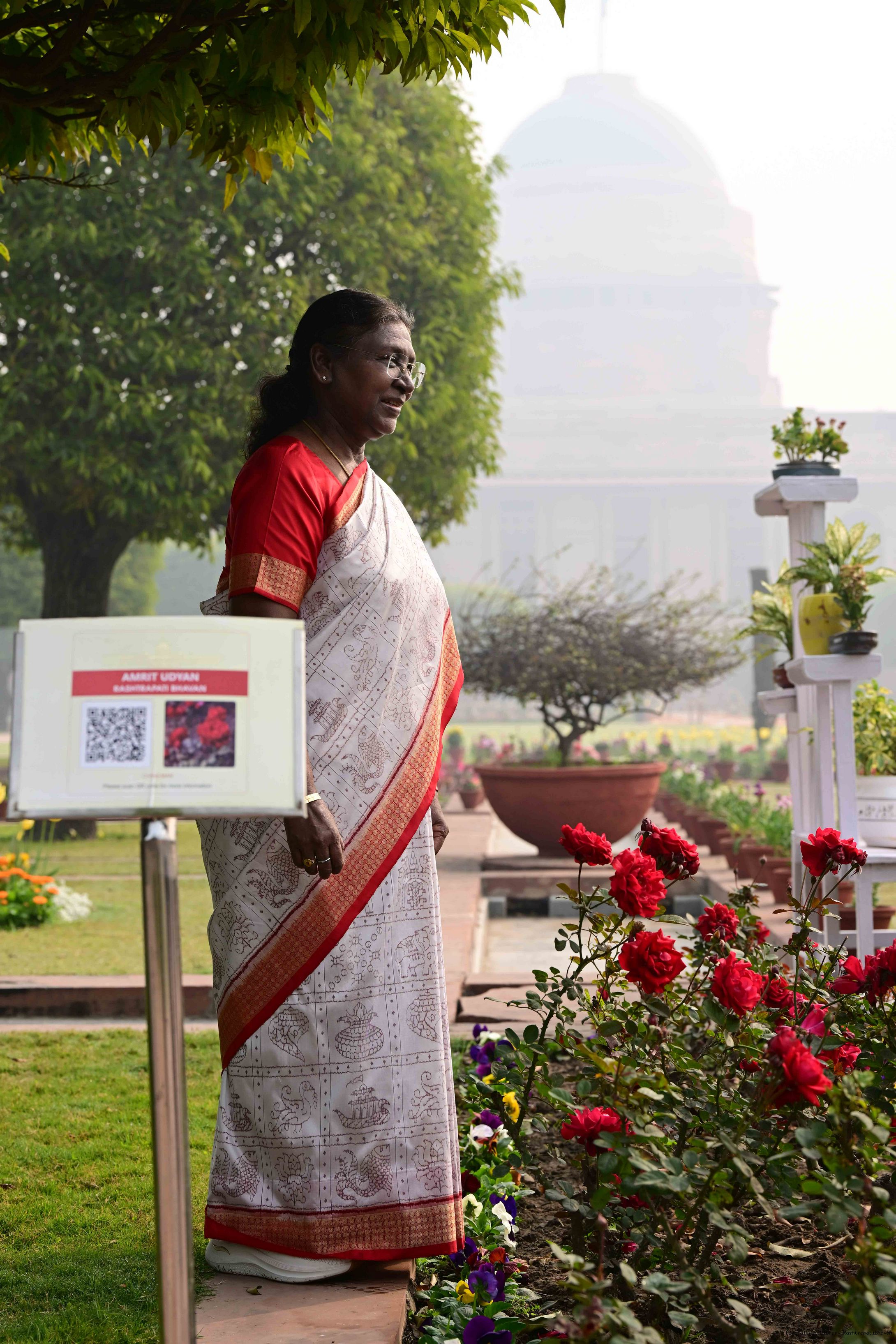 | Caption: | The President of India, Smt Droupadi Murmu graced the opening of the Amrit Udyan Winter Annuals Edition 2025 at Rashtrapati Bhavan on February 1, 2025. |