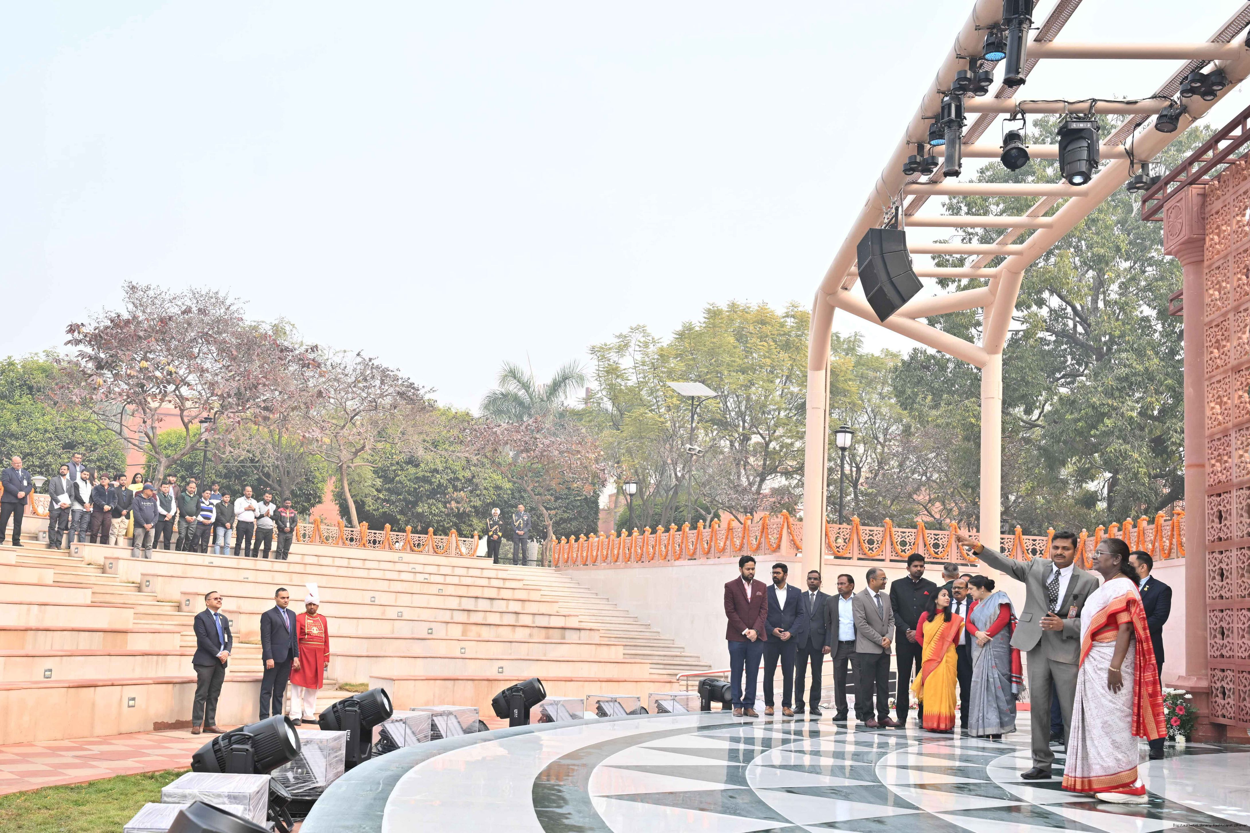 | Caption: | The President of India, Smt Droupadi Murmu inaugurated of Open Air Theatre at Rashtrapati Bhavan on February 1, 2025. |