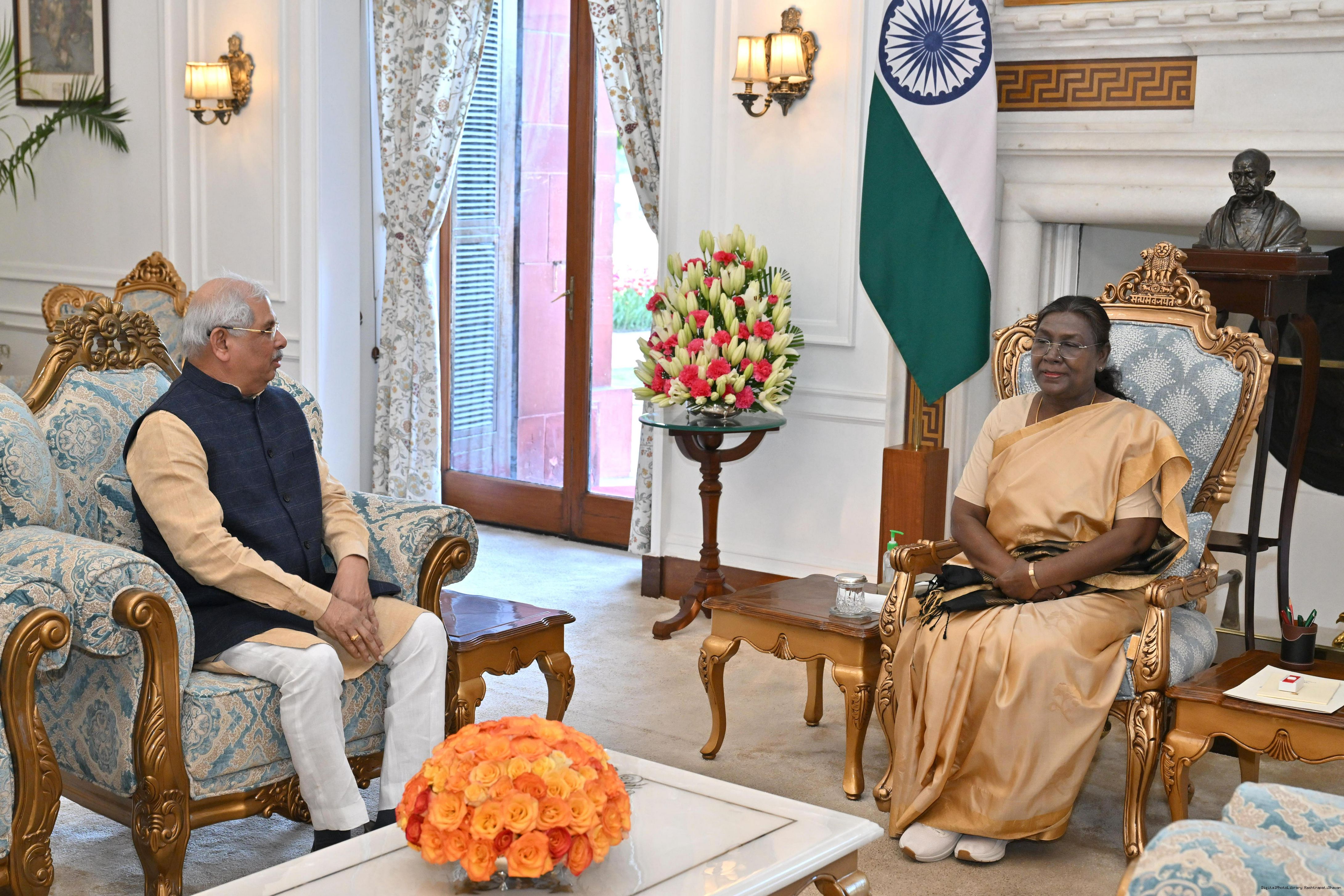 | Caption: | The Governor of Kerala, Shri Rajendra Vishwanath Arlekar called on the President of India, Smt. Droupadi Murmu at Rashtrapati Bhavan on February 8, 2025. |