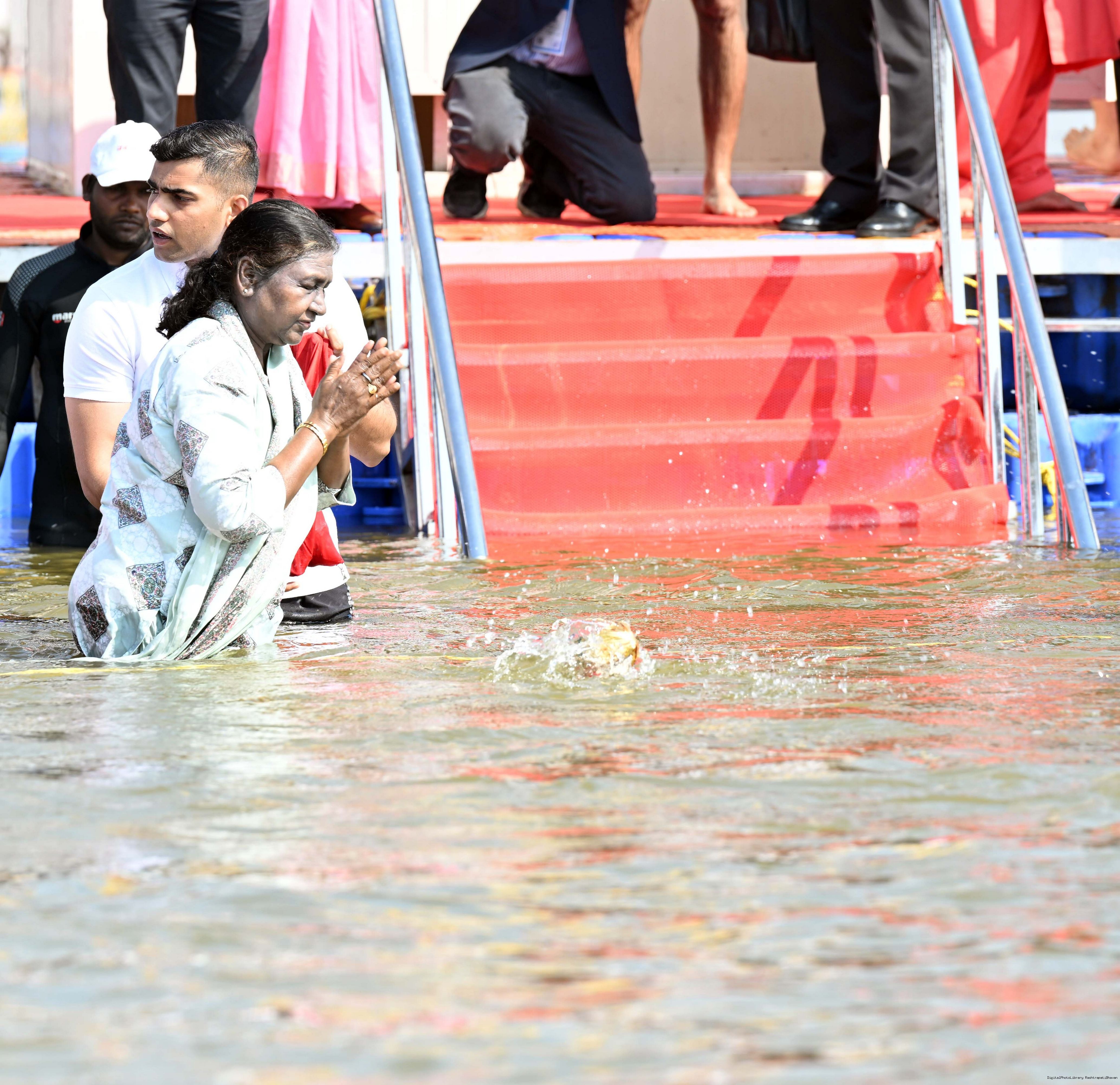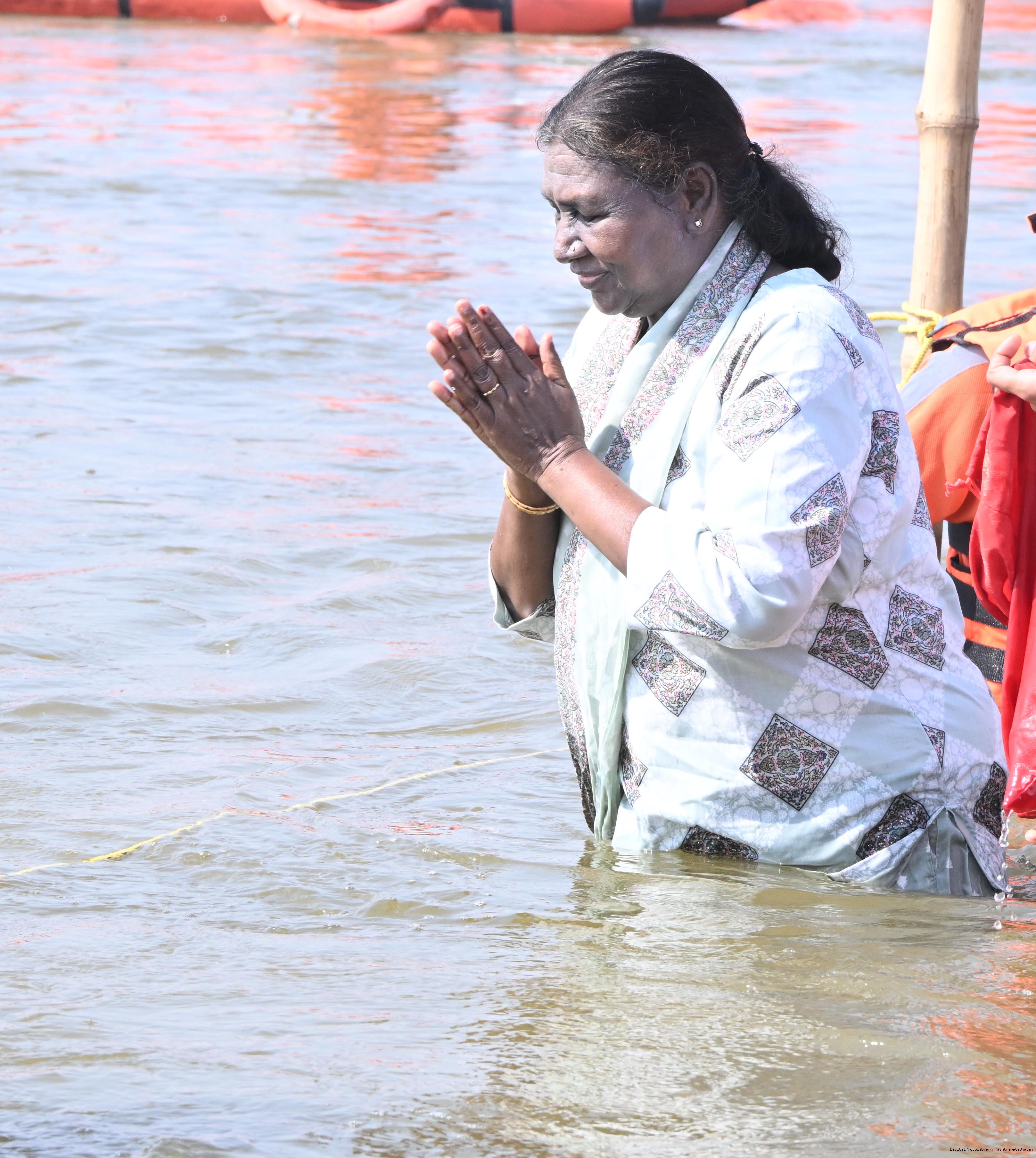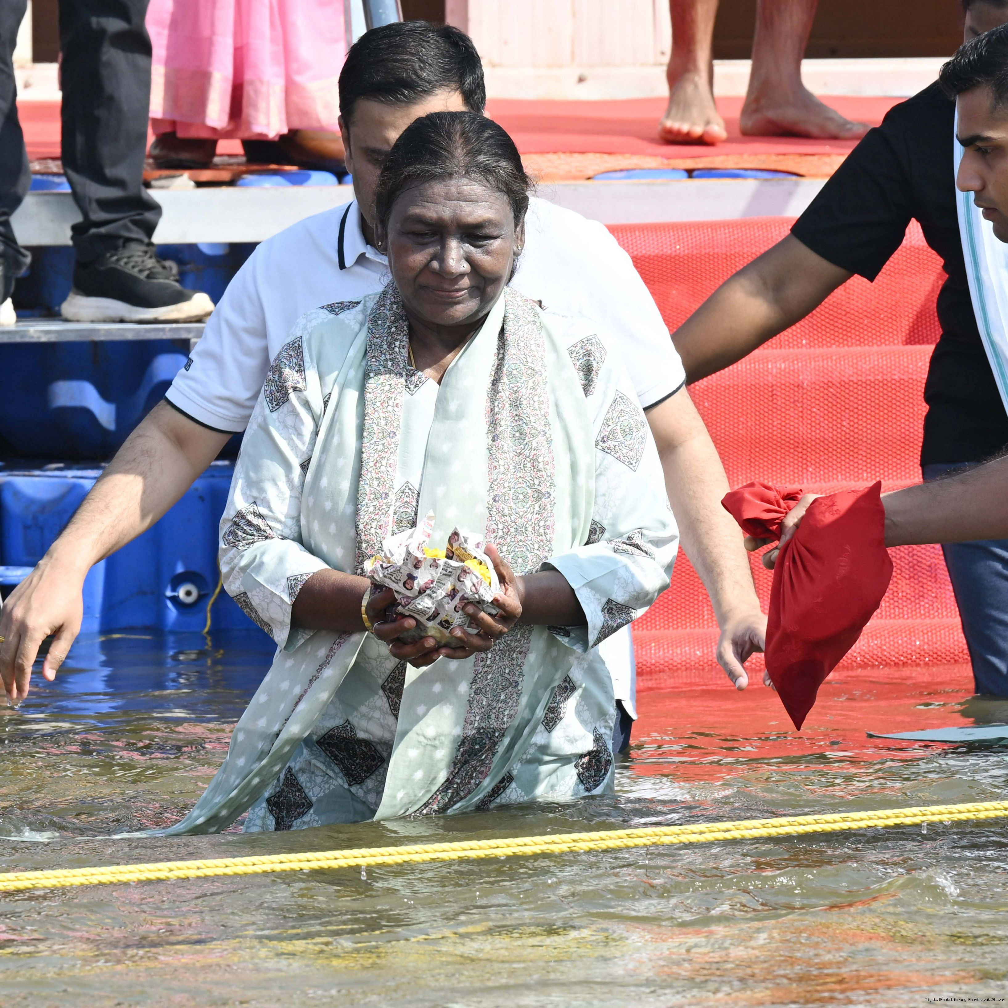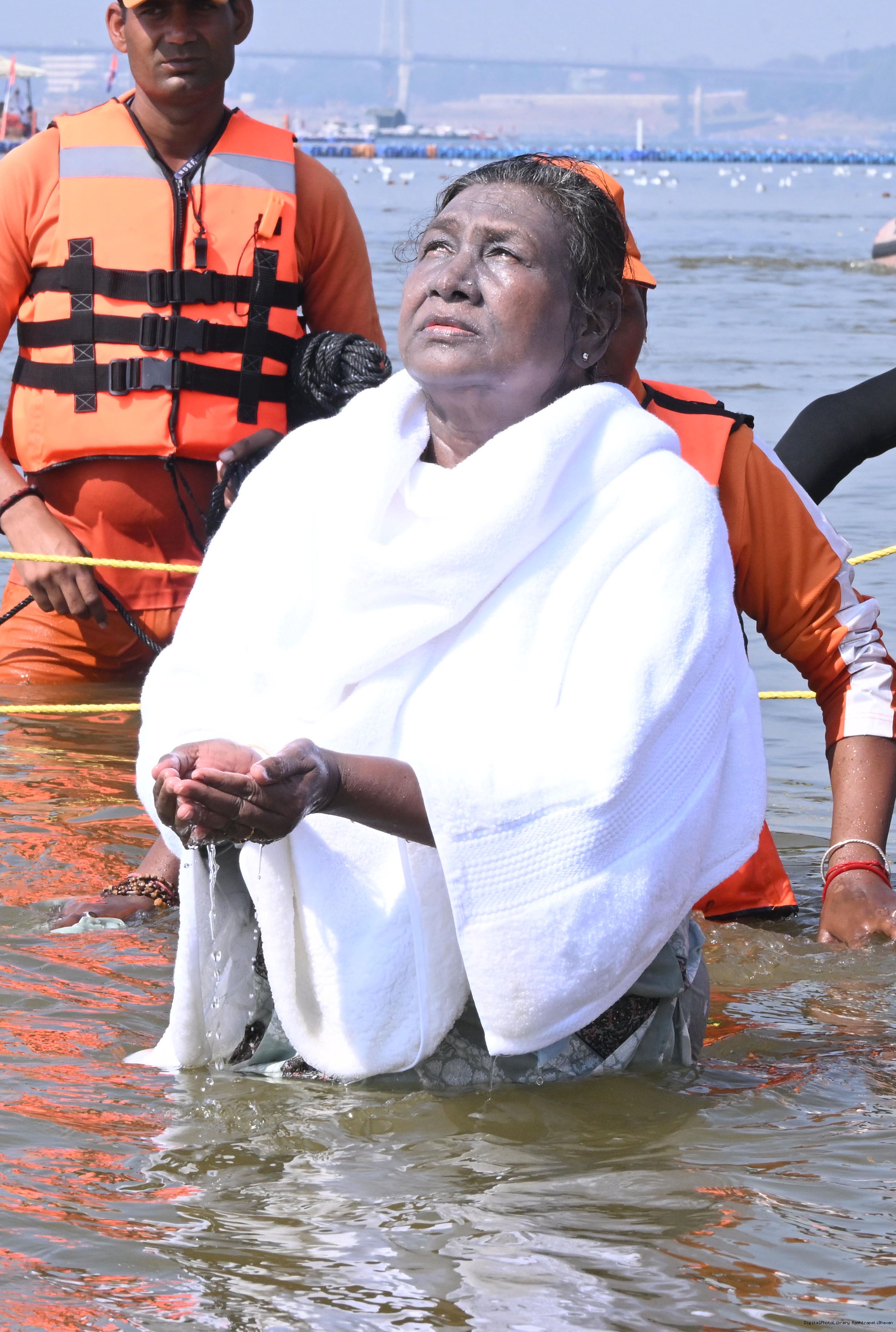 | Caption: | The President of India, Smt. Droupadi Murmu took holy dip and offered prayers at Sangam Prayagraj on February 10, 2025. |