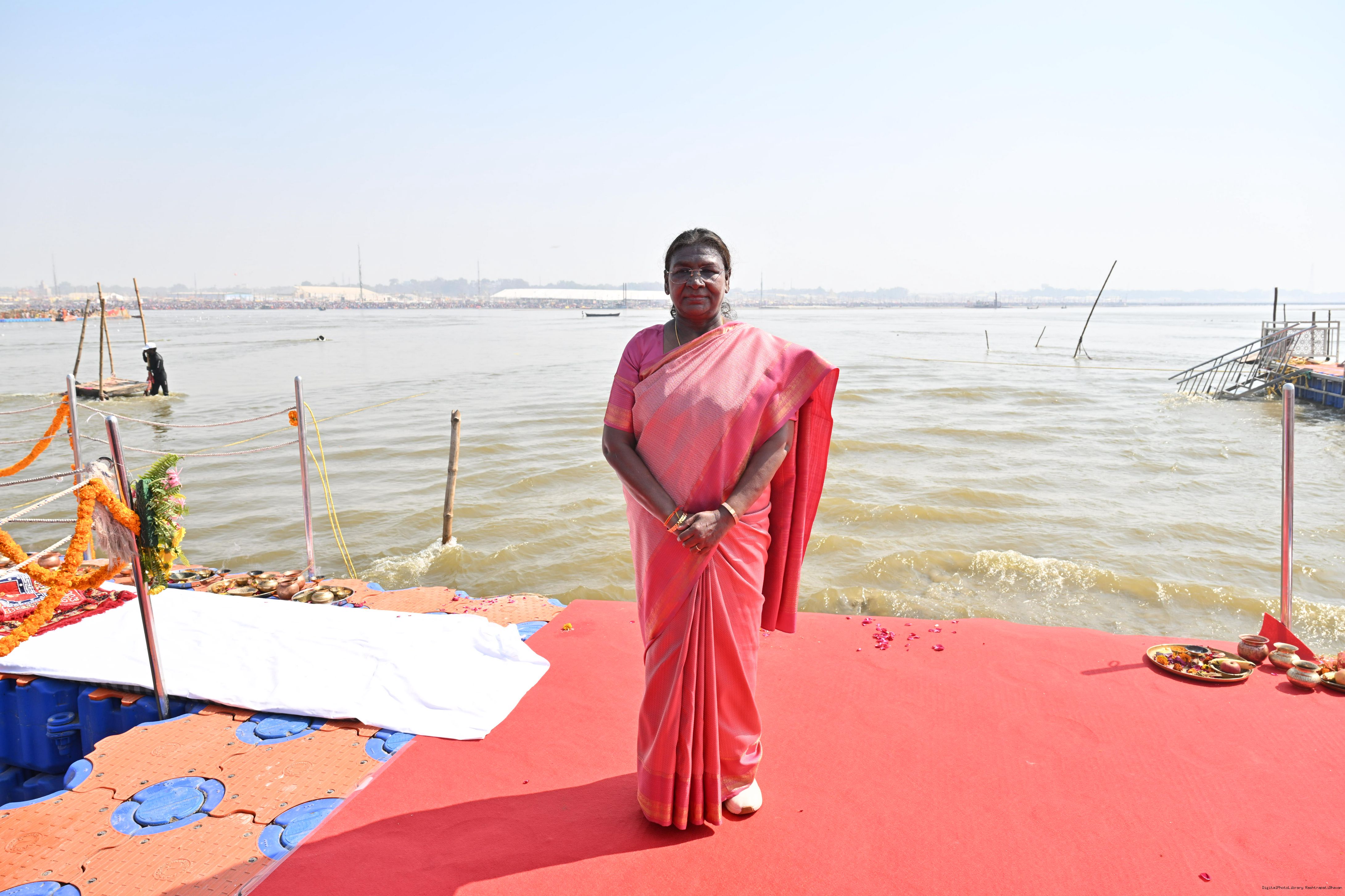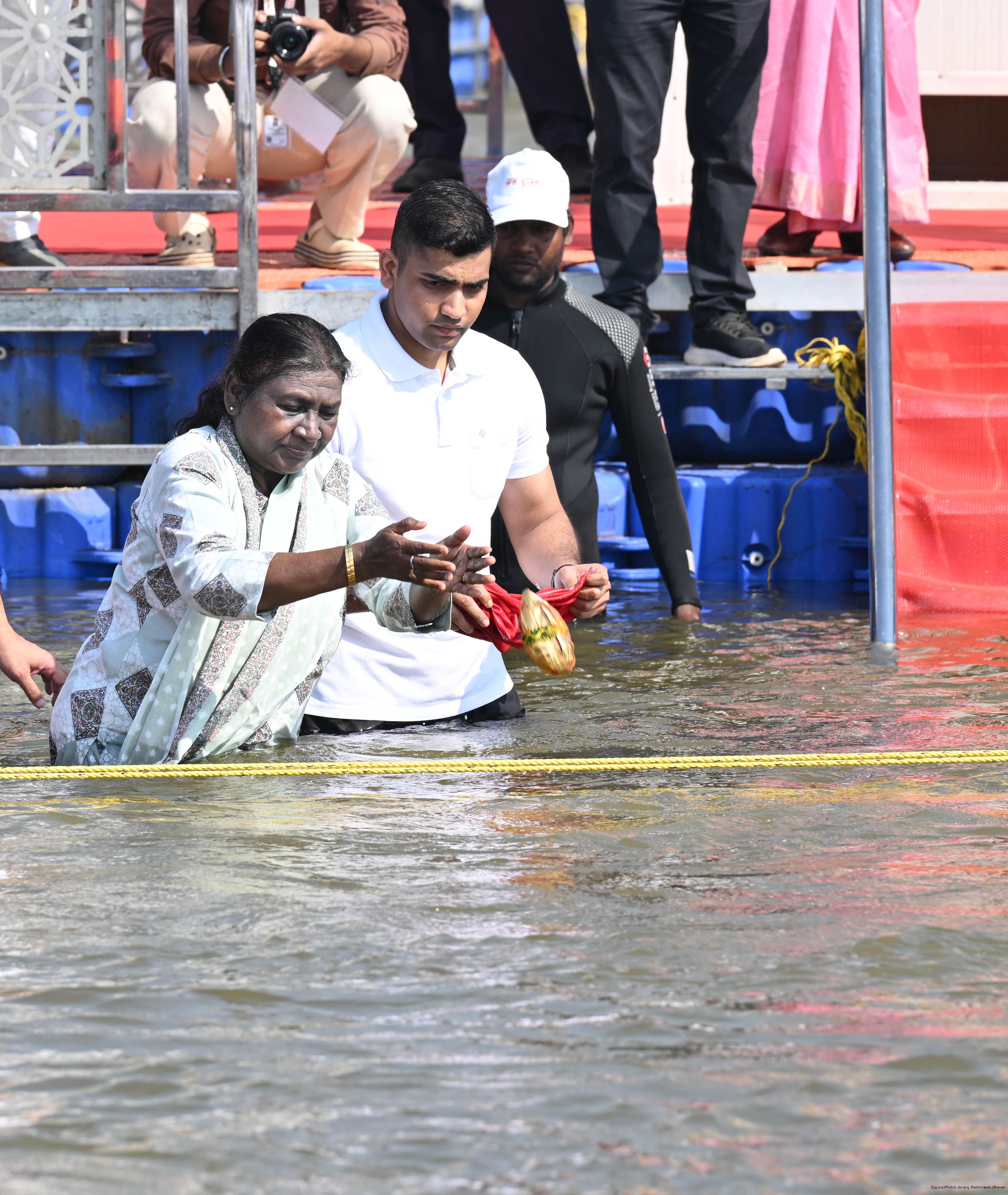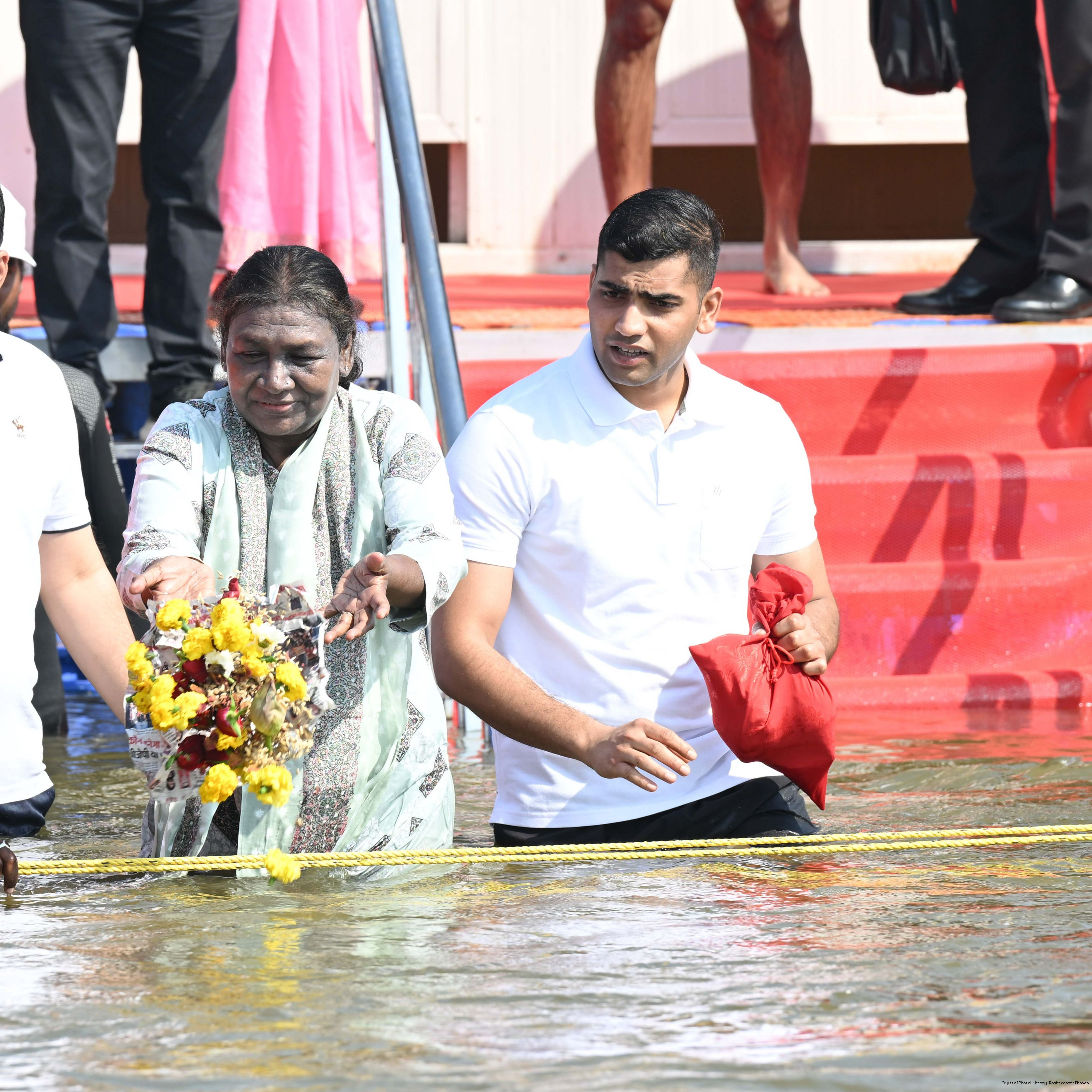 | Caption: | The President of India, Smt. Droupadi Murmu took holy dip and offered prayers at Sangam Prayagraj on February 10, 2025. |