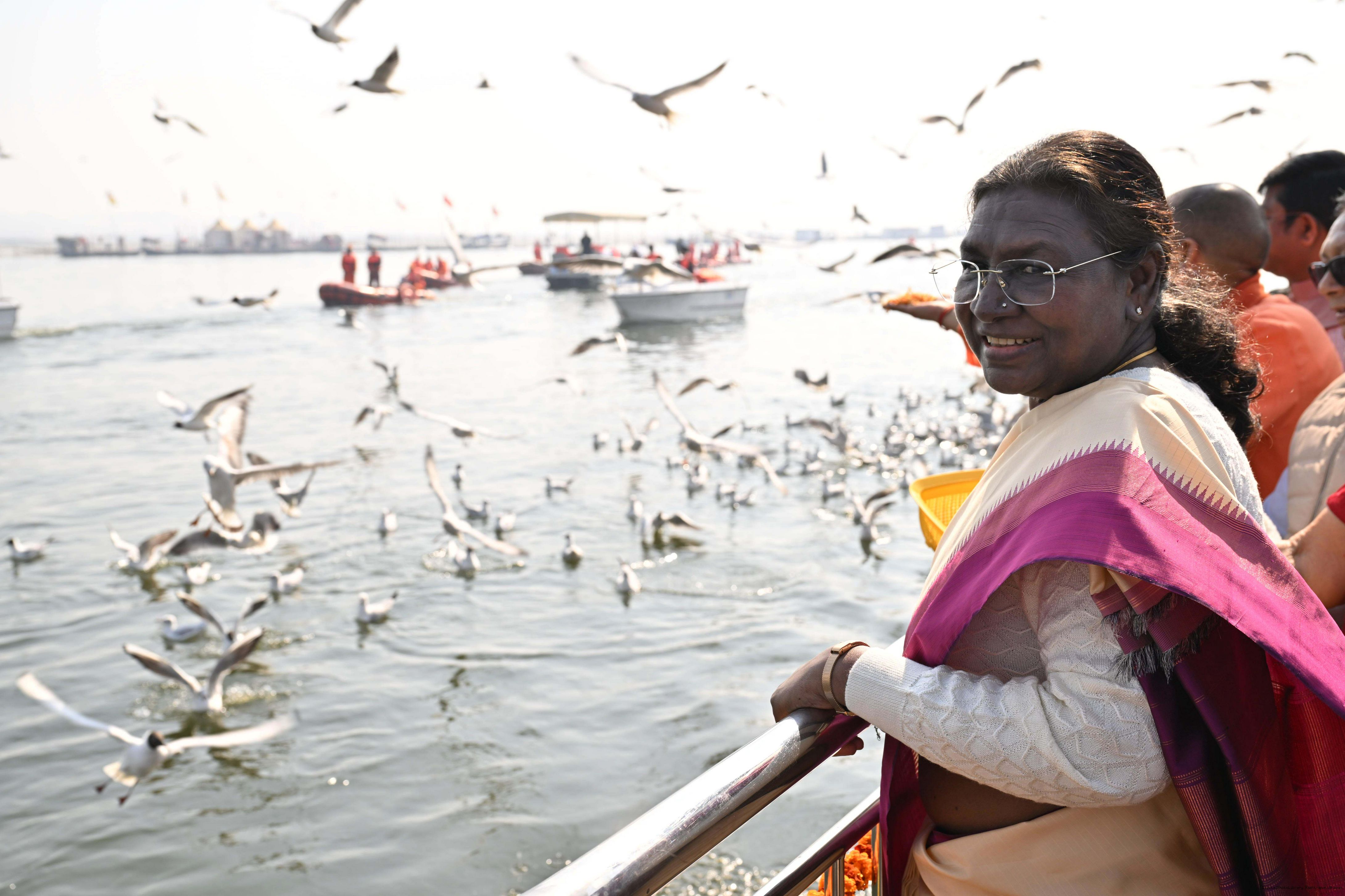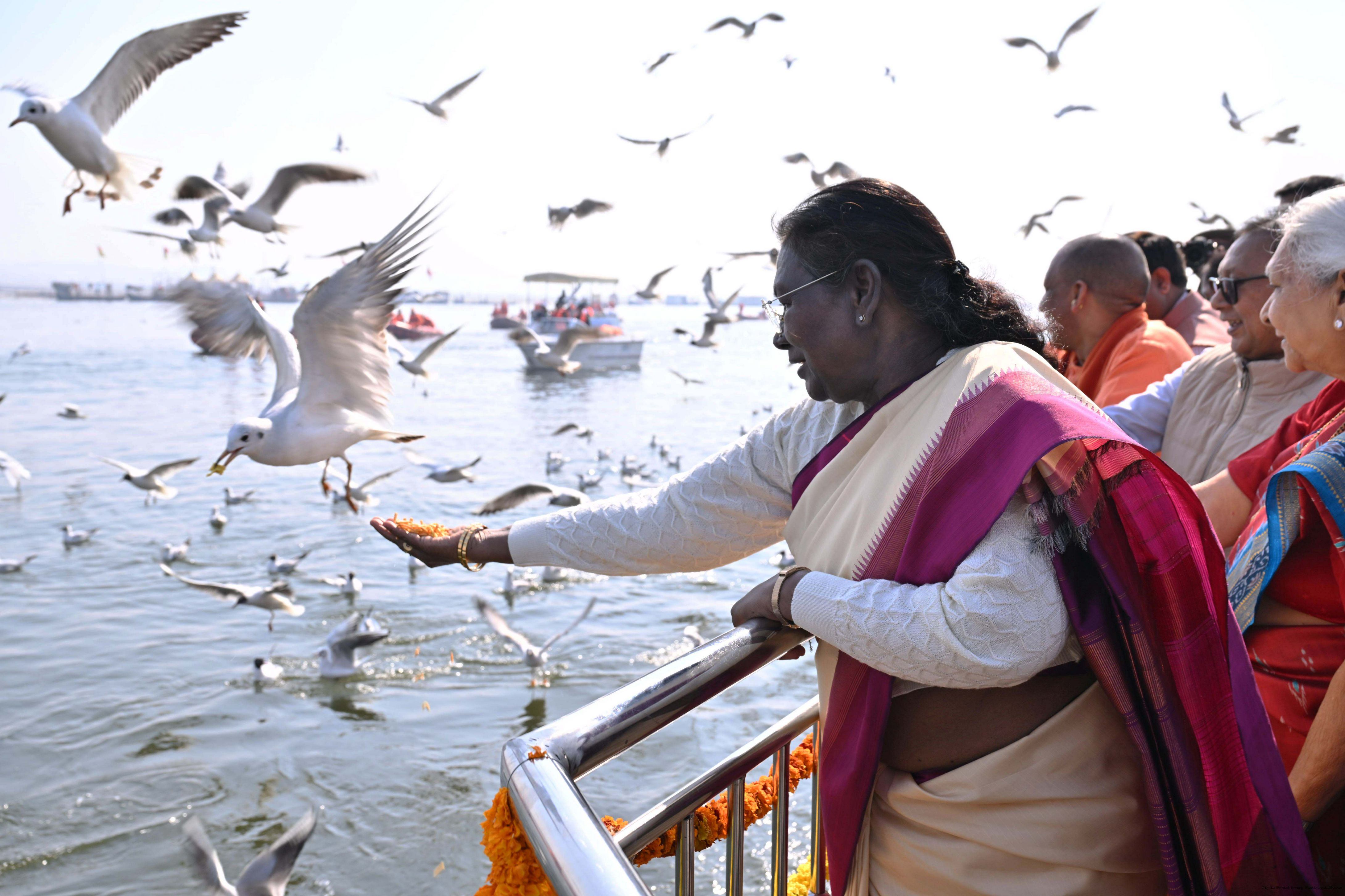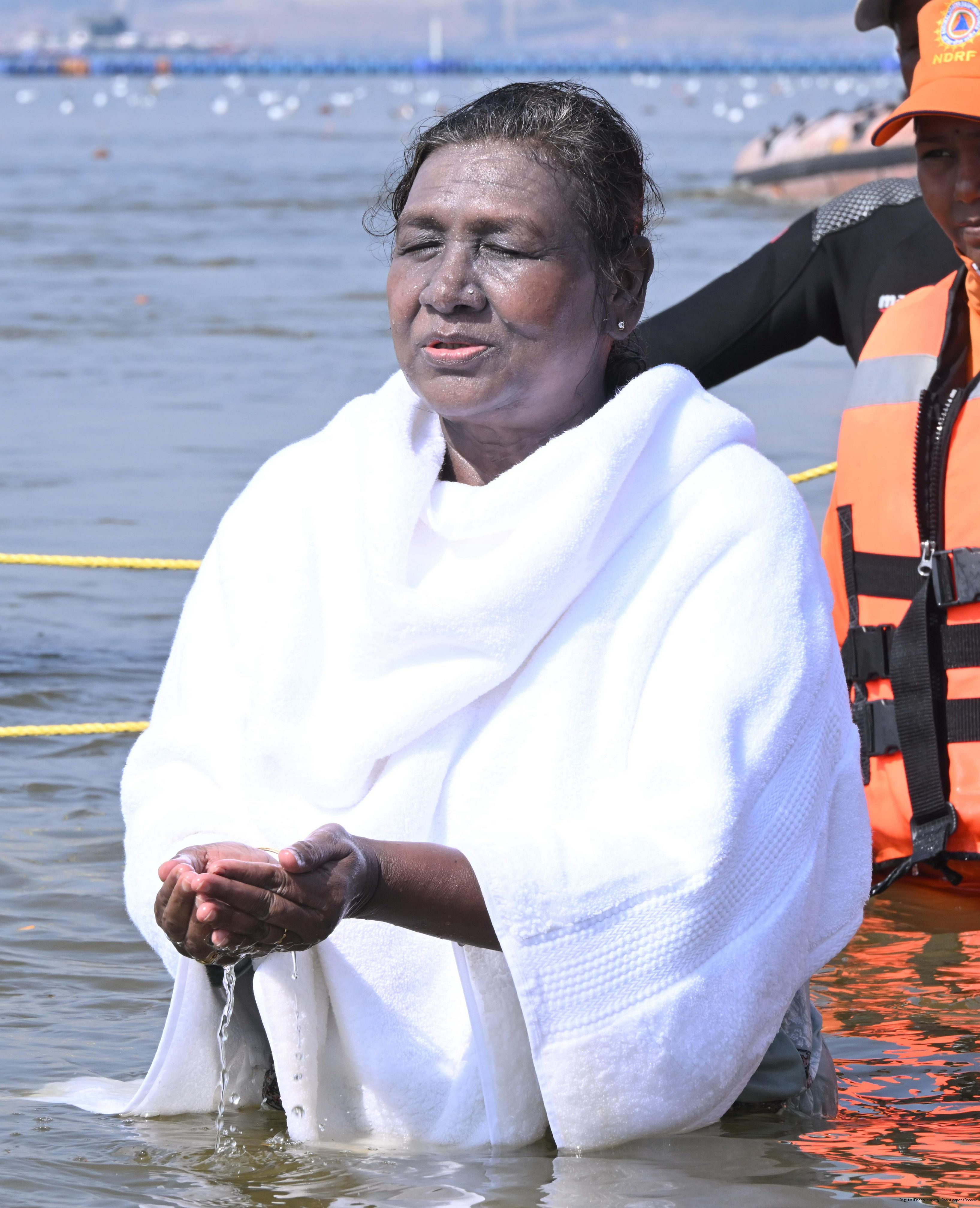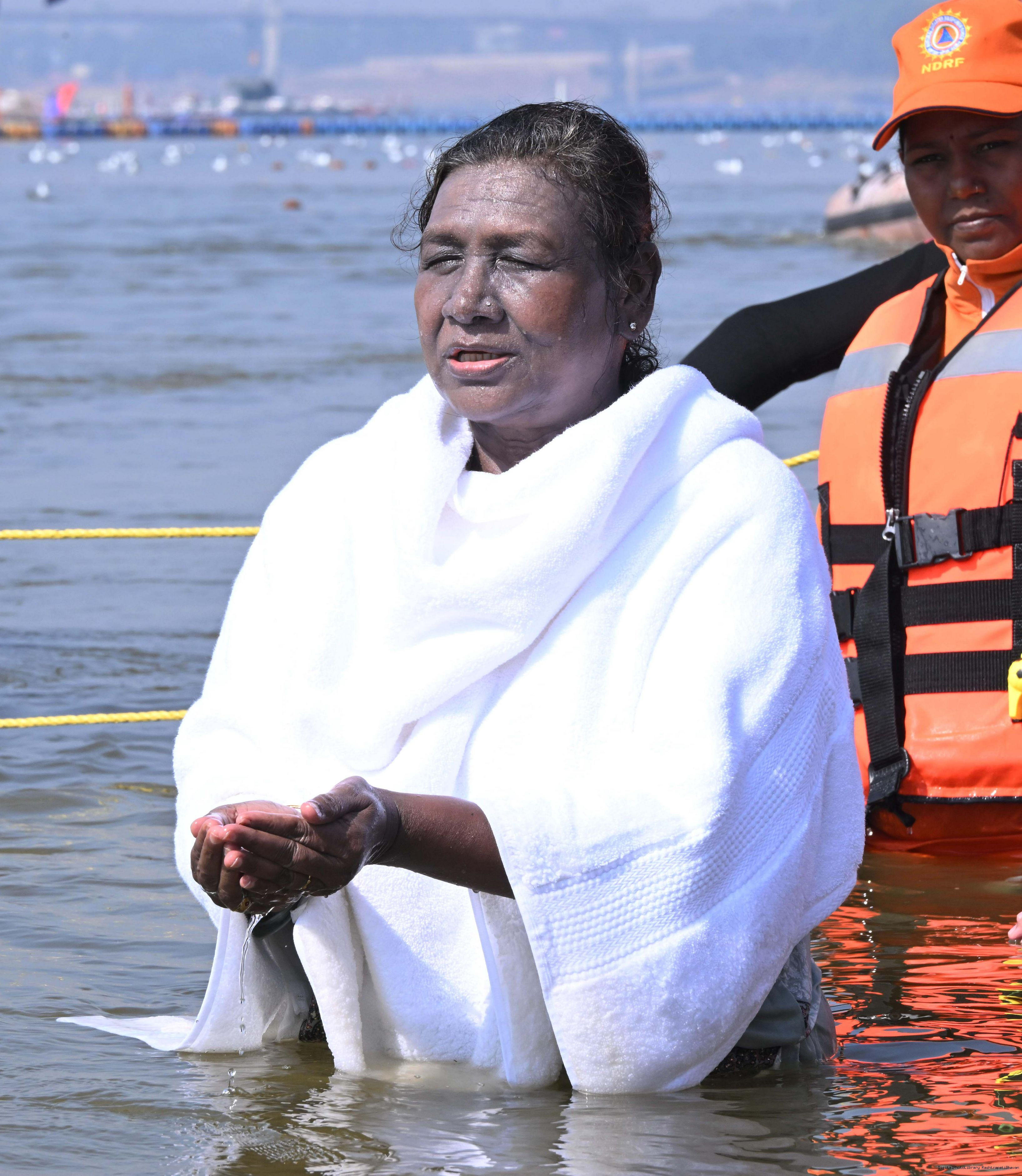 | Caption: | The President of India, Smt. Droupadi Murmu took holy dip and offered prayers at Sangam Prayagraj on February 10, 2025. |