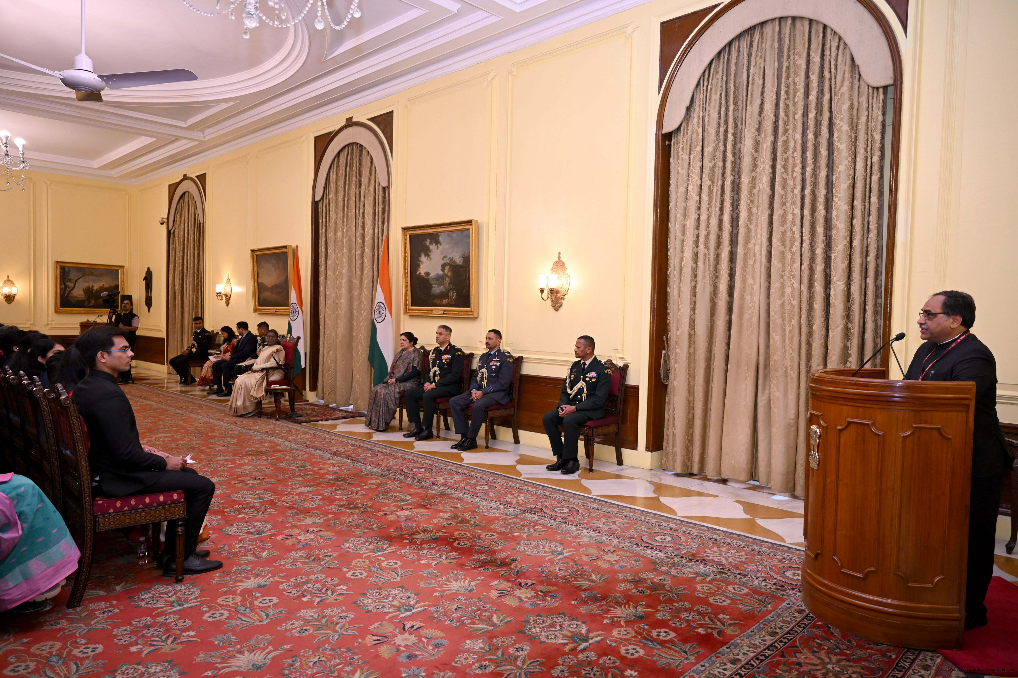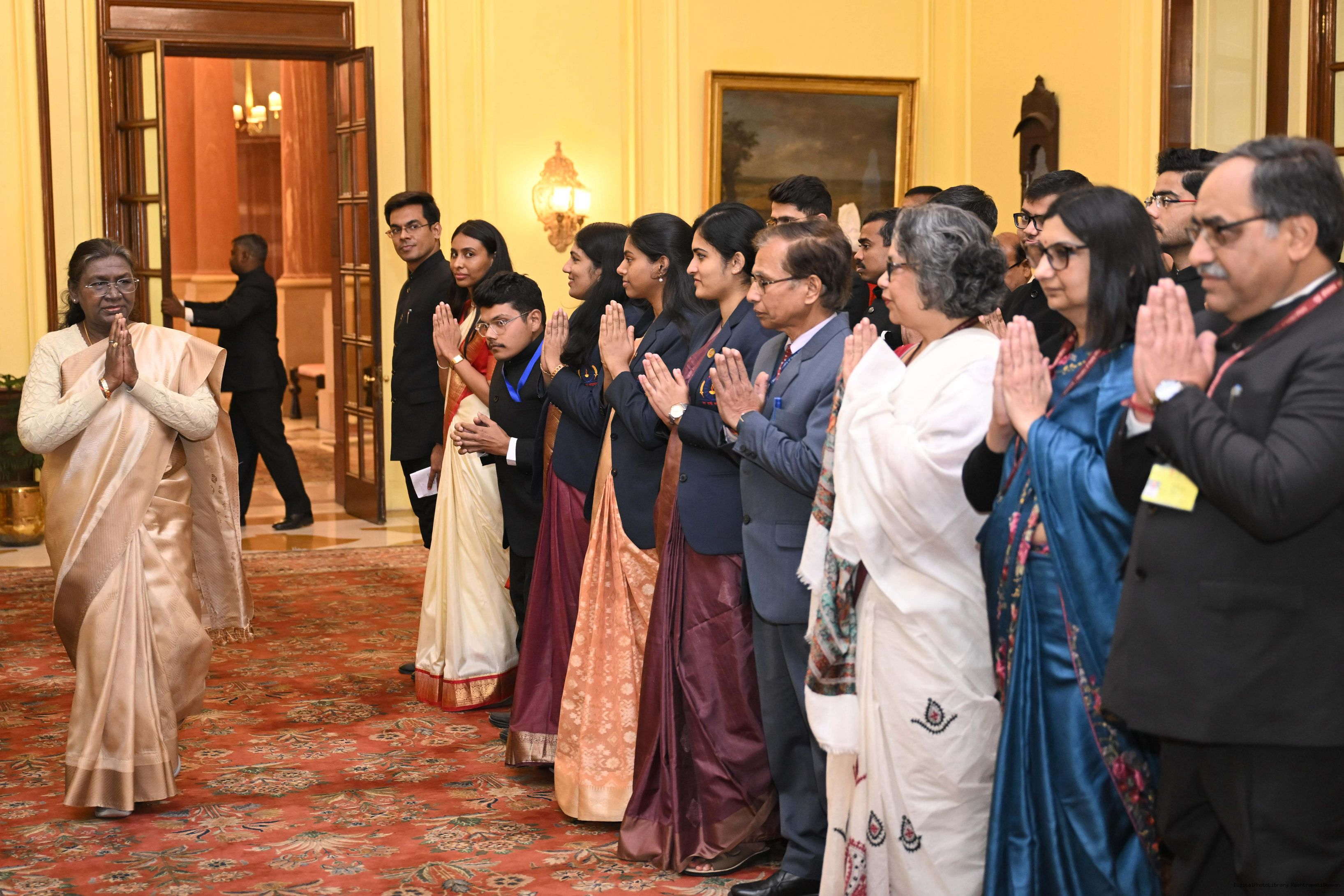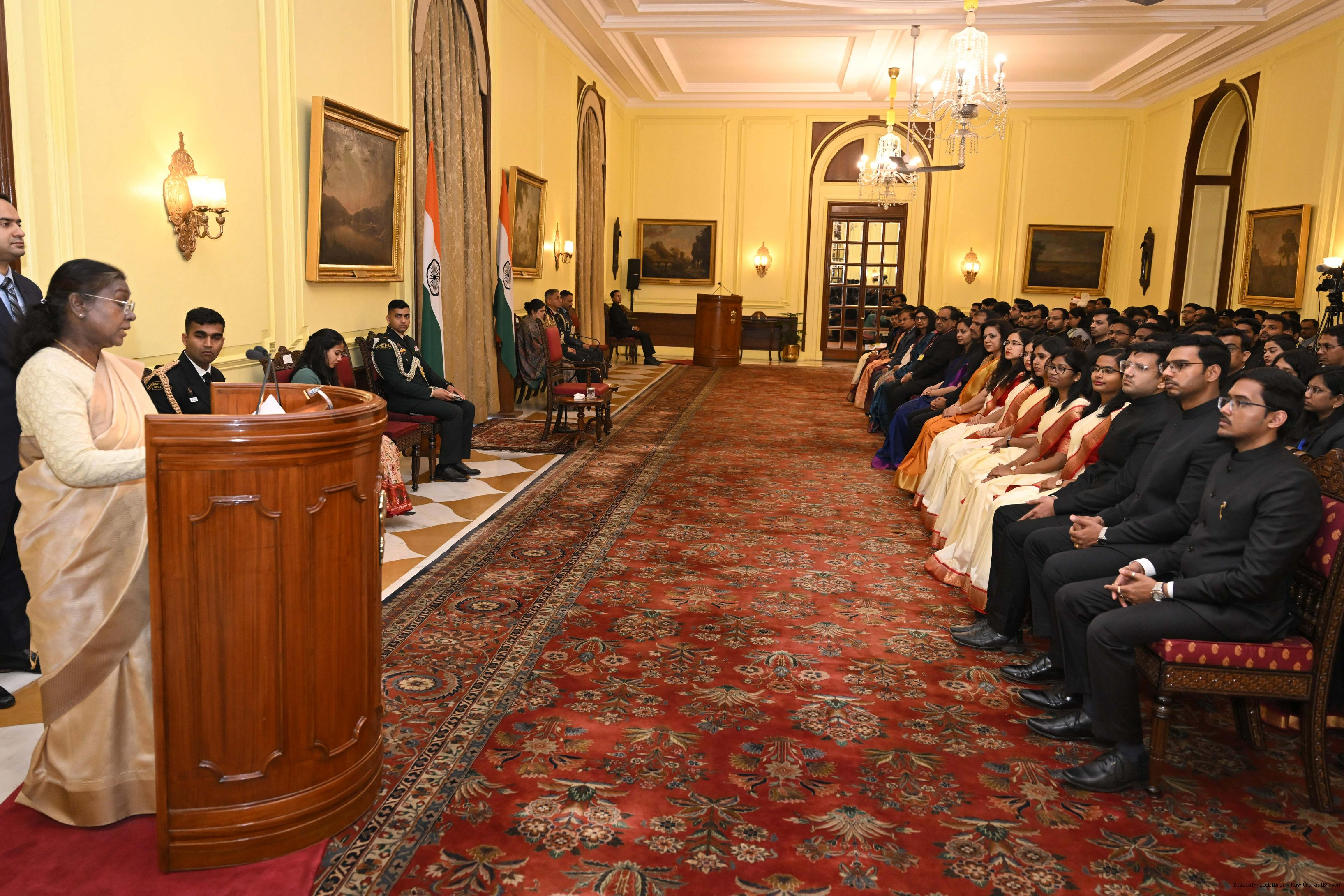 | Caption: | A group of probationers of Indian Civil Accounts Service, Indian Post and Telecommunication (Finance Accounts) Service, Indian Railway Management Service (Accounts) and Indian Postal Service called on the President of India, Smt. Droupadi Murmu at Rashtrapati Bhavan on February, 12, 2025. |