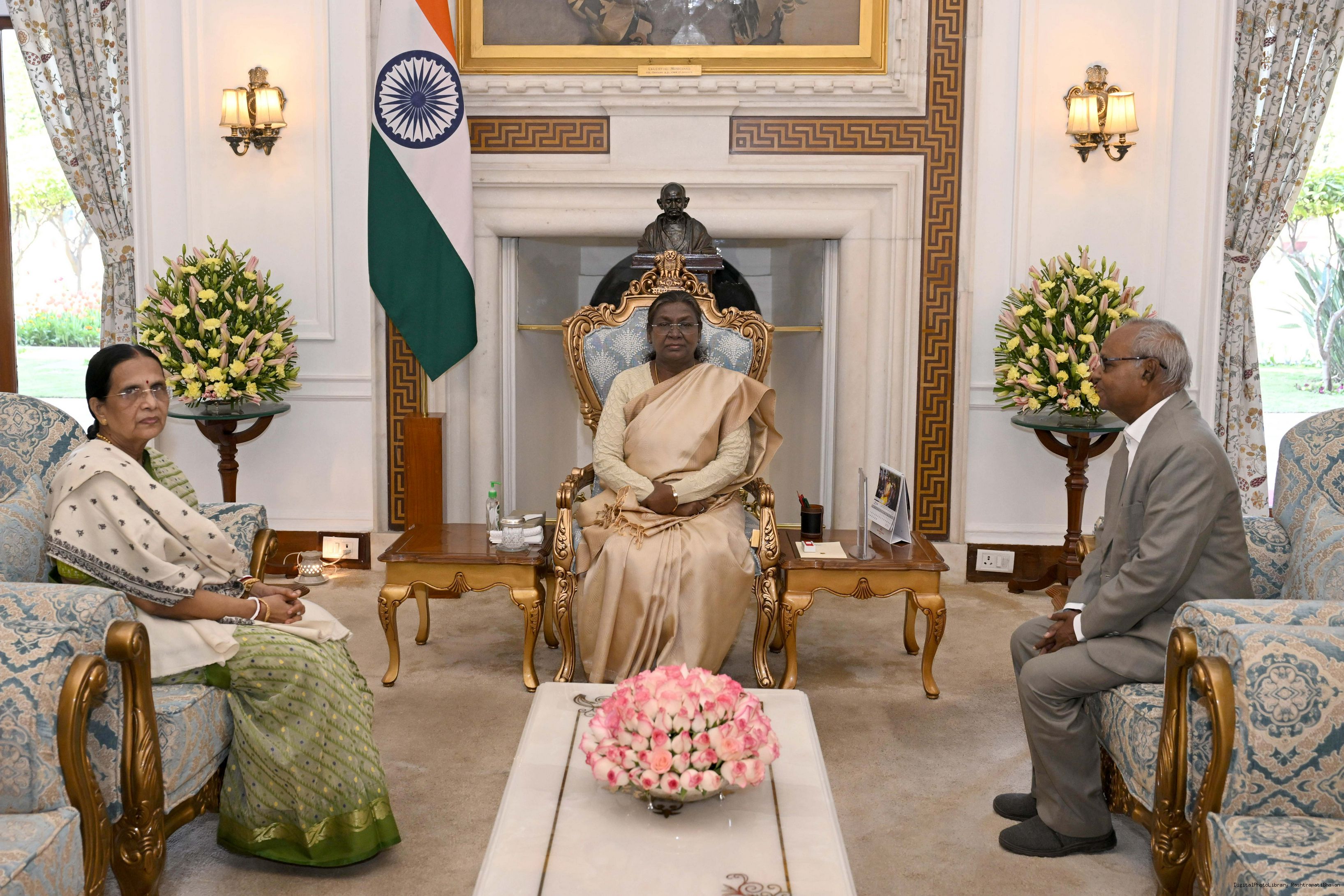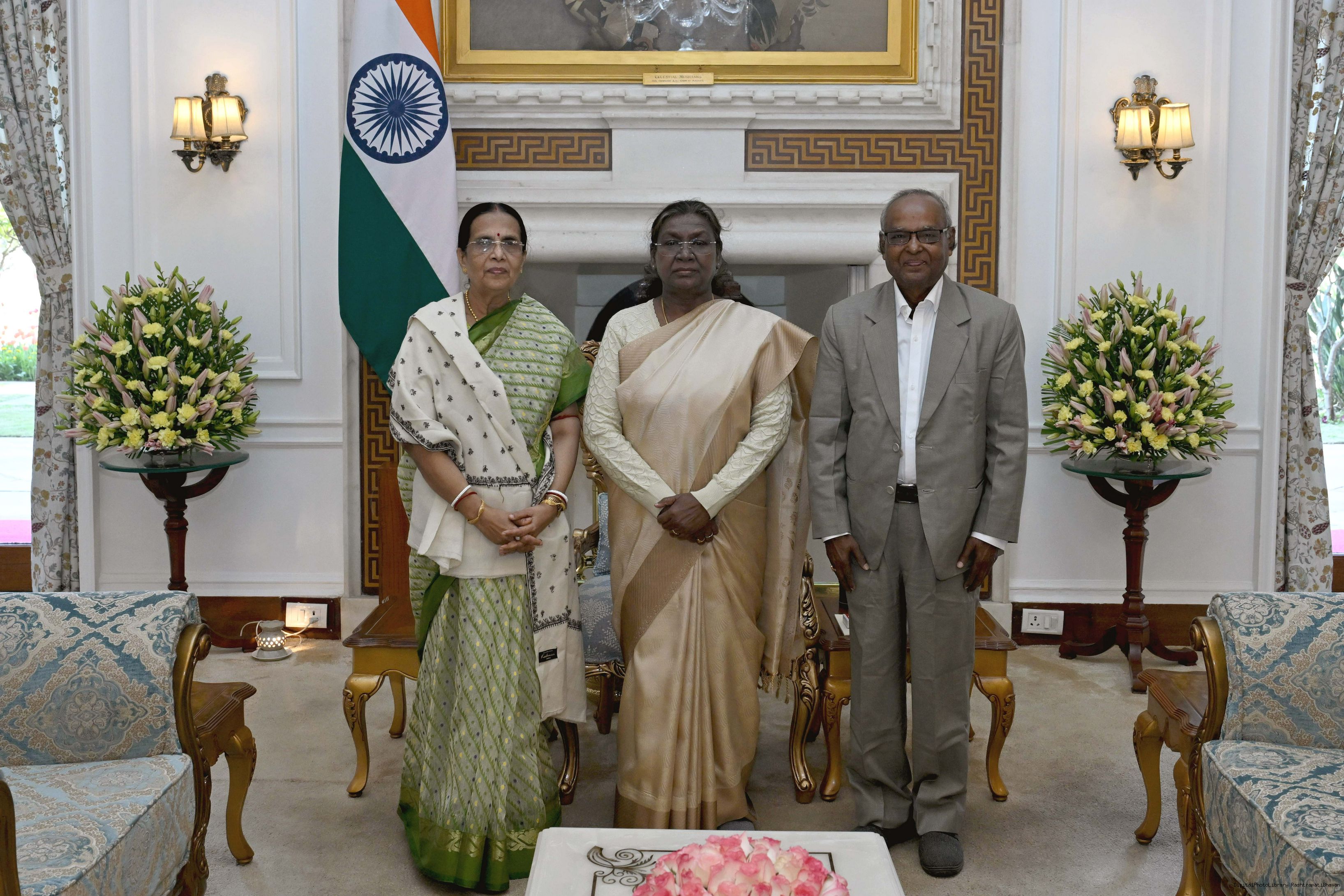 | Caption: | Smt. Bharati Nandi along with others meeting with the President of India, Smt. Droupadi Murmu at Rashtrapati Bhavan on February, 13, 2025. |